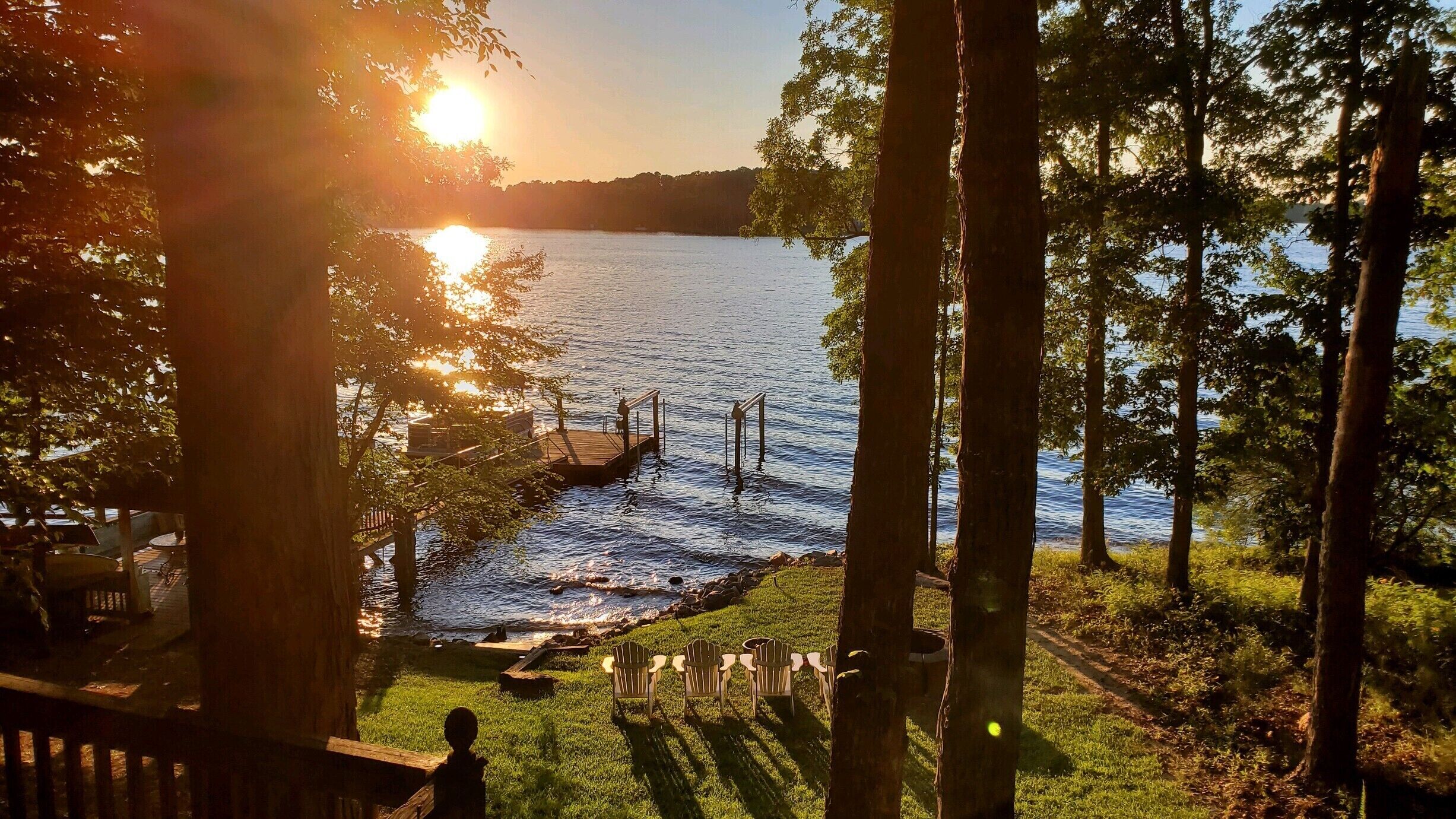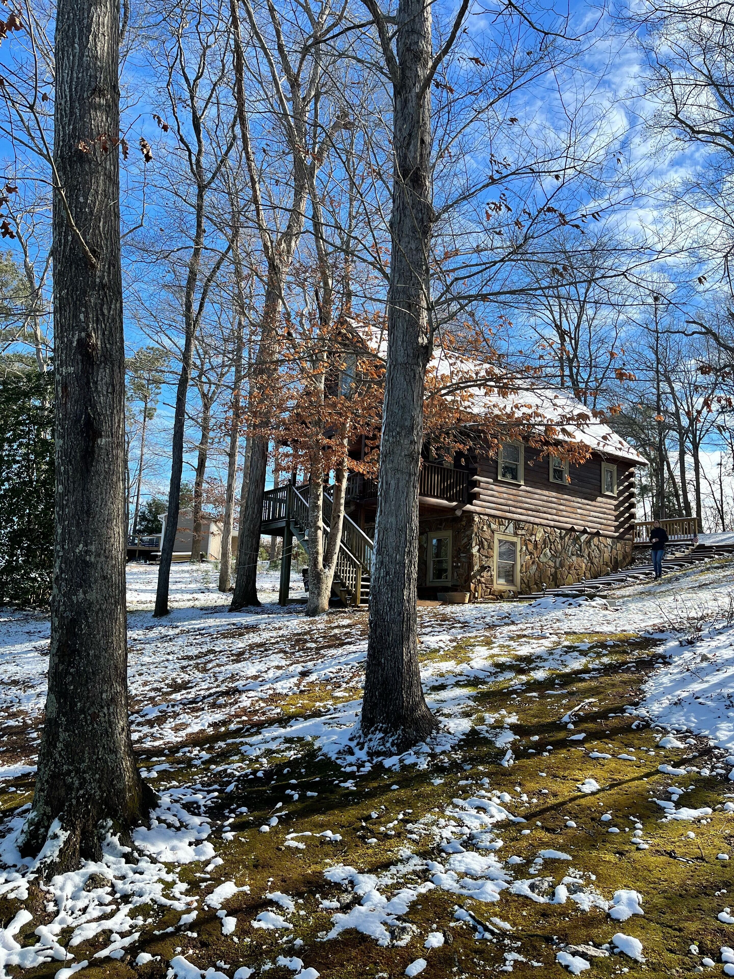Waterfront Cozy Log Cabin Lake House - The Sunset Cabin Pet friendly! Waterfront!! Beautiful, family fun, romantic cabin just right for Spring, Summer, Fall & Winter getaways. Beautiful waterfront view. Can't you imagine relaxing by the lake on a warm summer's day? Or sitting under the shaded oaks by the lake while you read or just relax? Then the Sunset Cabin is just what you're looking for. This quaint and beautiful 1400 sq. ft. 2 bedroom, 2 bath log cabin is located on Lake Murray in Leesville, SC. There's also a loft for added accommodations sleeps 5-6 in loft. Only 30 minutes from Columbia Airport, it is convenient to both Columbia, SC and Augusta, GA. And the Augusta National! It would make the perfect getaway for Spring Break, a Holiday , a honeymoon or a family vacation. 6 Kayaks included. Great dock & gazebo. Plenty of room to dock your personal boat at the Cabin. One block to a boat landing. A wonderful place to Vacation! Fire pit for cool night fire. 🔥 s'mores anyone? Rent a pontoon just around the corner from the cabin. The sunsets are phenomenal. Free WIFI.