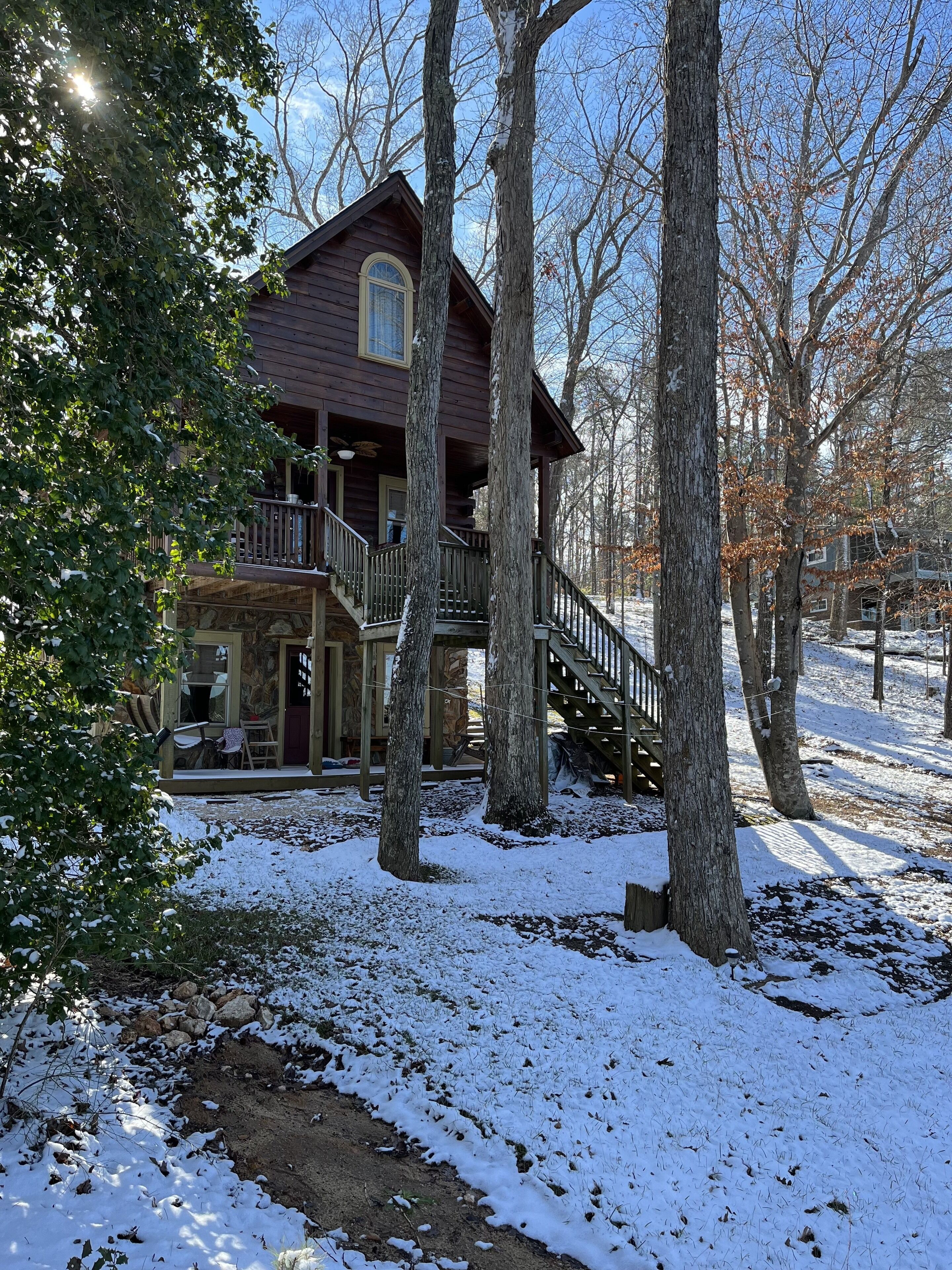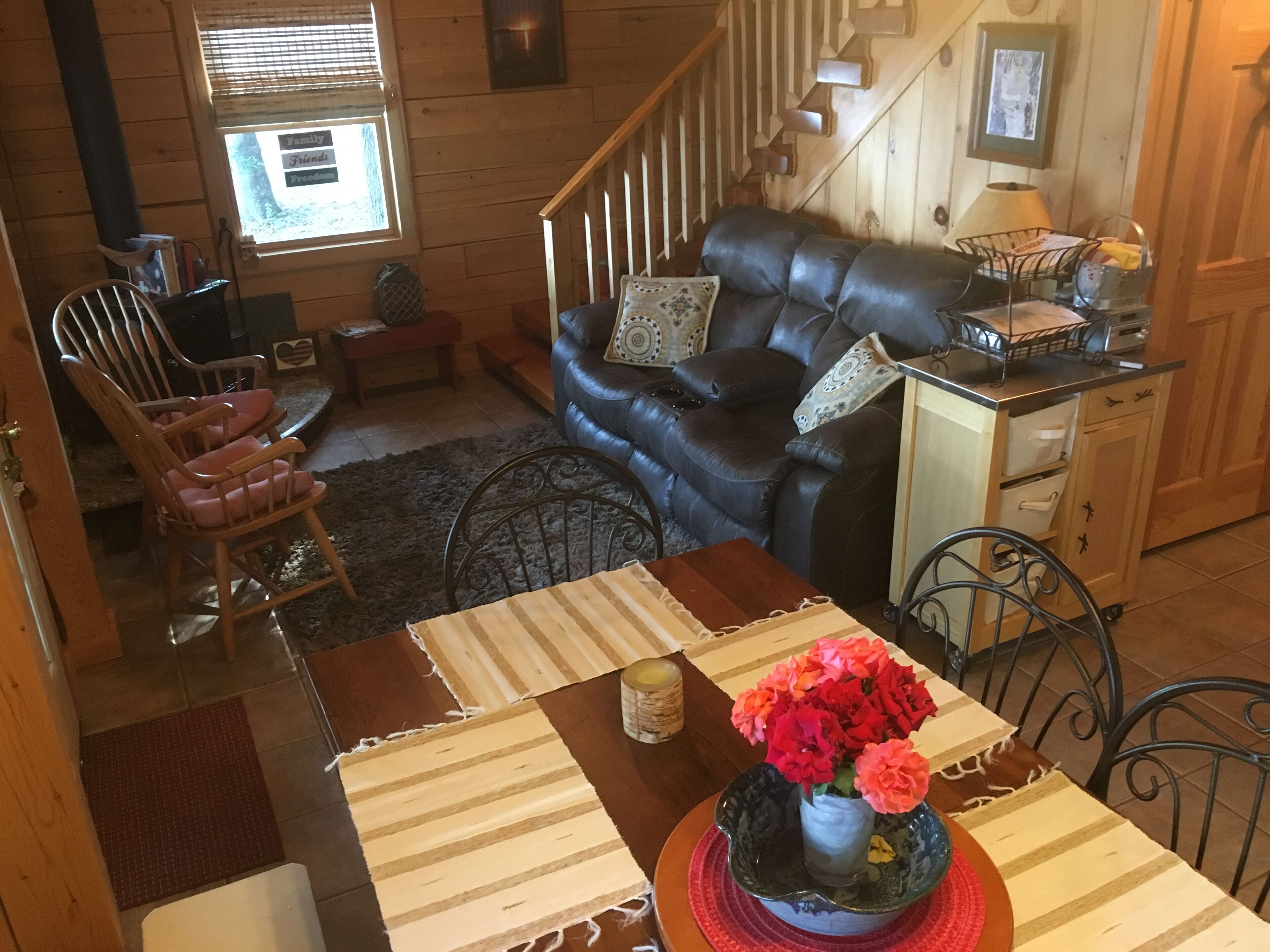 Waterfront Cozy Log Cabin Lake House - The Sunset Cabin Pet friendly! Waterfront!! Beautiful, family fun, romantic cabin just right for Spring, Summer, Fall & Winter getaways. Beautiful waterfront view. Can't you imagine relaxing by the lake on a warm summer's day? Or sitting under the shaded oaks by the lake while you read or just relax? Then the Sunset Cabin is just what you're looking for....