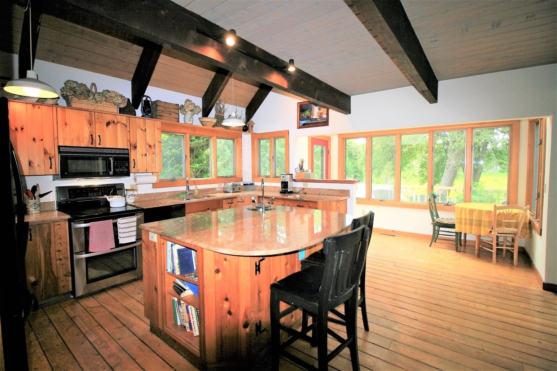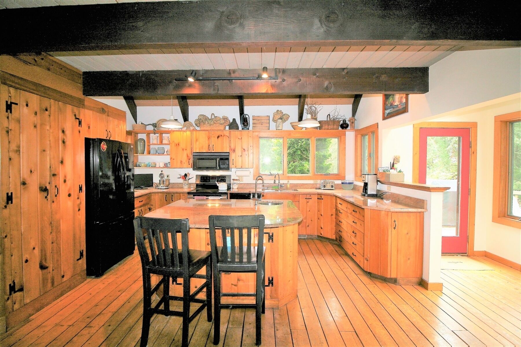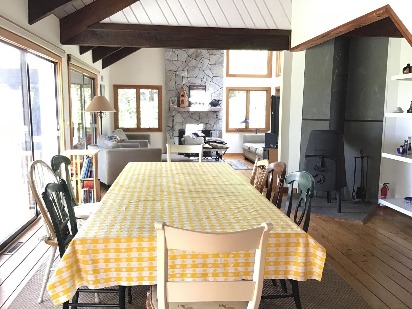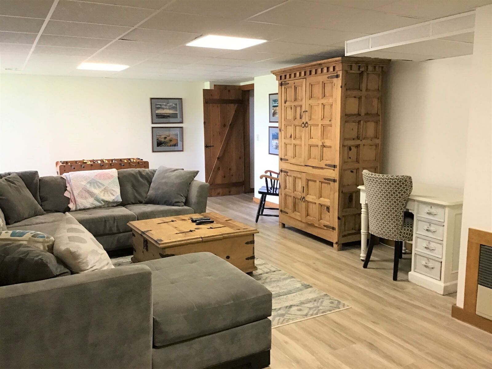 Path to Skaket Beach | 5 Bed, 3 Bath Contemporary home with private setting just 3/10 mile walk through a private neighborhood association path to Skaket Beach. Back yard overlooks an active cranberry bog! Near the Cape Cod Bike Trail and less than a mile to Rock Harbor fishing fleet. There are 3 decks and a fully screened porch with table and chairs with views of beautiful one acre yard. Central A/C throughout plus lots of space for entertaining with the open floor plan. Five bedrooms include the first floor Primary Bedroom with a slider to a private patio and outdoor shower. 2nd bedroom on main floor has two twins. 3 more bedrooms upstairs.A loft upstairs makes a great play area. Lower level has full bath and TV and relaxing living space. There is a foosball table for extra fun! Stroll to historic Captain Linnell House for fine dining. Enjoy the sunset over Skaket Beach....It is vacation time! Upstairs has loft, 3 bedrooms. One king, one queen and 2 twins in 3 BR. One full bath upstairs with tub/shower combo. Master suite is on main level and has deck with outdoor shower. Bathroom is right outside the master door w/ tub/shower 5th bedroom 2 twins on main level shares hall bathroom. Basement has full bathroom. Large sofa in lower level. 3 new mini-splits added to upstairs bedrooms for extra cooling!King Beds (2), Queen Bed (1), Single Beds (4)Blankets and Pillows Provided - Guests need to bring or rent bed linens and towelsCentral ACWIFITVs (2)FoosballWasher & DryerParking for up to 4 carsDeckScreened PorchGas GrillFully Enclosed Outdoor ShowerFull Sized RefrigeratorOvenMicrowaveRegular Drip CoffeemakerToasterIron & Ironing BoardBeach Equipment