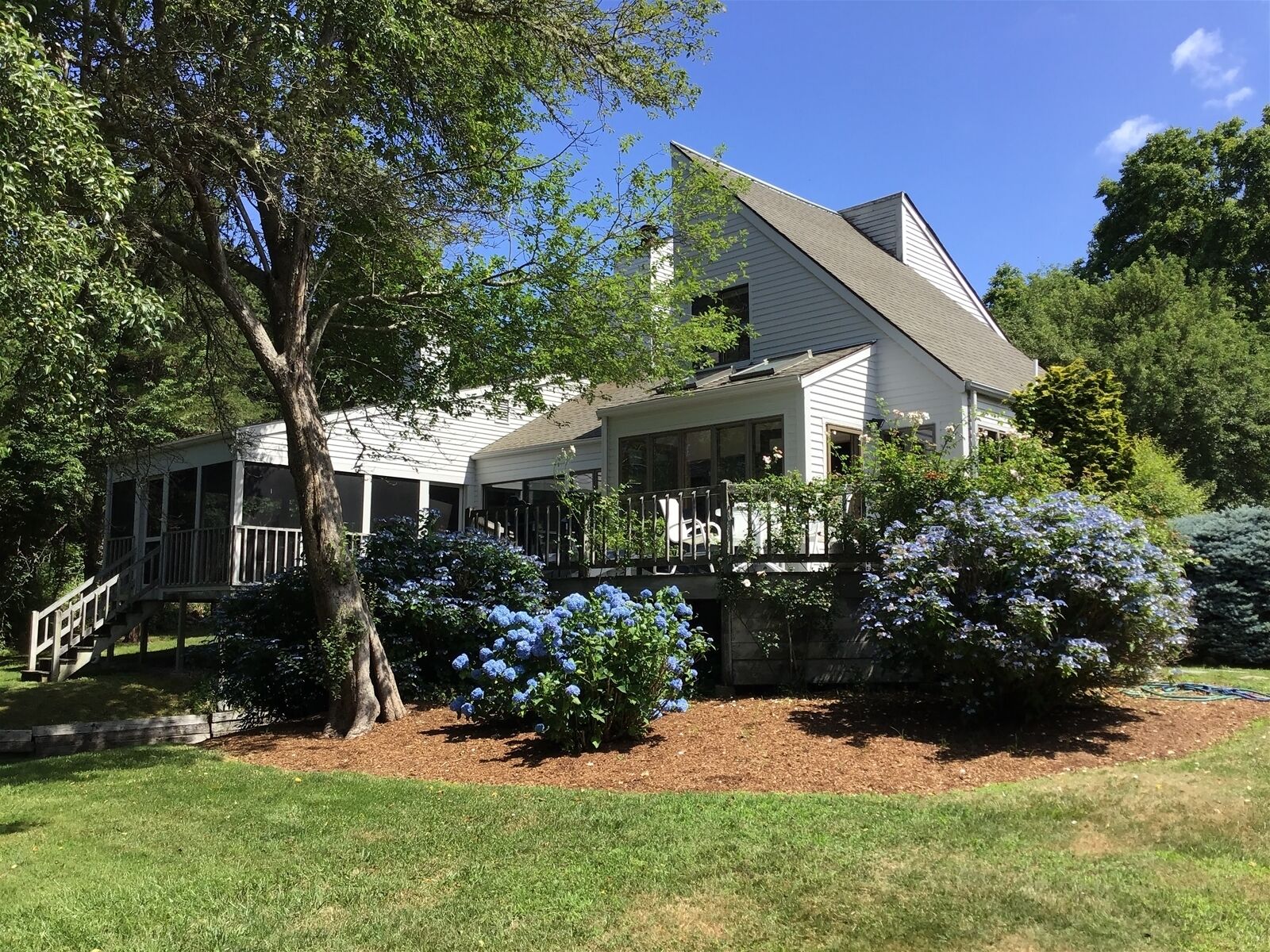 Path to Skaket Beach | 5 Bed, 3 Bath Contemporary home with private setting just 3/10 mile walk through a private neighborhood association path to Skaket Beach. Back yard overlooks an active cranberry bog! Near the Cape Cod Bike Trail and less than a mile to Rock Harbor fishing fleet. There are 3 decks and a fully screened porch with table and chairs with views of beautiful one acre yard. Central...