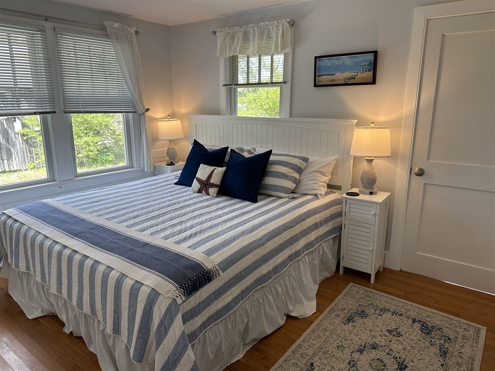 Cozy Cottage Overlooking | 1 Bed, 1 Bath Cozy Orleans one bedroom bungalow in historic Rock Harbor. Immaculately restored with granite counters and beautiful hardwood floors, tile bath, and high quality construction. Set within the tranquil beauty of Rock Harbor Creek and just 0.2 miles to Rock Harbor & Cape Cod Bay and .9 miles to the Cape Cod Rail Trail. The fully equipped kitchen is open to the dining nook and living room. Cozy bedroom with new king bed, large closet, en-suite bathroom w/walk-in shower and stacked washer/dryer. In the living room there's a queen sleep sofa, TV and desk. The back yard has a picnic table and grill for summer cookouts and an outdoor shower. Two Kayaks available for guest use.King Bed (1), Queen Sleep Sofa (1)Blankets and Pillows provided, guests must bring or rent bed linens and towelsDAIKAN mini-split air conditioning and heatOutdoor ShowerCharcoal GrillFire PitKayaks (2)Televisions(1)Cable TVWIFIFull Size RefrigeratorStoveOvenDishwasherMicrowaveCoffee MakerToasterBlenderLobster PotDining Capacity(4)Washer & DryerIron & Ironing BoardParking Spaces(2)Lawn AreaBeach Chairs (2)