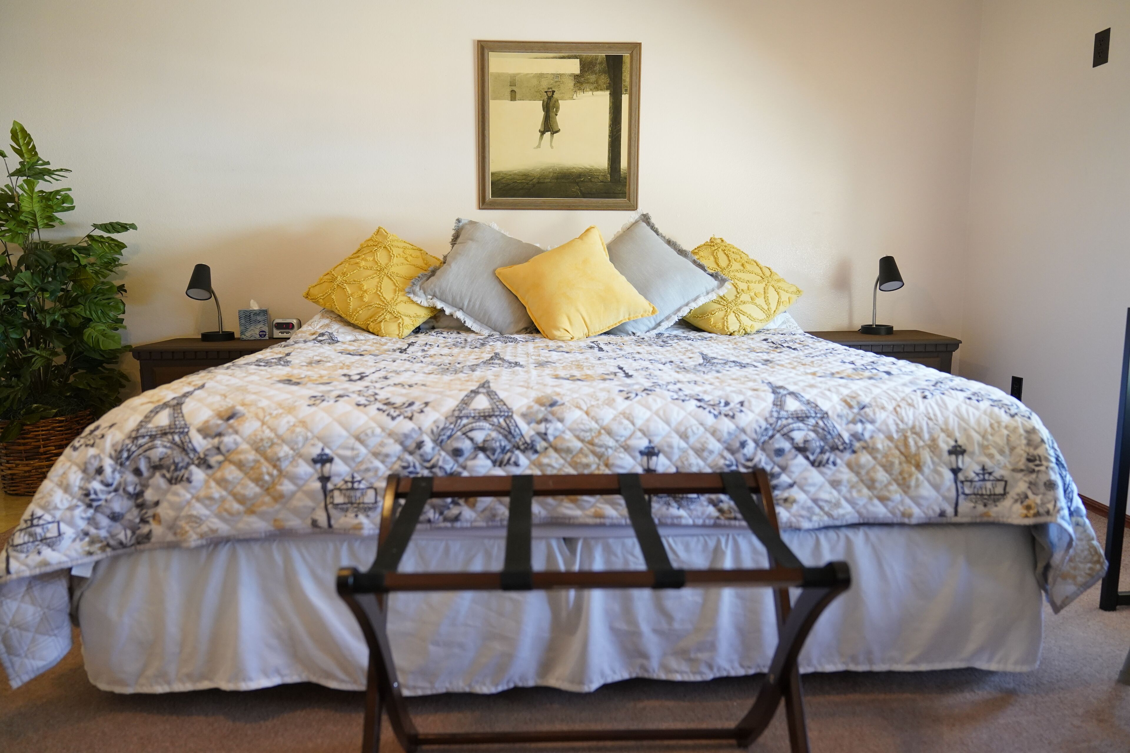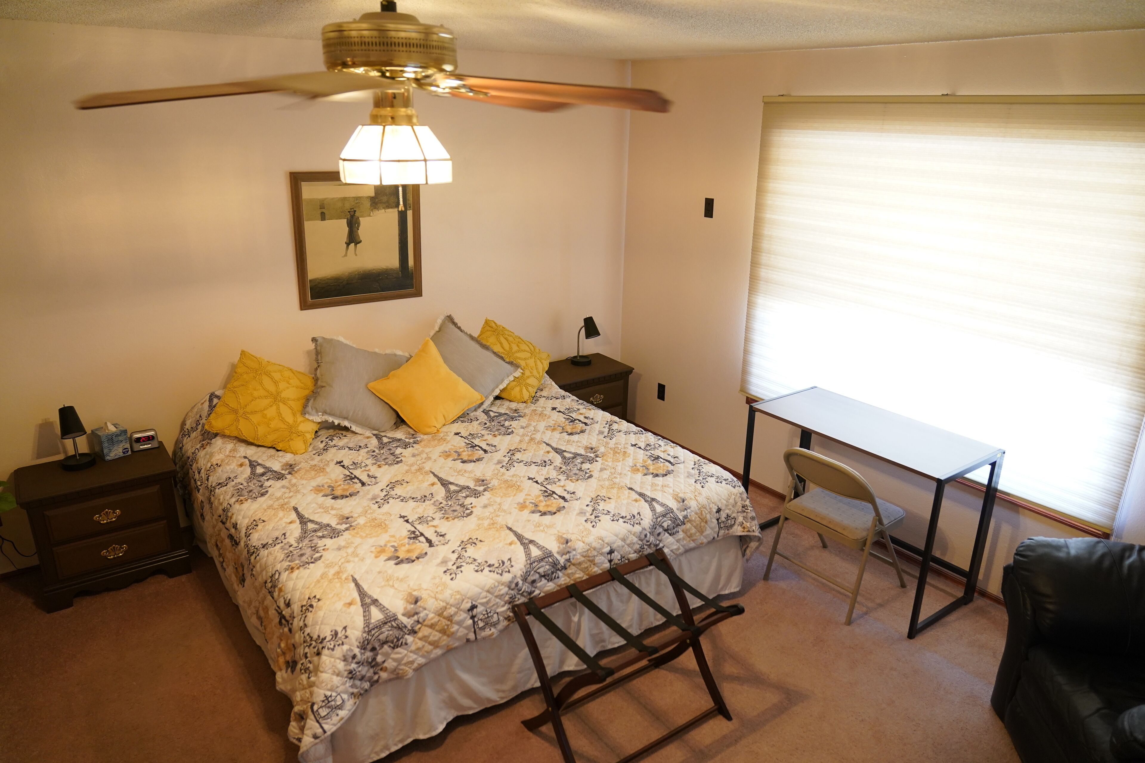 Spacious, private, bedroom and private 3/4bath... a simple bed and breakfast Pet-free, smoke-free, extremely clean, wheelchair friendly and welcoming is this relaxing and spacious BnB for your personal, private retreat, overnight layover or extended stay. The bedroom area is 19’ X 14’ and you’ll have your own, private 3/4 bath with an adjustable shower chair.A well-stocked Keurig, microwave, and...