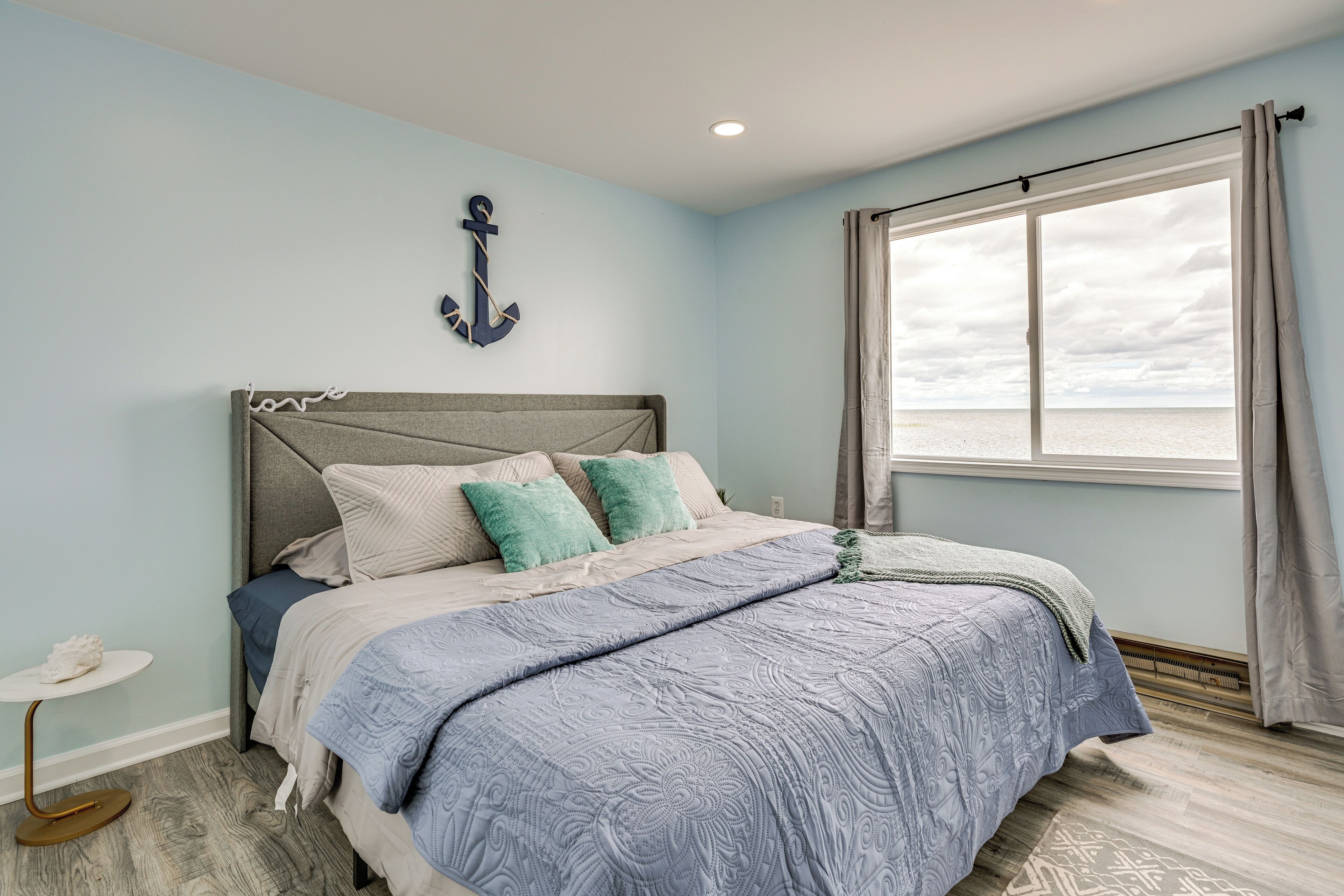 Serene Lakefront Standish Home w/ Fire Pit! Looking for a peaceful spot to unwind? This waterfront Standish vacation rental has everything needed for a relaxing Lake Huron getaway! Nestled on the shores of Saginaw Bay, this 2-bedroom, 1-bath house is perfect for swimming, fishing, or simply enjoying some time by the water. Check out the Saganing Eagles Landing Casino or visit the bay observation tower at Pinconning Park. Then, return to ‘Marina on the Rocks’ for a movie night or s’mores around the fire pit.-- THE PROPERTY --Lake Views | In-Unit Laundry | 2 Mi to Saganing Eagles Landing CasinoBedroom 1: King Bed | Bedroom 2: King Bed | Living Room: 2 Full Futons | Additional Sleeping: Queen Air MattressOUTDOOR LIVING: Wood-burning fire pit (bring your own firewood), charcoal grill (charcoal not provided), covered deck, patio seating, wildlife spottingINDOOR LIVING: Smart TV, board games, dining table, shower/tub combo, standing fansKITCHEN: Refrigerator, Keurig coffee maker (starter coffee & creamer provided), stove/oven, microwave, blender, toaster, dishware & flatware, cooking basicsGENERAL: Self check-in, free WiFi, central heating, window A/C unit, washer & dryer, towels/linens, trash bags/paper towels, complimentary toiletries, hair dryerFAQ: Well water only, 3 exterior security cameras (facing out)ACCESSIBILITY: Single-story house, 1 step required to accessPARKING: Driveway (2 vehicles)-- THE LOCATION --OUTDOORS: Lake Huron - swimming, fishing, boating (on-site), White's Beach (0.6 miles), Standish Nature Preserve (2 miles), Wah Sash Kah Moqua Nature Preserve (5 miles), Pinconning Park & Boat Ramp (9 miles), Nayanquing Point State Wildlife Area (15 miles)LOCAL ATTRACTIONS: Saganing Eagles Landing Casino (2 miles), Standish Historical Depot Museum (8 miles), Saginaw Bay Observation Tower (9 miles)HIT THE LINKS: Pine River Golf Club (6 miles), Green Hills Golf Course (14 miles)AIRPORT: MBS International Airport (39 miles)-- REST EASY WITH US --Evolve makes it easy to find and book properties you’ll never want to leave. You can relax knowing that our properties will always be ready for you and that we’ll answer the phone 24/7. Even better, if anything is off about your stay, we’ll make it right. You can count on our homes and our people to make you feel welcome — because we know what vacation means to you.-- POLICIES --- No smoking- No pets allowed- No events, parties, or large gatherings- Boats and jet skis are not allowed to be launched or parked on-site- Must be at least 25 years old to book- Additional fees and taxes may apply- Photo ID may be required upon check-in- NOTE: This single-story house requires using 1 step to access- NOTE: This property only offers well-water- NOTE: Your safety matters. This property features 3 exterior security cameras. Camera 1 is located at the front door, facing outward. Camera 2 is located above the garage, facing the driveway. Camera 3 is located on the rear deck, facing the backyard and lake. These cameras do not look into any interior spaces. The cameras record video and sound when activated by motion