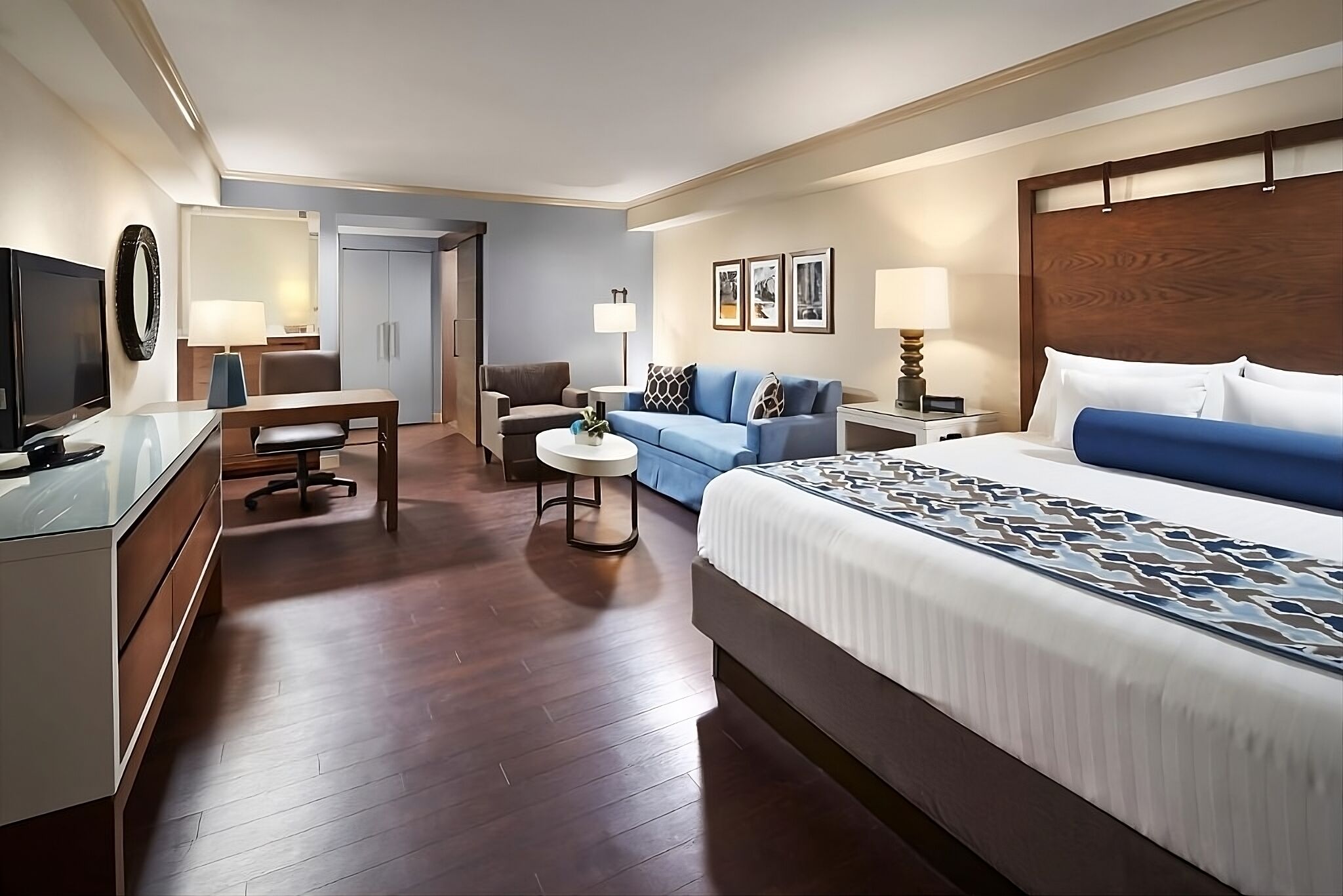 Mountain Scenery! Dog-friendly Property, Minutes to Calabasas Open Space Park Experience modern comfort, thoughtful amenities, and warm hospitality in the heart of Calabasas, where memorable moments are crafted and cherished. Dive into a world of leisure with our inviting pool, the epitome of tranquility. For those seeking to stay connected and productive, our business center provides all the essential resources. Our hotel offers some rooms equipped with features like accessible bathroom facilities to ensure a comfortable and convenient stay, while for those seeking an elevated experience, our SoCal Fit rooms offer a unique blend of fitness and relaxation. Also, you can bring your furry companions along and enjoy their company as you explore the wonders of Calabasas. Convenience is key, which is why we offer onsite parking facilities for our guests.PLEASE NOTE: - The listing is distributed and managed by RoomPicks Accommodations. - The maximum number of days that you may book per reservation is only 28 days.THE UNIT This 400sf King Premium features:- 1 King bed;- Sofa bed;- Daily housekeeping;- Coffee maker, Mini fridge, microwave;- Work desk with chair;- All linens, towels, and bathroom essentials are provided. You don’t need to bring a thing!THE PROPERTYOur family-friendly property provides the following on-site amenities:- 24/7 Front desk and Security;- Swimming pool;- Loungers, umbrellas, and towels by the pool;- On-site restaurant and bar;- Fitness center;- Business center;- Mini market;- Luggage storage;- Complimentary newspapers;- Dogs are allowed for an extra charge of USD 35.00 per pet (varies based on length of stay). 2 per room (up to 75 lbs per pet);- Self-parking is available(parking slot reservation is not required in advance) and costs USD 15 per day.Please ensure you have a valid ID for check-in, as it is mandatory for entry.