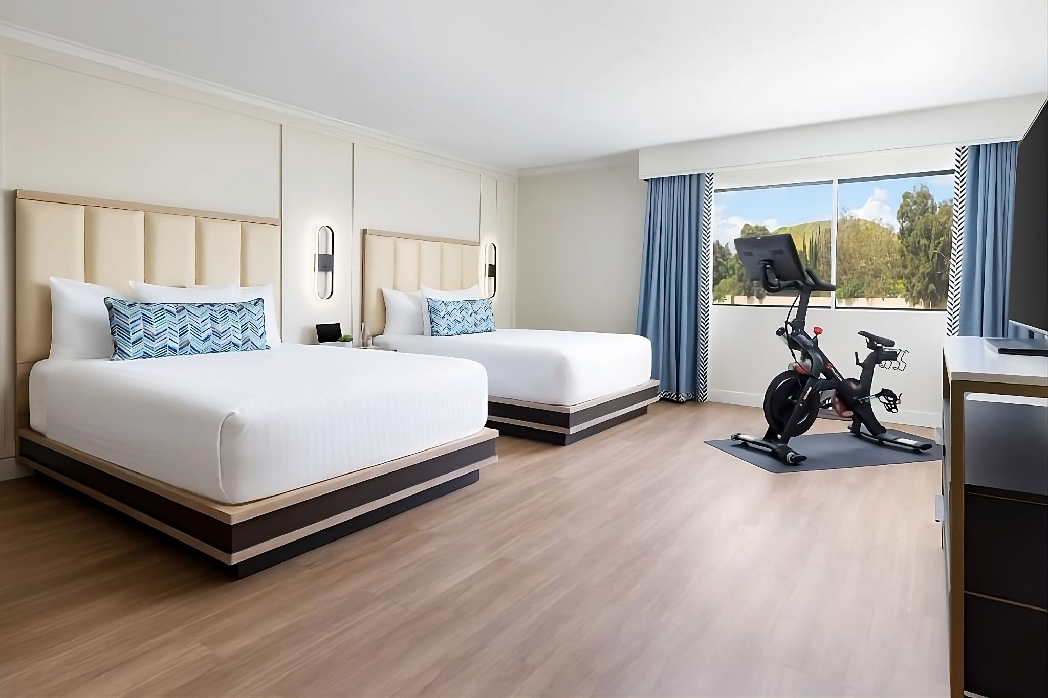 Relax and Recharge! 3 Comfortable Units, Dog-friendly Property, Onsite Pool Experience modern comfort, thoughtful amenities, and warm hospitality in the heart of Calabasas, where memorable moments are crafted and cherished. Dive into a world of leisure with our inviting pool, the epitome of tranquility. For those seeking to stay connected and productive, our business center provides all the essential resources. Our hotel offers some rooms equipped with features like accessible bathroom facilities to ensure a comfortable and convenient stay, while for those seeking an elevated experience, our SoCal Fit rooms offer a unique blend of fitness and relaxation. Also, you can bring your furry companions along and enjoy their company as you explore the wonders of Calabasas. Convenience is key, which is why we offer onsite parking facilities for our guests.PLEASE NOTE: - The listing is distributed and managed by RoomPicks Accommodations. - The maximum number of days that you may book per reservation is only 28 days.- These are 3 units located at a hotel. The rooms are not adjoining and may not be located right next to each other. Exact rooms are assigned upon arrival and the location is based on availability. The price is for three units.THE UNITS Each 470sf SoCal Fit Room Two Queen features:- 2 Queen beds;- Daily housekeeping;- Coffee maker, Mini fridge, microwave;- Work desk with chair;- Lounge chair;- Peloton bike, yoga accessories, and other gym equipment;- Wet bar;- All linens, towels, and bathroom essentials are provided. You don’t need to bring a thing!THE PROPERTYOur family-friendly property provides the following on-site amenities:- 24/7 Front desk and Security;- Swimming pool;- Loungers, umbrellas, and towels by the pool;- On-site restaurant and bar;- Fitness center;- Business center;- Mini market;- Luggage storage;- Complimentary newspapers;- Dogs are allowed for an extra charge of USD 35.00 per pet (varies based on length of stay). 2 per room (up to 75 lbs per pet);- Self-parking is available(parking slot reservation is not required in advance) and costs USD 15 per day.Please ensure you have a valid ID for check-in, as it is mandatory for entry.