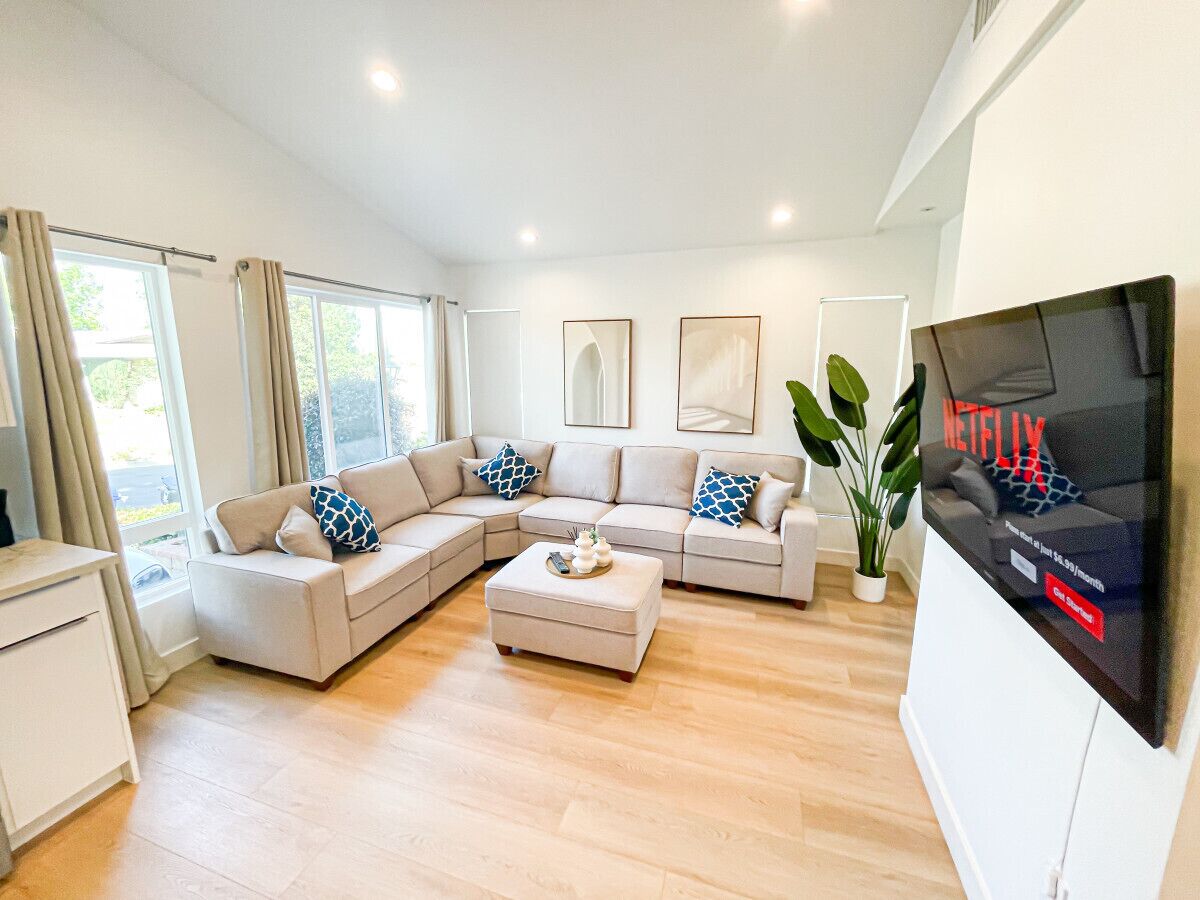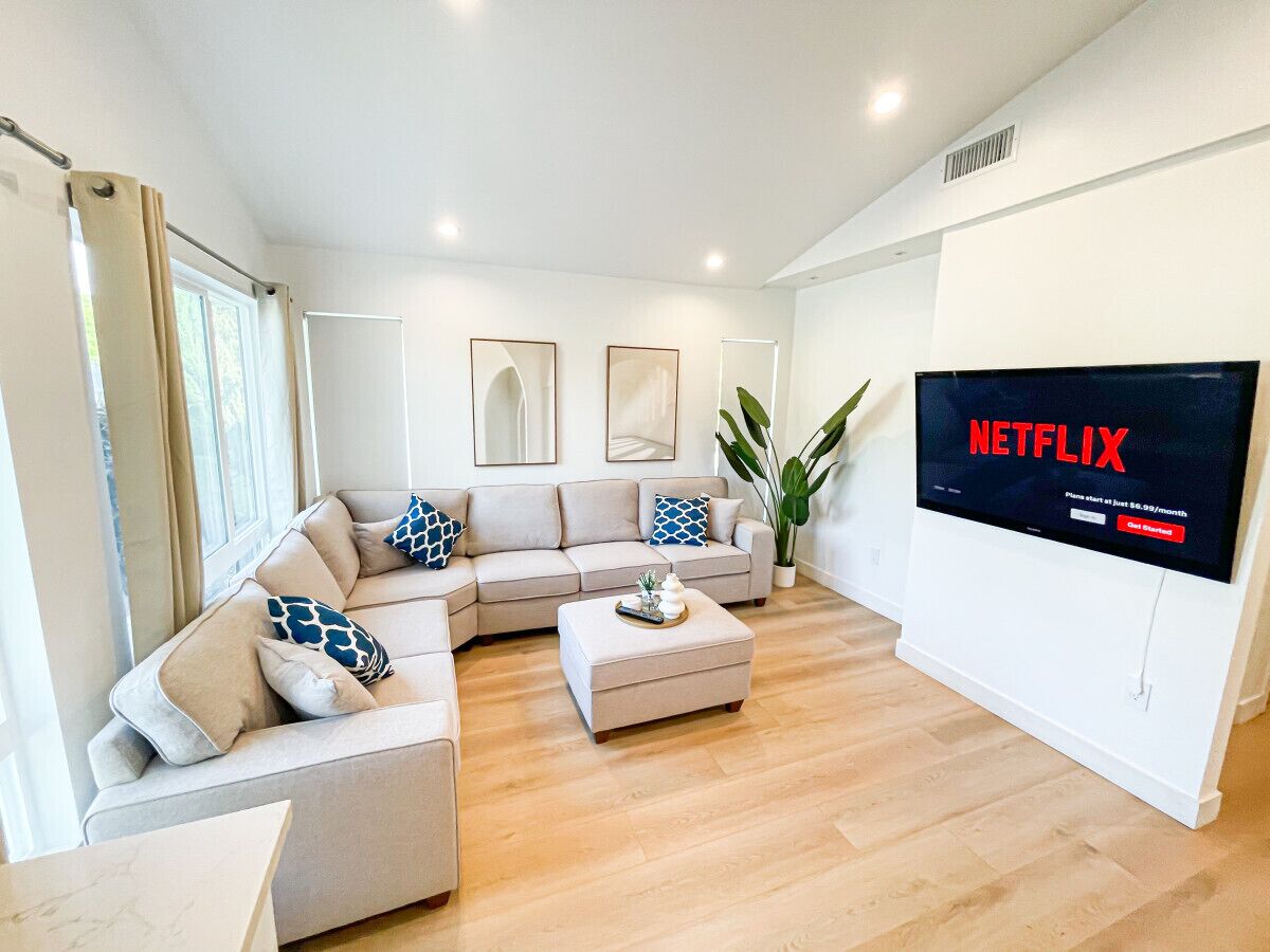 Modern 2BR Oasis - CAL2 - Cal Welcome to our beautifully designed 2-bedroom, 2-bath sanctuary, where comfort meets convenience. Nestled in a tranquil neighborhood, our home boasts spacious interiors, modern amenities, and curated decor to ensure your stay is both delightful and memorable.Whether you're in town for business, pleasure, or a mix of both, our home promises a stay filled with comfort and charm.Elegant 2-bedroom home, each room thoughtfully appointed with a queen bed, making it perfect for up to 4 guests. The house features two modern bathrooms, ensuring privacy and comfort for all occupants. The interior spaces provide a cozy and welcoming environment for a memorable stay.Super peaceful and family-oriented neighborhood with lots of shops and restaurants all within walking distance.Easy access to most of what LA has to offer. 30-minute drive to Malibu beach, 35-minute drive to Hollywood, 30-minute drive to Universal Studios, 8 minutes to the famous Topanga Mall and Westfield Village. Perfect for business and shopping trips while staying in the comfort and peacefulness of a family-oriented neighborhood.A complete copy of the updated House Rules will be provided to you a few days prior to your arrival. Please refer to the web link sent to you in the messaging App.