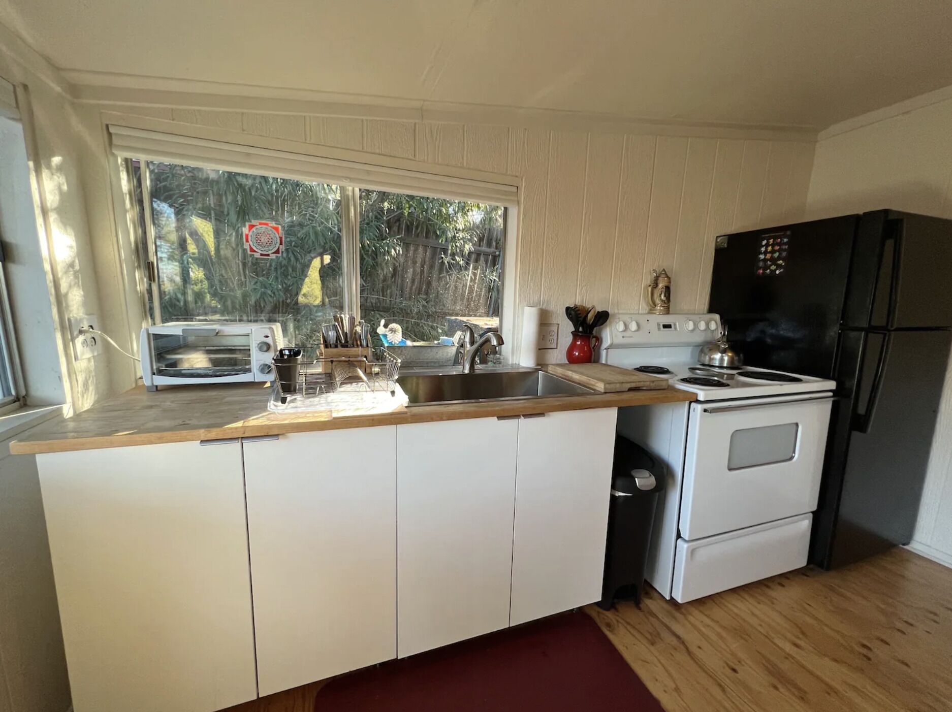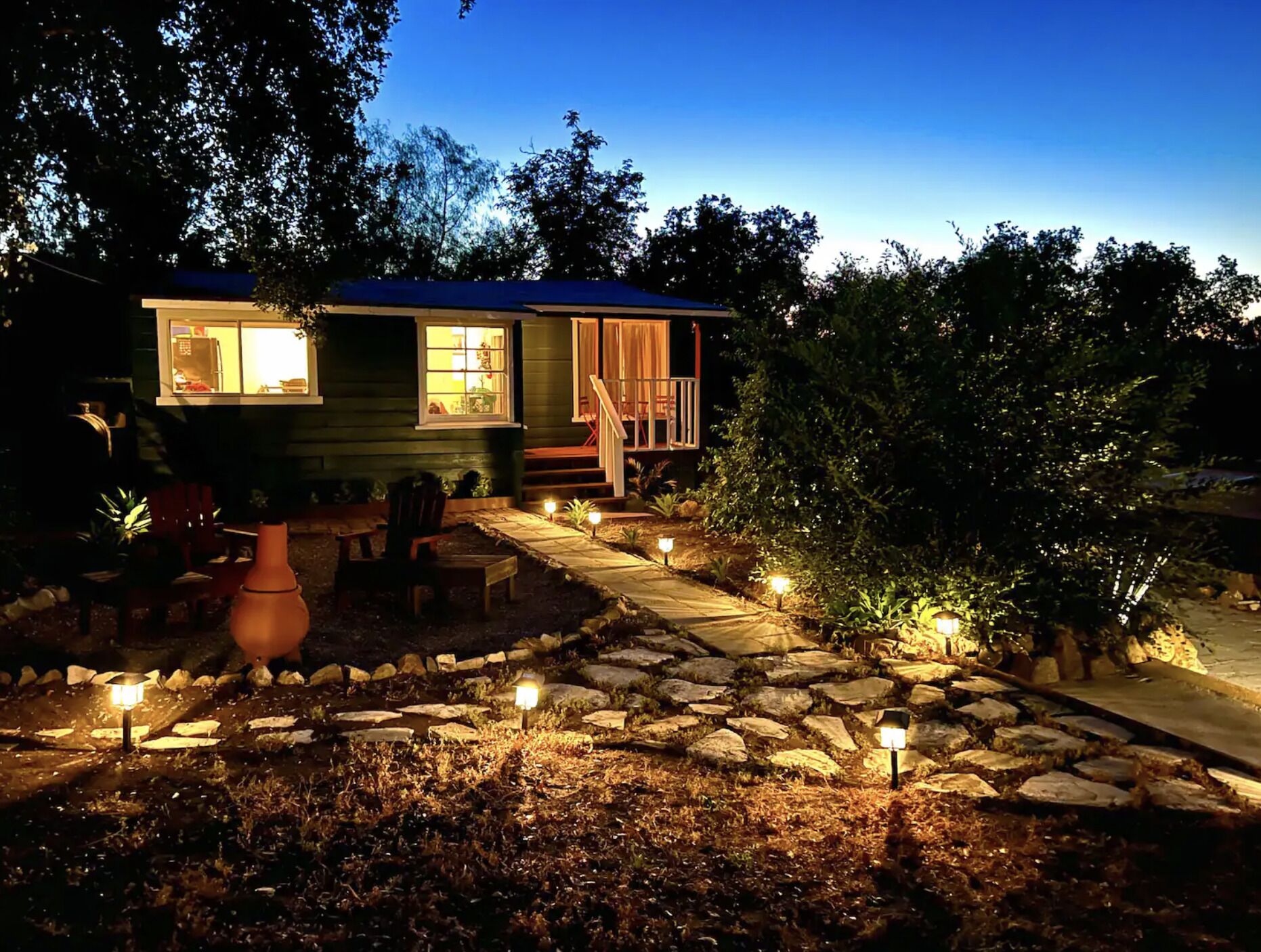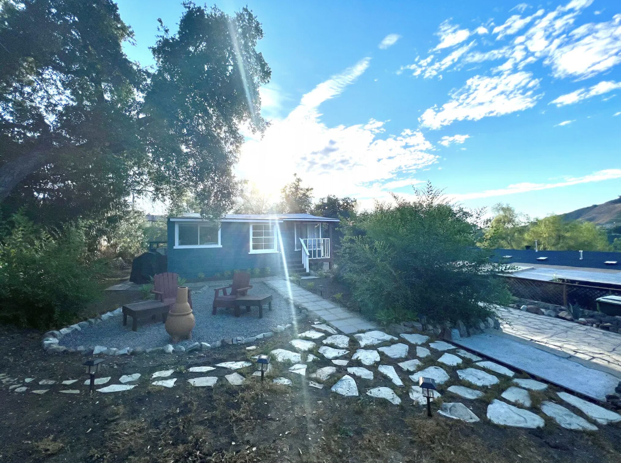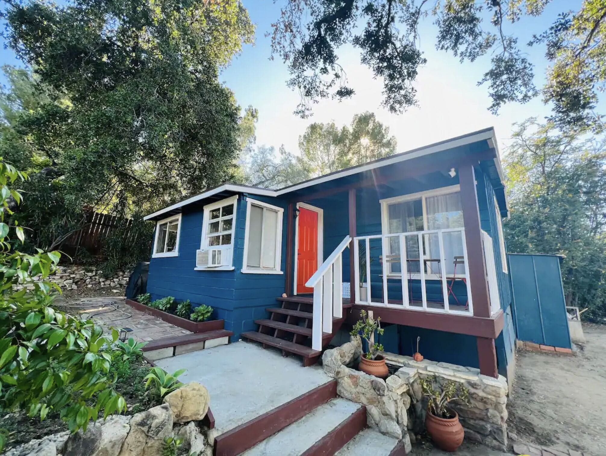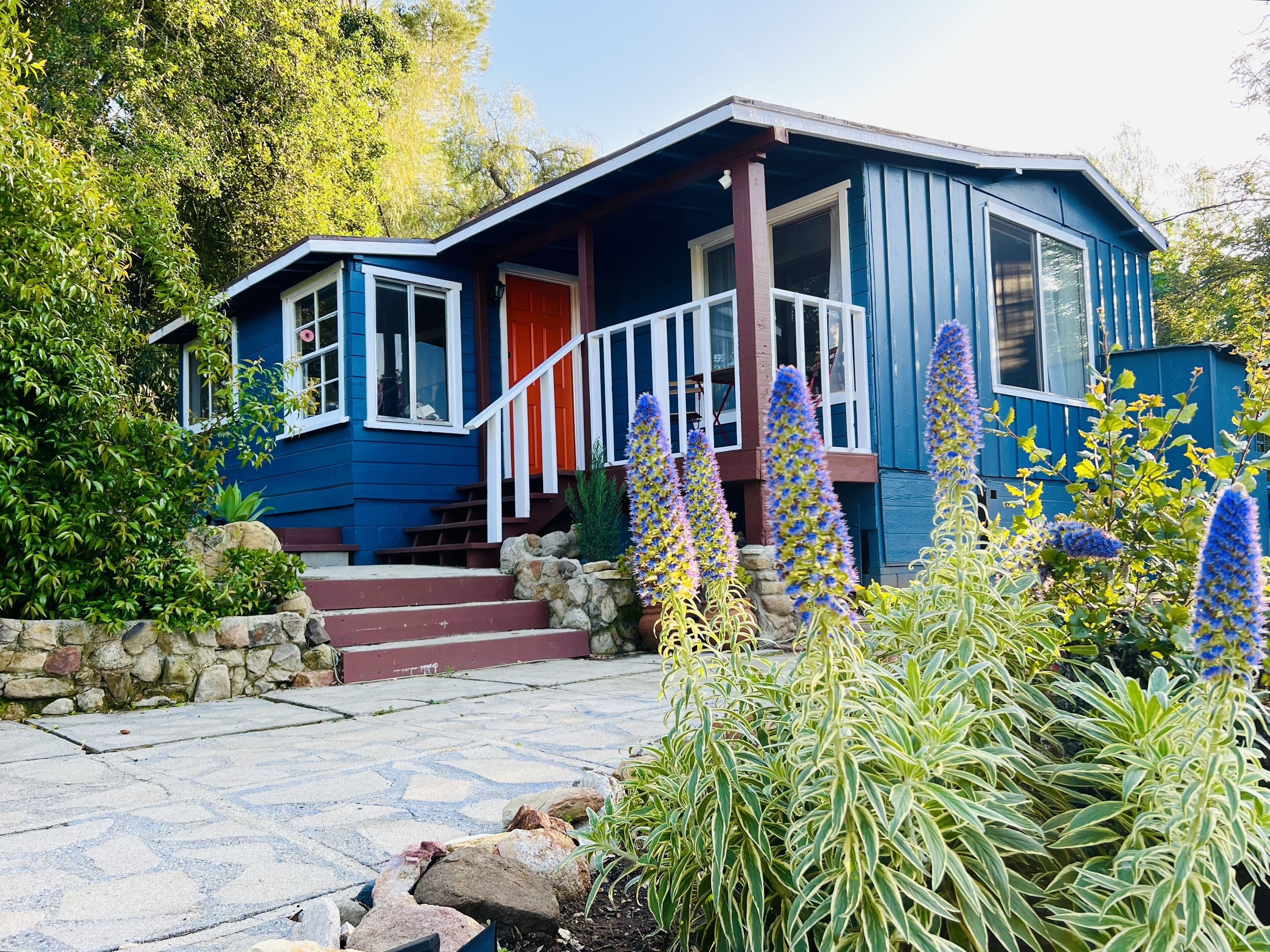 Cozy Cottage Getaway in the Mountains - 20 min from the beach! Take it easy at this unique and tranquil getaway hidden in the Santa Monica Mountains. Shake away the worries of the world and come relax just a stone's throw away from beautiful hiking/biking trails, the beach, and Old Topanga/Malibu.This peaceful one bedroom cozy "surf cottage" is perfect for escaping the hustle and bustle of the city, yet close enough to town for groceries and shopping (Warner Center/Topanga Mall/The Commons). Our quaint and cozy mountain cottage is just that: quaint and cozy. Nestled up at the foot of the Santa Monica mountains, you'll enjoy utter peace and quiet while being surrounded by trees and nature. Come unwind and relax!The house is 100 years old and has all the character to go with it! It's been updated to meet the weary traveler's needs:- Snuggle up and watch movies projected on our 80-inch pulldown screen or on the 65-inch TV in the bedroom (Amazon Fire Sticks on both ready with Netflix/HBO/Apple TV+/Prime Video)- Fully functional kitchen to cook meals (no microwave, but there is a toaster oven!)- Sit outside on one of the patios and enjoy the sunset and canyon mountain views. You'll love how secluded and tucked away the house is, surrounded by trees and the sounds of birds singing. - Many hiking trails are nearby. Either by foot or a short drive. Explore the Santa Monica mountains and all the beauty that comes with it!- Get cozy with a book and views of nature on the chaise lounge in the living room.- Comfy king-sized bed and television in the bedroom.- Propane+charcoal BBQ grill on the side of the house to cook up something tasty!- Washer and Dryer are outside with available detergent.- Long driveway for multiple cars with the house nestled far back into the property to give you some additional privacy.