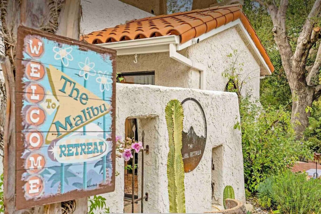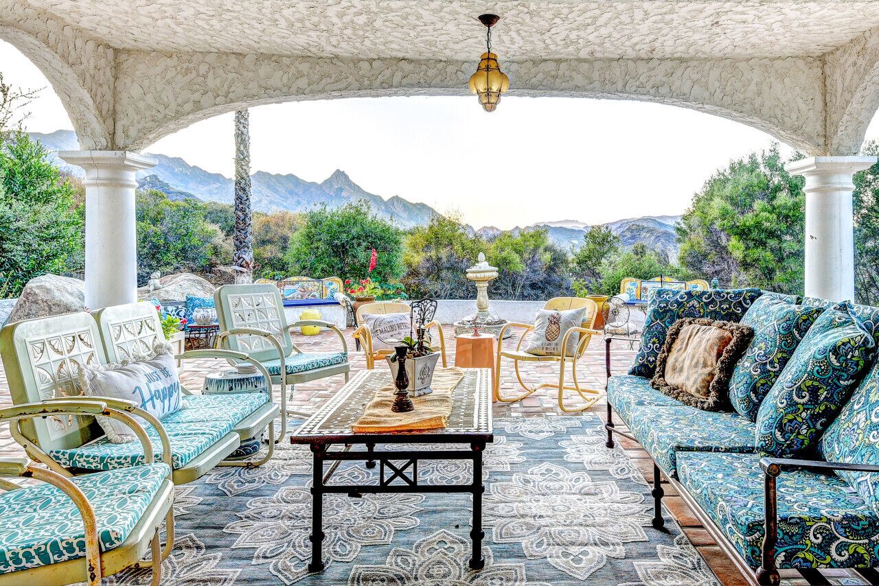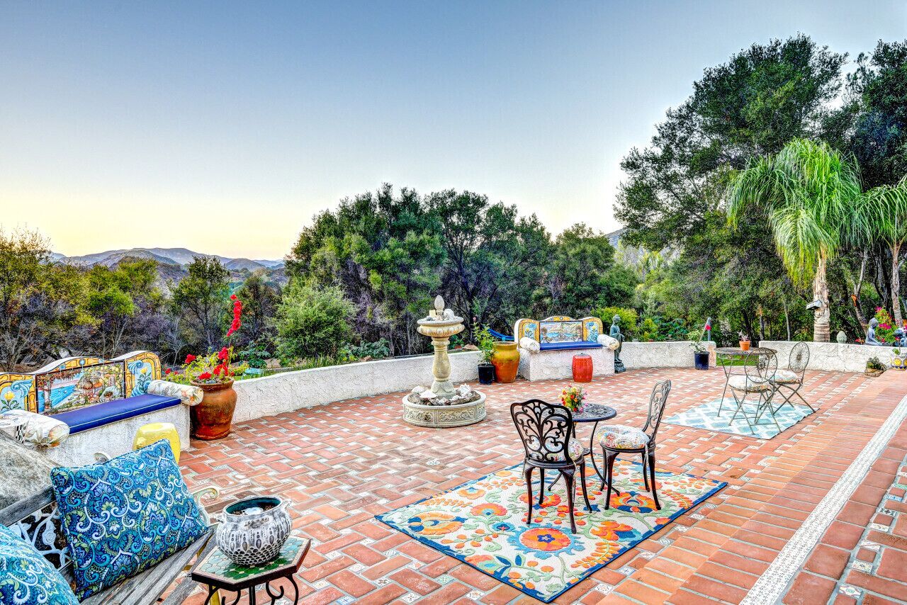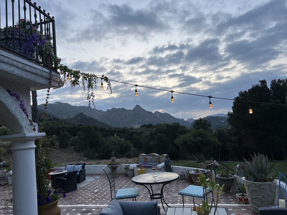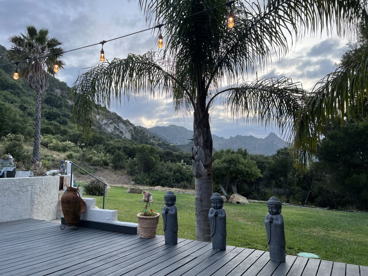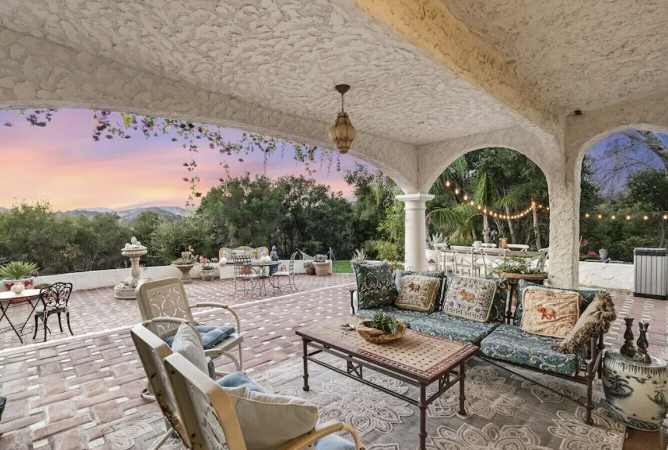 Private Compound Malibu Retreat Salt Pool Yoga The Malibu Retreat ‘s Main & Guest Houses are like staying at your own Private Resort with pool, Jacuzzi, Yoga Deck, Mediterranean Patios, Fire Pit, Ping Pong table & Glorious Mountain Views on 3 acres of beautiful land surrounded by peaceful nature. Property sleeps up to 23 & is great for families. Hiking trails, ocean breezes & legendary Saddle Peak Lodge in exclusive Monte Nido (home of the most influential families) adjacent to both Malibu & Calabasas. Relaxed Luxury with a Boho Chic vibe.The Award Winning Malibu Retreat includes BOTH the Main and Guest Houses on our 3 acre estate property for Vacations, Retreats, Productions, photo shoots, weddings & Exclusive Gatherings (all events on a case by case basis). Just send us the details of your dream plans & we'll give you the appropriate pricing. The Malibu Retreat provides about 5000 sq ft of indoor spaces on 3 acres of unparalleled magical sacred land. It feels which like a private resort for your family or friends to relax & retreat.The Main House is a cool Mediterranean style colorful, inspiring house w/:*4 large bedrooms* 3 full custom bathrooms (2 w/ heated Toto bidets), *2 balconies w/ views *3 real wood burning fireplaces, *A true “Conversation pit”*Gourmet, fully stocked kitchen w/ Viking double oven, food warmer & Sub Zero frig (plus a kitchenette in the GH)*Home Office w/ desks,Monitors, printer & 2 blazing fast Internet / WiFi’s *Indoor / outdoor living & dining rooms*Infinity Zen yoga deck w/ Yoga mats & blocks*Mediterranean patios w/ Positano Italy benches *Natural Bottom Heated Pool & Bubbling Jacuzzi (heat costs extra)*Natural Gas Fire pit*2 Stainless Steel BBQs* Pro Ping Pong Table* 7 New Smart TVs (w/ Netflix, Hulu, Amazon Prime, Showtime, HBO, Apple TV & Roku) * Lush Lawn w/ Hammocks* World-class Hiking Trails * Majestic California Oaks * Glorious Mountain Views* between Malibu’s famous Beaches & Calabasas in Exclusive neighborhood of Monte NidoMain House’s Gourmet custom kitchen:-Limestone Countertops, -Ann Sacks Handblown tiles -Viking double oven w/ 6 burner gas range & griddle-Viking food warmer-Sub-zero refrigerator-Retro stools for kitchen dining-large desk / buffet table-microwave -Toaster oven -multiple coffee pots -opens to Dining Room / Outdoor Living Room Conversation Pit Living room:-gathering place for everyone to gather w/a wood burning fireplacesZen Den: -Home Office w/ pottery barn desk w/ 2 monitors, wifi printer, docking station & office supplies. -yummy couch Primary Living room:-custom down couch -Sixpenny daybed -60 inch smart TV-wood burning fireplaceUpstairs Bedrooms in Main House:1) Shabby Chic Master: -private balcony w/ breathtaking views-Wood-burning fireplace-new king all organic mattress-mini frig-60 inch smart TV-ceiling fan w/colorful Hue lights -2 Shabby Chic Chairs-luxury sheets, pillows & down duvet Master ensuite bath:-tumbled Marble tiles-multi-jet rain shower shower w/ views -Toto bidet heated toilet -Kohler faucets-double vessel sinksAnthropologie Family Suite (sleeps 8 people… great kids room too!): -colorful artistic bedroom w/ 2 Queen beds, luxury sheets & down duvet -2 twin bunk beds in upstairs loft-smart TV-shared balcony-closet & bureau Santana Suite:-new king bed, luxury sheets & down duvet -new smart TV-desk & chair -Shared balconyShared upstairs bath w/ custom tiles, tub/shower & sinks w/ vanities both inside & outside of the bathroom Hawaiian Room (downstairs main house):-private patio -new Queen organic cooling mattress, luxury sheets & down duvet -closet & Bureau House of Blues bathroom (downstairs across the hall from Hawaiian bedroom) - cobalt blue wall vessel sink-tiled glass shower-heated bidet toilet seatAcross the driveway you’ll find the “Music Promoter Guest House”. There are Some dates where Guest House is booked or blocked. Please ASK when booking.Guest House details:1350 sq ft w/bedding for 9! -2 sides w/ open loft bedrooms-one w/ a queen bed -the other w/ 2 new twins, each w/ a trundle -3 more twins downstairs (1 with trundles) -Another living room, dining room, kitchenette & the property’s 4th bathroom. -2 flat screen Smart TVs -Harmon & Kardon 2 room, 4 speaker stereo w/ Bluetooth -Zen Soji screens-Gold & Platinum Records & autographed posters of Artists-Dining area -Retro Kitchenette (refrigerator & freezer, microwave, toaster oven & coffee maker). -Private Patio w/ propane BBQ grill w/ a burner, an outdoor dining table, seating area & utility sink - Leads to shared Pool & Jacuzzi areas -Designer bathroom has a showerOutdoor Pool Area:-35,000 gallon Natural Bottom Pool (which can be heated for extra)-Bubbling Jacuzzi (can be heated for extra) -Gas Fire Pit-Lounge Chairs & daybeds-Dining & Bistro seating -Hammocks-Natural Boulders, palm trees, mountain views -Multi-Level Mediterranean Patios, outdoor living room surrounded by stunning mountain views-handcrafted benches from Positano Italy-gas-fueled DCS BBQ-Protected oak grove -900 Sq Ft Zen Yoga Deck w/ Buddhas, Bamboo, Bougainvillea -Ping Pong table -7000 sq ft lush lawn -10,000 acres of parkland and hiking trails -upper and lower driveways for plenty of parking We DO host select gatherings, weddings, photo shoots, retreats & production locations for movies & music videos, but all of these types of bookings have different needs, parameters, rules, regulations & contracts. So if you’re planning for anything other than a vacation stay, feel free to reach out to us and include all of your needs & details outlined so we can give you the correct pricing to accommodate (if it’s possible). We are NOT a good fit for wild parties! We’re more like a quiet, beautiful, sanctuary.... For Liability Purposes, only registered guests are permitted on property at any time - so if you plan to have company, please include your guests in the total booking number. Important to know: We issue direct leases with our guests once you book here & we requ