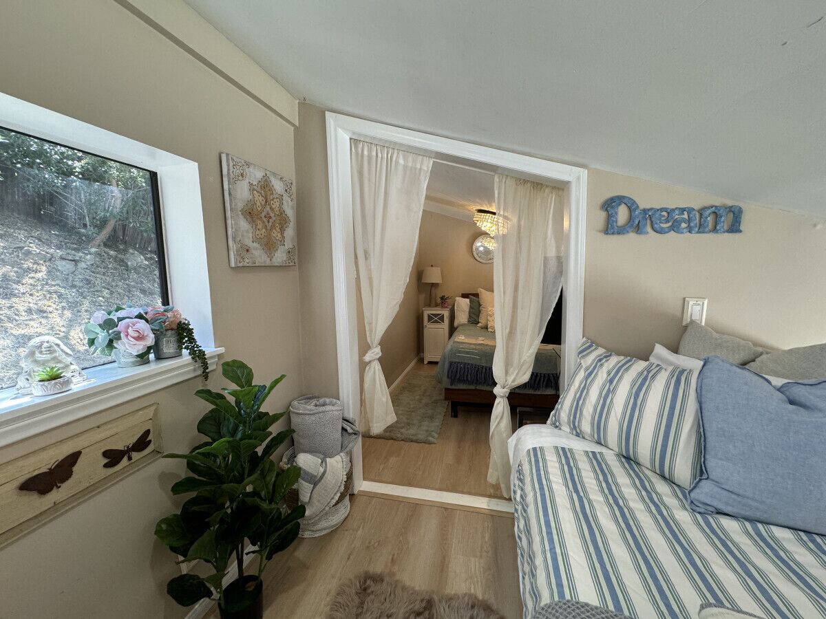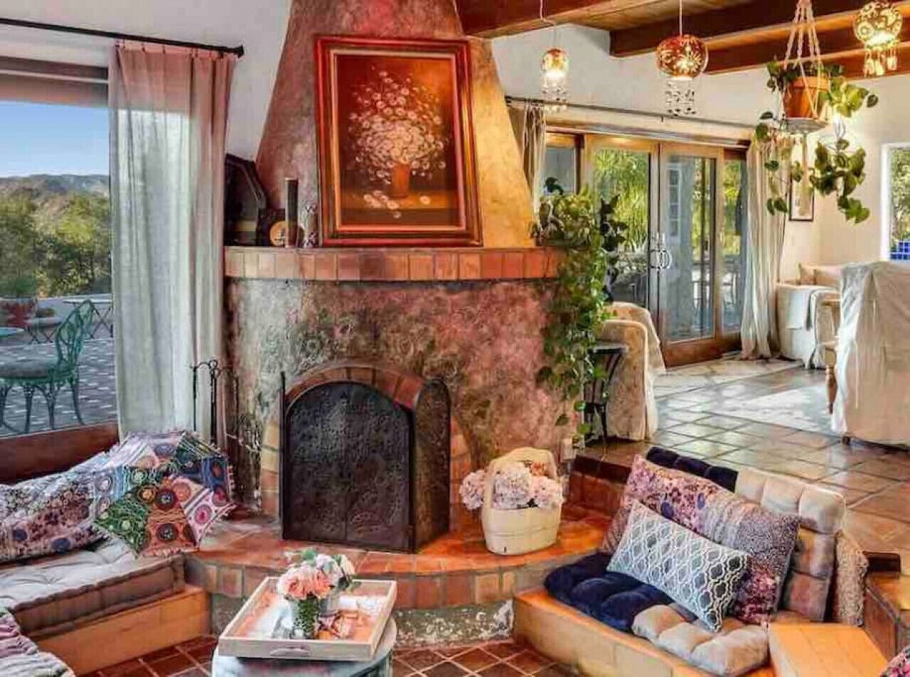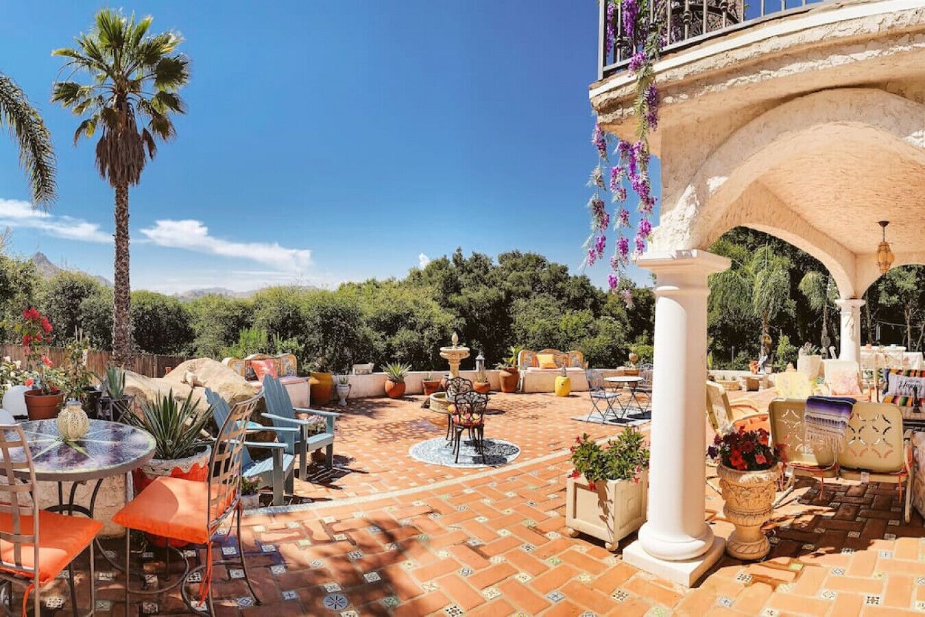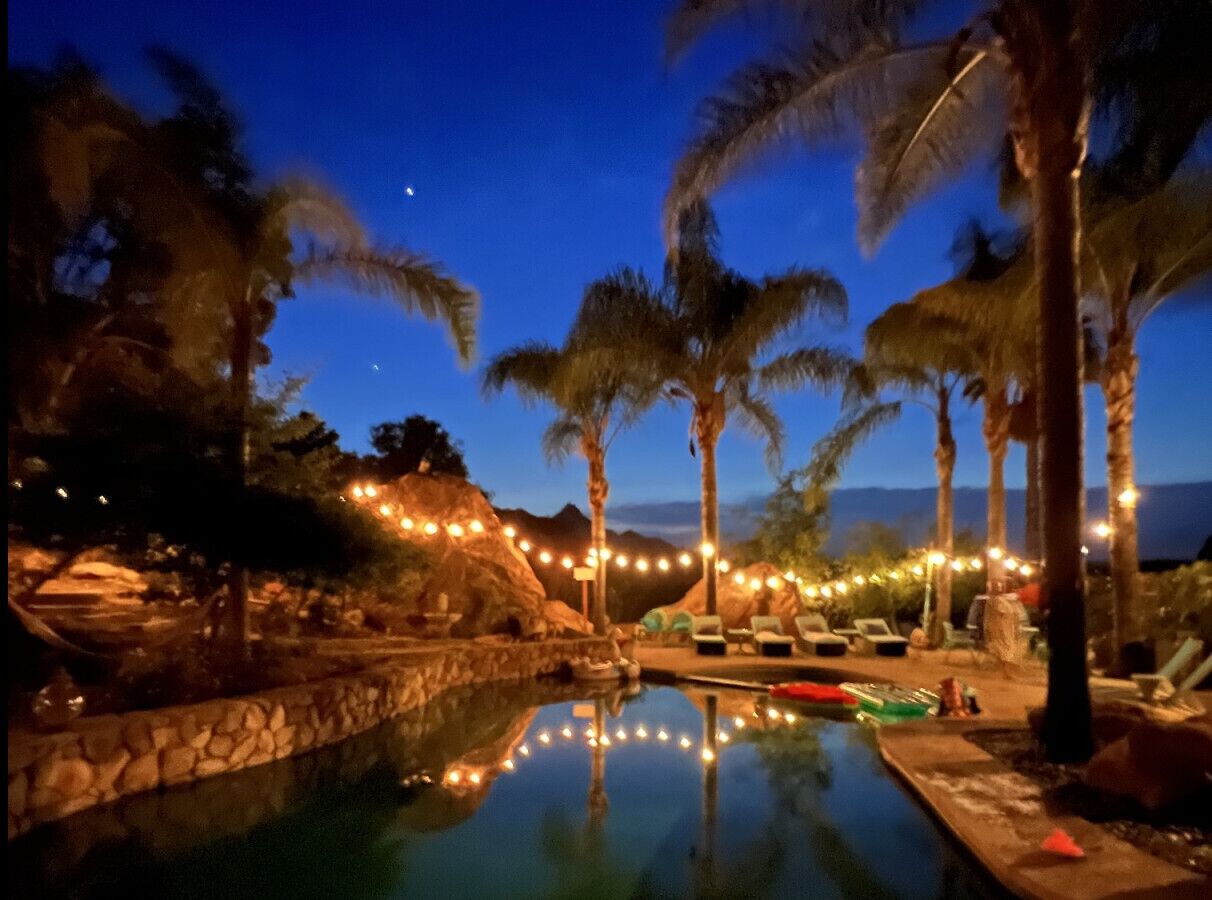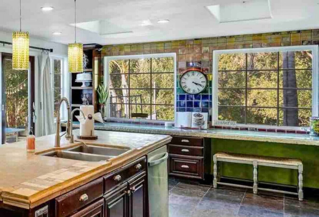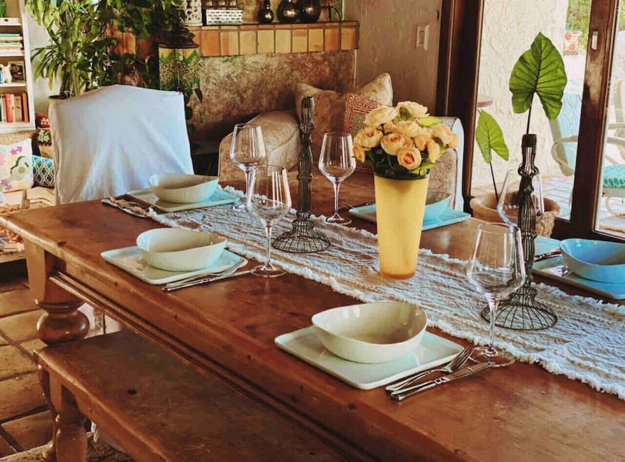 Private Compound Malibu Retreat Salt Pool Yoga The Malibu Retreat ‘s Main & Guest Houses are like staying at your own Private Resort with pool, Jacuzzi, Yoga Deck, Mediterranean Patios, Fire Pit, Ping Pong table & Glorious Mountain Views on 3 acres of beautiful land surrounded by peaceful nature. Property sleeps up to 23 & is great for families. Hiking trails, ocean breezes & legendary Saddle Peak Lodge in exclusive Monte Nido (home of the most influential families) adjacent to both Malibu & Calabasas. Relaxed Luxury with a Boho Chic vibe.The Award Winning Malibu Retreat includes BOTH the Main and Guest Houses on our 3 acre estate property for Vacations, Retreats, Productions, photo shoots, weddings & Exclusive Gatherings (all events on a case by case basis). Just send us the details of your dream plans & we'll give you the appropriate pricing. The Malibu Retreat provides about 5000 sq ft of indoor spaces on 3 acres of unparalleled magical sacred land. It feels which like a private resort for your family or friends to relax & retreat.The Main House is a cool Mediterranean style colorful, inspiring house w/:*4 large bedrooms* 3 full custom bathrooms (2 w/ heated Toto bidets), *2 balconies w/ views *3 real wood burning fireplaces, *A true “Conversation pit”*Gourmet, fully stocked kitchen w/ Viking double oven, food warmer & Sub Zero frig (plus a kitchenette in the GH)*Home Office w/ desks,Monitors, printer & 2 blazing fast Internet / WiFi’s *Indoor / outdoor living & dining rooms*Infinity Zen yoga deck w/ Yoga mats & blocks*Mediterranean patios w/ Positano Italy benches *Natural Bottom Heated Pool & Bubbling Jacuzzi (heat costs extra)*Natural Gas Fire pit*2 Stainless Steel BBQs* Pro Ping Pong Table* 7 New Smart TVs (w/ Netflix, Hulu, Amazon Prime, Showtime, HBO, Apple TV & Roku) * Lush Lawn w/ Hammocks* World-class Hiking Trails * Majestic California Oaks * Glorious Mountain Views* between Malibu’s famous Beaches & Calabasas in Exclusive neighborhood of Monte NidoMain House’s Gourmet custom kitchen:-Limestone Countertops, -Ann Sacks Handblown tiles -Viking double oven w/ 6 burner gas range & griddle-Viking food warmer-Sub-zero refrigerator-Retro stools for kitchen dining-large desk / buffet table-microwave -Toaster oven -multiple coffee pots -opens to Dining Room / Outdoor Living Room Conversation Pit Living room:-gathering place for everyone to gather w/a wood burning fireplacesZen Den: -Home Office w/ pottery barn desk w/ 2 monitors, wifi printer, docking station & office supplies. -yummy couch Primary Living room:-custom down couch -Sixpenny daybed -60 inch smart TV-wood burning fireplaceUpstairs Bedrooms in Main House:1) Shabby Chic Master: -private balcony w/ breathtaking views-Wood-burning fireplace-new king all organic mattress-mini frig-60 inch smart TV-ceiling fan w/colorful Hue lights -2 Shabby Chic Chairs-luxury sheets, pillows & down duvet Master ensuite bath:-tumbled Marble tiles-multi-jet rain shower shower w/ views -Toto bidet heated toilet -Kohler faucets-double vessel sinksAnthropologie Family Suite (sleeps 8 people… great kids room too!): -colorful artistic bedroom w/ 2 Queen beds, luxury sheets & down duvet -2 twin bunk beds in upstairs loft-smart TV-shared balcony-closet & bureau Santana Suite:-new king bed, luxury sheets & down duvet -new smart TV-desk & chair -Shared balconyShared upstairs bath w/ custom tiles, tub/shower & sinks w/ vanities both inside & outside of the bathroom Hawaiian Room (downstairs main house):-private patio -new Queen organic cooling mattress, luxury sheets & down duvet -closet & Bureau House of Blues bathroom (downstairs across the hall from Hawaiian bedroom) - cobalt blue wall vessel sink-tiled glass shower-heated bidet toilet seatAcross the driveway you’ll find the “Music Promoter Guest House”. There are Some dates where Guest House is booked or blocked. Please ASK when booking.Guest House details:1350 sq ft w/bedding for 9! -2 sides w/ open loft bedrooms-one w/ a queen bed -the other w/ 2 new twins, each w/ a trundle -3 more twins downstairs (1 with trundles) -Another living room, dining room, kitchenette & the property’s 4th bathroom. -2 flat screen Smart TVs -Harmon & Kardon 2 room, 4 speaker stereo w/ Bluetooth -Zen Soji screens-Gold & Platinum Records & autographed posters of Artists-Dining area -Retro Kitchenette (refrigerator & freezer, microwave, toaster oven & coffee maker). -Private Patio w/ propane BBQ grill w/ a burner, an outdoor dining table, seating area & utility sink - Leads to shared Pool & Jacuzzi areas -Designer bathroom has a showerOutdoor Pool Area:-35,000 gallon Natural Bottom Pool (which can be heated for extra)-Bubbling Jacuzzi (can be heated for extra) -Gas Fire Pit-Lounge Chairs & daybeds-Dining & Bistro seating -Hammocks-Natural Boulders, palm trees, mountain views -Multi-Level Mediterranean Patios, outdoor living room surrounded by stunning mountain views-handcrafted benches from Positano Italy-gas-fueled DCS BBQ-Protected oak grove -900 Sq Ft Zen Yoga Deck w/ Buddhas, Bamboo, Bougainvillea -Ping Pong table -7000 sq ft lush lawn -10,000 acres of parkland and hiking trails -upper and lower driveways for plenty of parking We DO host select gatherings, weddings, photo shoots, retreats & production locations for movies & music videos, but all of these types of bookings have different needs, parameters, rules, regulations & contracts. So if you’re planning for anything other than a vacation stay, feel free to reach out to us and include all of your needs & details outlined so we can give you the correct pricing to accommodate (if it’s possible). We are NOT a good fit for wild parties! We’re more like a quiet, beautiful, sanctuary.... For Liability Purposes, only registered guests are permitted on property at any time - so if you plan to have company, please include your guests in the total booking number. Important to know: We issue direct leases with our guests once you book here & we requ