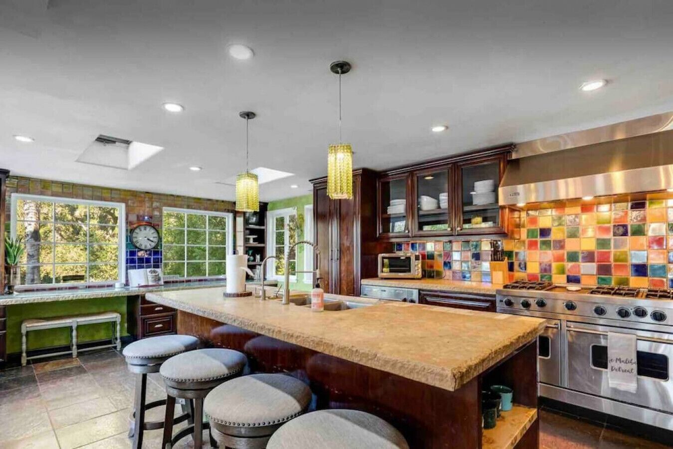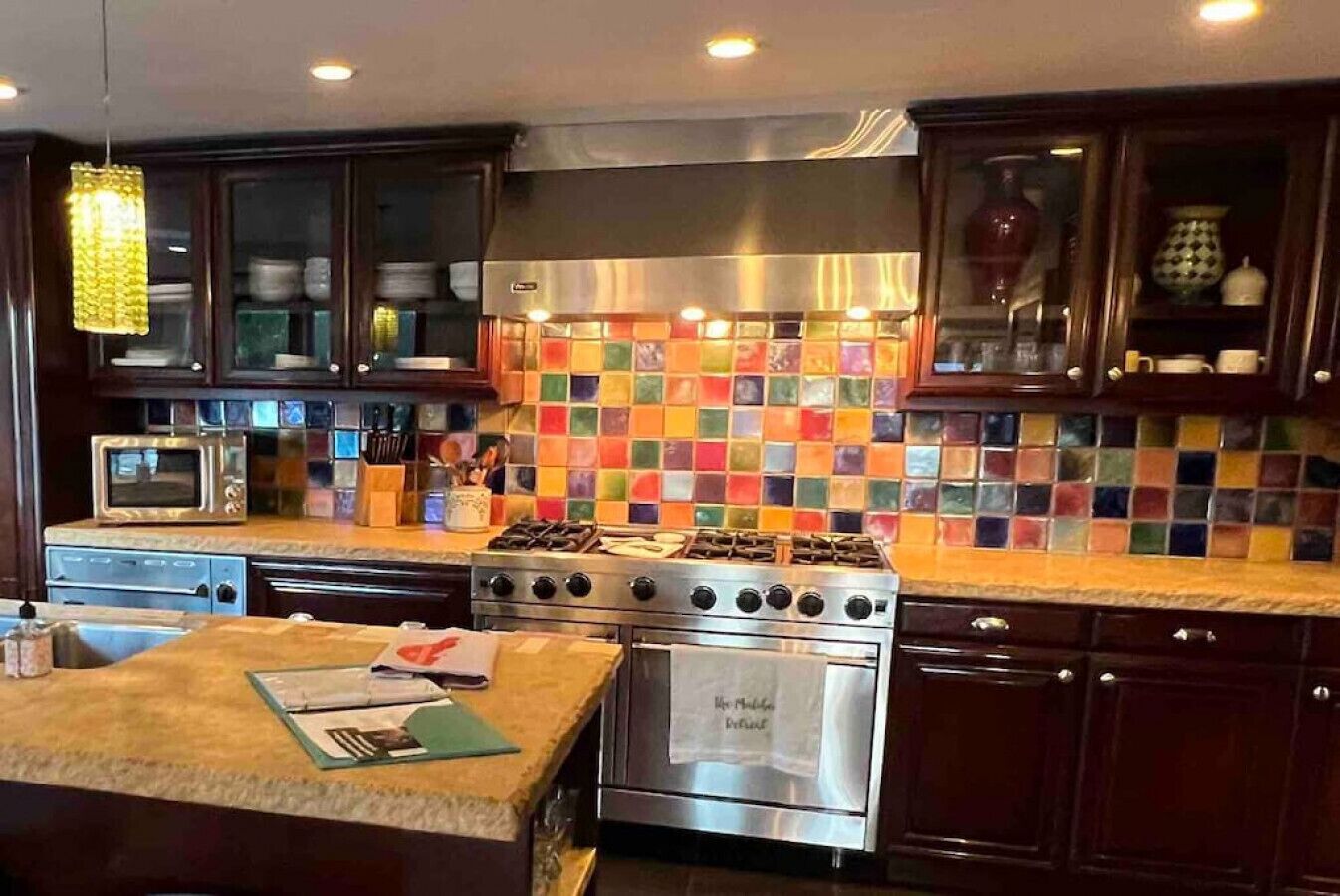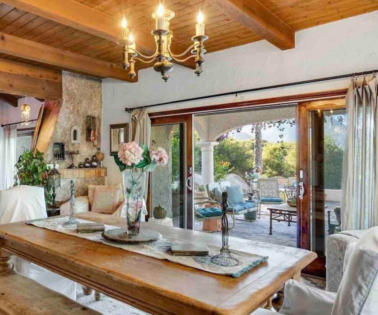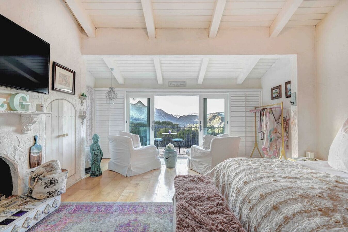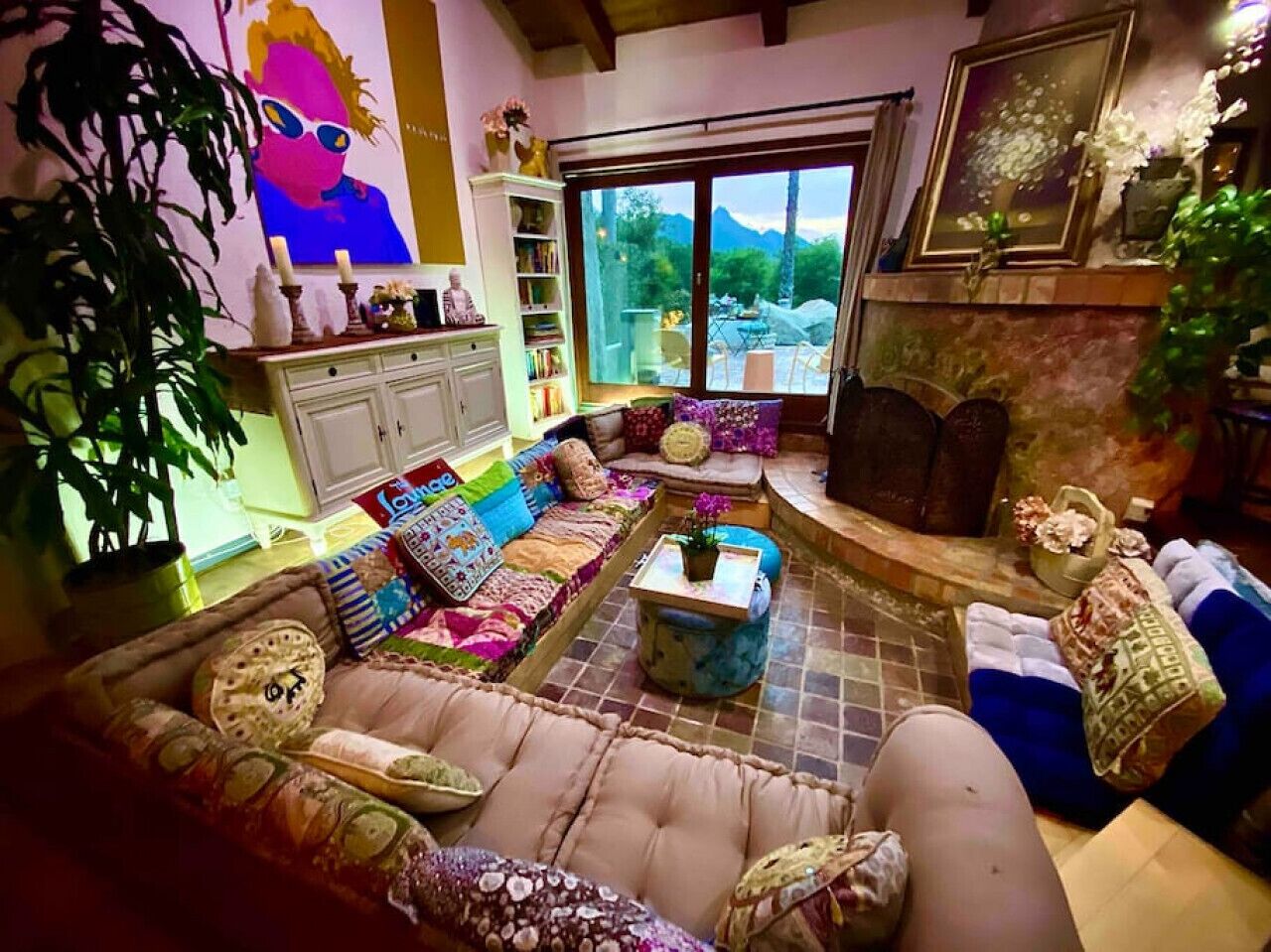 Private Compound Malibu Retreat Salt Pool Yoga The Malibu Retreat ‘s Main & Guest Houses are like staying at your own Private Resort with pool, Jacuzzi, Yoga Deck, Mediterranean Patios, Fire Pit, Ping Pong table & Glorious Mountain Views on 3 acres of beautiful land surrounded by peaceful nature. Property sleeps up to 23 & is great for families. Hiking trails, ocean breezes & legendary Saddle Peak Lodge in exclusive Monte Nido (home of the most influential families) adjacent to both Malibu & Calabasas. Relaxed Luxury with a Boho Chic vibe.The Award Winning Malibu Retreat includes BOTH the Main and Guest Houses on our 3 acre estate property for Vacations, Retreats, Productions, photo shoots, weddings & Exclusive Gatherings (all events on a case by case basis). Just send us the details of your dream plans & we'll give you the appropriate pricing. The Malibu Retreat provides about 5000 sq ft of indoor spaces on 3 acres of unparalleled magical sacred land. It feels which like a private resort for your family or friends to relax & retreat.The Main House is a cool Mediterranean style colorful, inspiring house w/:*4 large bedrooms* 3 full custom bathrooms (2 w/ heated Toto bidets), *2 balconies w/ views *3 real wood burning fireplaces, *A true “Conversation pit”*Gourmet, fully stocked kitchen w/ Viking double oven, food warmer & Sub Zero frig (plus a kitchenette in the GH)*Home Office w/ desks,Monitors, printer & 2 blazing fast Internet / WiFi’s *Indoor / outdoor living & dining rooms*Infinity Zen yoga deck w/ Yoga mats & blocks*Mediterranean patios w/ Positano Italy benches *Natural Bottom Heated Pool & Bubbling Jacuzzi (heat costs extra)*Natural Gas Fire pit*2 Stainless Steel BBQs* Pro Ping Pong Table* 7 New Smart TVs (w/ Netflix, Hulu, Amazon Prime, Showtime, HBO, Apple TV & Roku) * Lush Lawn w/ Hammocks* World-class Hiking Trails * Majestic California Oaks * Glorious Mountain Views* between Malibu’s famous Beaches & Calabasas in Exclusive neighborhood of Monte NidoMain House’s Gourmet custom kitchen:-Limestone Countertops, -Ann Sacks Handblown tiles -Viking double oven w/ 6 burner gas range & griddle-Viking food warmer-Sub-zero refrigerator-Retro stools for kitchen dining-large desk / buffet table-microwave -Toaster oven -multiple coffee pots -opens to Dining Room / Outdoor Living Room Conversation Pit Living room:-gathering place for everyone to gather w/a wood burning fireplacesZen Den: -Home Office w/ pottery barn desk w/ 2 monitors, wifi printer, docking station & office supplies. -yummy couch Primary Living room:-custom down couch -Sixpenny daybed -60 inch smart TV-wood burning fireplaceUpstairs Bedrooms in Main House:1) Shabby Chic Master: -private balcony w/ breathtaking views-Wood-burning fireplace-new king all organic mattress-mini frig-60 inch smart TV-ceiling fan w/colorful Hue lights -2 Shabby Chic Chairs-luxury sheets, pillows & down duvet Master ensuite bath:-tumbled Marble tiles-multi-jet rain shower shower w/ views -Toto bidet heated toilet -Kohler faucets-double vessel sinksAnthropologie Family Suite (sleeps 8 people… great kids room too!): -colorful artistic bedroom w/ 2 Queen beds, luxury sheets & down duvet -2 twin bunk beds in upstairs loft-smart TV-shared balcony-closet & bureau Santana Suite:-new king bed, luxury sheets & down duvet -new smart TV-desk & chair -Shared balconyShared upstairs bath w/ custom tiles, tub/shower & sinks w/ vanities both inside & outside of the bathroom Hawaiian Room (downstairs main house):-private patio -new Queen organic cooling mattress, luxury sheets & down duvet -closet & Bureau House of Blues bathroom (downstairs across the hall from Hawaiian bedroom) - cobalt blue wall vessel sink-tiled glass shower-heated bidet toilet seatAcross the driveway you’ll find the “Music Promoter Guest House”. There are Some dates where Guest House is booked or blocked. Please ASK when booking.Guest House details:1350 sq ft w/bedding for 9! -2 sides w/ open loft bedrooms-one w/ a queen bed -the other w/ 2 new twins, each w/ a trundle -3 more twins downstairs (1 with trundles) -Another living room, dining room, kitchenette & the property’s 4th bathroom. -2 flat screen Smart TVs -Harmon & Kardon 2 room, 4 speaker stereo w/ Bluetooth -Zen Soji screens-Gold & Platinum Records & autographed posters of Artists-Dining area -Retro Kitchenette (refrigerator & freezer, microwave, toaster oven & coffee maker). -Private Patio w/ propane BBQ grill w/ a burner, an outdoor dining table, seating area & utility sink - Leads to shared Pool & Jacuzzi areas -Designer bathroom has a showerOutdoor Pool Area:-35,000 gallon Natural Bottom Pool (which can be heated for extra)-Bubbling Jacuzzi (can be heated for extra) -Gas Fire Pit-Lounge Chairs & daybeds-Dining & Bistro seating -Hammocks-Natural Boulders, palm trees, mountain views -Multi-Level Mediterranean Patios, outdoor living room surrounded by stunning mountain views-handcrafted benches from Positano Italy-gas-fueled DCS BBQ-Protected oak grove -900 Sq Ft Zen Yoga Deck w/ Buddhas, Bamboo, Bougainvillea -Ping Pong table -7000 sq ft lush lawn -10,000 acres of parkland and hiking trails -upper and lower driveways for plenty of parking We DO host select gatherings, weddings, photo shoots, retreats & production locations for movies & music videos, but all of these types of bookings have different needs, parameters, rules, regulations & contracts. So if you’re planning for anything other than a vacation stay, feel free to reach out to us and include all of your needs & details outlined so we can give you the correct pricing to accommodate (if it’s possible). We are NOT a good fit for wild parties! We’re more like a quiet, beautiful, sanctuary.... For Liability Purposes, only registered guests are permitted on property at any time - so if you plan to have company, please include your guests in the total booking number. Important to know: We issue direct leases with our guests once you book here & we requ