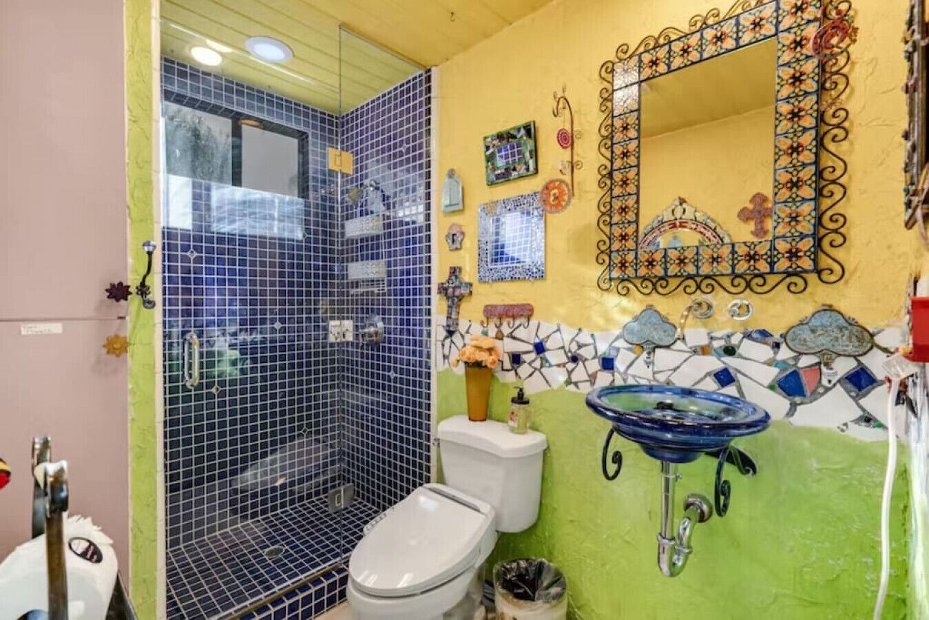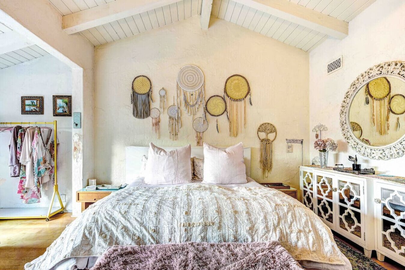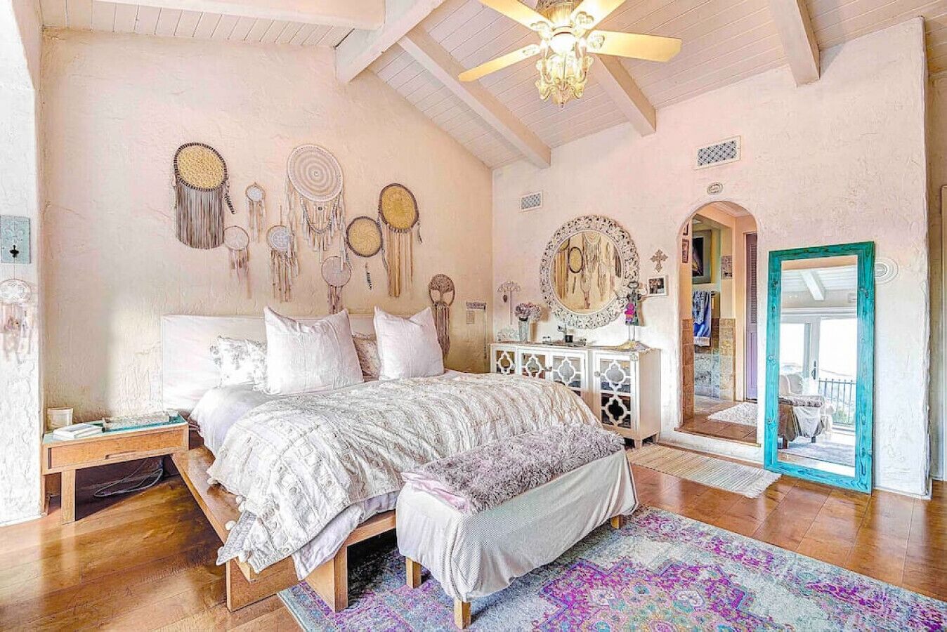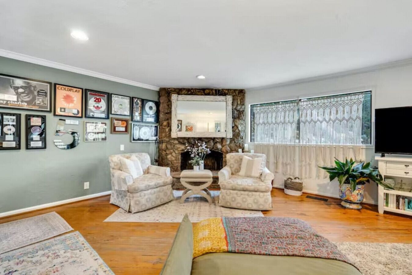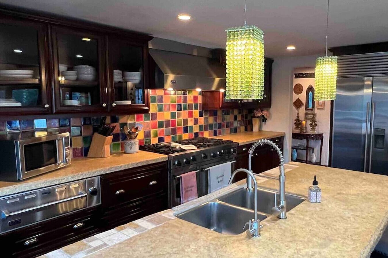 Private Compound Malibu Retreat Salt Pool Yoga The Malibu Retreat ‘s Main & Guest Houses are like staying at your own Private Resort with pool, Jacuzzi, Yoga Deck, Mediterranean Patios, Fire Pit, Ping Pong table & Glorious Mountain Views on 3 acres of beautiful land surrounded by peaceful nature. Property sleeps up to 23 & is great for families. Hiking trails, ocean breezes & legendary Saddle Peak Lodge in exclusive Monte Nido (home of the most influential families) adjacent to both Malibu & Calabasas. Relaxed Luxury with a Boho Chic vibe.The Award Winning Malibu Retreat includes BOTH the Main and Guest Houses on our 3 acre estate property for Vacations, Retreats, Productions, photo shoots, weddings & Exclusive Gatherings (all events on a case by case basis). Just send us the details of your dream plans & we'll give you the appropriate pricing. The Malibu Retreat provides about 5000 sq ft of indoor spaces on 3 acres of unparalleled magical sacred land. It feels which like a private resort for your family or friends to relax & retreat.The Main House is a cool Mediterranean style colorful, inspiring house w/:*4 large bedrooms* 3 full custom bathrooms (2 w/ heated Toto bidets), *2 balconies w/ views *3 real wood burning fireplaces, *A true “Conversation pit”*Gourmet, fully stocked kitchen w/ Viking double oven, food warmer & Sub Zero frig (plus a kitchenette in the GH)*Home Office w/ desks,Monitors, printer & 2 blazing fast Internet / WiFi’s *Indoor / outdoor living & dining rooms*Infinity Zen yoga deck w/ Yoga mats & blocks*Mediterranean patios w/ Positano Italy benches *Natural Bottom Heated Pool & Bubbling Jacuzzi (heat costs extra)*Natural Gas Fire pit*2 Stainless Steel BBQs* Pro Ping Pong Table* 7 New Smart TVs (w/ Netflix, Hulu, Amazon Prime, Showtime, HBO, Apple TV & Roku) * Lush Lawn w/ Hammocks* World-class Hiking Trails * Majestic California Oaks * Glorious Mountain Views* between Malibu’s famous Beaches & Calabasas in Exclusive neighborhood of Monte NidoMain House’s Gourmet custom kitchen:-Limestone Countertops, -Ann Sacks Handblown tiles -Viking double oven w/ 6 burner gas range & griddle-Viking food warmer-Sub-zero refrigerator-Retro stools for kitchen dining-large desk / buffet table-microwave -Toaster oven -multiple coffee pots -opens to Dining Room / Outdoor Living Room Conversation Pit Living room:-gathering place for everyone to gather w/a wood burning fireplacesZen Den: -Home Office w/ pottery barn desk w/ 2 monitors, wifi printer, docking station & office supplies. -yummy couch Primary Living room:-custom down couch -Sixpenny daybed -60 inch smart TV-wood burning fireplaceUpstairs Bedrooms in Main House:1) Shabby Chic Master: -private balcony w/ breathtaking views-Wood-burning fireplace-new king all organic mattress-mini frig-60 inch smart TV-ceiling fan w/colorful Hue lights -2 Shabby Chic Chairs-luxury sheets, pillows & down duvet Master ensuite bath:-tumbled Marble tiles-multi-jet rain shower shower w/ views -Toto bidet heated toilet -Kohler faucets-double vessel sinksAnthropologie Family Suite (sleeps 8 people… great kids room too!): -colorful artistic bedroom w/ 2 Queen beds, luxury sheets & down duvet -2 twin bunk beds in upstairs loft-smart TV-shared balcony-closet & bureau Santana Suite:-new king bed, luxury sheets & down duvet -new smart TV-desk & chair -Shared balconyShared upstairs bath w/ custom tiles, tub/shower & sinks w/ vanities both inside & outside of the bathroom Hawaiian Room (downstairs main house):-private patio -new Queen organic cooling mattress, luxury sheets & down duvet -closet & Bureau House of Blues bathroom (downstairs across the hall from Hawaiian bedroom) - cobalt blue wall vessel sink-tiled glass shower-heated bidet toilet seatAcross the driveway you’ll find the “Music Promoter Guest House”. There are Some dates where Guest House is booked or blocked. Please ASK when booking.Guest House details:1350 sq ft w/bedding for 9! -2 sides w/ open loft bedrooms-one w/ a queen bed -the other w/ 2 new twins, each w/ a trundle -3 more twins downstairs (1 with trundles) -Another living room, dining room, kitchenette & the property’s 4th bathroom. -2 flat screen Smart TVs -Harmon & Kardon 2 room, 4 speaker stereo w/ Bluetooth -Zen Soji screens-Gold & Platinum Records & autographed posters of Artists-Dining area -Retro Kitchenette (refrigerator & freezer, microwave, toaster oven & coffee maker). -Private Patio w/ propane BBQ grill w/ a burner, an outdoor dining table, seating area & utility sink - Leads to shared Pool & Jacuzzi areas -Designer bathroom has a showerOutdoor Pool Area:-35,000 gallon Natural Bottom Pool (which can be heated for extra)-Bubbling Jacuzzi (can be heated for extra) -Gas Fire Pit-Lounge Chairs & daybeds-Dining & Bistro seating -Hammocks-Natural Boulders, palm trees, mountain views -Multi-Level Mediterranean Patios, outdoor living room surrounded by stunning mountain views-handcrafted benches from Positano Italy-gas-fueled DCS BBQ-Protected oak grove -900 Sq Ft Zen Yoga Deck w/ Buddhas, Bamboo, Bougainvillea -Ping Pong table -7000 sq ft lush lawn -10,000 acres of parkland and hiking trails -upper and lower driveways for plenty of parking We DO host select gatherings, weddings, photo shoots, retreats & production locations for movies & music videos, but all of these types of bookings have different needs, parameters, rules, regulations & contracts. So if you’re planning for anything other than a vacation stay, feel free to reach out to us and include all of your needs & details outlined so we can give you the correct pricing to accommodate (if it’s possible). We are NOT a good fit for wild parties! We’re more like a quiet, beautiful, sanctuary.... For Liability Purposes, only registered guests are permitted on property at any time - so if you plan to have company, please include your guests in the total booking number. Important to know: We issue direct leases with our guests once you book here & we requ