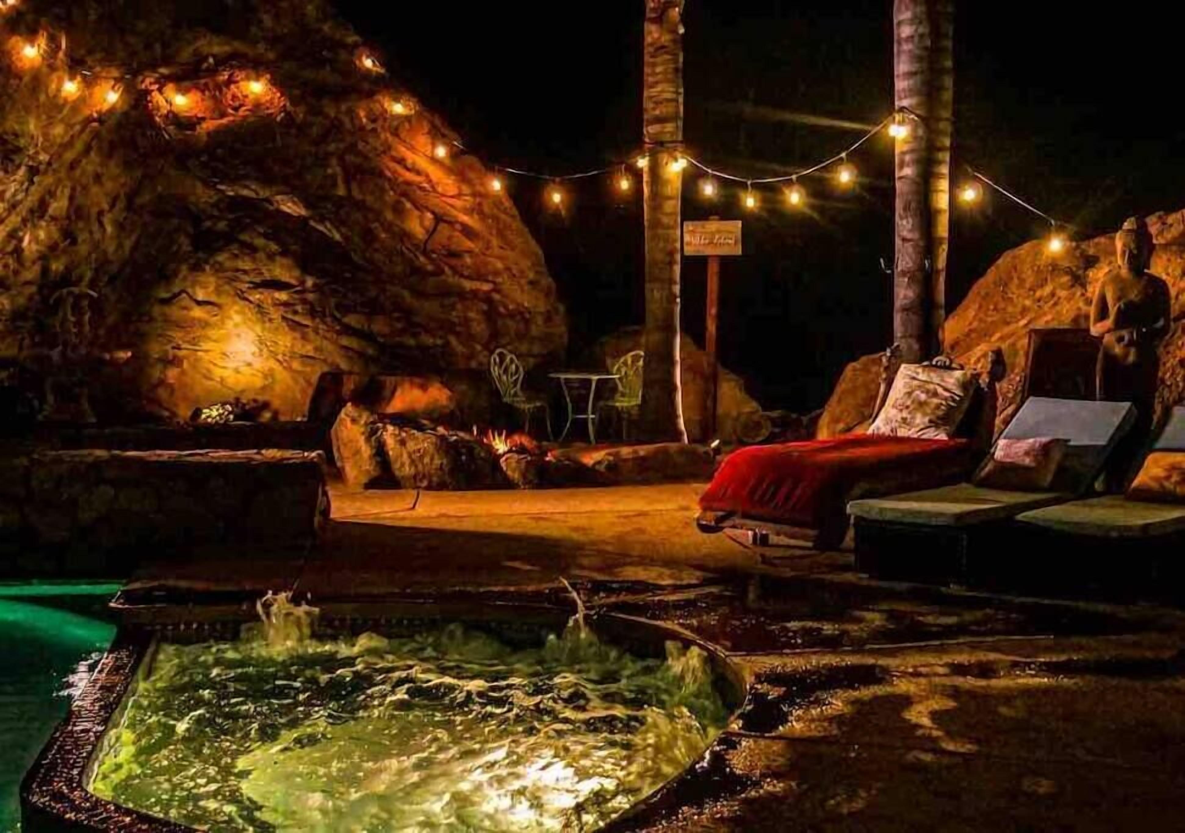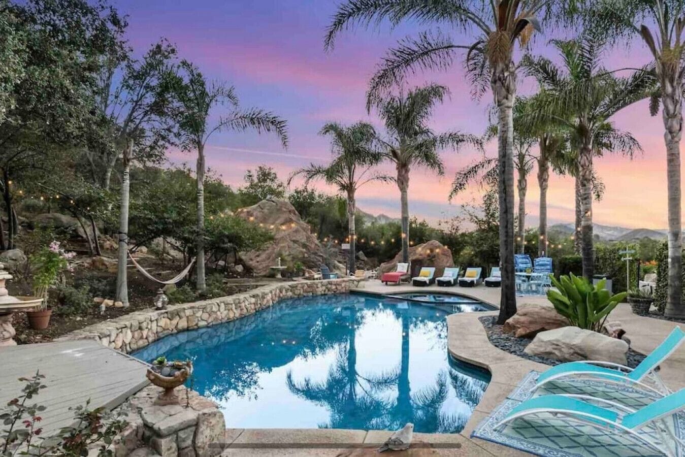 Private Compound Malibu Retreat Salt Pool Yoga The Malibu Retreat ‘s Main & Guest Houses are like staying at your own Private Resort with pool, Jacuzzi, Yoga Deck, Mediterranean Patios, Fire Pit, Ping Pong table & Glorious Mountain Views on 3 acres of beautiful land surrounded by peaceful nature. Property sleeps up to 23 & is great for families. Hiking trails, ocean breezes & legendary Saddle Pe...
