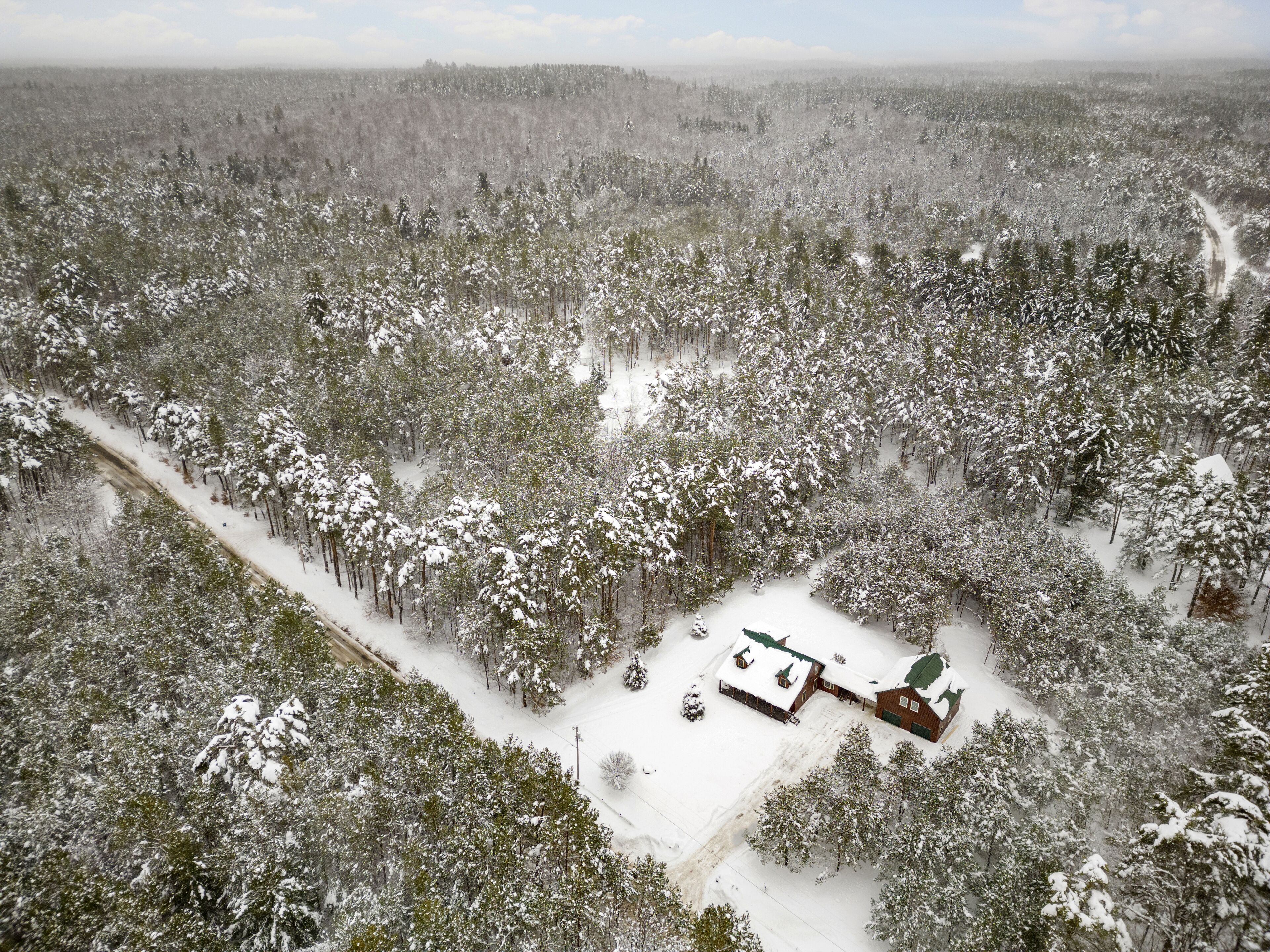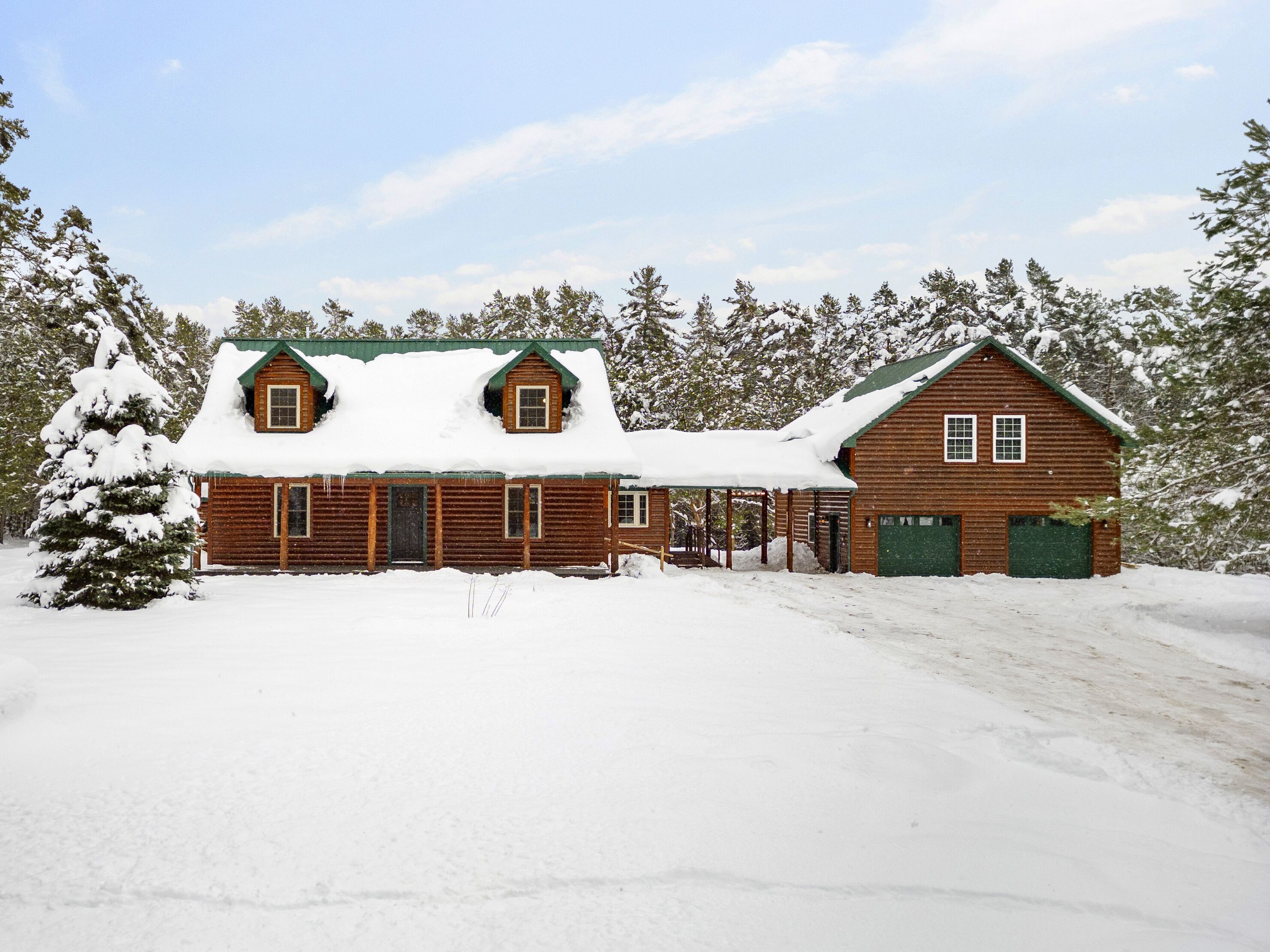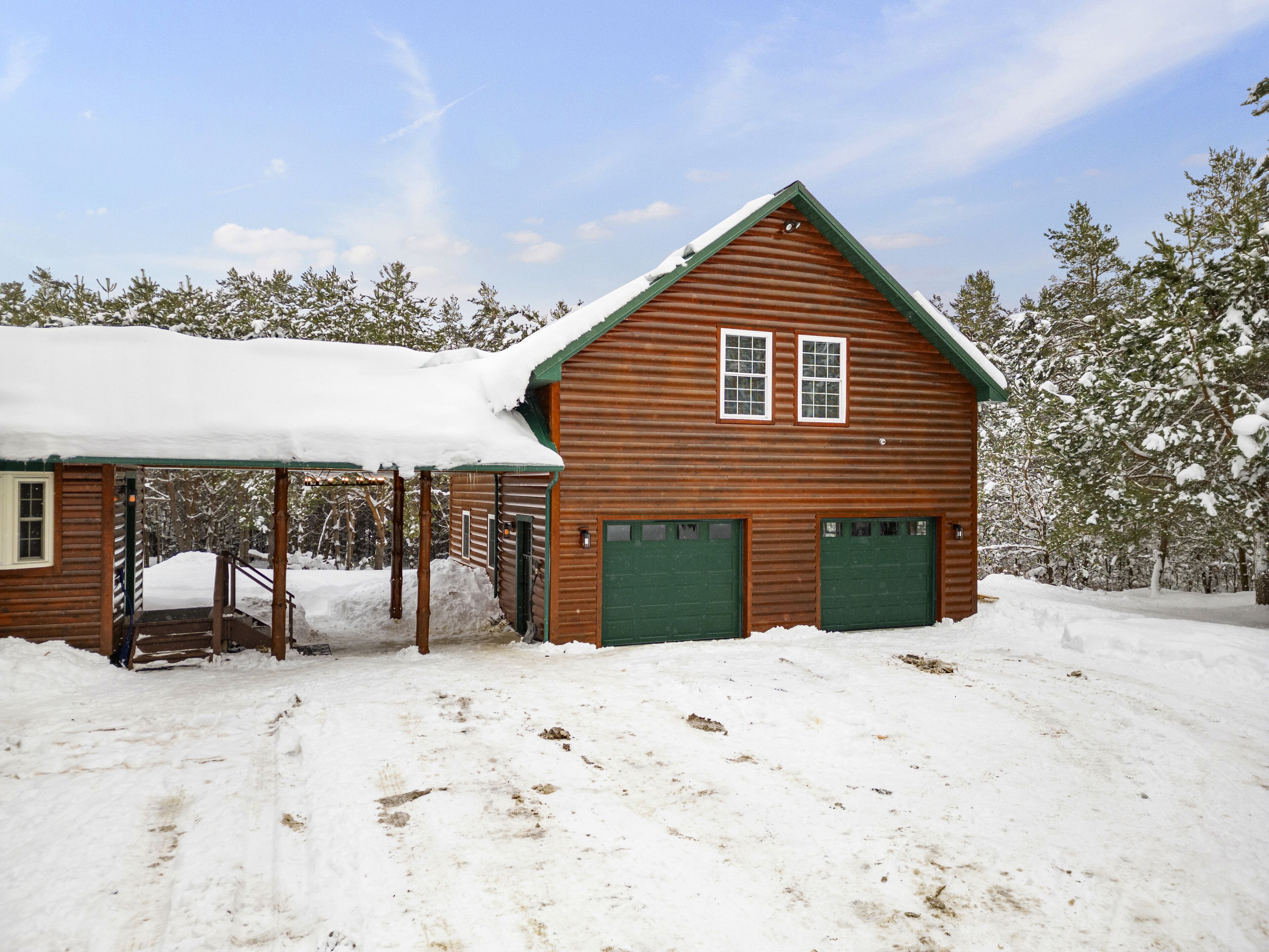 The Getaway in the Pines, On Snowmobile Trail Imagine an escape from the hustle & bustle where you're immersed in the tranquility of a secluded countryside cabin surrounded by serene evergreens. Newly renovated & all new amenities, this home+garage+loft apartment features 4BR (1King/3Queen), 3full baths, 4mattresses, sofabed and 2kitchens. Enjoy the outdoor Hot Tub! Snowmobile Trail directly be...