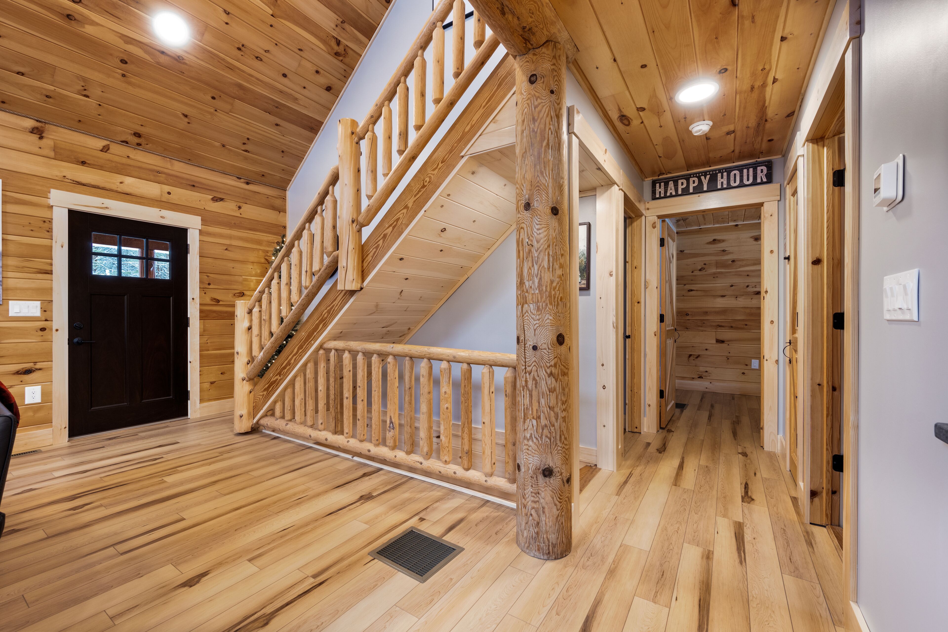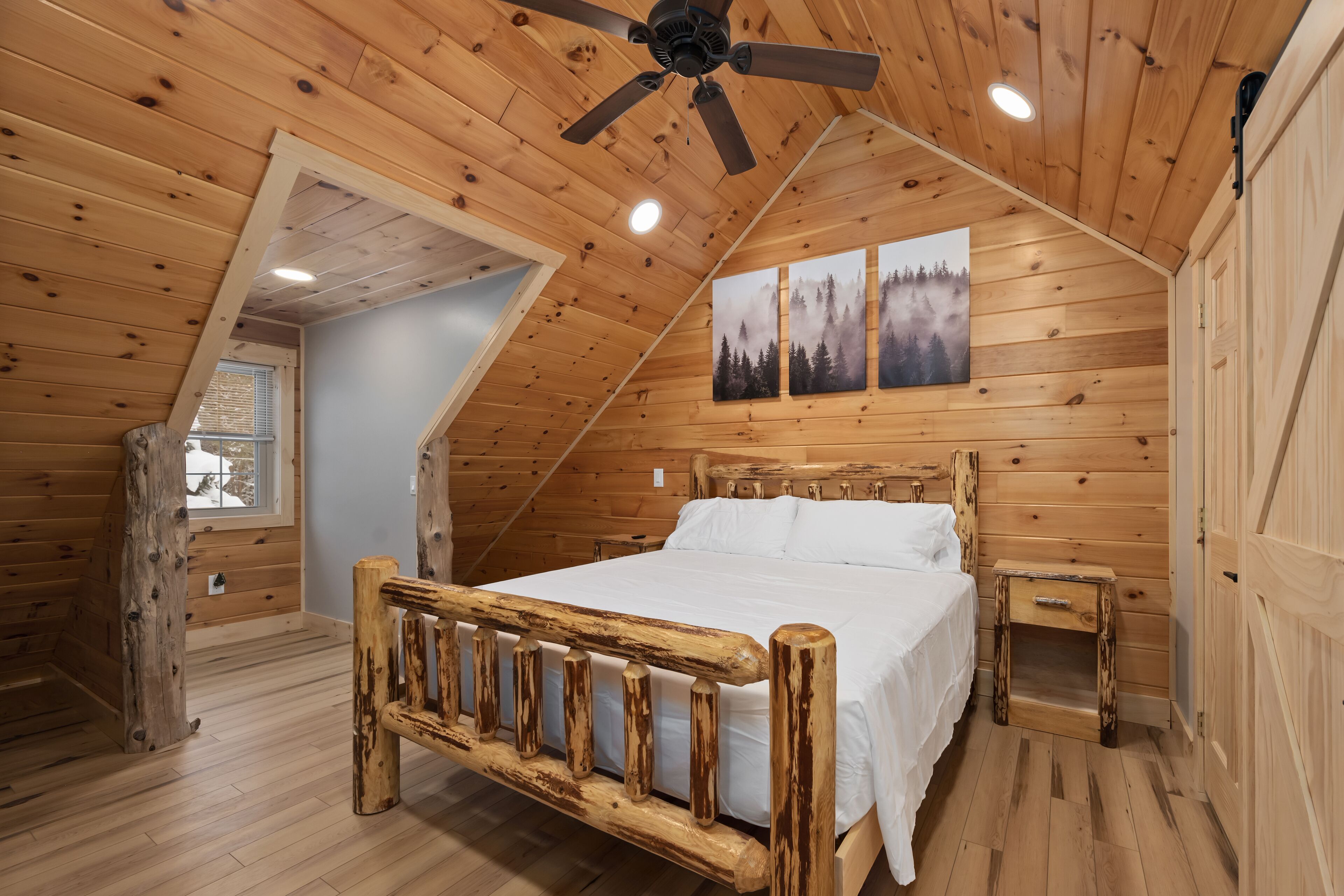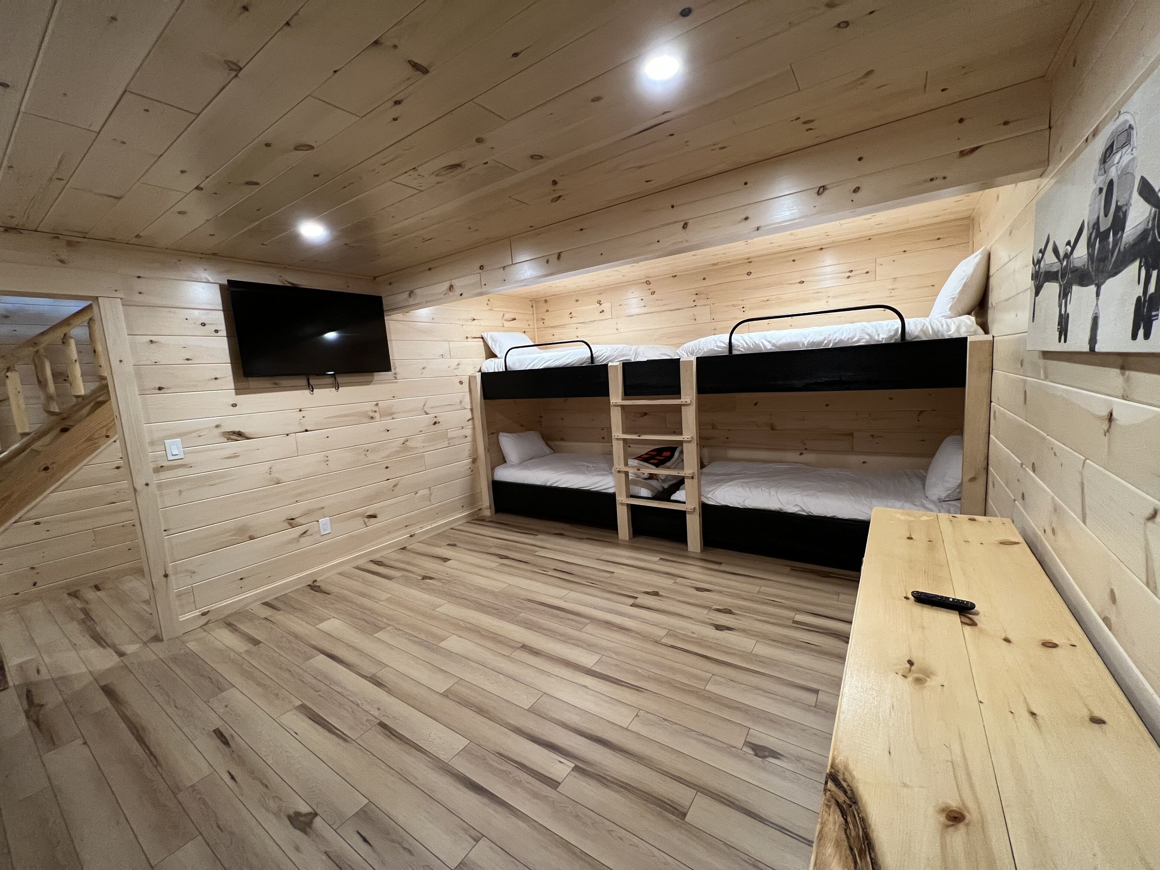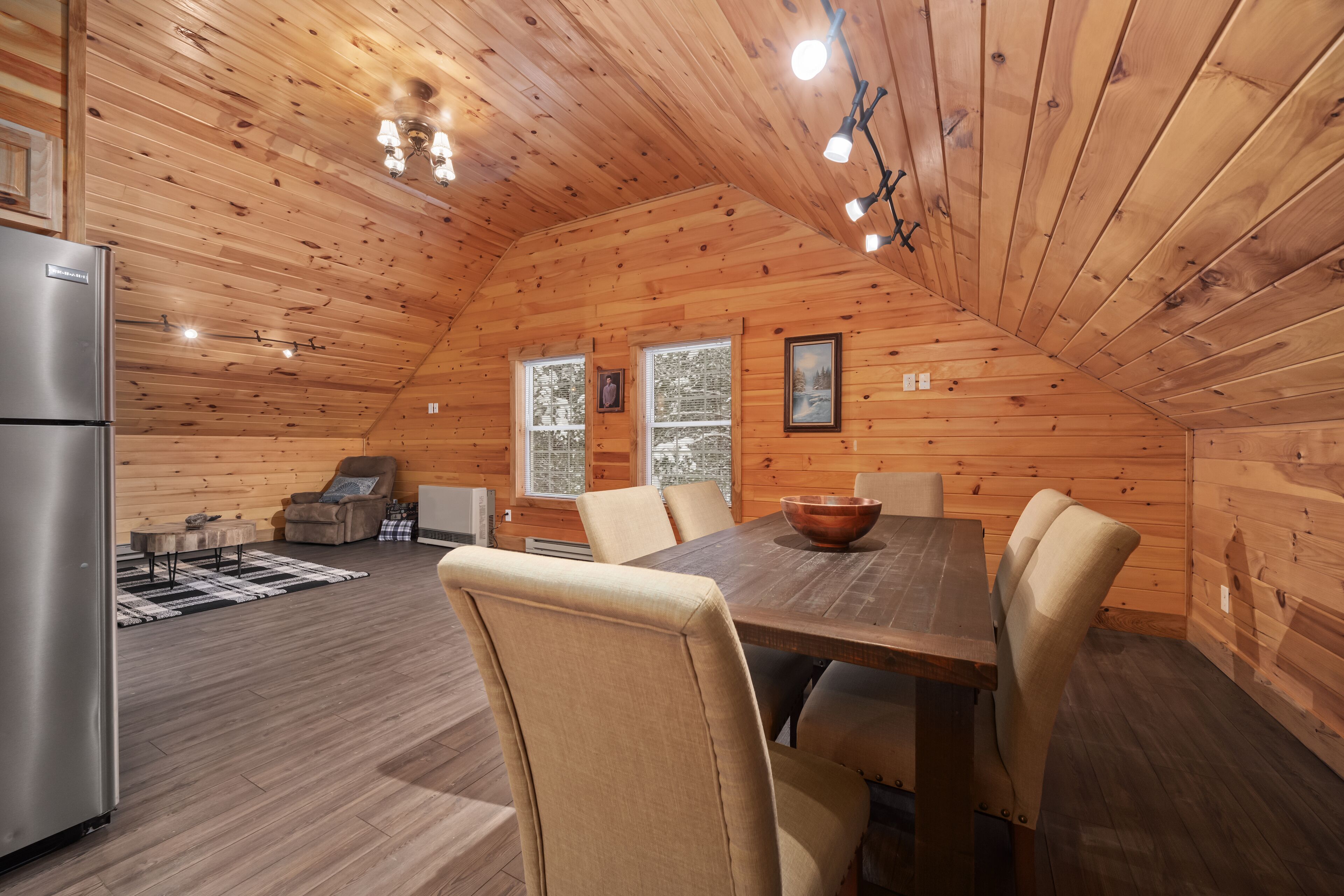 The Getaway in the Pines, On Snowmobile Trail Imagine an escape from the hustle & bustle where you're immersed in the tranquility of a secluded countryside cabin surrounded by serene evergreens. Newly renovated & all new amenities, this home+garage+loft apartment features 4BR (1King/3Queen), 3full baths, 4mattresses, sofabed and 2kitchens. Enjoy the outdoor Hot Tub! Snowmobile Trail directly behind Cabin! Only a few miles away to ATV trail access! Convenient location near town. Plentiful parking & 2 stall garage. The getaway you deserve! There are three options to book: The Cabin, The Loft, or the whole property (Cabin and Loft). Getaway in the Pines is the whole property.