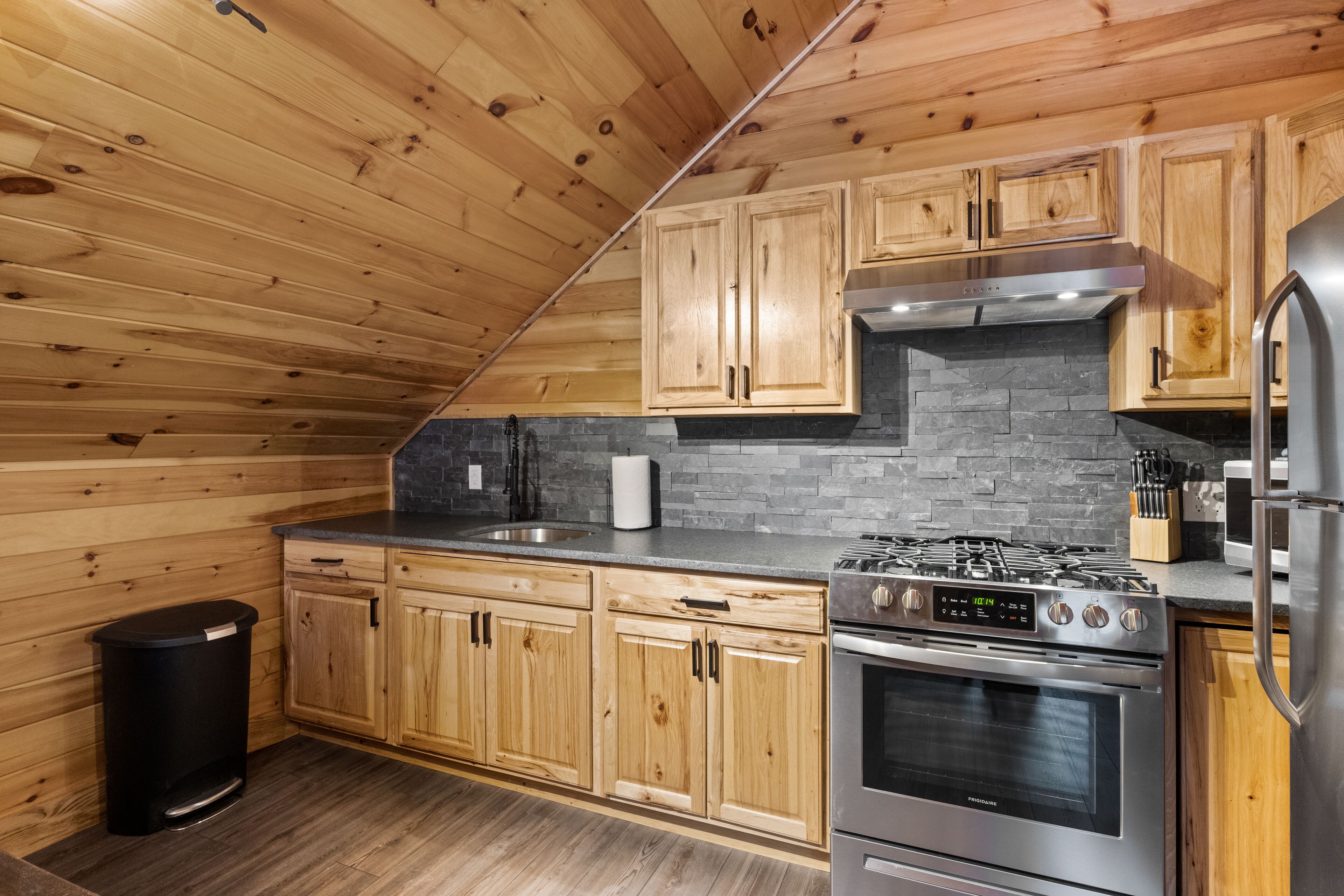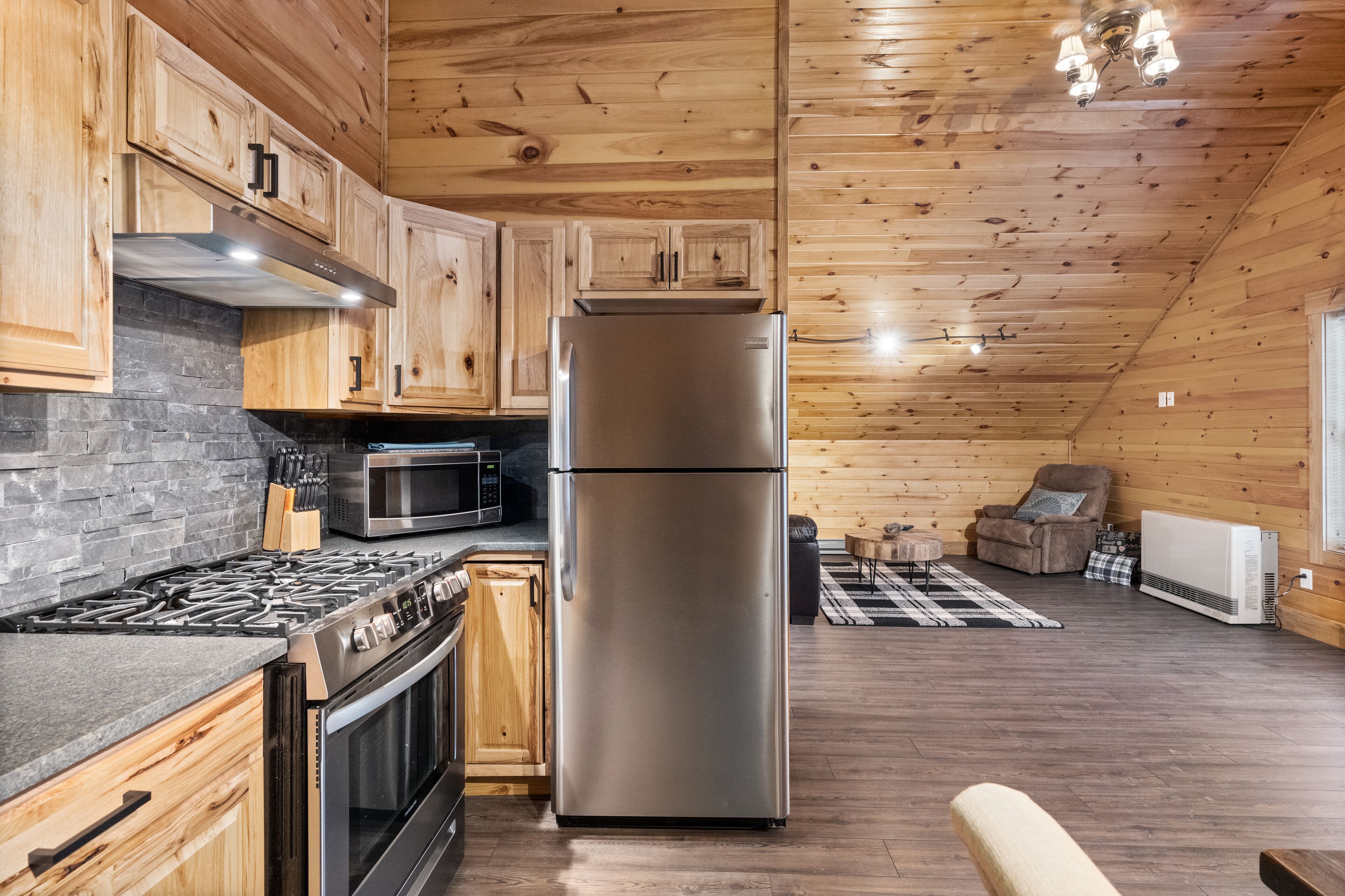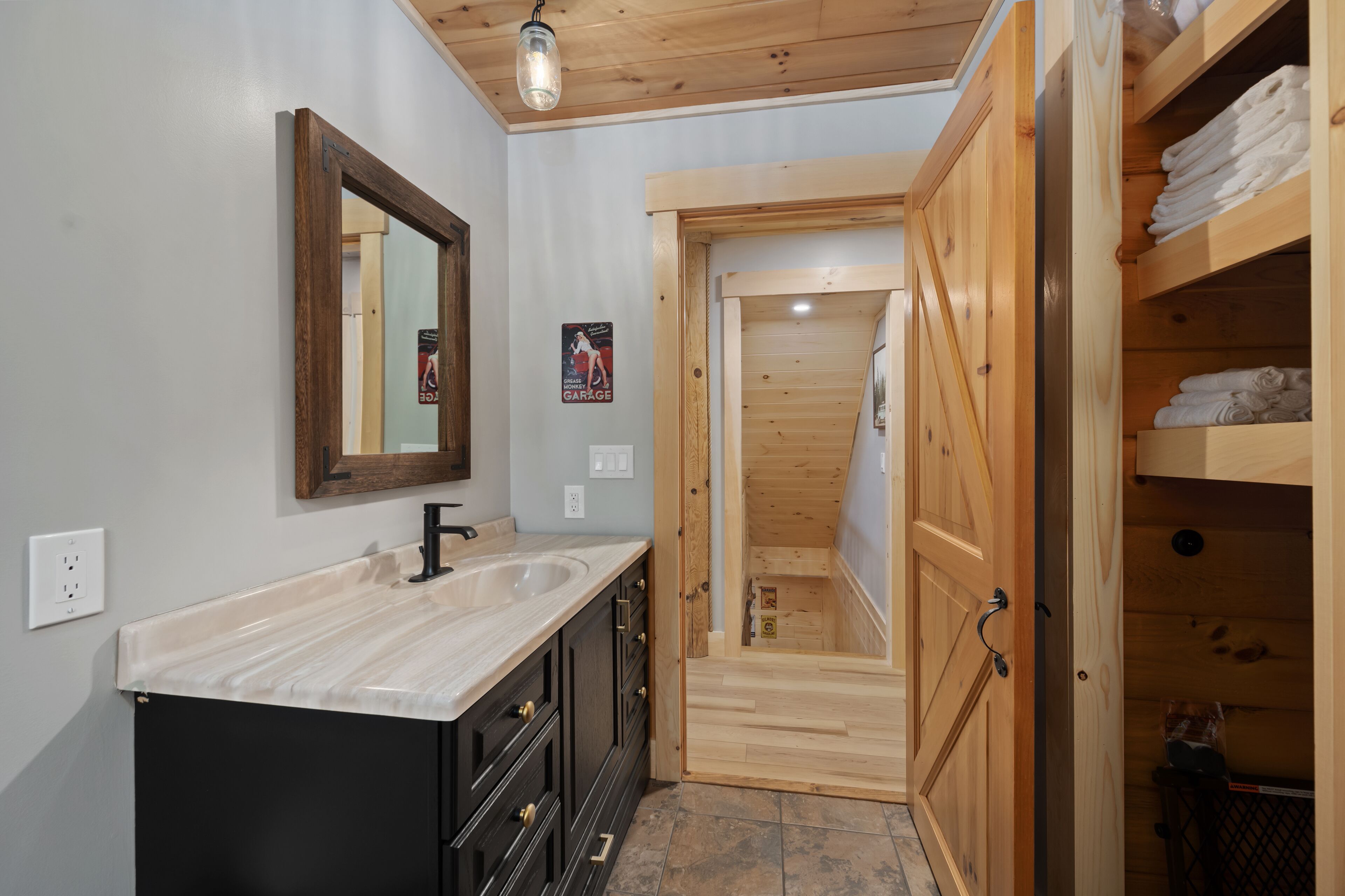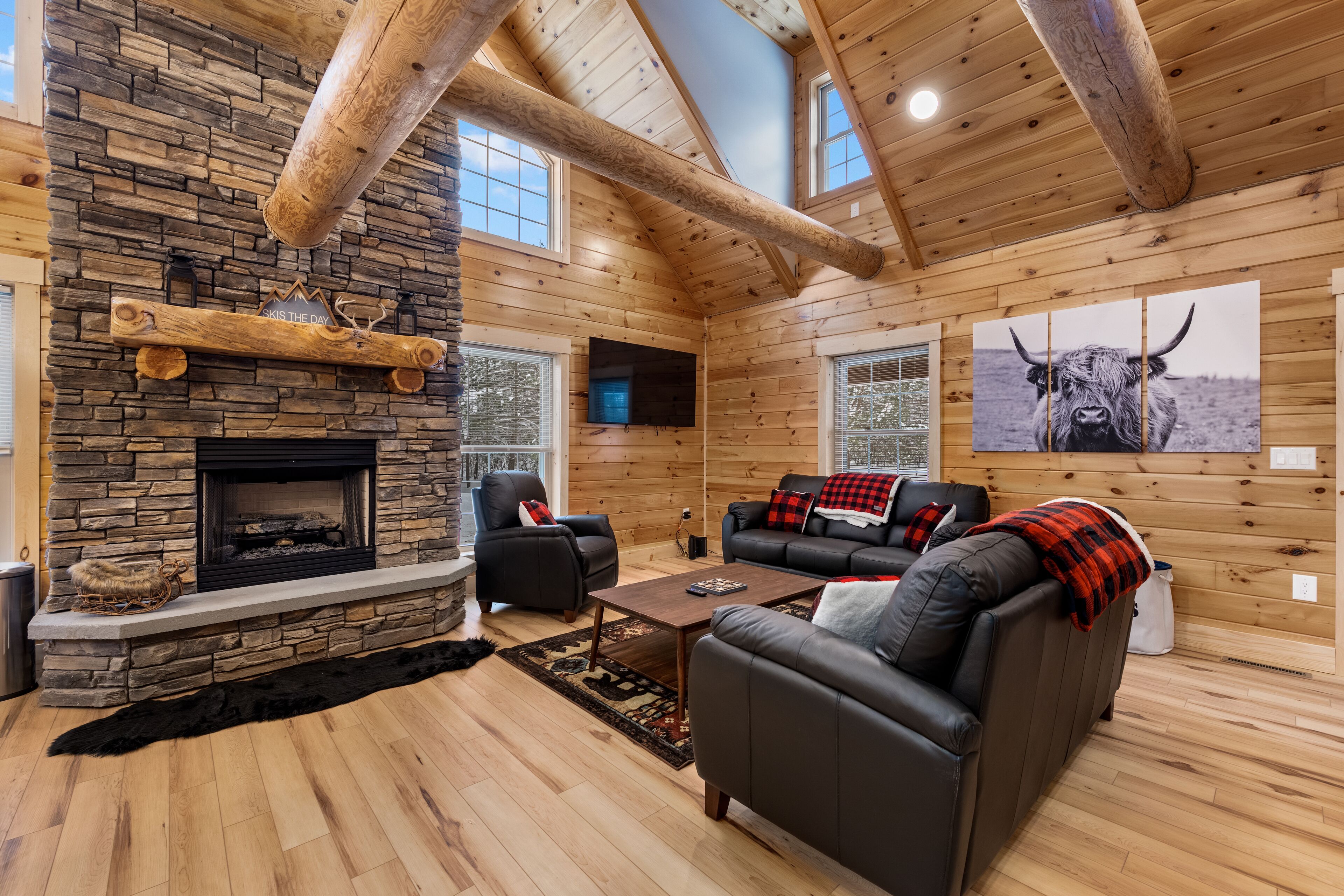The Getaway in the Pines, On Snowmobile Trail Imagine an escape from the hustle & bustle where you're immersed in the tranquility of a secluded countryside cabin surrounded by serene evergreens. Newly renovated & all new amenities, this home+garage+loft apartment features 4BR (1King/3Queen), 3full baths, 4mattresses, sofabed and 2kitchens. Enjoy the outdoor Hot Tub! Snowmobile Trail directly behind Cabin! Only a few miles away to ATV trail access! Convenient location near town. Plentiful parking & 2 stall garage. The getaway you deserve! There are three options to book: The Cabin, The Loft, or the whole property (Cabin and Loft). Getaway in the Pines is the whole property.