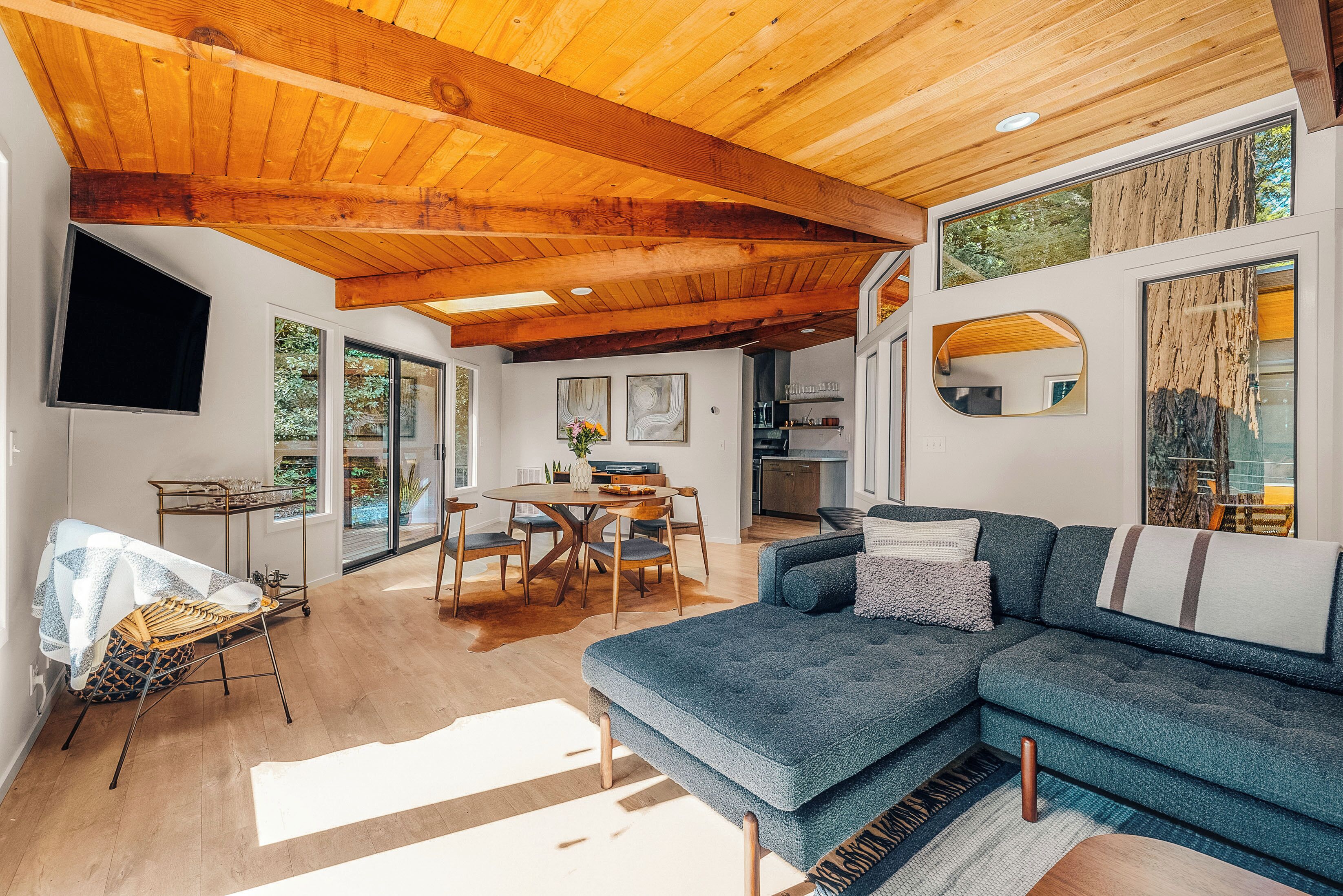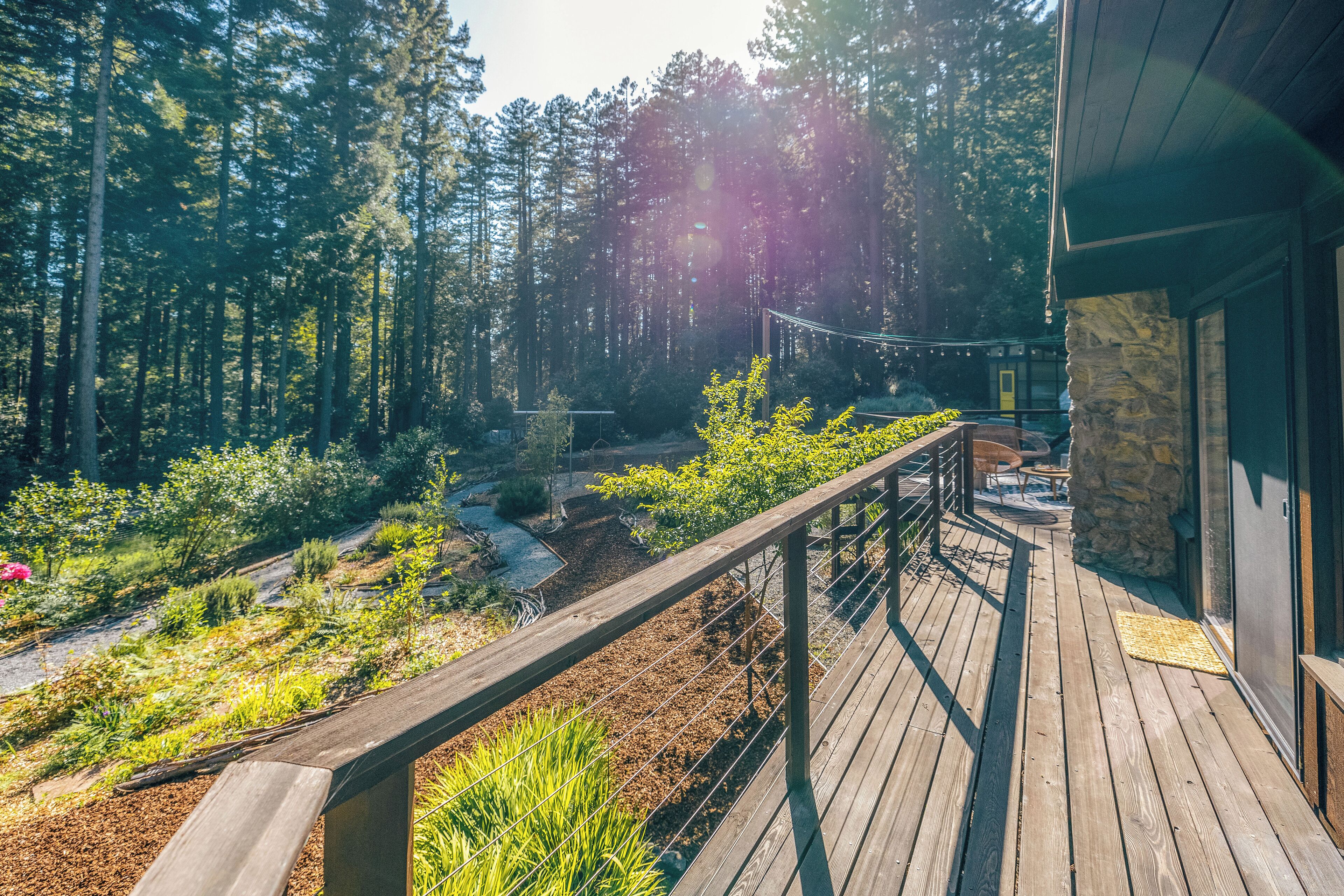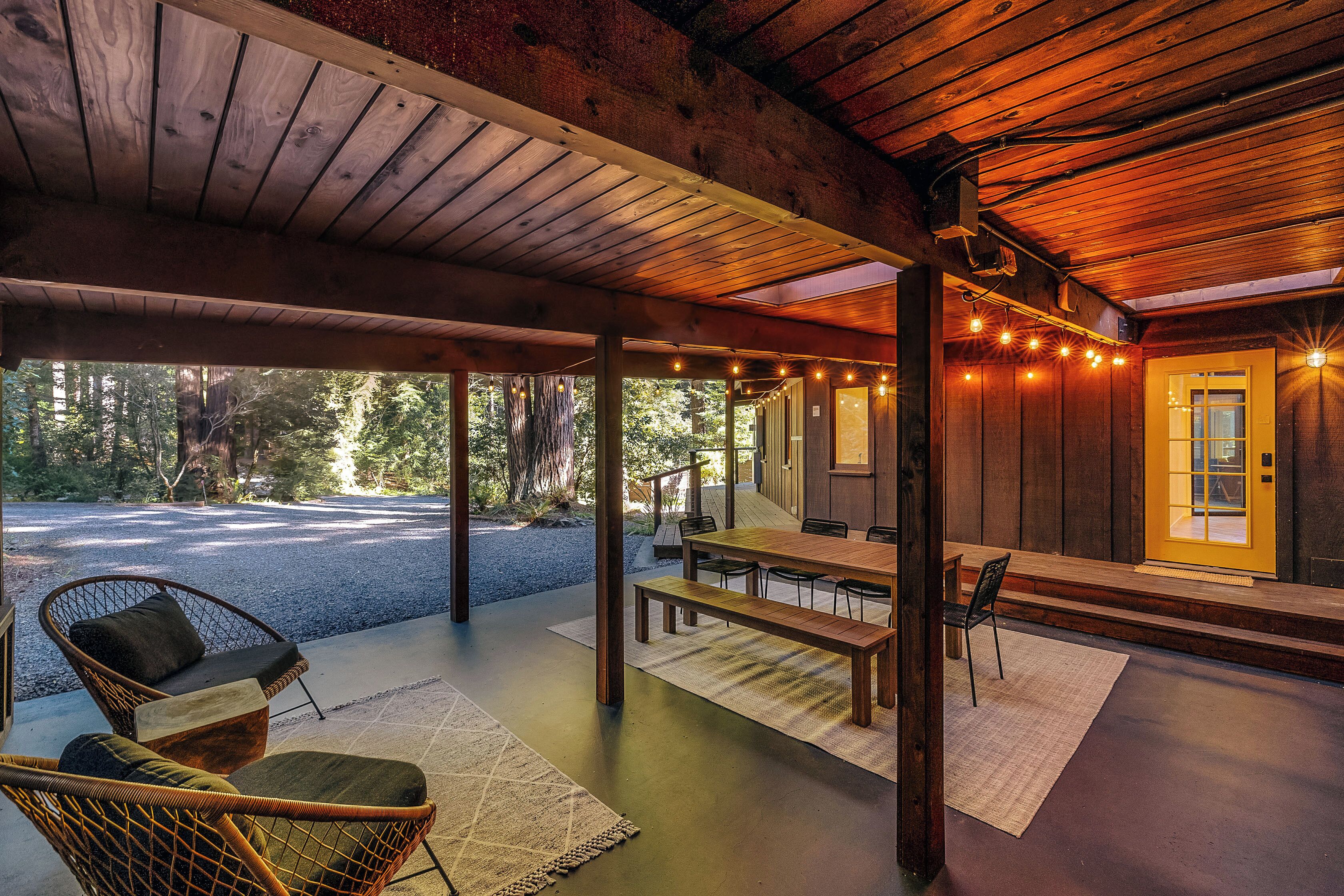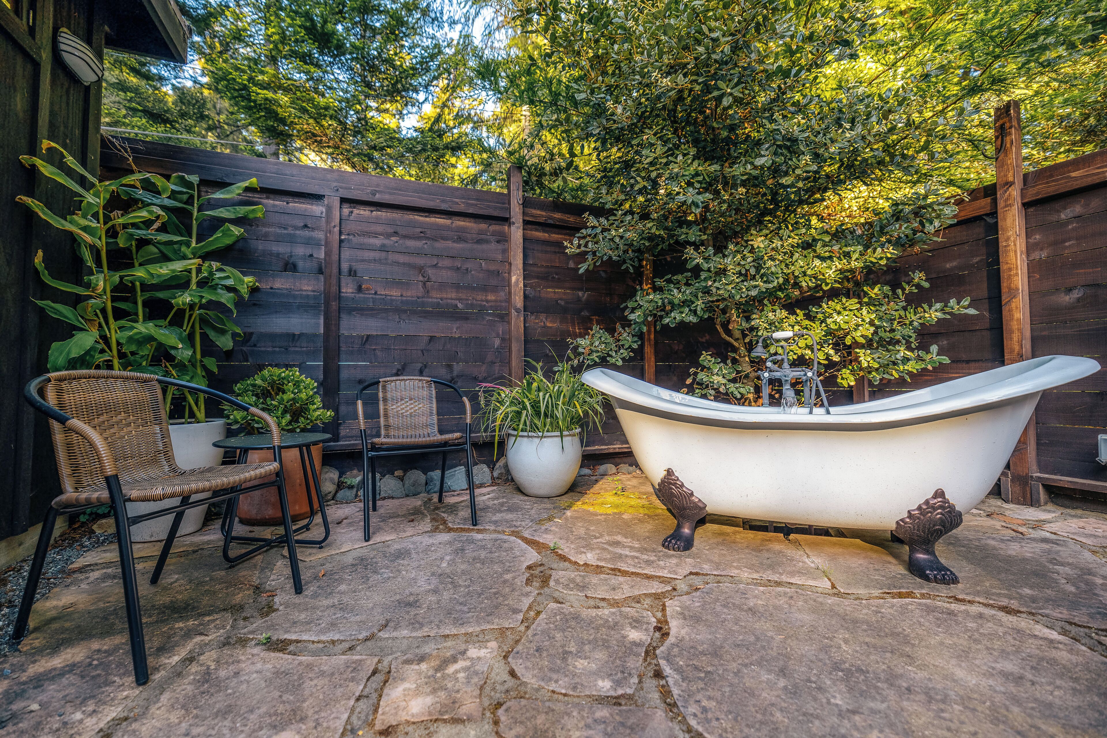 Private Mendocino Home with Luxury Outdoor Spa Escape to the privacy of the Mendocino Tree House, an octagon retreat built around a century year old redwood tree with a full luxury outdoor spa. The 2 bed/2 bath home blends modern style with natural splendor. Relax on the expansive wrap-around deck, or unwind by the fire pit amidst the redwoods. Indulge under the stars in the outdoor spa oasis, boasting a hot tub, wood-fired sauna, clawfoot tub, and shower. Immerse yourself in comfort, where every detail invites you to embrace peace and serenity.We have curated this home to be a retreat, a spa vacation, but also "a home away from home." In that way it's meant to be beautiful, enchanting and comfortable all at the same time. From the fully stocked kitchen, to the comfortable living room with breathtaking view of the backyard redwood forest, to the meticulously cared for bedrooms with quality mattresses, linens and pillows, to the one of kind outdoor spa, we're confident the Mendocino Tree House will check all your boxes and hopefully we'll add you to our family of guests for years to come. The 2 bed/2 bath house comfortably accommodates a couple, a group of friends or a family of 4-6 traveling together. For those larger groups, there are auto inflating/deflating air mattresses with sheet sets in each of the bedroom closets. Perfect for friend groups and families with children/teens. The house is styled to be inspiring yet cozy and approachable. The kitchen can be used as simply as storing leftovers to cooking a full meal with a full setting of dinnerware, silverware and glassware. There's one of kind art situated throughout the house from the owner's personal collection and a workspace in the master bedroom for those that need to "catch up" while away. The indoor fireplace is very straight forward - there's an easy on/off switch right on the front panel.Where we know you're going to spend A LOT of your time though is outside. While we've meticulously designed the inside of the house, as much if not more attention, was placed on the outside. From the backyard egg chair porch swings at the end of the meandering walkways by the fruit trees, to the lounging and catching up on the day's events or reminiscing of old times by the fire pit, to sweating/washing away life's stress in the outdoor spa, you will surely leave the Mendocino Tree House feeling revived and renewed.We want you to feel at home, while you're away from home, but to respect our home and our neighbors we do have a few simple asks below.PET POLICY:At Mendocino Tree House, we understand that pets are family, which is why we gladly welcome your furry companions to join you on your adventure. Well-behaved, house-trained dogs (maximum of two) are permitted for an additional fee of $100/stay. You MUST request to bring your dog when booking.In our efforts to maintain a pristine and comfortable environment for all guests, we also enforce a strict rule of no pets on furniture or beds. This simple courtesy ensures that everyone can enjoy the elevated experience we strive to provide over time. If our cleaning staff finds hair on the furniture or in the bed linens, you will be charged an additional $250 cleaning fee. Additionally, for the safety and well-being of your pet and our property, we request that pets are not left unattended at the house.We do require that you clean up your pet's waste as well - again, it's simple courtesy. A black aluminum waste bin is located under the deck right across from the sauna - please ensure the waste is bagged. If our staff has to clean up after your pet, you will be charged an additional $100 cleaning fee.Thank you for understanding, and we look forward to hosting both you and your furry friend at Mendocino Tree House! 🌲🐶NO PARTY POLICY:While we love to gather, and welcome you to do so with your fellow travelers that you've submitted as your group, there are no parties allowed otherwise. We do strictly monitor noise. NO SMOKING POLICY:We all have different habits when it comes to how we honor our bodies, but simply put, there is ABSOLUTELY NO SMOKING/VAPING in our house. Failure to comply with this rule will result in an additional $1000 cleaning fee and additional fees for any damage caused. We also enforce a no smoking policy outside as well as a rogue cigarette butt could bring an end to our precious neighborhood and forest. If you must vape, you can do so outside ONLY.WILDLIFE/TRASH: Mendocino has a thriving wildlife population and so with that said, do not leave food outside or in your vehicle. If you need to remove trash from the house, you will find the large garbage and recycling bins in the carport behind the double doors furthest from the front door. Ensure all waste items are in a tied bag - no loose garbage. These doors are kept locked, to keep wildlife out - the code is 987. Please make sure the latch pin and lock are both re-engaged if you do access.VANDALISM POLICY: ABSOLUTELY NO carving or marking of any trees, poles or any other structures on the property. If our staff finds any vandalism you will be charged a $1000 fine. A 5 Star review is a perfect way to "leave your mark!"SEPTIC SYSTEM:The home operates on a septic system which is robust, but to keep it that way, please refrain from flushing anything down the toilet other than toilet paper. INSURANCE & WARRANTY:Now for the legal jargon...Occupants personal property, including vehicles, are not insured by Owner against loss or damage due to fire, theft, vandalism, rain, water, criminal or negligent acts of others, or any other cause. Owner does not insure against personal injury to Occupants due to any reason other than the condition of the Premises. Owner recommends that Occupants carry or obtain insurance to protect Occupants and personal property from any loss or damage. Occupants agree to indemnify, defend and hold harmless Owner and Owners Representatives from all claims, disputes, litigation, judgements, cost and attorney
