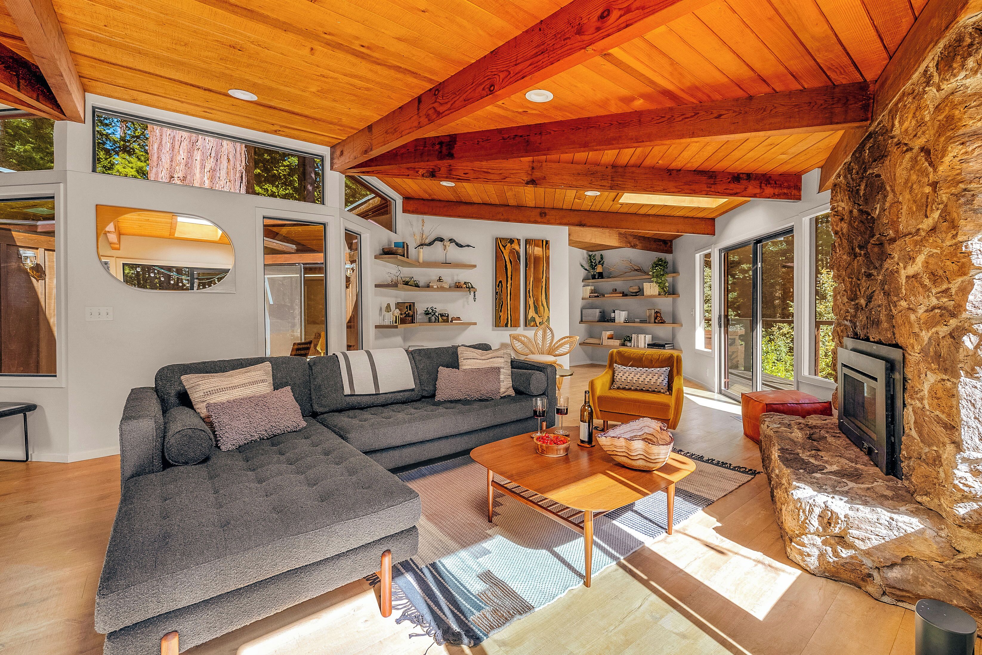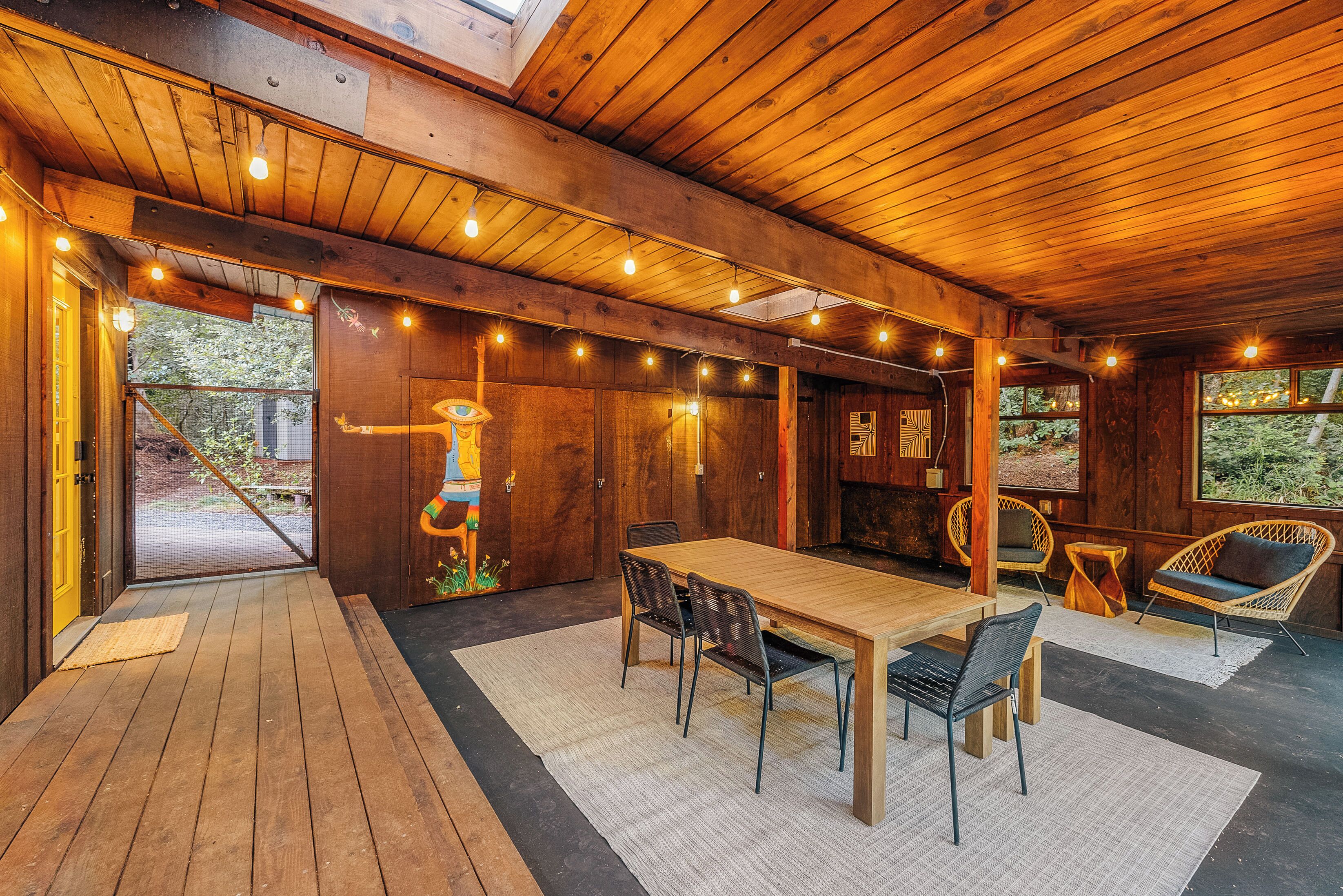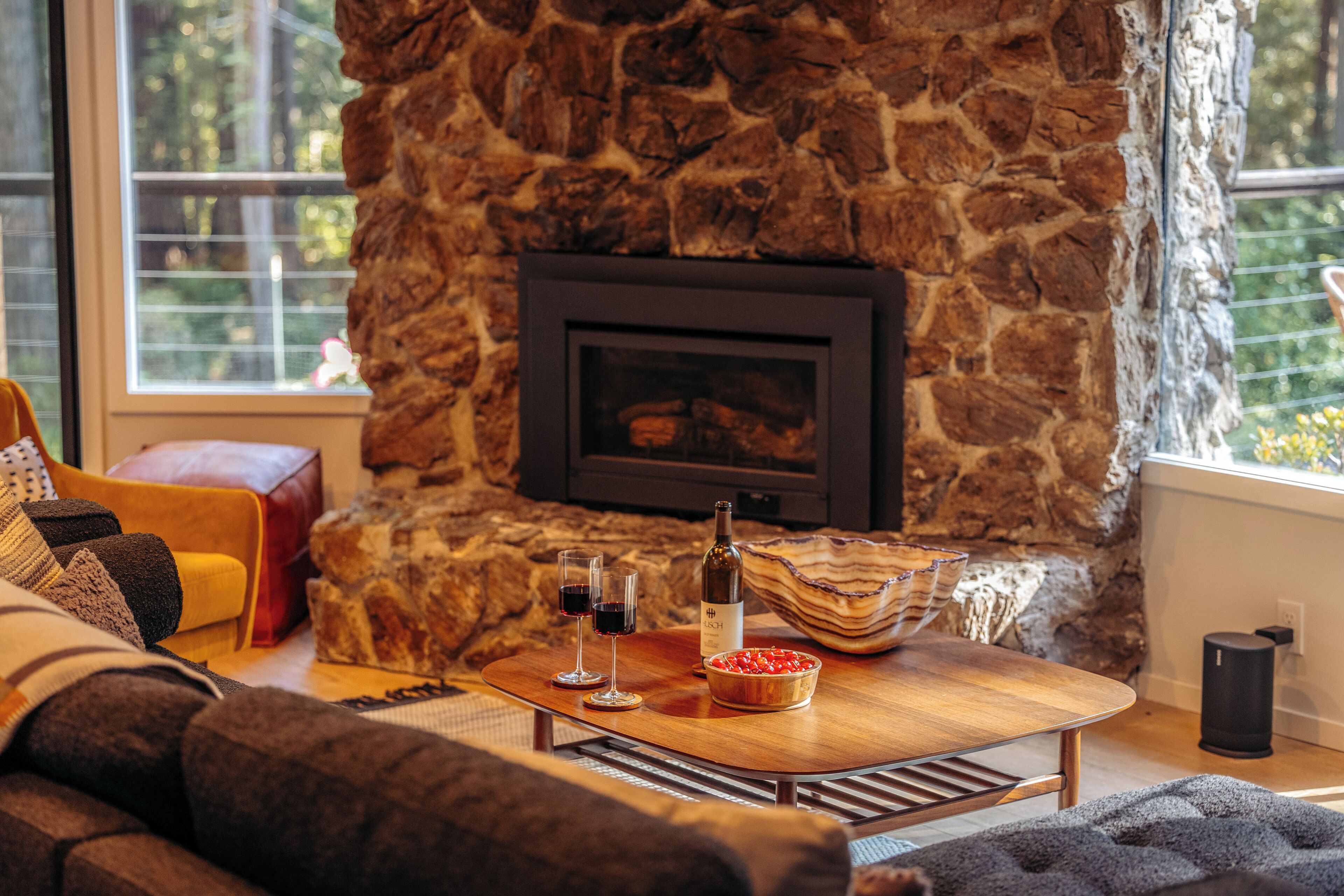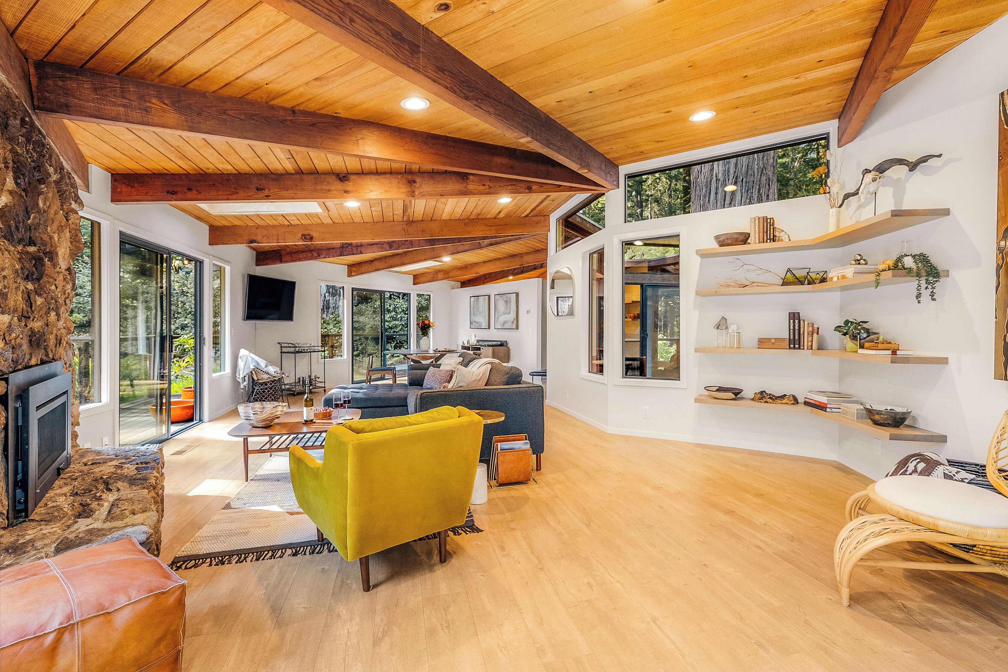 Private Mendocino Home with Luxury Outdoor Spa Escape to the privacy of the Mendocino Tree House, an octagon retreat built around a century year old redwood tree with a full luxury outdoor spa. The 2 bed/2 bath home blends modern style with natural splendor. Relax on the expansive wrap-around deck, or unwind by the fire pit amidst the redwoods. Indulge under the stars in the outdoor spa oasis, boasting a hot tub, wood-fired sauna, clawfoot tub, and shower. Immerse yourself in comfort, where every detail invites you to embrace peace and serenity.We have curated this home to be a retreat, a spa vacation, but also "a home away from home." In that way it's meant to be beautiful, enchanting and comfortable all at the same time. From the fully stocked kitchen, to the comfortable living room with breathtaking view of the backyard redwood forest, to the meticulously cared for bedrooms with quality mattresses, linens and pillows, to the one of kind outdoor spa, we're confident the Mendocino Tree House will check all your boxes and hopefully we'll add you to our family of guests for years to come. The 2 bed/2 bath house comfortably accommodates a couple, a group of friends or a family of 4-6 traveling together. For those larger groups, there are auto inflating/deflating air mattresses with sheet sets in each of the bedroom closets. Perfect for friend groups and families with children/teens. The house is styled to be inspiring yet cozy and approachable. The kitchen can be used as simply as storing leftovers to cooking a full meal with a full setting of dinnerware, silverware and glassware. There's one of kind art situated throughout the house from the owner's personal collection and a workspace in the master bedroom for those that need to "catch up" while away. The indoor fireplace is very straight forward - there's an easy on/off switch right on the front panel.Where we know you're going to spend A LOT of your time though is outside. While we've meticulously designed the inside of the house, as much if not more attention, was placed on the outside. From the backyard egg chair porch swings at the end of the meandering walkways by the fruit trees, to the lounging and catching up on the day's events or reminiscing of old times by the fire pit, to sweating/washing away life's stress in the outdoor spa, you will surely leave the Mendocino Tree House feeling revived and renewed.We want you to feel at home, while you're away from home, but to respect our home and our neighbors we do have a few simple asks below.PET POLICY:At Mendocino Tree House, we understand that pets are family, which is why we gladly welcome your furry companions to join you on your adventure. Well-behaved, house-trained dogs (maximum of two) are permitted for an additional fee of $100/stay. You MUST request to bring your dog when booking.In our efforts to maintain a pristine and comfortable environment for all guests, we also enforce a strict rule of no pets on furniture or beds. This simple courtesy ensures that everyone can enjoy the elevated experience we strive to provide over time. If our cleaning staff finds hair on the furniture or in the bed linens, you will be charged an additional $250 cleaning fee. Additionally, for the safety and well-being of your pet and our property, we request that pets are not left unattended at the house.We do require that you clean up your pet's waste as well - again, it's simple courtesy. A black aluminum waste bin is located under the deck right across from the sauna - please ensure the waste is bagged. If our staff has to clean up after your pet, you will be charged an additional $100 cleaning fee.Thank you for understanding, and we look forward to hosting both you and your furry friend at Mendocino Tree House! 🌲🐶NO PARTY POLICY:While we love to gather, and welcome you to do so with your fellow travelers that you've submitted as your group, there are no parties allowed otherwise. We do strictly monitor noise. NO SMOKING POLICY:We all have different habits when it comes to how we honor our bodies, but simply put, there is ABSOLUTELY NO SMOKING/VAPING in our house. Failure to comply with this rule will result in an additional $1000 cleaning fee and additional fees for any damage caused. We also enforce a no smoking policy outside as well as a rogue cigarette butt could bring an end to our precious neighborhood and forest. If you must vape, you can do so outside ONLY.WILDLIFE/TRASH: Mendocino has a thriving wildlife population and so with that said, do not leave food outside or in your vehicle. If you need to remove trash from the house, you will find the large garbage and recycling bins in the carport behind the double doors furthest from the front door. Ensure all waste items are in a tied bag - no loose garbage. These doors are kept locked, to keep wildlife out - the code is 987. Please make sure the latch pin and lock are both re-engaged if you do access.VANDALISM POLICY: ABSOLUTELY NO carving or marking of any trees, poles or any other structures on the property. If our staff finds any vandalism you will be charged a $1000 fine. A 5 Star review is a perfect way to "leave your mark!"SEPTIC SYSTEM:The home operates on a septic system which is robust, but to keep it that way, please refrain from flushing anything down the toilet other than toilet paper. INSURANCE & WARRANTY:Now for the legal jargon...Occupants personal property, including vehicles, are not insured by Owner against loss or damage due to fire, theft, vandalism, rain, water, criminal or negligent acts of others, or any other cause. Owner does not insure against personal injury to Occupants due to any reason other than the condition of the Premises. Owner recommends that Occupants carry or obtain insurance to protect Occupants and personal property from any loss or damage. Occupants agree to indemnify, defend and hold harmless Owner and Owners Representatives from all claims, disputes, litigation, judgements, cost and attorney