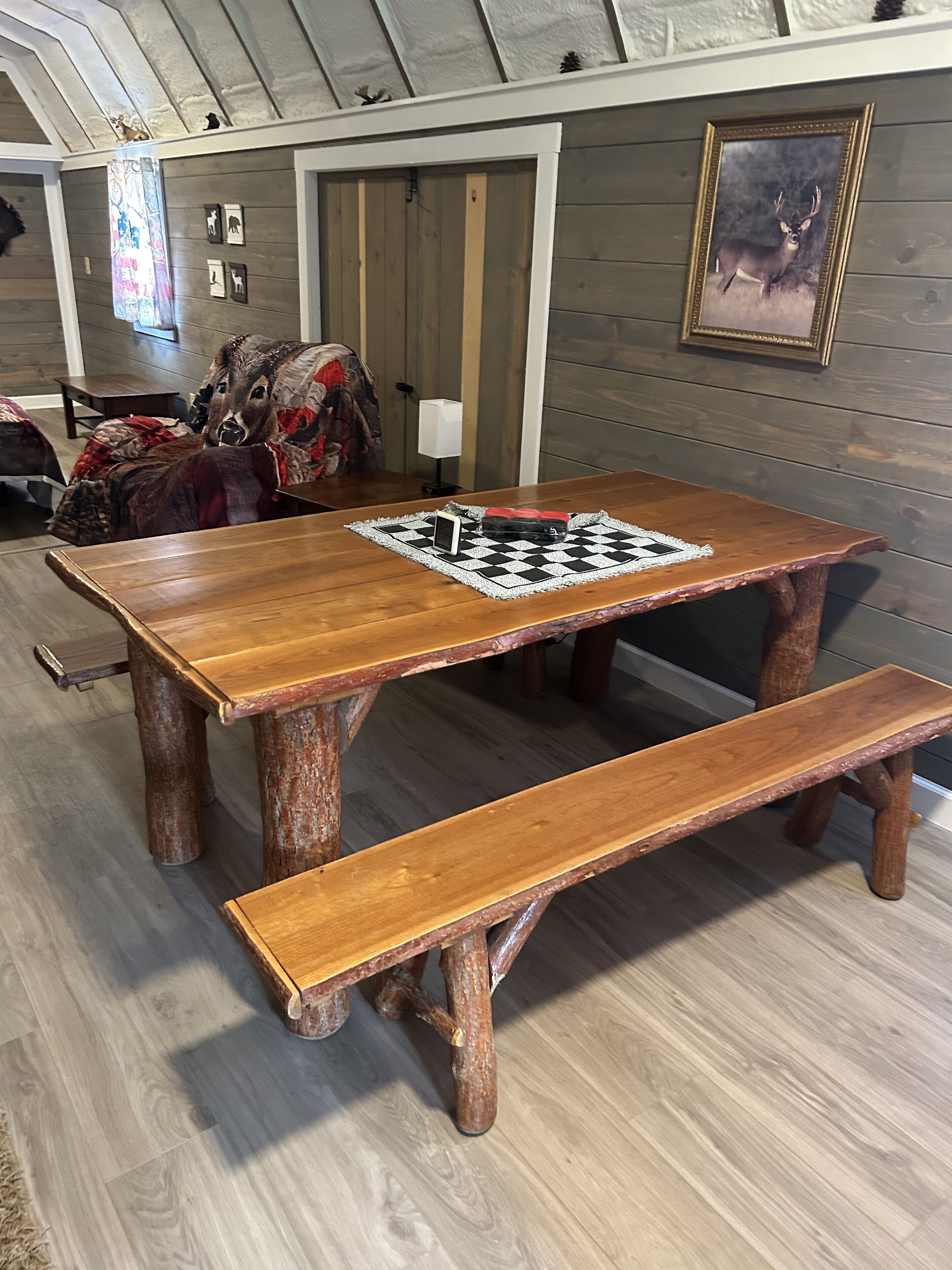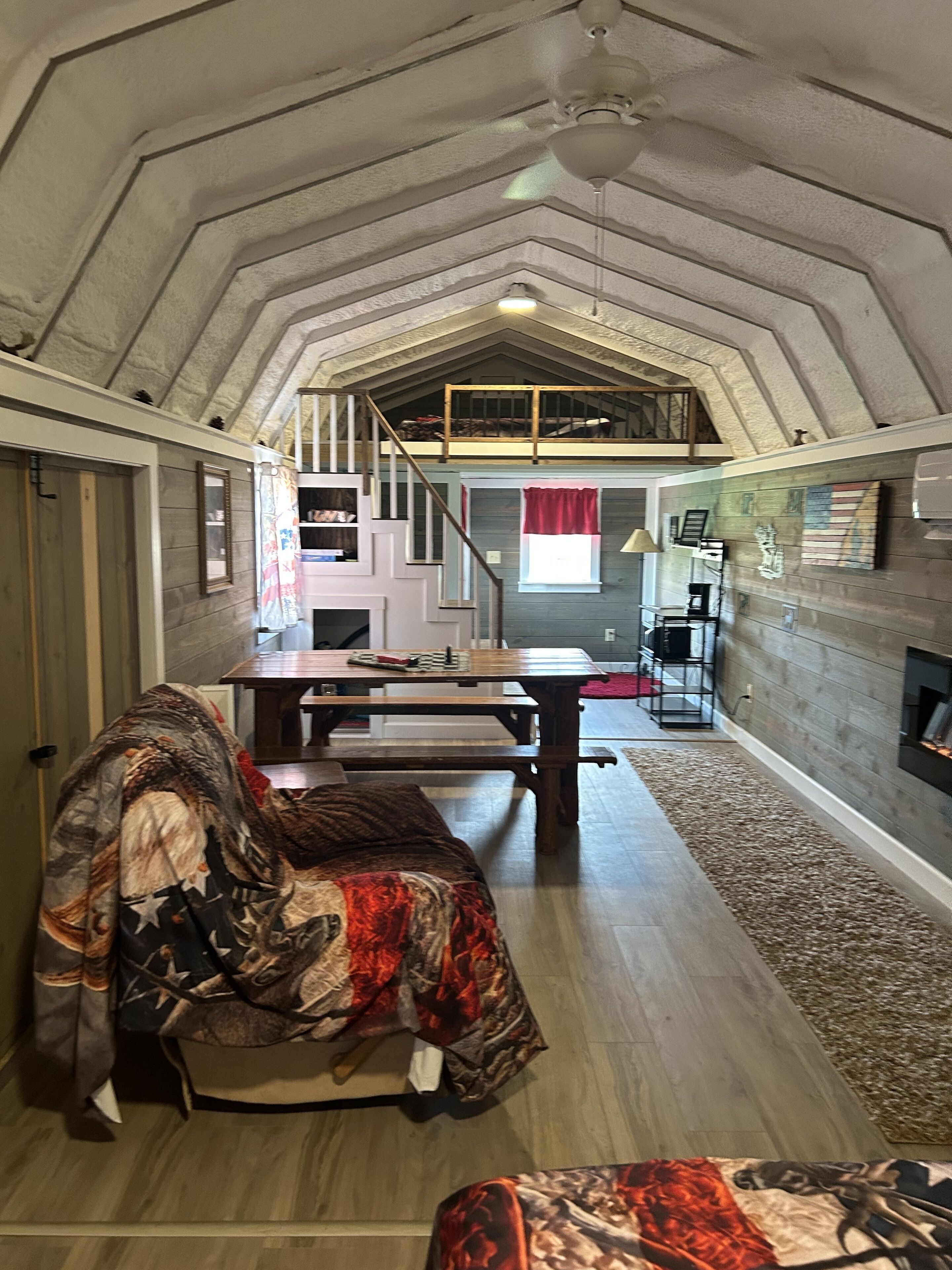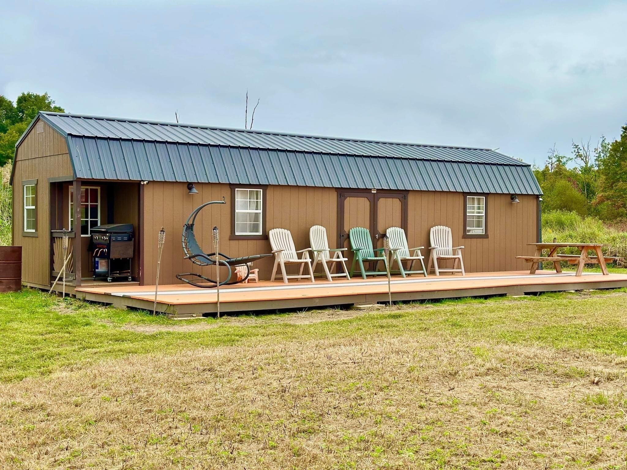 Primitive cabin with additional camping room PRIMITIVE CABIN/CAMPING! SLEEPS 4-6Enjoy nature from the quaint front porch overlooking a stocked fishing pond or adventure out to a number of surrounding activities in the area — hiking trails, kayak rentals, wineries, antique shops, other quaint village shopping and more. All within a 10-15 mile drive!**THE SPACE**This spacious (12’x40’), single-room and primitive cabin is for those who seek simplicity and an escape from the daily grind. Tucked away on the back side of 7 acres in a small town in Northeast Ohio, this cabin offers the perfect opportunity to connect with nature with plenty of room for family fun in a private setting, and an excellent opportunity to explore the local area. The cabin comfortably sleeps 4-6, and is great for families! Need more space? Bring a tent and set it up on the property for some extra fun!This cabin is primitive, meaning no kitchen or bath, and no running water inside. However, there is a port-a-potty just outside. Cabin Amenities Include:- Electricity- AC in the summer- Heat in the winter- 2 full-size beds with memory foam mattresses- 1 queen size bed in a low ceiling loft with memory foam mattress- Full size handmade table from sassafras tree- Reclining chair- Blackstone grille with dual air fryer - Small refrigerator- Microwave- Hot/cold water dispenser - Coffee maker- Board games- Fire Pit- Picnic table- Patio furniture for relaxing outdoors- Fully stocked fishing pond - Keep your catch!- Aqua cycle water trike- 1 pedal boat- cornhole and other outdoor games in shed- Loves gas station within 15 minutes does have public showers.You will need to bring food and drink, towels and toiletries. Feel free to bring fishing poles and bait, or a tent for extra sleeping space!Forget something? There is a Dollar General store very close by!**RENTAL INFO**$59/nightTaxes and cleaning fees not included2 night minimum on weekends.Check in: 3 pmCheck out: 12 pm (noon)Kid friendly!No pets and no smoking within the cabin. **THINGS TO DO IN THE AREA**PARKS & HIKING- Less than 5 miles away is Walborn Reservoir. With nearly 1,800 acres, this picturesque park is the perfect escape for hikers, fishing enthusiasts, canoeists and kayakers! The marina offers affordable canoe, kayak, paddle board and motor boat rentals and concessions beginning in May each year. - 10 miles away is Quail Hollow State Park. This 700 acre park offers a variety of hiking and mountain biking trails with rolling meadows, marshes, pine and deciduous woods surrounding a 40-room manor. WINERIES - A short 5.5 mile drive is 1875 Winery & Restaurant. This adults-only winery and restaurant is located in a beautifully restored barn that was built in 1875. The barn offers 3 floors of dining, a stunning outdoor patio with an impressive 4-sided fireplace, a tranquil waterfall and more. Dine on a delicious seasonal menu or choose one of their amazing-wood fired pizzas, and pair it with a signature cocktail or wine slushie.- Just a 10 mile drive is Maize Valley & Craft Brewery. This family-friendly location offers a variety of experiences. Take in a variety of wines, craft beers and food selections, shop the small market of homegrown and handcrafted products, or check out some of their live music, special events and fall activities. ANTIQUING & THRIFTING- Visit the Hartville Antique & Thrift Trail! There are over a dozen shops within a 3 mile radius around the Hartville Marketplace & Flea Market — which is a short 15 mile drive from the cabin.MORE NEARBY ACTIVITIES- Dusty Armadillo- huge country bar (7 miles)- Uncle Tito’s - Mexican restaurant (2 miles)- Cracker Barrel (8 miles)- New Baltimore Homemade Ice Cream (open seasonally only) (6 miles)- Hartville Marketplace (14 miles)- We are also only 30 minutes from Canton, Ohio and the Pro Football Hall of Fame.- 7 miles away from Goods Raceway in Deerfield, Ohio. With plenty of room for trailer parking available at no additional charge.- 15 minutes from MX training facility. Plenty of room for a toy hauler to set up next to the cabin , additional fees apply.