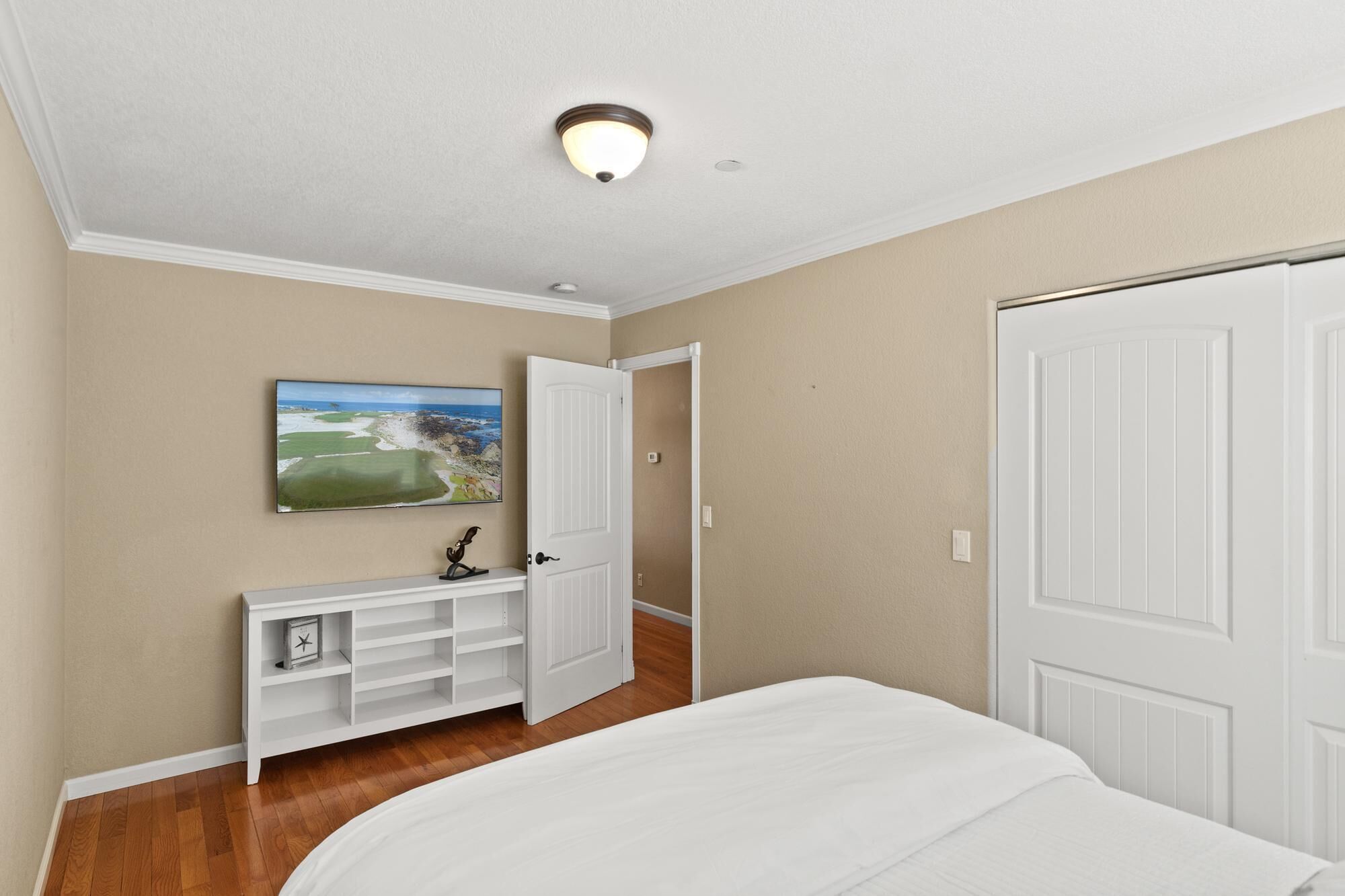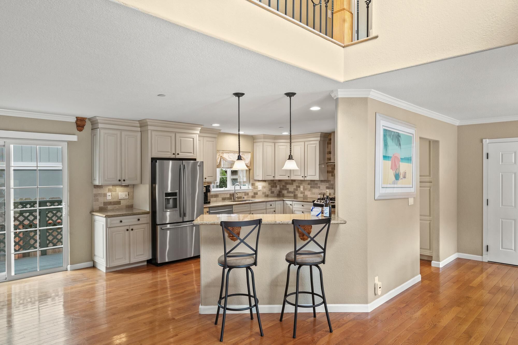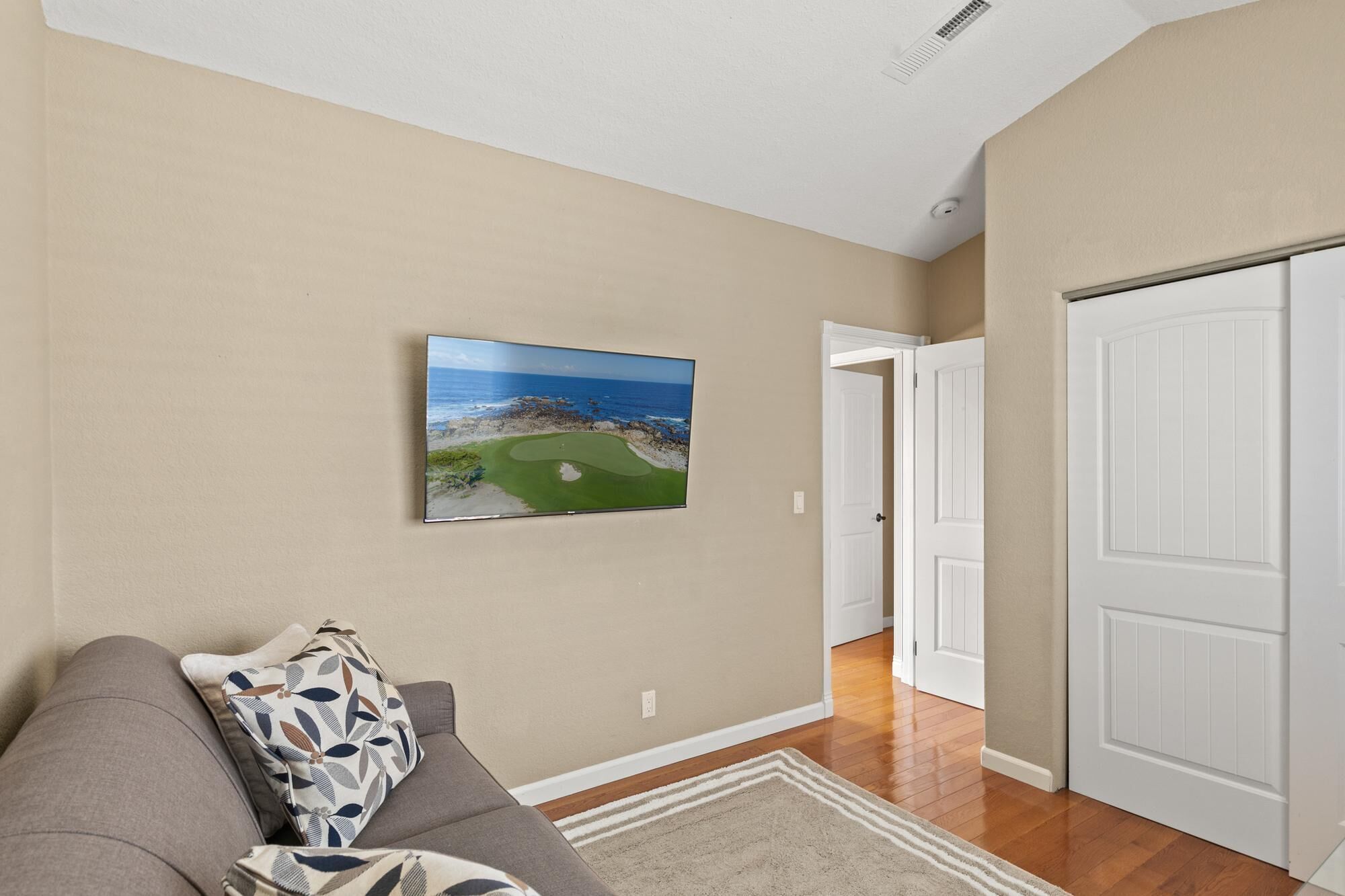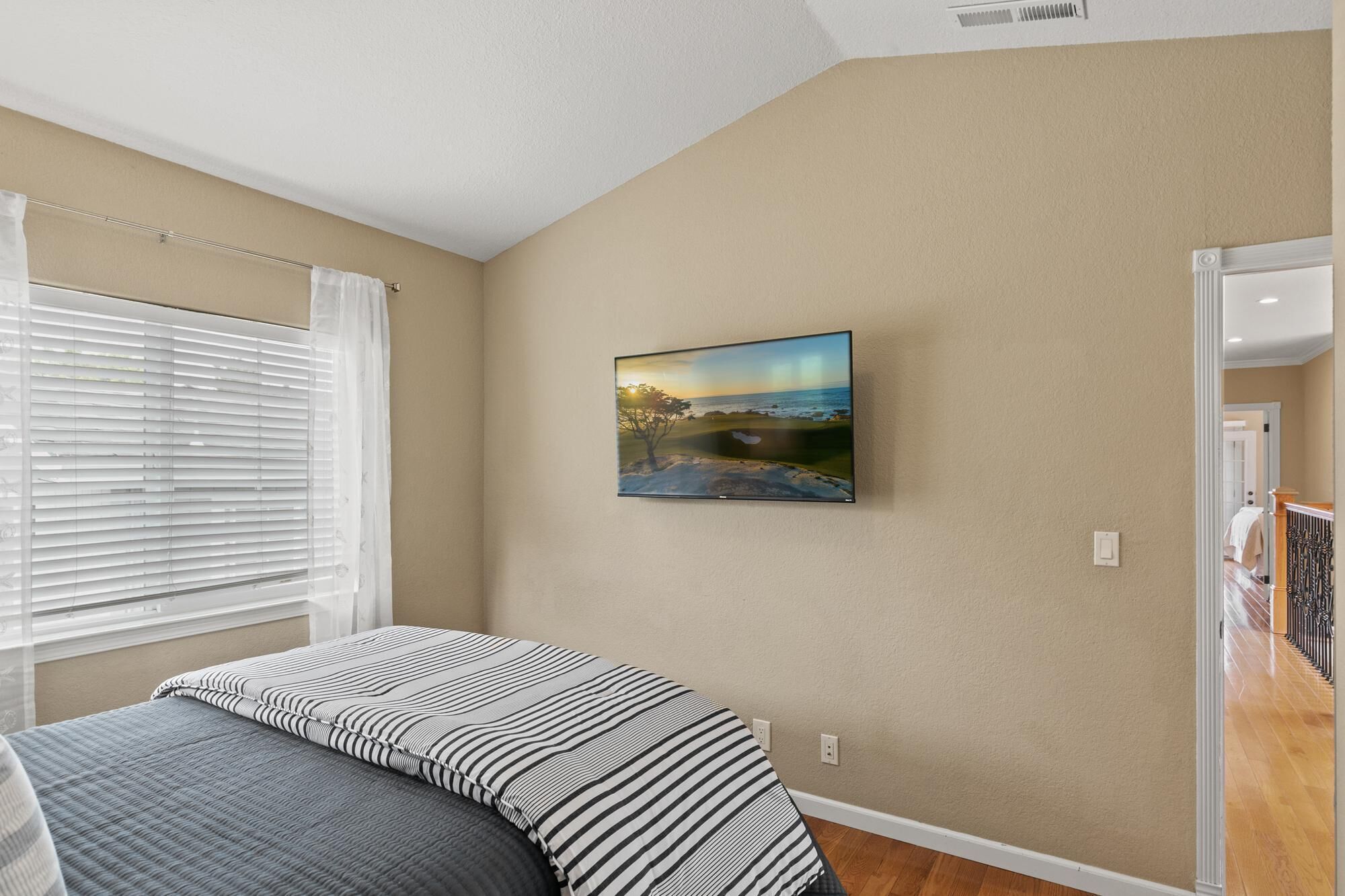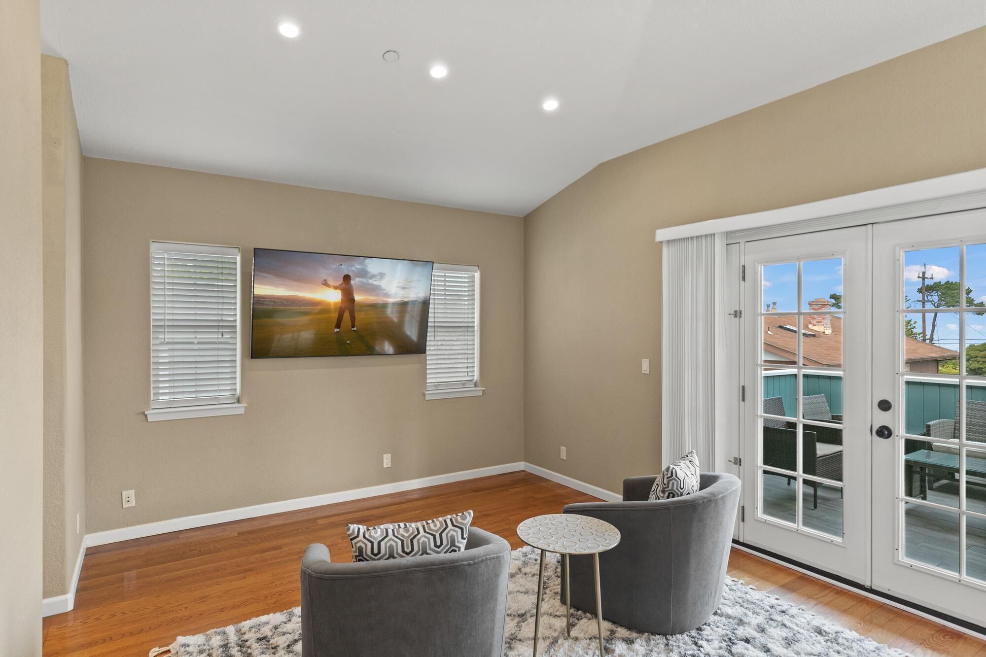 Beautiful four bedroom with Bay Views Summary:Welcome to Monterey's Wave-n-Sea! Located above Cannery Row and the Monterey Bay Aquarium in a very desirable neighborhood, close to local beaches and the Monterey Recreation Trail for walking or biking along the ocean, this home offers you the quintessential peninsula lifestyle! Monterey's Wave-n-Sea is a lovely, modern four (4) bedroom, two (2) bath home. New beds and luxury linens invite you to a restful slumber every night. The Kitchen features granite counter-tops, ample storage space, stainless steel appliances and a breakfast bar. Monterey Wave-n-Sea;s dining area is accoutered with a glass top dining table. The living room has a large, comfortable sectional sofa, gas fireplace and large SMART TV, a bedroom and full bathroom complete the downstairs. Hardwood floors, dual-paned windows and golden tones throughout this home keep it feeling warm and cozy. Upstairs you will find another bedroom, an office with a La-Z-Boy Queen Sleeper and the owner's suite with a large walk-in closet and French doors that open to a rooftop balcony with bay views! The en-suite Master bath offers a separate walk-in shower and relaxing jetted tub. Spend your mornings enjoying coffee, and evenings with wine or cocktails while soaking up Monterey Bay views from the balcony off your master bedroom. Your hosts have provided the services of Carmel Coast Estate, Inc a locally owned and operated full service Real Estate and Property Management company. Your Property Managers are available by cellular phone, text messaging and email during your visit. Here at Carmel Coast Estate, we take every measure to ensure the cleanliness of our fully furnished homes. We clean our homes with hospital grade, environmentally friendly, pet & child safe cleaning solutions. Our primary cleaning agent kills 99.99% of all pathogens known to man. As a Sanitizer, it kills 99.99% of common bacteria, As a Virucide it kills 99.99% of viruses, ranging from Herpes Simplex Virus Type 2, Influenza A2, CV1 through 19, Ebola, HBV and HIV-1, Hepatitis C. In order to maintain proper security for owners, guests and contractors, the exterior of this property has electronic surveillance equipment and the property owners may conduct monitoring and surveillance activities. The deployment of electronic surveillance is limited to locations that do not violate the reasonable expectations of privacy. Electronic surveillance shall not be implemented in situations where confidential or sensitive information is likely to be recorded and distinguishable. Electronic surveillance shall not be installed inside the home; however, doors to the exterior may be covered by electronic surveillance. Monthly rental rates are discounted to reflect that guests booking reservations of more than 28 days are required to pay Gas, Electric and Water Utilities in addition to the quoted rental rate. Carmel Coast Estate specializes in Real Estate Sales, Luxury Vacation Rentals, Long Term Rental and Home Watch Services in Big Sur, Carmel, Carmel-by-the-Sea, Carmel Highlands, Carmel Valley, Pacific Grove, Pebble Beach, Monterey and Seaside.The Neighborhood:The Monterey Peninsula is different than any other part of California. Here, time slows, the architecture is humble (with the exception of the homes in Pebble Beach), and the lifestyle is the perfect synthesis of SoCal laid back and NorCal sophisticated. On the northern side of the peninsula, the town of Monterey draws most of the tourists, while farther south, Carmel-by-the-Sea lures the easygoing wealthy set. Tremendous price tags on real estate helps maintain the small-community atmosphere along Monterey's jaw-dropping coastline. This area makes for a tremendous road-trip stop or romantic weekend stay. And did we mention the golf courses? This stretch of the California coastline boasts some of the most coveted fairways in the world. Add to than an abundance of natural wonders, luxury resorts and seafood restaurants, and Monterey might just be the ideal destination for your next getaway.
