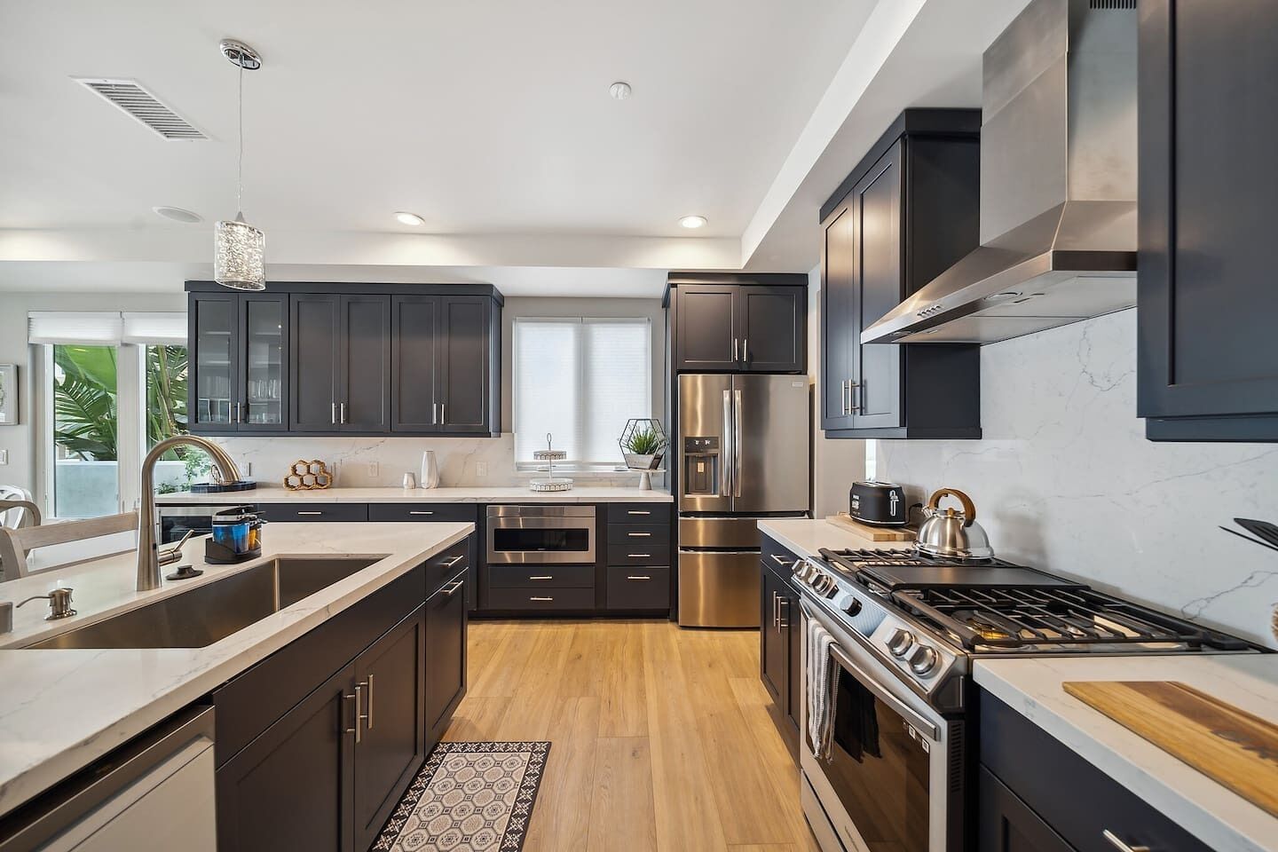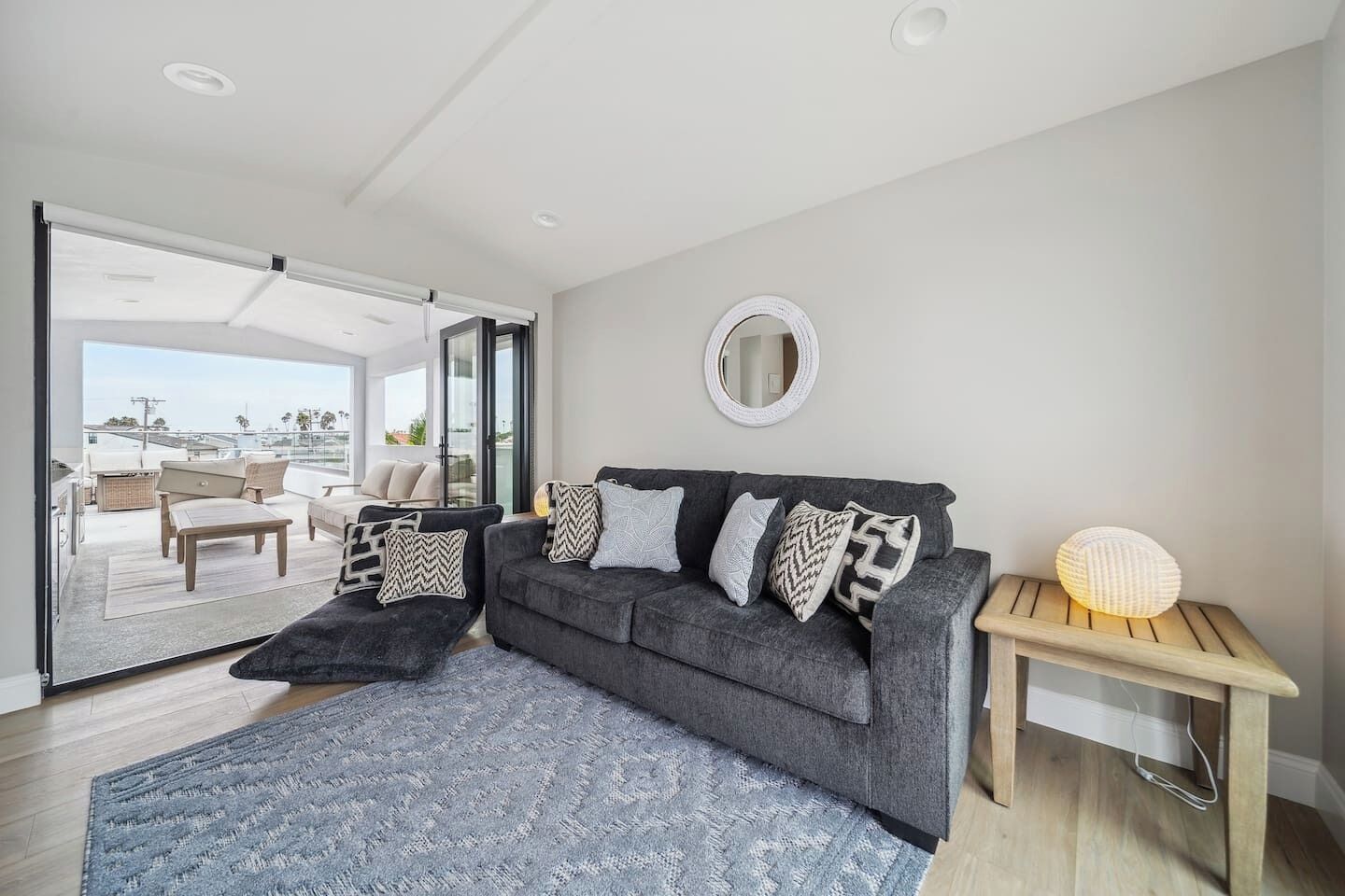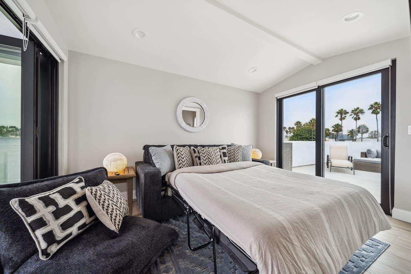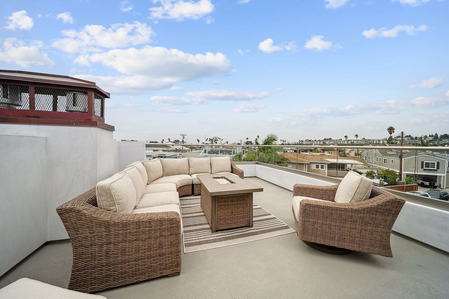 Newport Elegance: Ocean Views Oasis - Magnificent 3-level beach house with classic furnishings; ideal for a group or family- TWO spacious roof deck lounges w/sofas, sun chairs, TVs, firepit & covered bar area- 0.3-mile walk to the beach, 0.8 miles to Newport Pier, short drive to Balboa Island Ferry- World-class shopping options like Fashion Island, Via Lido, Balboa Island, and more- Book now and make unforgettable memories in classic Newport Beach style!Welcome to this beachy slice of paradise and the perfect place for you, your friends and family to enjoy chill vibes and sea breezes with the beach just a short walk away!This open and airy home has 5 stylish bedrooms (1 king & 4 queen beds), all with their own ensuite bathroom. The living areas offer a welcoming atmosphere and comfort at every turn. The kitchen is a culinary dream and perfect for preparing meals to enjoy at home. There are two rooftop terraces decked out and ready for daytime sunning or nighttime lounging and wind-down time.With its prime location in Newport Beach, you'll have easy access to nearby attractions and the beach just a few minute walk away.This home is sure to delight your senses in true Newport Beach style. Get booked today while we get ready to host you!You’ll have exclusive access to the entire home during your stay.Enjoy this world-famous SoCal beach city with something for everyone to enjoy. You’ll be a short walk to the beach, a short drive to world-class shopping like Fashion Island, and John Wayne International Airport is just 6 miles away. Walk down to Newport Beach Pier (.8 miles) and stroll to Balboa Pier. Pier to Pier is about 2 miles and filled with fabulous views. Balboa Park is also fun. It’s a lively oceanfront park and a popular destination for beach activities. Take a ferry to nearby islands like Balboa or Lido, and enjoy meandering the cute streets for a day. Also, Corona Del Mar is another charming place to visit, about a 4.5-mile drive from the home.RESTAURANT RECOMMENDATIONS:- Sol Grill - 0.8 miles- The Original Mama D’s Italian Kitchen - 0.2 miles- The Ally Restaurant and Bar - 0.9 miles- TK Burgers - 0.6 milesGROCERY STORES:- Pavilions - 0.2 miles- Vons or Ralphs - 2 miles- Whole Foods - 4 milesThe home is 6 miles from the John Wayne/Orange County Airport (SNA) and 44 miles from LAX (Los Angeles Airport, north of Newport Beach).The best means of transportation is by car. The home has a 2-car tandem garage for compact vehicles as the spaces are narrow. You can hire private transport (Towncar) if you’re not driving. There are also rideshare services like Super Shuttle and of course curb-ride services like Uber and Lyft as well as taxis.It’s a 3-story beach house, so guests need to climb stairs.We provide some complimentary essentials like soap, shampoo/conditioner, body wash, laundry soap, dishwasher capsules, and toilet paper.There’s no daily housekeeping service, but if you’d like the place cleaned during your stay, that service can be arranged for an extra fee.A security deposit may be required prior to arrival or at check-in, subject to the booking platform used to make the reservation. This fee is charged as a credit card transaction and refunded after check-out, provided all terms are met.Guests will be requested to sign a Rental Agreement upon booking confirmation.WE KINDLY ASK ALL GUESTS TO ABIDE BY THESE HOUSE RULES:- Travelers must be at least 25 or older to book.- No smoking of any kind (tobacco or cannabis) is allowed inside the home. Failure to comply will incur a $500 penalty.- Using recreational drugs or partaking in illegal activity on the premises is strictly prohibited.- No parties or events are permitted. Excessive noise is not tolerated, especially after 10 pm, to respect the neighbors. The home is equipped with noise sensors that will notify us if the volume at the home exceeds the acceptable level.- No more guests than those listed in your reservation are allowed.- Renters agree to cover any charge related to damages that occurred during their stay or cover necessary extra-cleaning charges if such is needed after their stay.- Renters may be required to provide a government ID on the day of checking in or during their stay.- NO PETS allowed.- Travelers must be at least 25 or older to book.- No smoking of any kind (tobacco or cannabis) is allowed inside the home. Failure to comply will incur a $500 penalty.- Using recreational drugs or partaking in illegal activity on the premises is strictly prohibited. - No parties or events are permitted, and excessive noise is not tolerated. The home is equipped with noise sensors that will notify us if the volume at the home exceeds the acceptable level. And no loud music is allowed after 10 pm. Please be respectful of the neighbors.- No more guests than those listed in your reservation are allowed.- No tent or other structures may be set up on the property grounds.- Renters agree to cover any charge related to damages that occurred during their stay or cover necessary extra-cleaning charges if such is needed after their stay.- Renters may be required to provide a government ID on the day of checking in or during their stay.- Please avoid moving furniture.- NO PETS allowed.