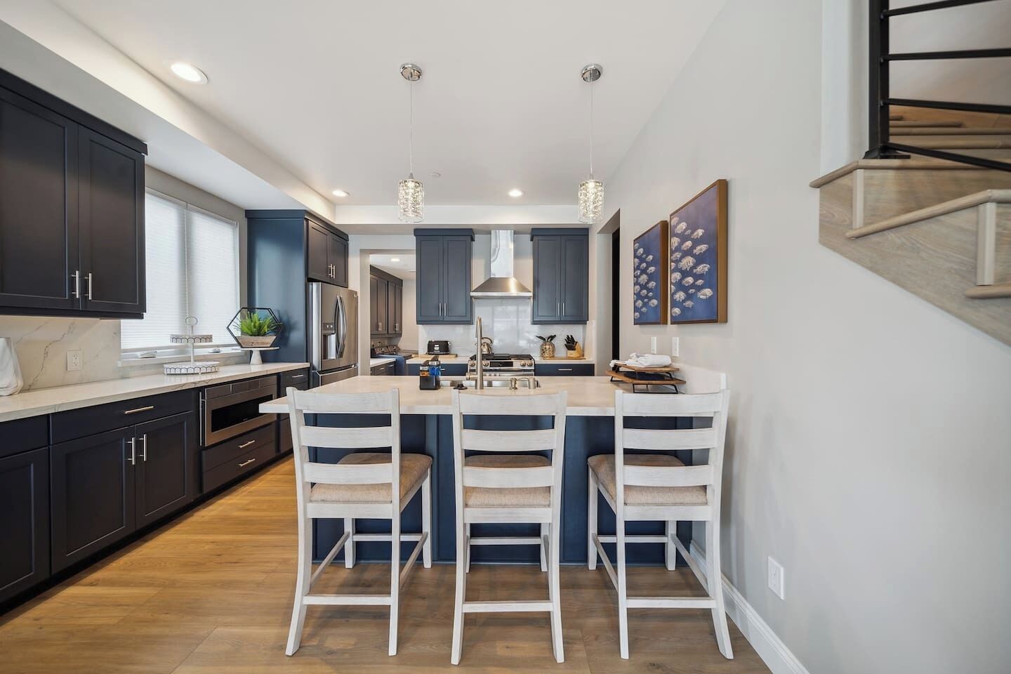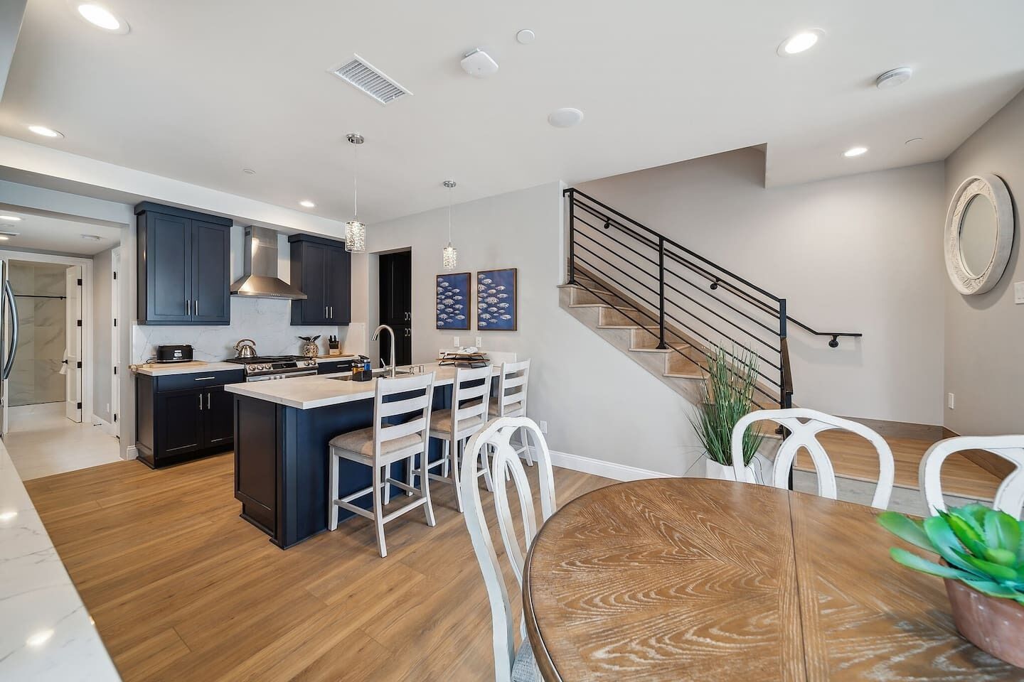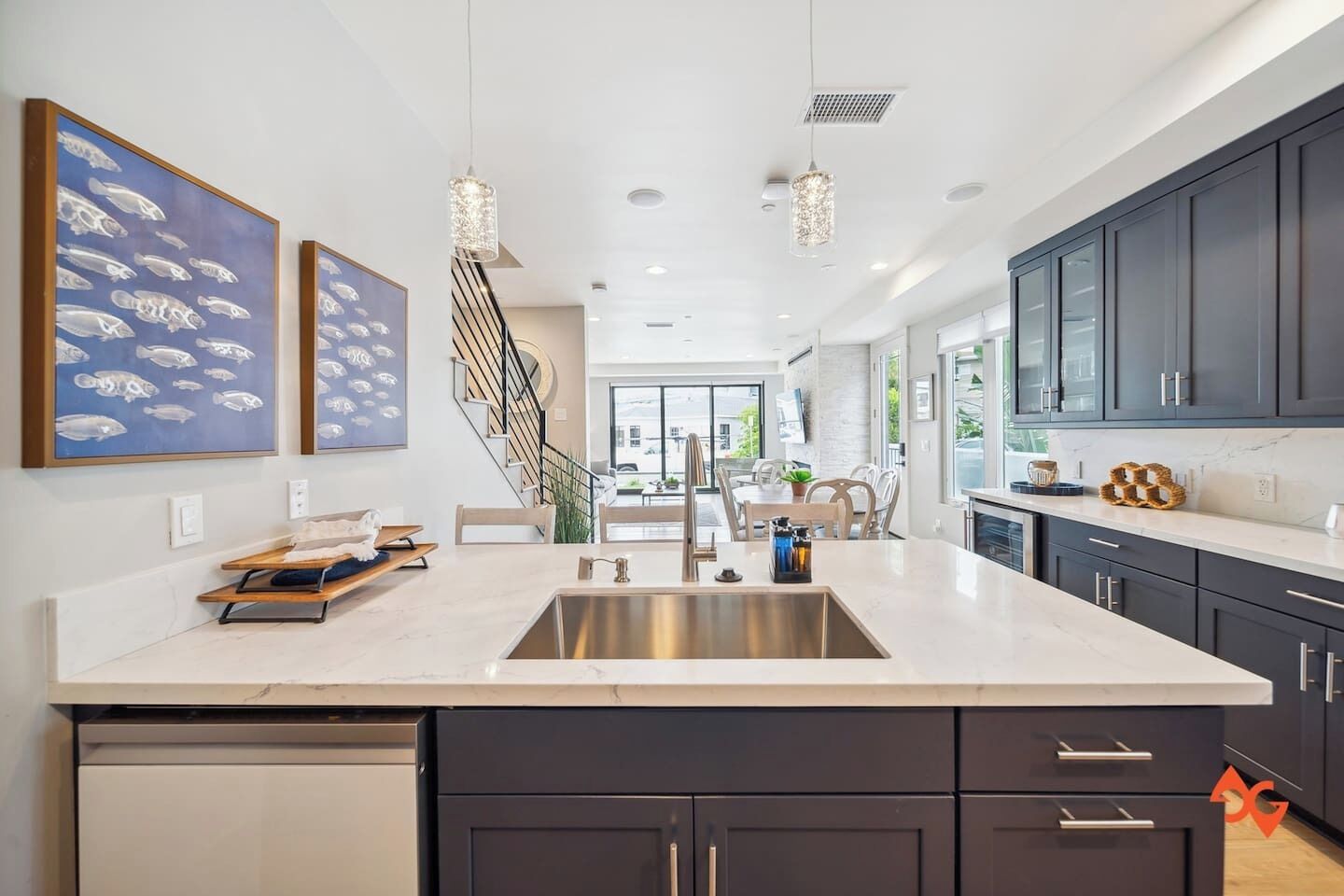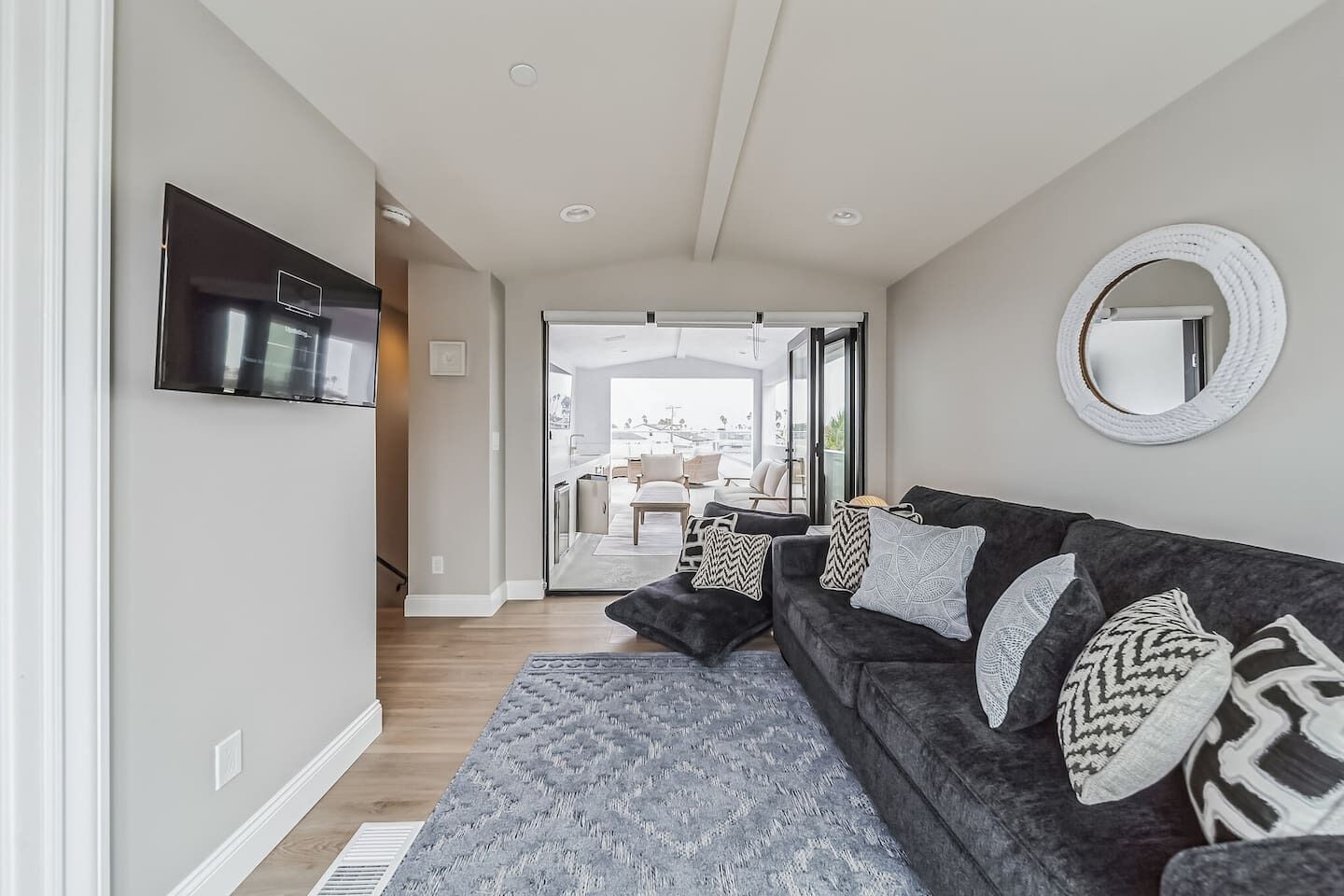 Newport Elegance: Ocean Views Oasis - Magnificent 3-level beach house with classic furnishings; ideal for a group or family- TWO spacious roof deck lounges w/sofas, sun chairs, TVs, firepit & covered bar area- 0.3-mile walk to the beach, 0.8 miles to Newport Pier, short drive to Balboa Island Ferry- World-class shopping options like Fashion Island, Via Lido, Balboa Island, and more- Book now and make unforgettable memories in classic Newport Beach style!Welcome to this beachy slice of paradise and the perfect place for you, your friends and family to enjoy chill vibes and sea breezes with the beach just a short walk away!This open and airy home has 5 stylish bedrooms (1 king & 4 queen beds), all with their own ensuite bathroom. The living areas offer a welcoming atmosphere and comfort at every turn. The kitchen is a culinary dream and perfect for preparing meals to enjoy at home. There are two rooftop terraces decked out and ready for daytime sunning or nighttime lounging and wind-down time.With its prime location in Newport Beach, you'll have easy access to nearby attractions and the beach just a few minute walk away.This home is sure to delight your senses in true Newport Beach style. Get booked today while we get ready to host you!You’ll have exclusive access to the entire home during your stay.Enjoy this world-famous SoCal beach city with something for everyone to enjoy. You’ll be a short walk to the beach, a short drive to world-class shopping like Fashion Island, and John Wayne International Airport is just 6 miles away. Walk down to Newport Beach Pier (.8 miles) and stroll to Balboa Pier. Pier to Pier is about 2 miles and filled with fabulous views. Balboa Park is also fun. It’s a lively oceanfront park and a popular destination for beach activities. Take a ferry to nearby islands like Balboa or Lido, and enjoy meandering the cute streets for a day. Also, Corona Del Mar is another charming place to visit, about a 4.5-mile drive from the home.RESTAURANT RECOMMENDATIONS:- Sol Grill - 0.8 miles- The Original Mama D’s Italian Kitchen - 0.2 miles- The Ally Restaurant and Bar - 0.9 miles- TK Burgers - 0.6 milesGROCERY STORES:- Pavilions - 0.2 miles- Vons or Ralphs - 2 miles- Whole Foods - 4 milesThe home is 6 miles from the John Wayne/Orange County Airport (SNA) and 44 miles from LAX (Los Angeles Airport, north of Newport Beach).The best means of transportation is by car. The home has a 2-car tandem garage for compact vehicles as the spaces are narrow. You can hire private transport (Towncar) if you’re not driving. There are also rideshare services like Super Shuttle and of course curb-ride services like Uber and Lyft as well as taxis.It’s a 3-story beach house, so guests need to climb stairs.We provide some complimentary essentials like soap, shampoo/conditioner, body wash, laundry soap, dishwasher capsules, and toilet paper.There’s no daily housekeeping service, but if you’d like the place cleaned during your stay, that service can be arranged for an extra fee.A security deposit may be required prior to arrival or at check-in, subject to the booking platform used to make the reservation. This fee is charged as a credit card transaction and refunded after check-out, provided all terms are met.Guests will be requested to sign a Rental Agreement upon booking confirmation.WE KINDLY ASK ALL GUESTS TO ABIDE BY THESE HOUSE RULES:- Travelers must be at least 25 or older to book.- No smoking of any kind (tobacco or cannabis) is allowed inside the home. Failure to comply will incur a $500 penalty.- Using recreational drugs or partaking in illegal activity on the premises is strictly prohibited.- No parties or events are permitted. Excessive noise is not tolerated, especially after 10 pm, to respect the neighbors. The home is equipped with noise sensors that will notify us if the volume at the home exceeds the acceptable level.- No more guests than those listed in your reservation are allowed.- Renters agree to cover any charge related to damages that occurred during their stay or cover necessary extra-cleaning charges if such is needed after their stay.- Renters may be required to provide a government ID on the day of checking in or during their stay.- NO PETS allowed.- Travelers must be at least 25 or older to book.- No smoking of any kind (tobacco or cannabis) is allowed inside the home. Failure to comply will incur a $500 penalty.- Using recreational drugs or partaking in illegal activity on the premises is strictly prohibited. - No parties or events are permitted, and excessive noise is not tolerated. The home is equipped with noise sensors that will notify us if the volume at the home exceeds the acceptable level. And no loud music is allowed after 10 pm. Please be respectful of the neighbors.- No more guests than those listed in your reservation are allowed.- No tent or other structures may be set up on the property grounds.- Renters agree to cover any charge related to damages that occurred during their stay or cover necessary extra-cleaning charges if such is needed after their stay.- Renters may be required to provide a government ID on the day of checking in or during their stay.- Please avoid moving furniture.- NO PETS allowed.