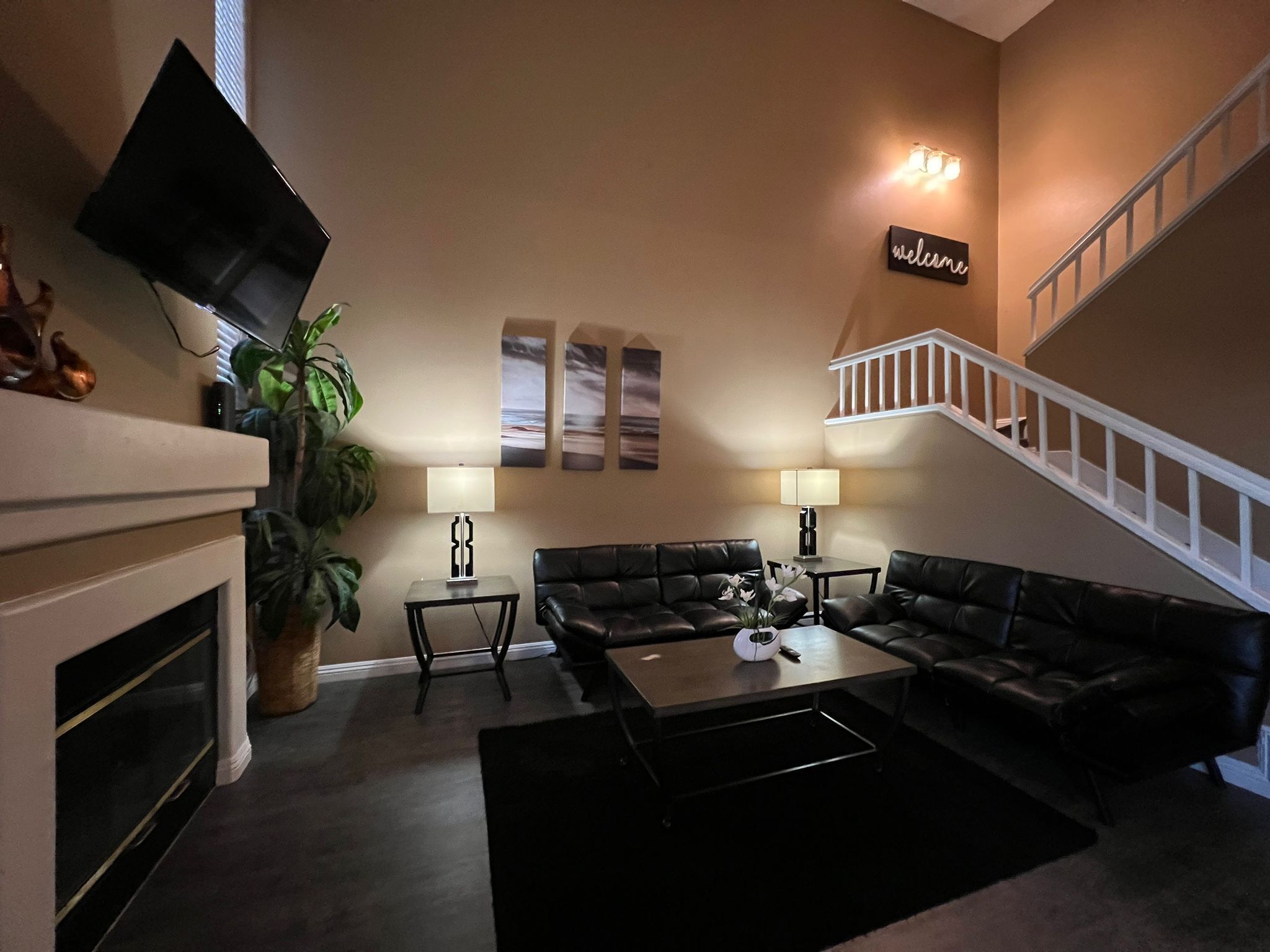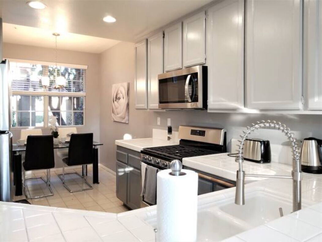 3 bedroom + 3 full bathroom modern home in Tustin / Irvine. 15 MINUTES TO DISNEY **Newly listed in July 2024!**Luxurious & bright 3 bedroom + 3 bathroom Townhouse in terrific Tustin / Irvine! Newly updated & furnished, this listing is excellent for corporate housing or vacation stays. Perfectly centered in Southern California, we are nearby the Tustin Marketplace, only 20 minutes to Disneyland & Knott's, 30 minutes to Newport beach, 1 hour to Los Angeles, and 2 hours to San Diego. Highlights include: high ceilings, lots of light, garage parking, community pool & Jacuzzi, shopping + more! A+ neighborhood.HIGHLIGHTS INCLUDE:Newly listed, updated & furnished in October 2018.1,500 square foot, 3 bedroom + 3 full bathroom house.Terrific location in Southern California - Next to the Tustin Marketplace and close to major attractions like Disneyland, Knott's, the beach and more.Walk to shopping and moviesLots of light - Very bright and airyHigh CeilingsStainless steel appliancesCommunity Pool with JacuzziPublic BBQ grills by the poolWifi + Wifi TVWasher / Dryer in unitCentral Air condition + Heat (Nest thermostat)Garage parking for 2 cars3rd bedroom is bedroom / office with computer desk and chairPatio areaDining roomBreakfast nookLiving room with sofa bedFireplaceWood flooring throughoutMASTER BEDROOM: 2 FULL BEDS (SLEEPS 4)BEDROOM #2: QUEEN BED (SLEEPS 2)BEDROOM #3 BEDROOM / OFFICE WITH COMPUTER DESK, CHAIR AND SOFA BED (SLEEPS 1 (or 2 children))LIVING ROOM : SOFA BED (SLEEPS 2)