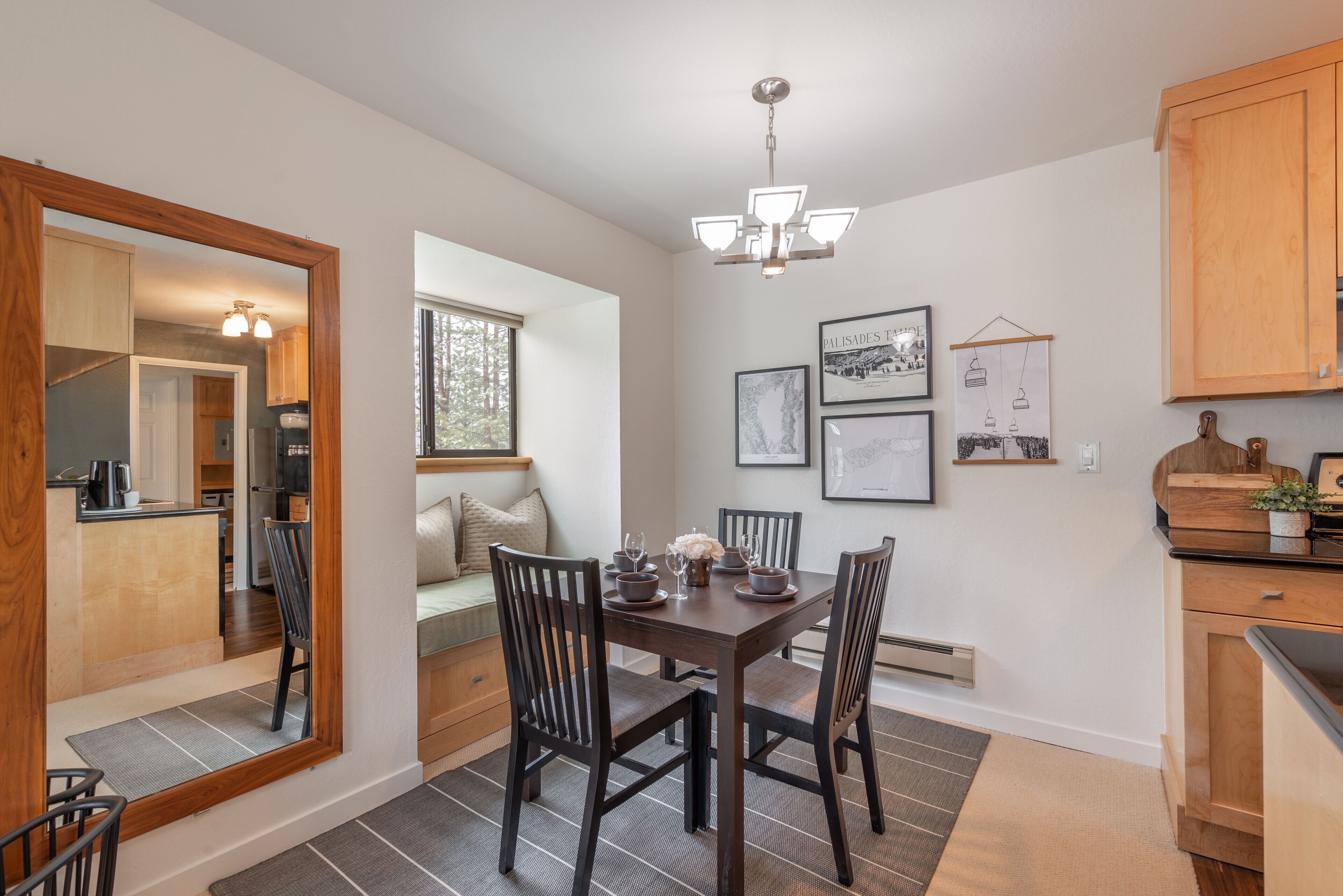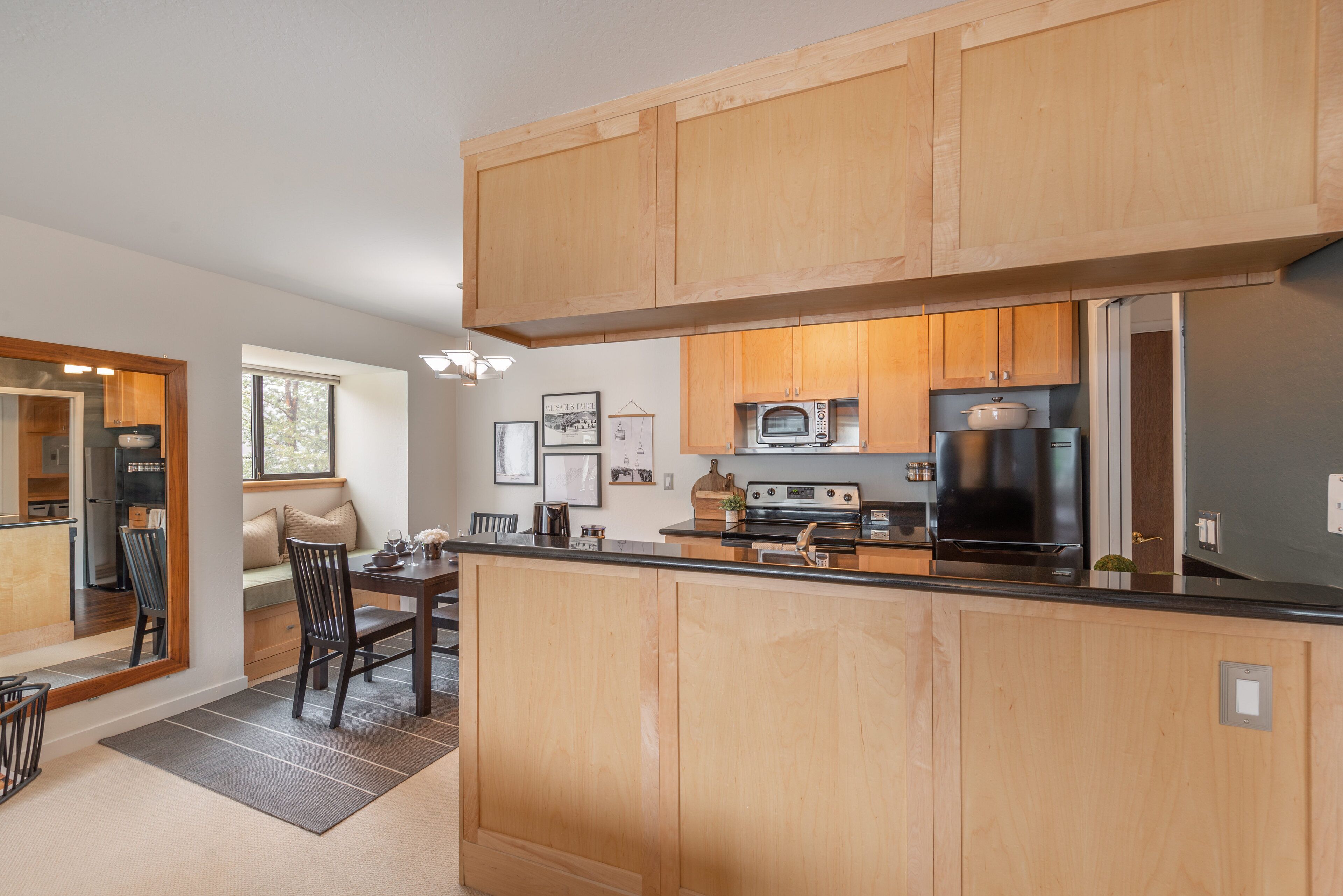 NEW - Palisades Tahoe Condo - Under the Tram! **Save $ with lower weekday rates***Save 10% when you book for a full week**Located just 0.1 miles from the lifts and 0.6 miles from the Village at Squaw. This is the best place to call home for a long weekend no matter the season. Enjoy all that Palisades Tahoe has to offer, from the summer hiking trails, to the winter ski runs, to the year-round shops and restaurants in The Village; all just a short walk out the front door! This charming condo is recently updated and comes everything that you will need for your stay. Relax after a long day on the slopes in front of the wood burning fireplace or open the balcony doors and enjoy the cool mountain air after a day of hiking Shirley Canyon.Main Floor:- Bedroom: 1 queen bed, sleeps 2, closet, window seat, and a TV, fan in closet- Bathroom: 3/4 bath with a steam shower, toilet, sink, heated floors and a lighted mirror- Living Room: Full size pull out sofa bed, day bed, TV, bar table top seating for 2, wood burning stove, balcony, sleeps 3- Kitchen: Fully stocked, glass top electric stove, microwave, fridge and freezer, dishwasher, and sink- Dining Room: Seating for 4, window seat with seating for 2Laundry:- Communal laundry on first floor.Parking:- Parking Lot: 1 vehicles max in building parking lotSki Locker - Guests will have access to a ski locker for ski and gear storage during their stay. *This unit is on the 3rd floor of a walk up building. *No smoking*A fan is provided for air flow should you need it during warmer monthsSTR22-4123