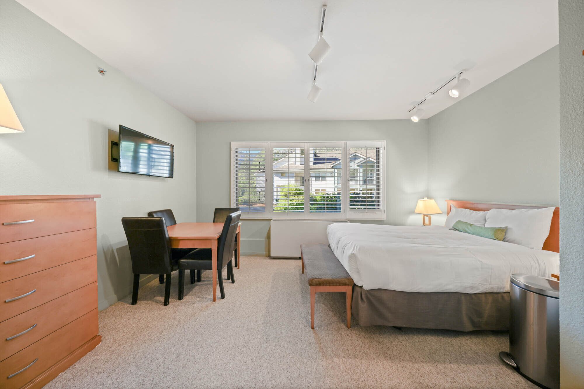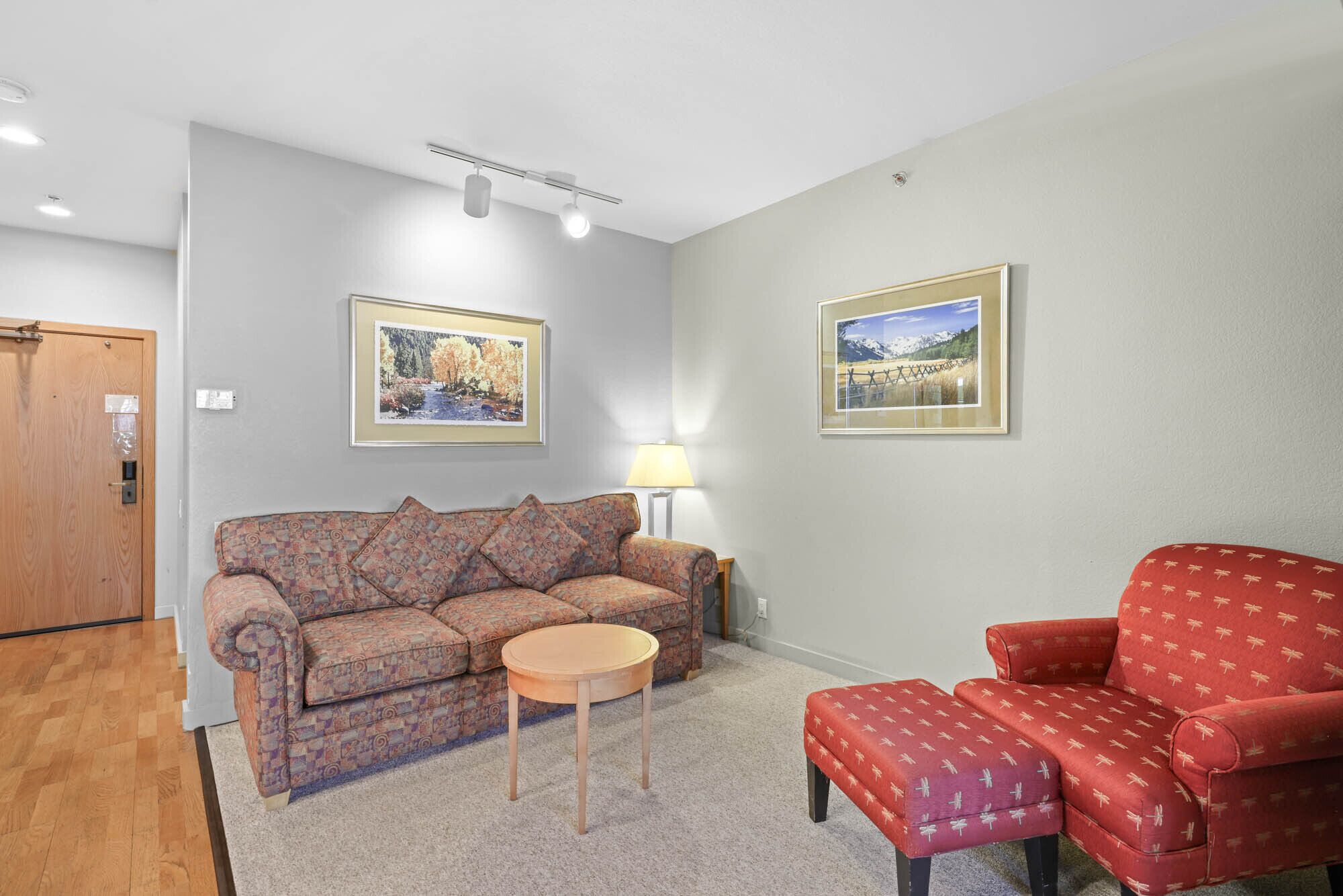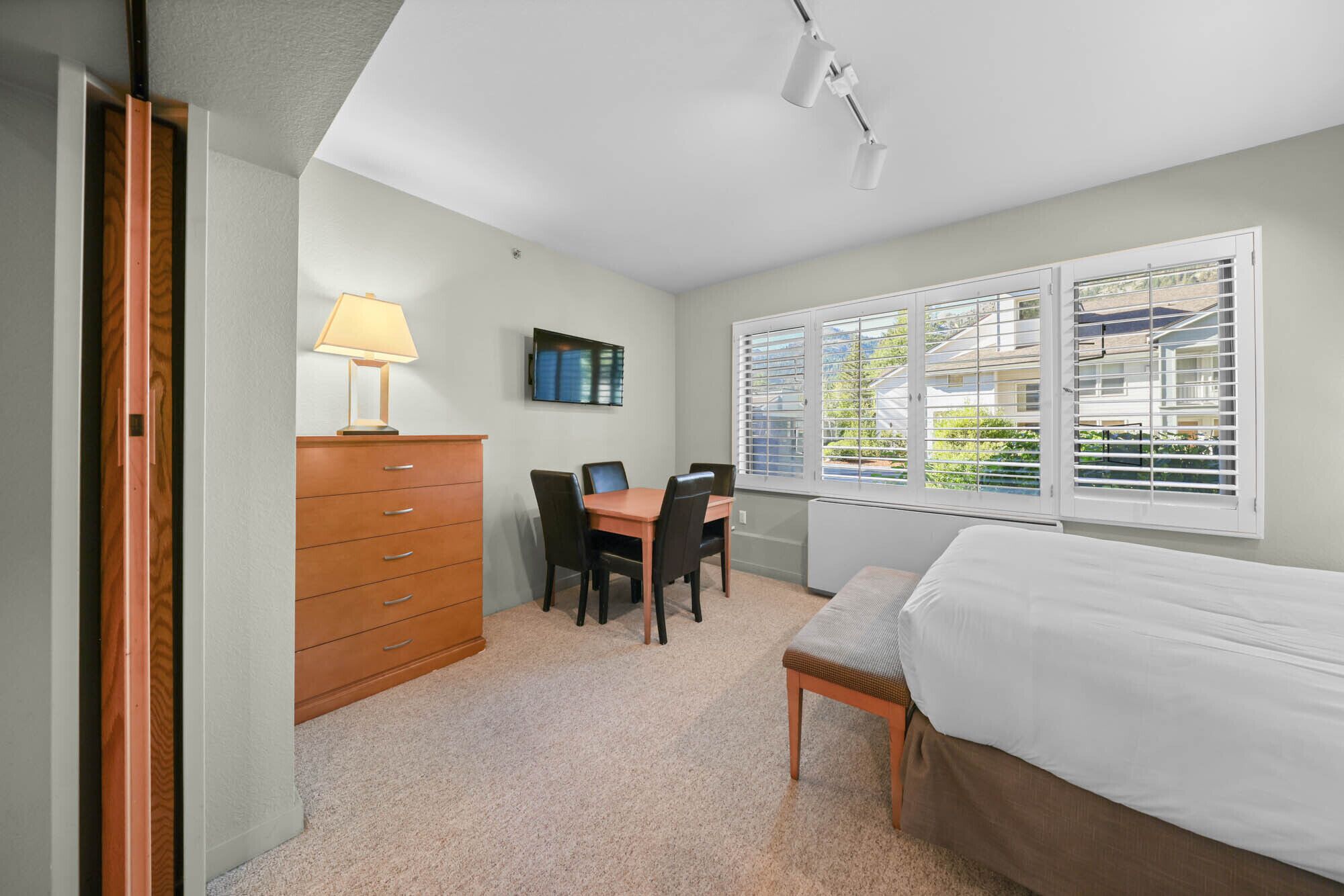 New! Studio, Bike in/out, Walk to Village - 156 Studio Condominium #156 offers:- Approximately 570 square feet with a living space, sleeping area, kitchenette and bathroom.- A queen size bed and kitchenette can be separated from living space by a sliding door.- Living area features a sofa, coffee table, TV and DVD player and dining area that seats 4 people.- The kitchenette is stocked with a mini-refrigerator, dishwasher, microwave, coffeemaker, and cooking utensils. There is no oven. - A full bathroom with shower and oversized bathtub.- The studio condominium accommodates up to 4 people. Located at ski-in/ski-out Palisades Tahoe Lodge with on-site covered parking, seasonal swimming pool, indoor and outdoor hot tubs, this four-season condo is perfect for a couple or friends looking to escape to the mountains. Just steps from The Village at Palisades Tahoe, and a 10-minute drive to Lake Tahoe, you can have the best of both worlds at this studio condo. Enjoy easy access skiing the slopes in the winter or venture out for a paddle across glassy Lake Tahoe in the summer. The condo itself accommodates up to four people, with all the amenities necessary to enjoy your stay at Palisades Tahoe. It features a well-stocked kitchenette with dishwasher, mini-refrigerator, two-burner stovetop, microwave, and all the essentials to whip up delicious meals. Adjacent to the kitchenette is the living area with sofa, coffee table, comfy chair, and flat-screen TV. The sleeping space features a queen bed partitioned from the common area, with a view of the Palisades Tahoe Lodge courtyard, and offers a seating area for four people to dine. There is a full shower/bath and closet to hang your belongings and feel right at home.Your rental is a contract for a single vacation rental condo, with one owner in a multi-floor property. We are unable to reassign guests and adhere to all stated cancellation policies. PLEASE NOTE: Unless you reserved a condominium equipped with a portable Air Conditioning unit, your condominium DOES NOT have Air Conditioning.
