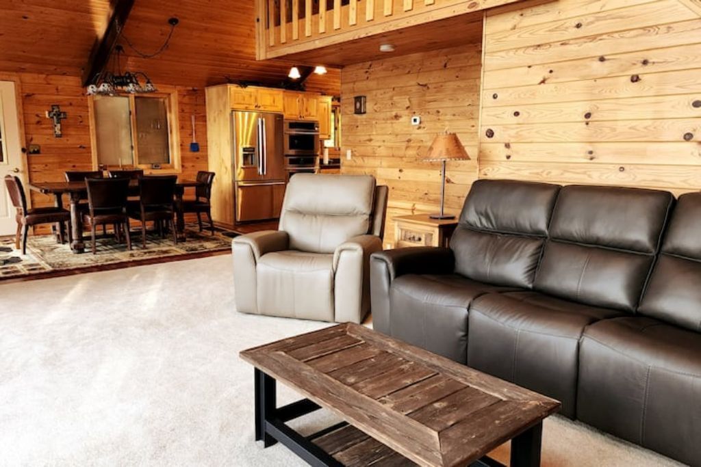 Red Oak Lodge Family-friendly fishing paradise! Ready to disconnect and spend more time with the ones you love? Welcome to your new home away from home. Our home has 3 floors and sleeping arrangements for 10, that are perfect for families or small groups to come together, all while still offering space for everyone. Tucked away just outside of Longville, MN, this lakefront cabin is the perfect place to use as a hub to fish the Woman Lake chain or shopping. While you're here, enjoy the peaceful neighborhood and quiet serene lakefront views.The spaceAs you walk into our cabin through the 3-season porch, you're surrounded by windows that offer your first glimpses of the beautiful views that you'll be enjoying on your stay. As you continue throughout the home, you'll enter the main floor. The first thing you'll notice off to the right is floor-to-ceiling lakeside windows with a glass patio door that leads you directly to the lake, along with knotty pine walls and custom ironwork throughout the entire home. To your left is the dining and kitchen area, and to your right is the living room and master bedroom. Our kitchen has a full-sized fridge with a freezer on the bottom, a double microwave (top) and oven (bottom), along with a built-in glass stove top built into the island. It also comes with a coffee maker (and bean grinder if needed) and tea leaf holders for those who still enjoy something hot to drink. The dining area has a unique custom-made fractal burned red oak table that is perfectly placed to put you at the center of comings and goings of your whole group. Located just to the left of the is a full-sized washer and dryer that you'll be more than welcome to use during your stay. The living room is set up in such a way that you're able to enjoy the stunning views of the lake with the convivence of having a TV, and the weather isn't all that great out. Short of being outside, you can't beat the views (especially the sunsets) that you'll enjoy while you're here. At the end of the living room, you'll have two options. One will lead you up to our loft area, and the other will lead you straight into the master bedroom. The master bedroom has a king-sized bed that is situated on top of a custom-built log bed. Within the master bedroom, you'll have your own private TV as well as access to a walk-through full bathroom. This can easily be made private by locking the door that is just to the left of the kitchen next to the washer and dryer. At the top of the loft to the right, there is a private bedroom with two twin beds and a wall mounted TV. In the middle is a full sized bathroom, and to the left is a cozy open bedroom with a queen mattress that has some of the best views of the lake through the second story windows. Located in the middle of the living room is a door that, upon first look, might look like it's just a closet door. However, it leads you down to the walkout basement. The basement is perfect for a few couples, how it's most popularly used, the kid's area. It has two full beds, which is perfect for everyone to be close enough to hang out but still have their own sleeping area. There is also a couch and TV down there. We've found that this is such a fun way for both the adults and kids to enjoy their stay after a long day of fun and the sun, and everyone is winding down for the night. Aside from having a walkout to the lake, there is also another full-sized bathroom, so no matter which floor you're on, there is a bathroom. One of the coolest features of the downstairs, however, is the fishing room. Within this room is a sink and cleaning area that can be used to clean your catch of the day as well as a mini fridge and freezer combo. There's also fishing rod holders and enough space to put your fishing items without having to leave everything outside if you don't want to.
