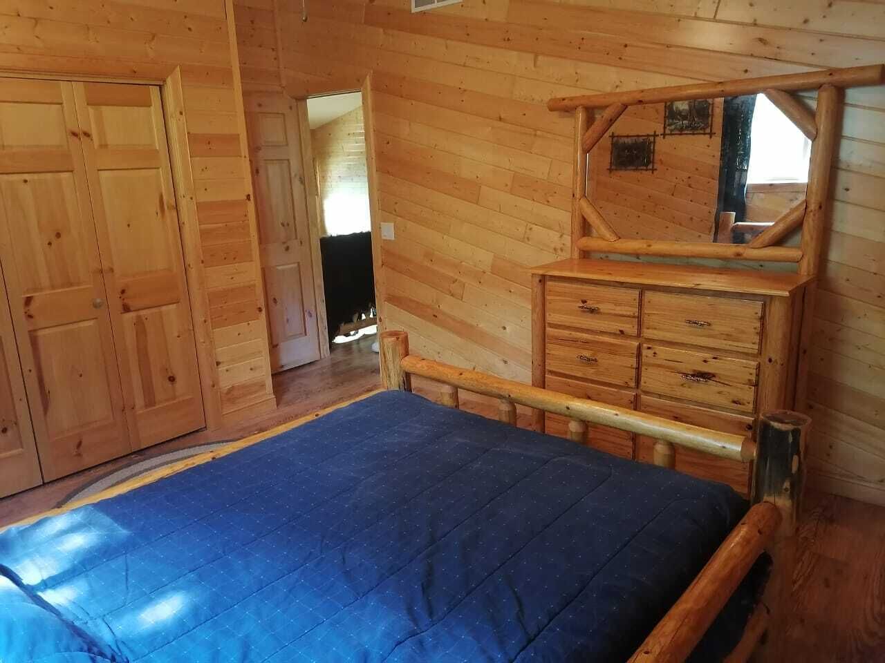 🌲 Rare Woodland Retreat Take it easy at this tranquil getaway. Enjoy this unique private home with acreage. Many lakes are nearby, along with ATV & snowmobile trails. Sit outside around the firepit to stargaze, listen to loons and owls, and make memories. There is wildlife galore (you may even see a bear)! Inside there are 3 cozy bedrooms, each with a queen bed, and a queen futon in the living...