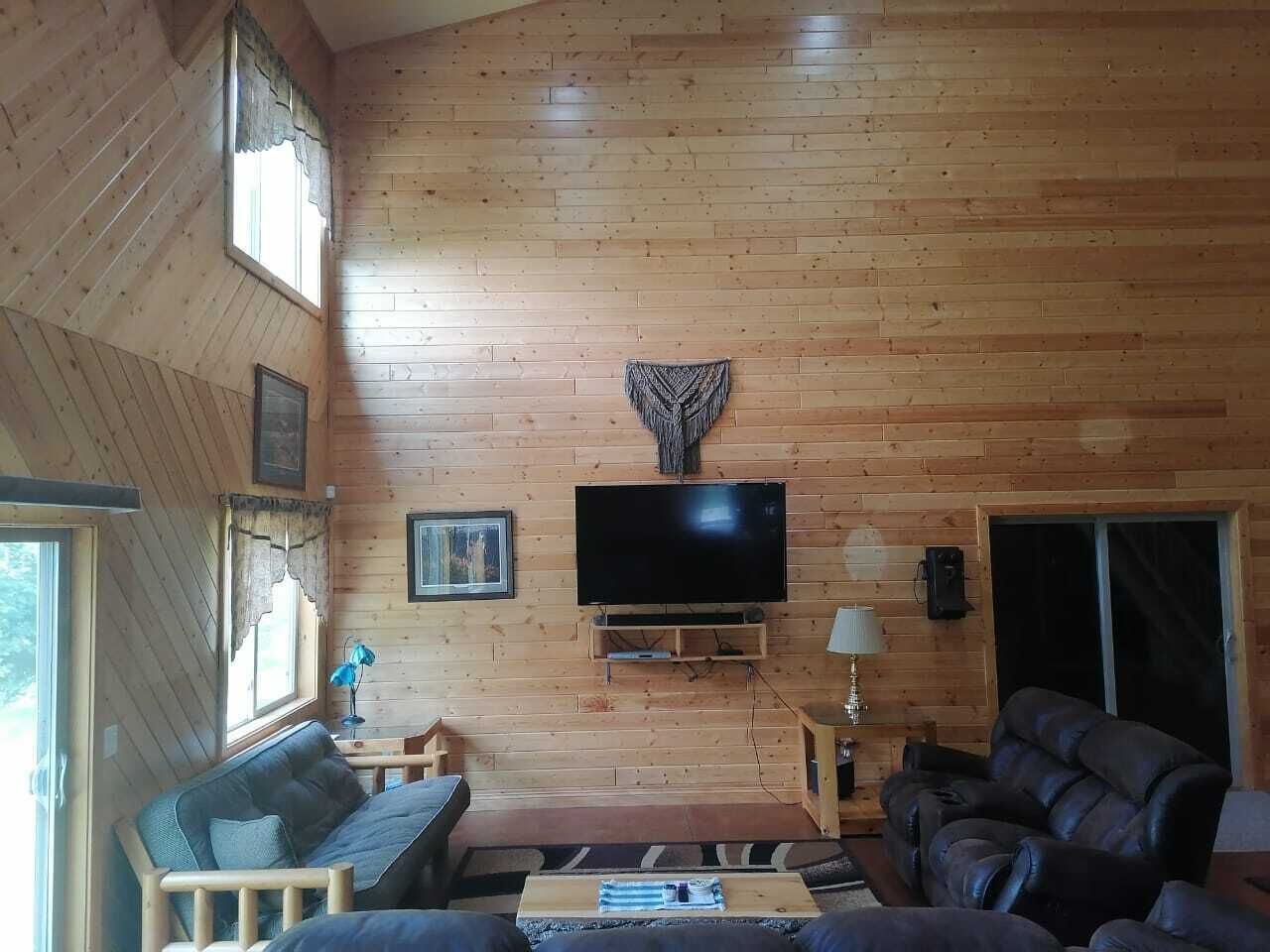 🌲 Rare Woodland Retreat Take it easy at this tranquil getaway. Enjoy this unique private home with acreage. Many lakes are nearby, along with ATV & snowmobile trails. Sit outside around the firepit to stargaze, listen to loons and owls, and make memories. There is wildlife galore (you may even see a bear)! Inside there are 3 cozy bedrooms, each with a queen bed, and a queen futon in the living room. Open area great room includes full kitchen, dining room, and living room. Patio and fire pit outside.
