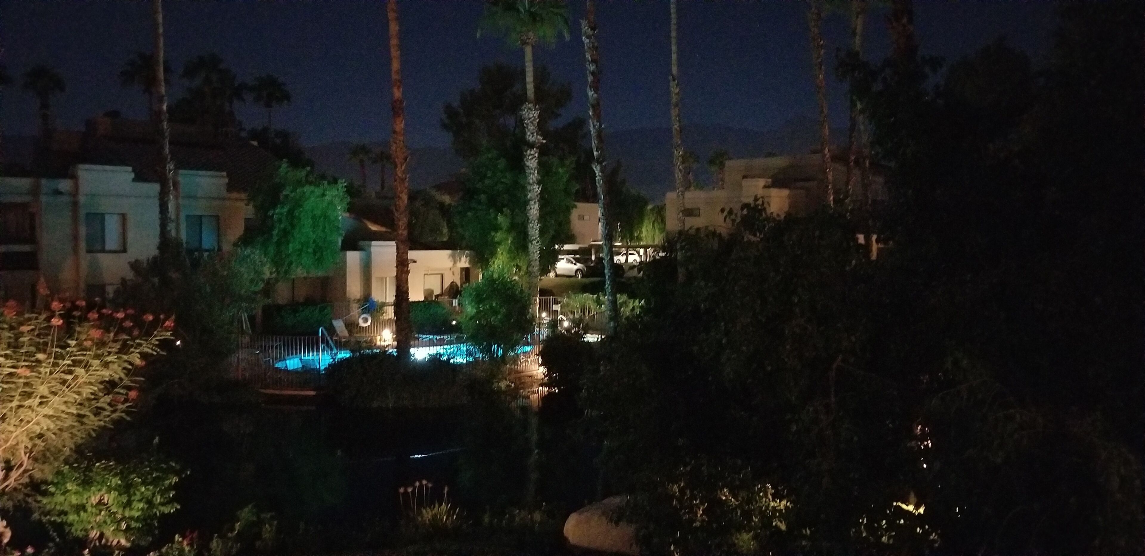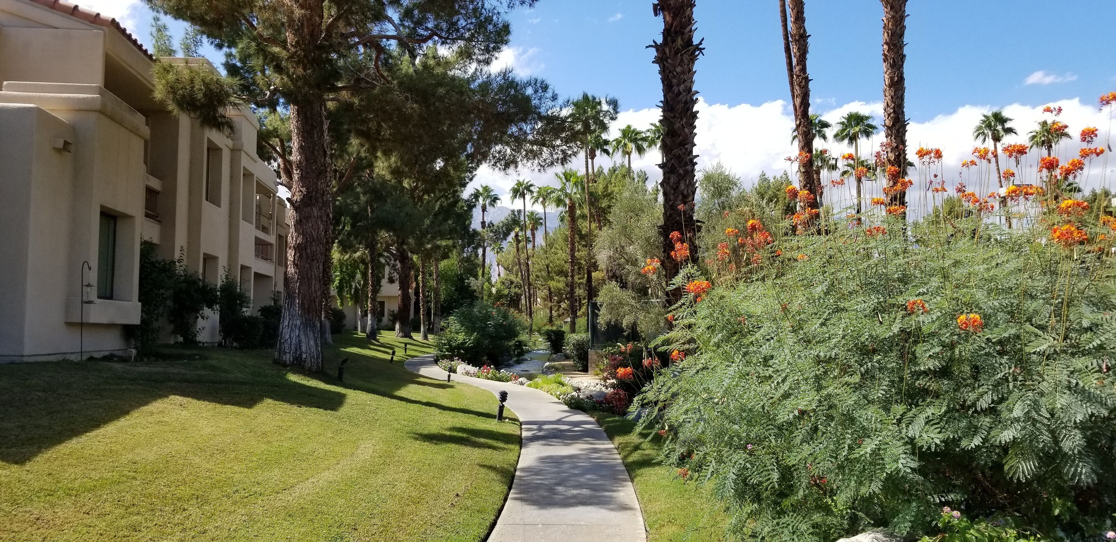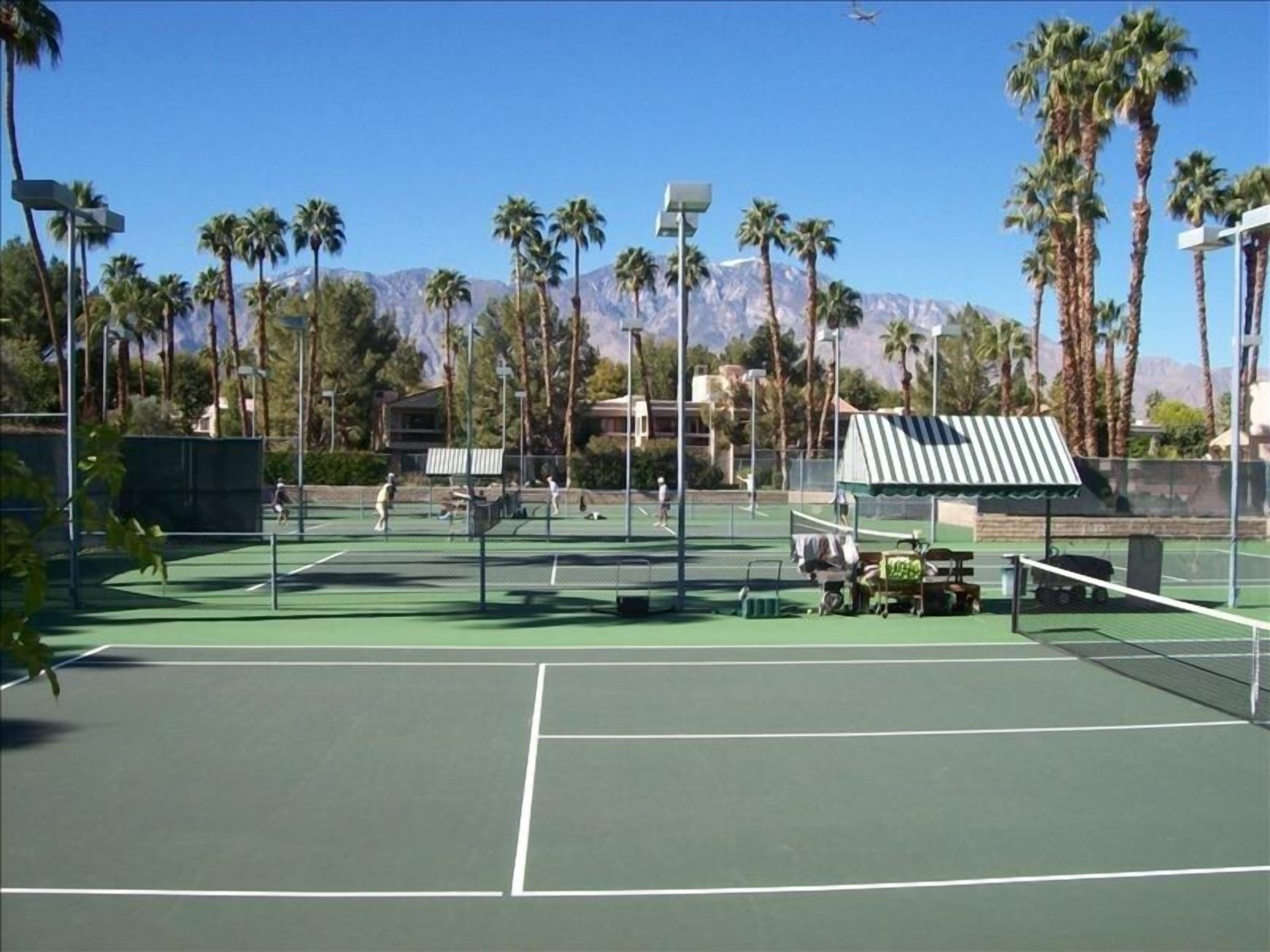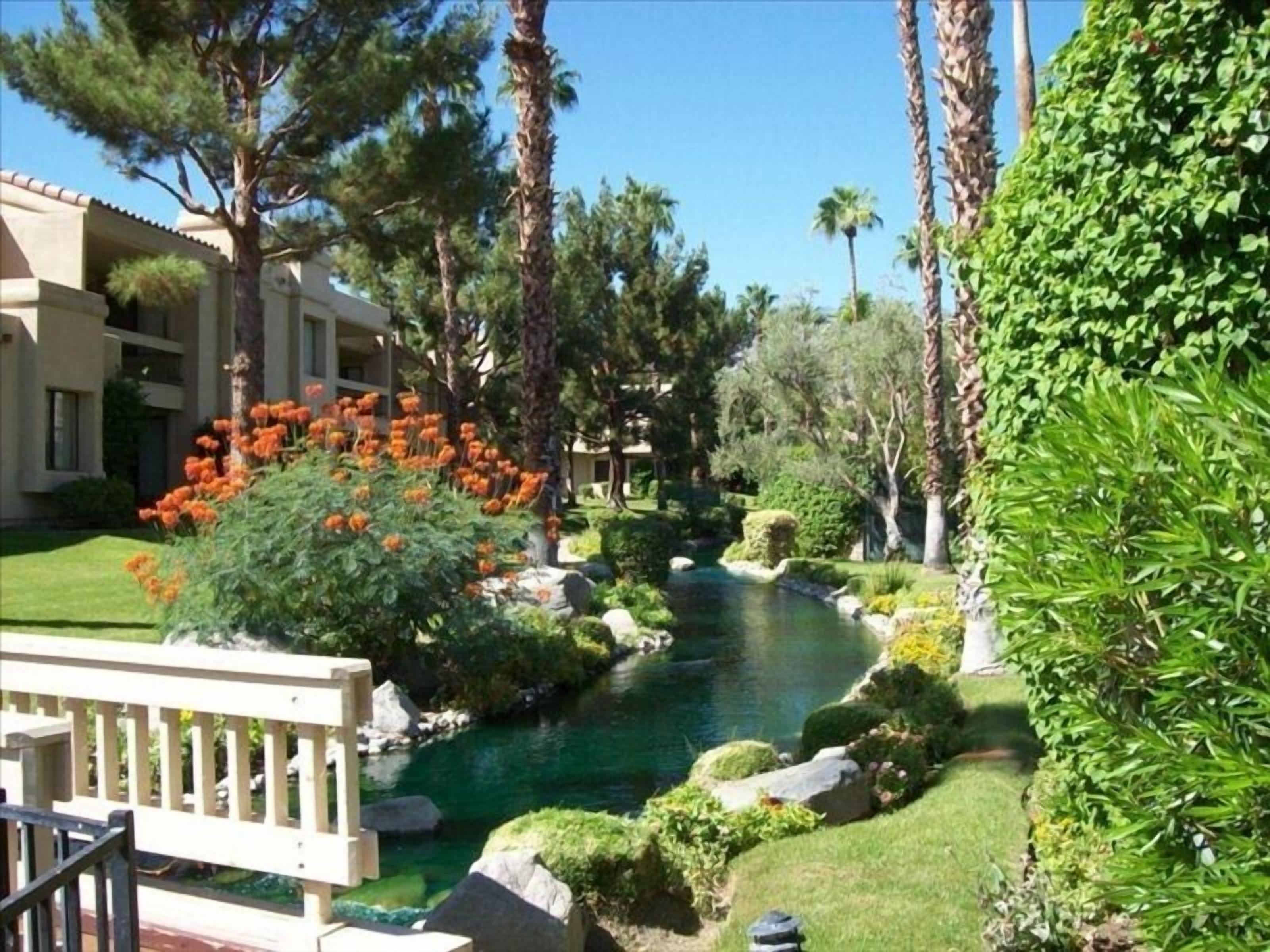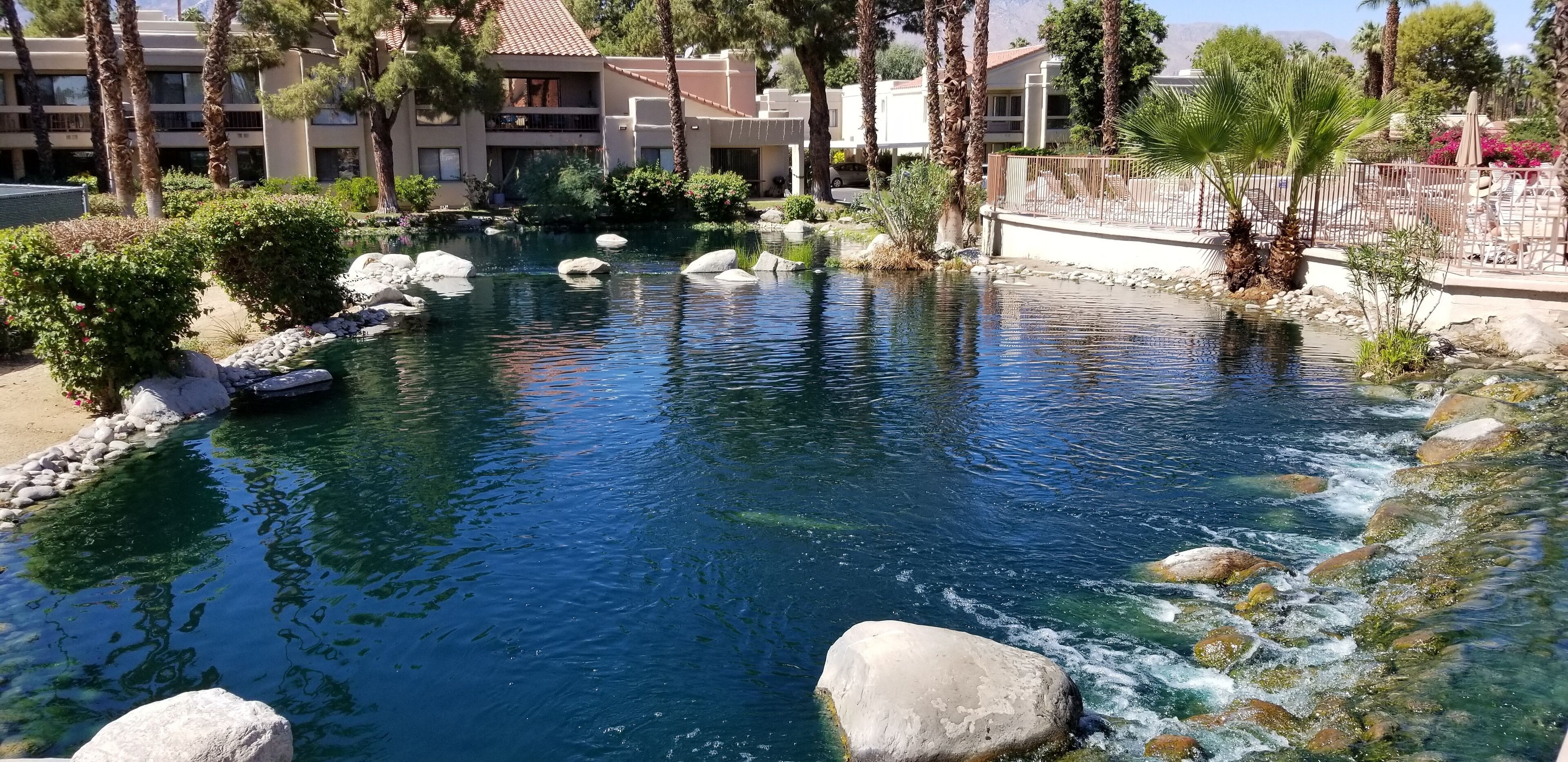 Serene Condo with Intoxicating Mountain, Pool and Pond Views Pastel & Wicker Free!!Make the most of your Palm Springs getaway in this comfortable and modern, 1330 sq. ft., 2 bedroom, 2 bath , 2nd story condominium, conveniently located in Cathedral City - between Palm Springs and Rancho Mirage. Thanks to the premiere location of this condominium within the Canyon Shores complex, your southwest facing balcony boasts a spectacular mountain view. It's also the perfect place to relax with a cool drink and good book while you keep an eye on the kids at the pool - or maybe just watch the ducks enjoy one of the several beautiful ponds. This condo is one of the few units within the complex which enjoy a large pond and fountain view in both the front and back. This feature truly creates an atmosphere of calm relaxation and lush seclusion. From corkscrew to cookie sheet, food preparation will be a breeze in this fully stocked kitchen. Both bedrooms feature plush-top queen-size beds. The master bedroom boasts a full ensuite, while the guest room has the main bath just steps away. If you have additional guests, no worries! The sofa in the living room converts into yet another queen bed. You can easily stay connected with friends and family back home thanks to high-speed wireless internet and free long-distance calling throughout North America. A key-less entry also means you'll never have to worry about keeping track of the keys. One covered parking stall is included with the rental and there are plenty of guest parking spaces just outside your front door.A glass-top table and 2 chairs provides the perfect setting for a relaxing meal on the balcony. Have some guests? 2 more patio chairs are available. A briquette bbq is available for all your grilling needs (HOA doesn't allow propane).