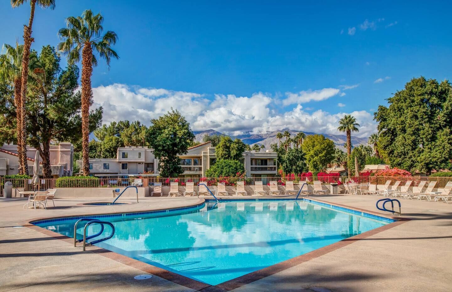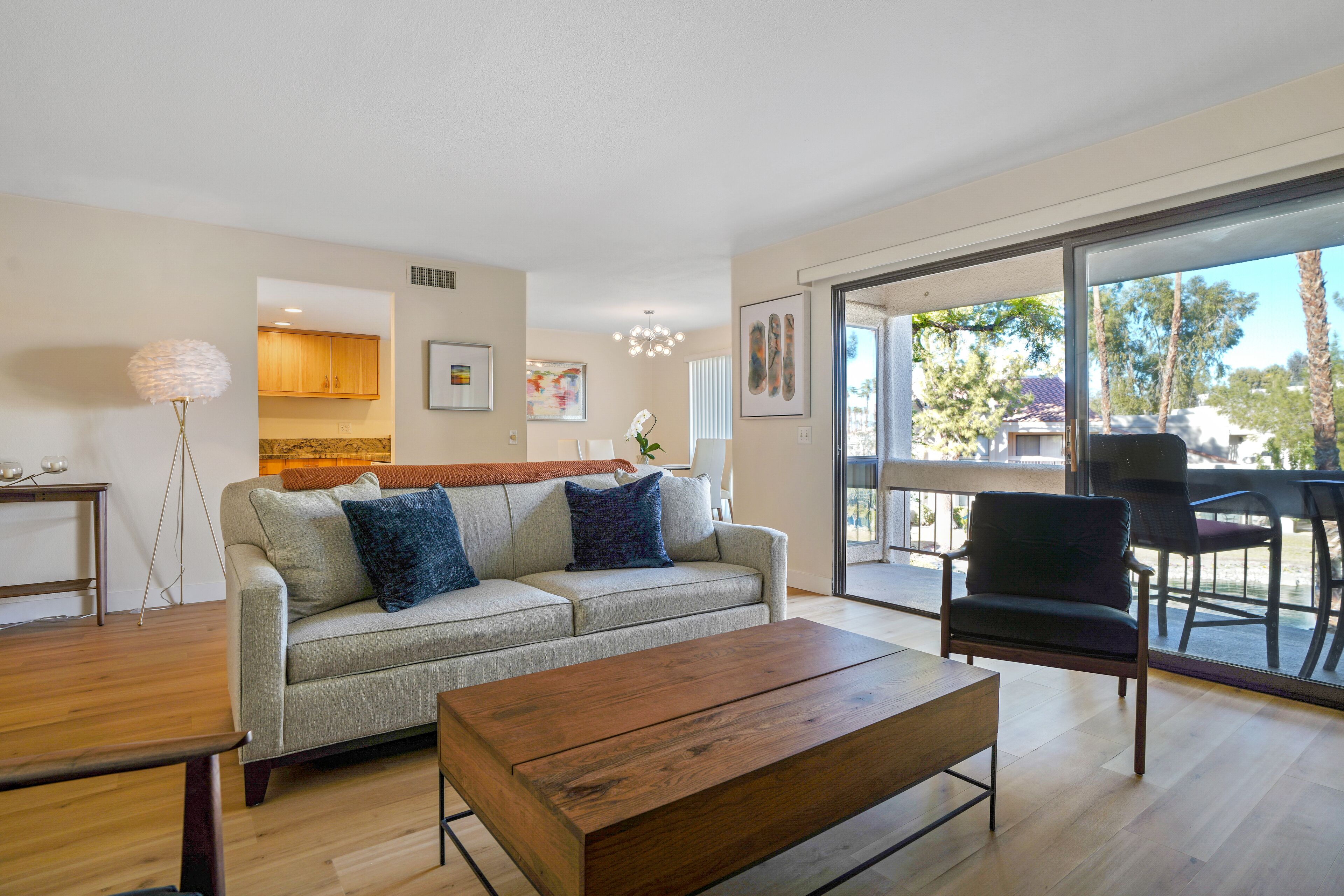 Spacious Newly Renovated Condo with Panoramic Views This newly renovated condo has been completely furnished to be cozy and contemporary. Wake up to an unobstructed view of the mountains, or have coffee in the living room while listening to the fountain below. The unit is just a 1 minute walk to the club house, heated pools or tennis courts and is a walkers paradise.Enjoy the serenity of this gate...