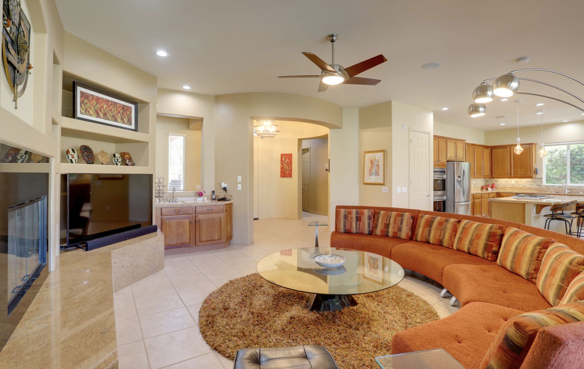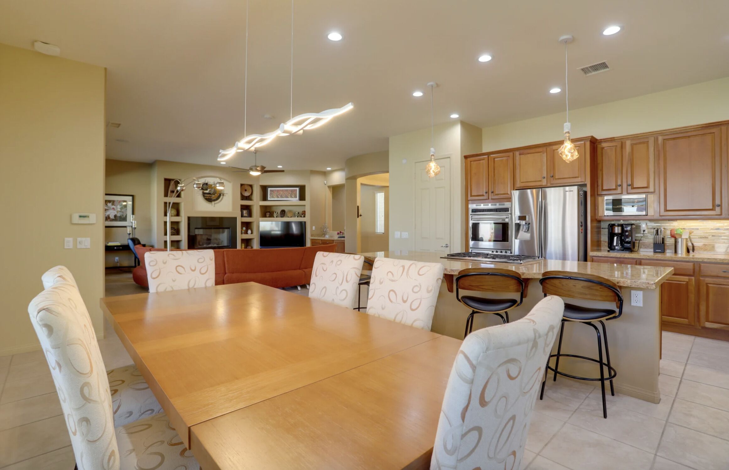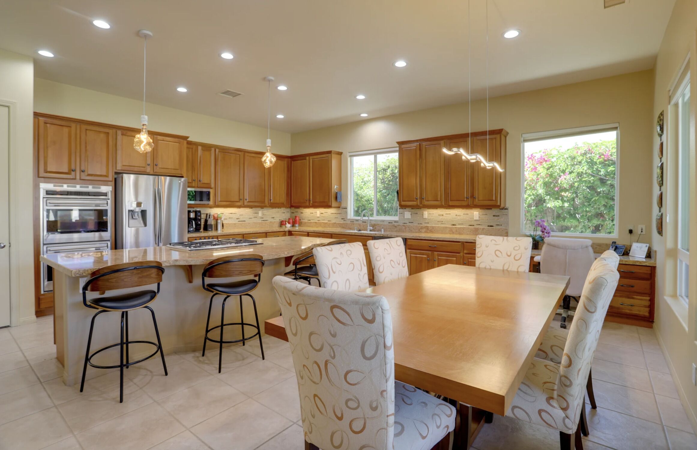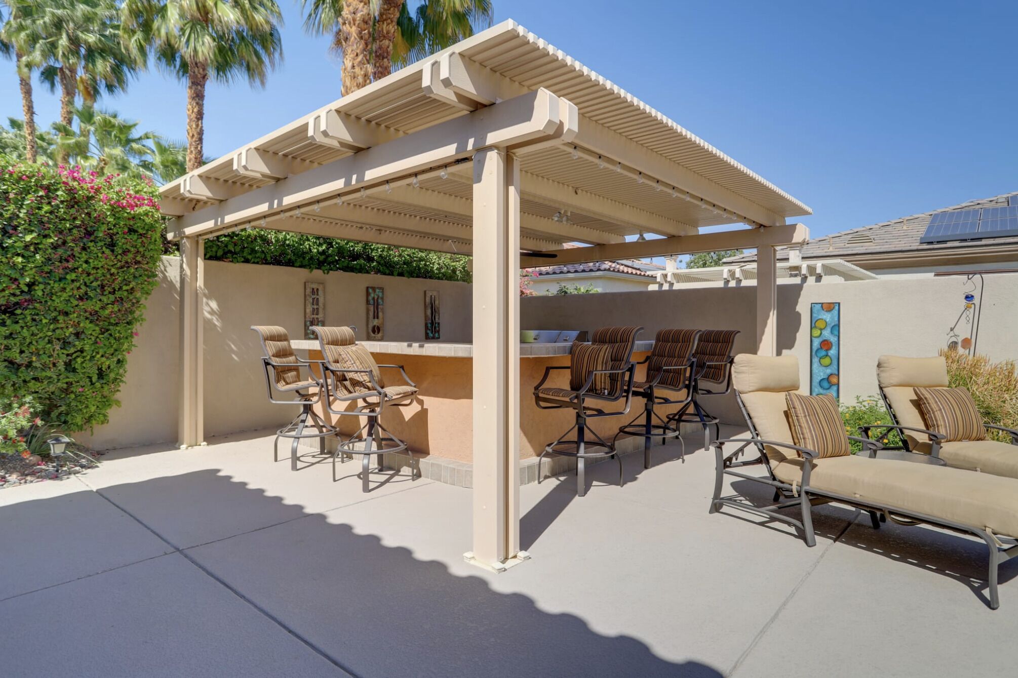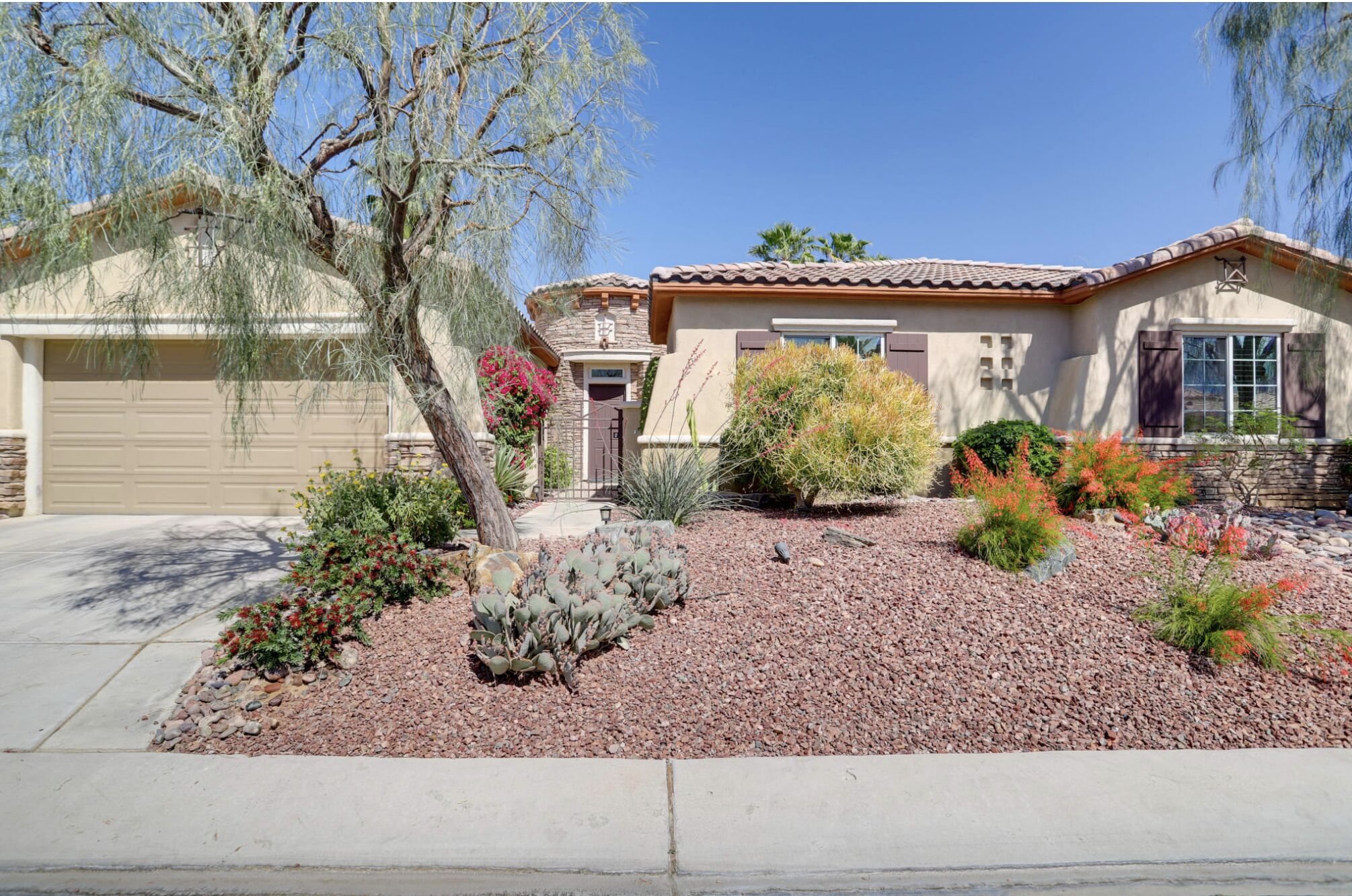 NEW LISTING! Spacious Cathedral City Home w/ Pool - Near Casino by RedAwning Embark on a tranquil escape to this luxurious Cathedral City oasis with your family and furry friends. Boasting an array of upscale amenities and serene mountain views, this elegant 3-bedroom, 3.5-bathroom vacation home offers the perfect blend of relaxation and convenience.Exclusive Features: * Indulge in the sunlit bliss of a private outdoor pool that ranges from 4 to 7 feet in depth. Unwind in the spa, gather around the cozy gas fire pit, or dine al fresco with mountain vistas as your backdrop. * Modern comforts meet smart technology in a home designed with step-free access grant yourself a hassle-free retreat, complete with smart TVs and keyless entry. * Savor the flavors of vacation with a fully equipped outdoor kitchen and indulge in a culinary paradise with a double wall oven, spacious countertops, and state-of-the-art appliances. * Two commodious living areas provide ample space for rest and relaxation, while three convenient workstations offer peaceful nooks for when duty calls.Sumptuous Sleeping Quarters: * Retreat to the elegant bedroom suite with a plush California King Bed and en-suite luxury. Two additional bedrooms, each with a comfortable Queen Bed, promise restful nights for all guests. * The family room doubles as a cozy nook with an additional sleeper sofa, ensuring everyone finds their perfect spot.Local Attractions and Conveniences: * Situated near tantalizing attractions, you're minutes away from The Living Desert Zoo and Gardens and adrenaline-packed casinos. Golf enthusiasts will relish the proximity to several pristine courses. * Stock up on essentials or explore local flavors with nearby grocery stores, offering both convenience and local charm.Thoughtful Touches: * Enjoy peace of mind with amenities such as high-speed Wi-Fi, a laundry suite, central heating and air conditioning, and complimentary toiletries. * Safety is paramount, with exterior security cameras ensuring your stay is secure and undisturbed. * Free garage and driveway parking make coming and going as easy as the desert breeze.Respectful Living: * Abide by the quiet hours between 10:00 PM and 8:00 AM to maintain the tranquil atmosphere that Cathedral City is known for. * Pets are welcome to join the vacation for a nominal fee, ensuring no family member is left behind.Your desert dream vacation awaits at this spacious and serene retreat, where every detail has been crafted for your utmost comfort and enjoyment. Discover your home away from home at this stunning Cathedral City property.Pet friendly w/ $200 fee per pet, per stay (+ fees & taxes) with max 2 pets!!! CATHEDRAL CITY RULES/REGULATIONS: * Occupants shall respect neighbors privacy and peaceful enjoyment of property * Guests are required to comply with Cathedral City's noise and outdoor activity standards and regulations * No outdoor music, radio, musical instrument, amplifiers, karaoke, or devices that produce or reproduce sound can be used outdoors at any time. If used indoors, guests must ensure it cannot be heard beyond the property line * Please observe quiet hours from 10:00 pm to 8:00 am * NOTE: Maximum 1 vehicles are allowed on-site, 2 in the driveway and 1 in the garage * NOTE: This property has a strict maximum occupancy of 6 guests * Pet friendly w/ $200 fee per pet, per stay (+ fees & taxes) with max 2 pets!!! * No events, parties, or large gatheringsYour safety matters. This property features 3 exterior security cameras: 1 camera is located on the front door facing the front entrance, 1 camera is located on the back gate facing the back entrance, and 1 camera is located on the back patio facing the outdoor dining area. The cameras are outward facing and do not look into interior spaces. The cameras are activated by motion and will actively record video and sound while guests are in residence.