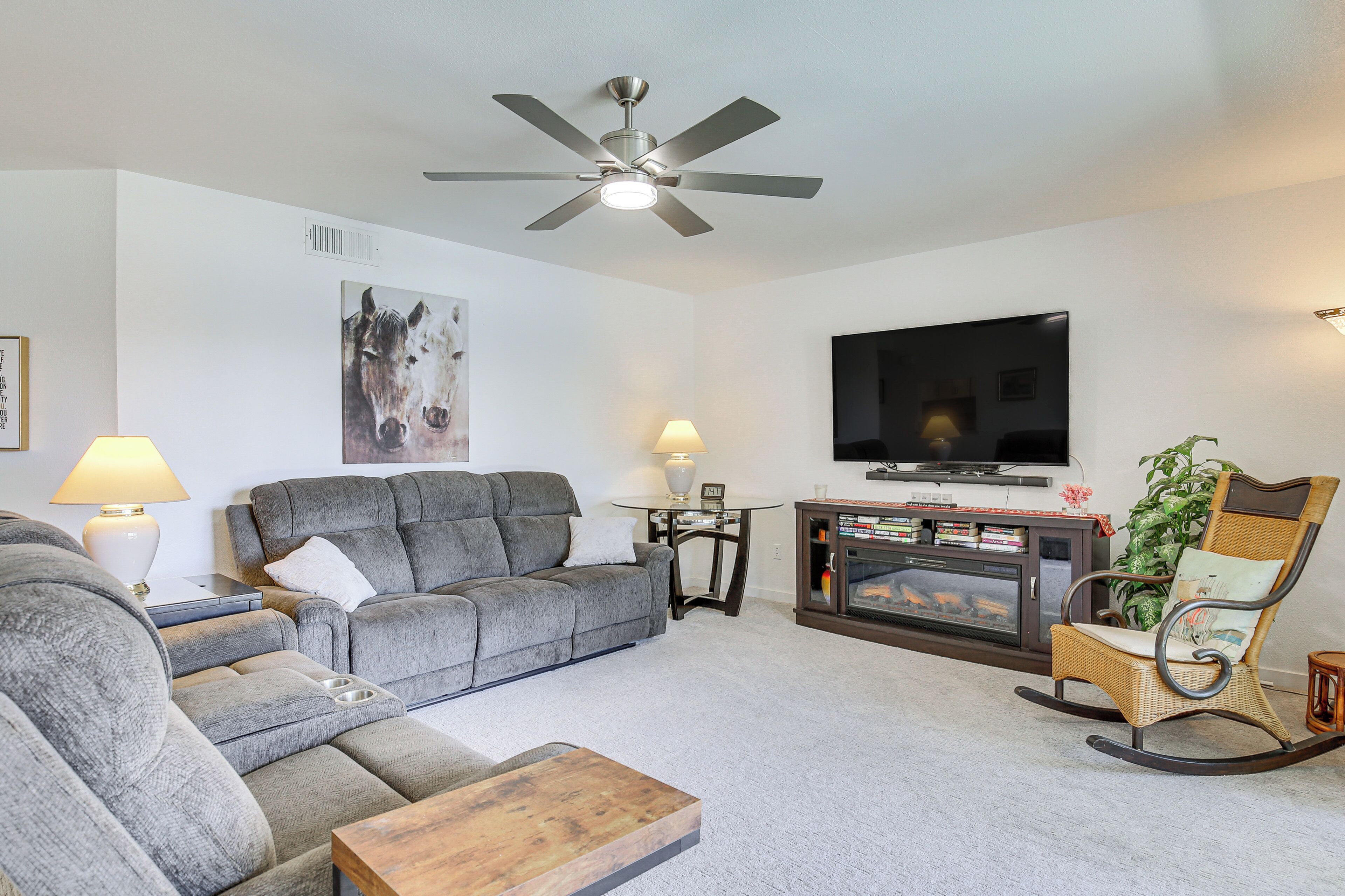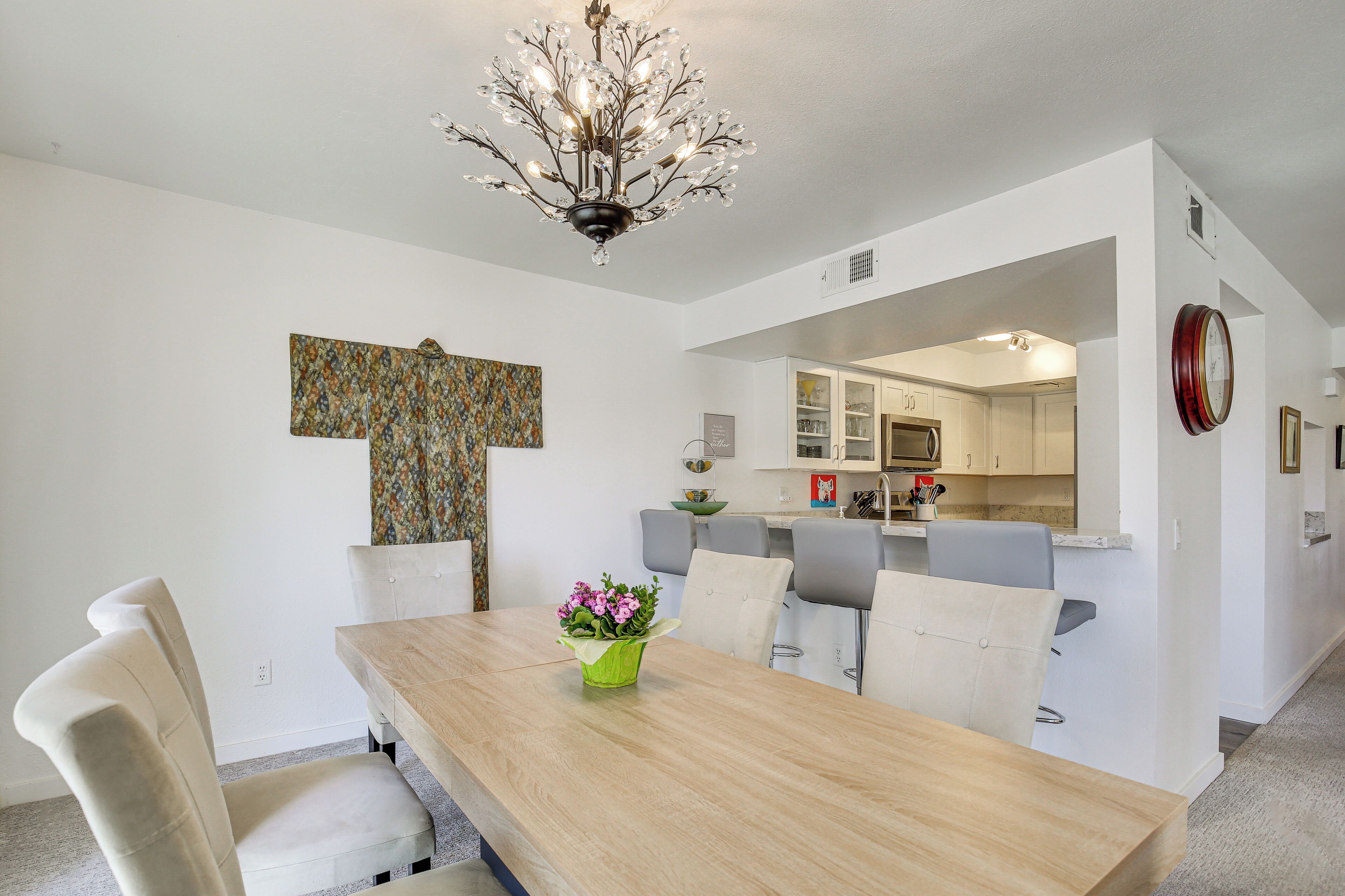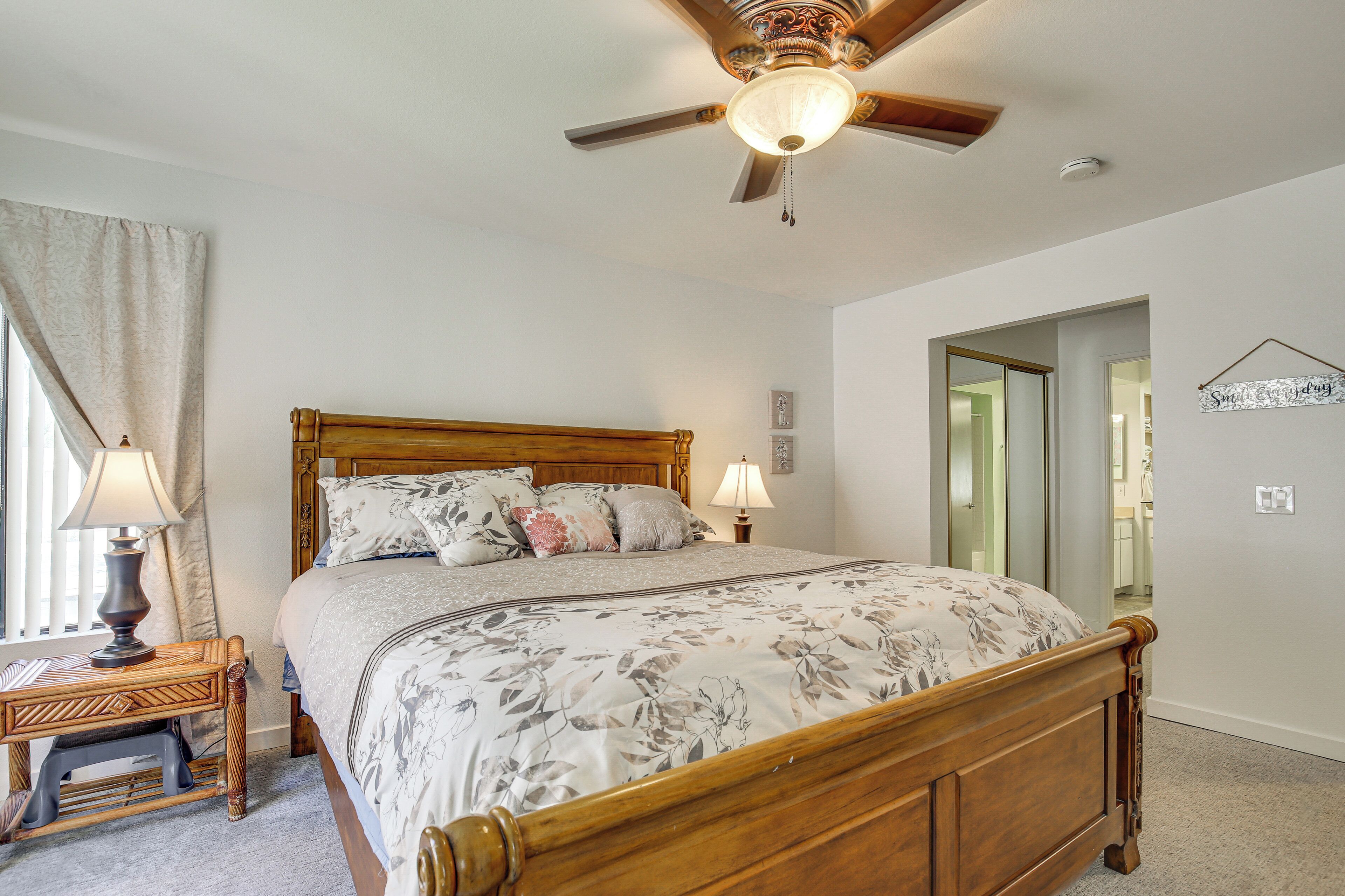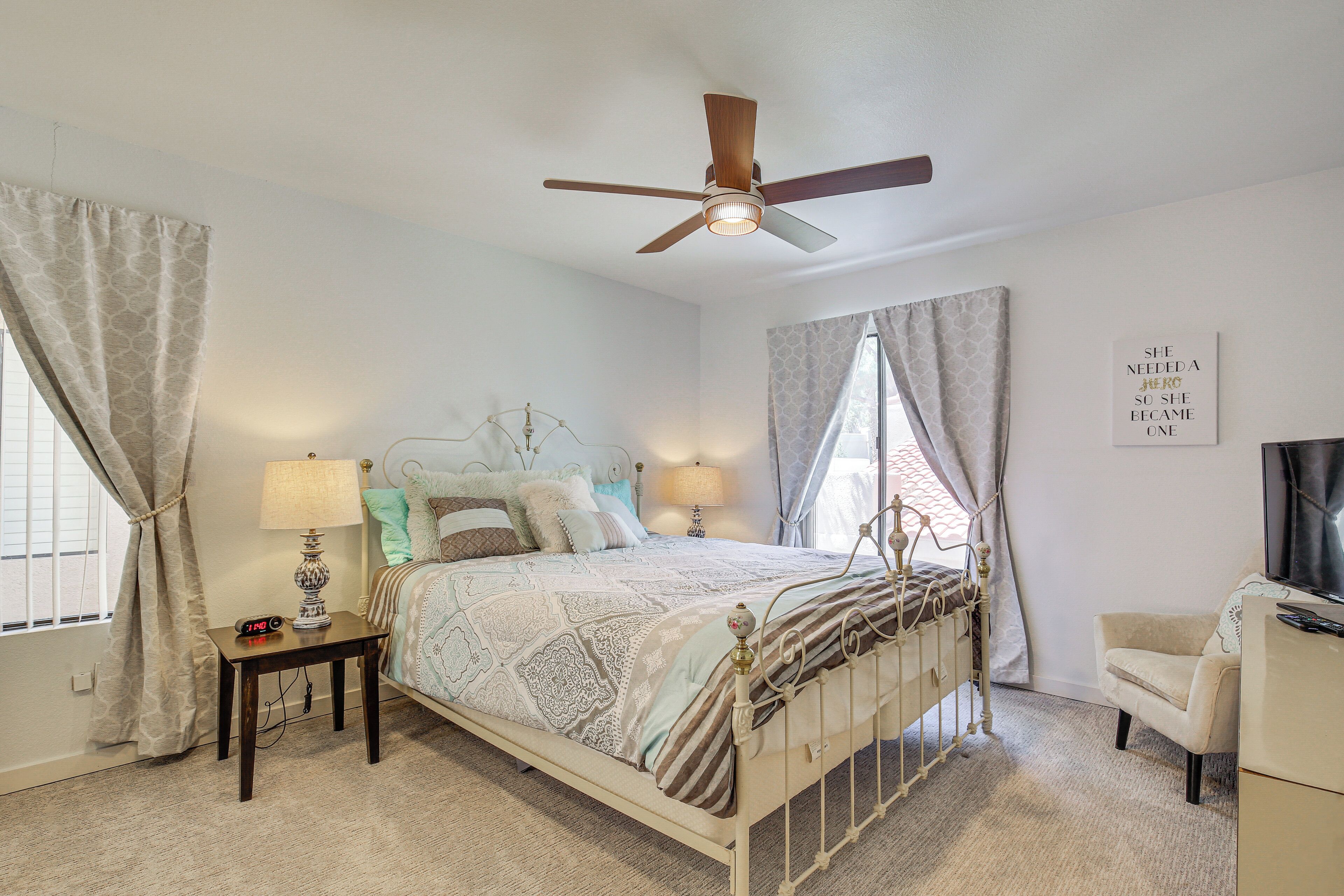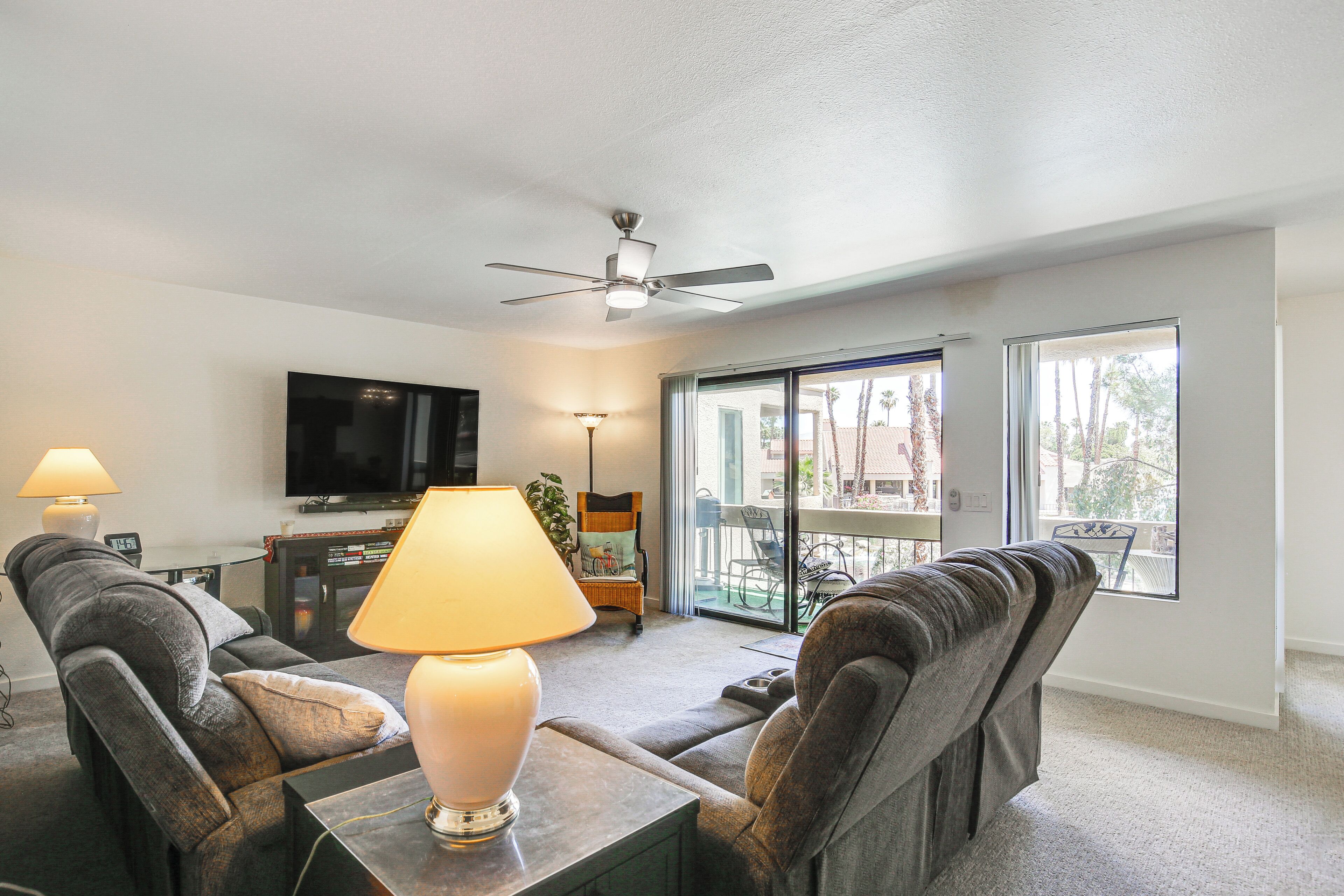 Palm Springs Area Condo w/ Resort Amenities! Turn your desert dreams into reality at this vacation rental in Cathedral City! The 2-bedroom, 2-bath condo has everything you need to feel at ease during your extended stay, including a fully equipped kitchen, in-unit laundry, and a private balcony. You’ll also have access to Canyon Shores amenities. Relax by the outdoor pools, practice your pickleball skills, and exercise in the community gym. Looking for dining and entertainment? Downtown Palm Springs is only 7 miles away!-- THE PROPERTY --Gated Community | Private Balcony w/ Electric Grill | In-Unit LaundryBedroom 1: King Bed | Bedroom 2: King Bed | Additional Sleeping: Queen Air Mattress CANYON SHORES AMENITIES: 5 pools, 6 spas, pickleball & tennis courts, gym, libraryCONDO FEATURES: 3 Smart TVs, DVD player, dining table, board games, desk, books, pond viewKITCHEN: Dishwasher, stove/oven, refrigerator, microwave, cooking basics, dishware & flatware, drip coffee pot, trash bags & paper towelsGENERAL: Free WiFi, central A/C & heating, complimentary toiletries, linens & towels, hair dryer, hangers, iron & board, keyless entryACCESSIBILITY: Stairs required for access, single-story condo on 2nd floorPARKING: Covered parking (1 vehicle), uncovered parking (2 vehicles)-- THE LOCATION --PALM SPRINGS SPOTS: Downtown Palm Springs (7 miles), Palm Springs Aerial Tramway (12 miles)MUSIC & EVENTS: Palm Springs Convention Center (7 miles), Stagecoach Music Festival & Coachella - Empire Polo Club (19 miles)TEE TIME: Cathedral Canyon Golf Club (0.5 miles), Tahquitz Creek Golf Resort (3 miles), Cimarron Golf Resort (4 miles)AIRPORT: Palm Springs International Airport (4 miles)-- REST EASY WITH US --Evolve makes it easy to find and book properties you’ll never want to leave. You can relax knowing that our properties will always be ready for you and that we’ll answer the phone 24/7. Even better, if anything is off about your stay, we’ll make it right. You can count on our homes and our people to make you feel welcome--because we know what vacation means to you.-- POLICIES --- No smoking - Pets welcome (no fee)- No events, parties, or large gatherings - Must be at least 25 years old to book - Additional fees and taxes may apply - Photo ID may be required upon check-in- NOTE: This single-story condo is on the 2nd floor and requires stairs for access