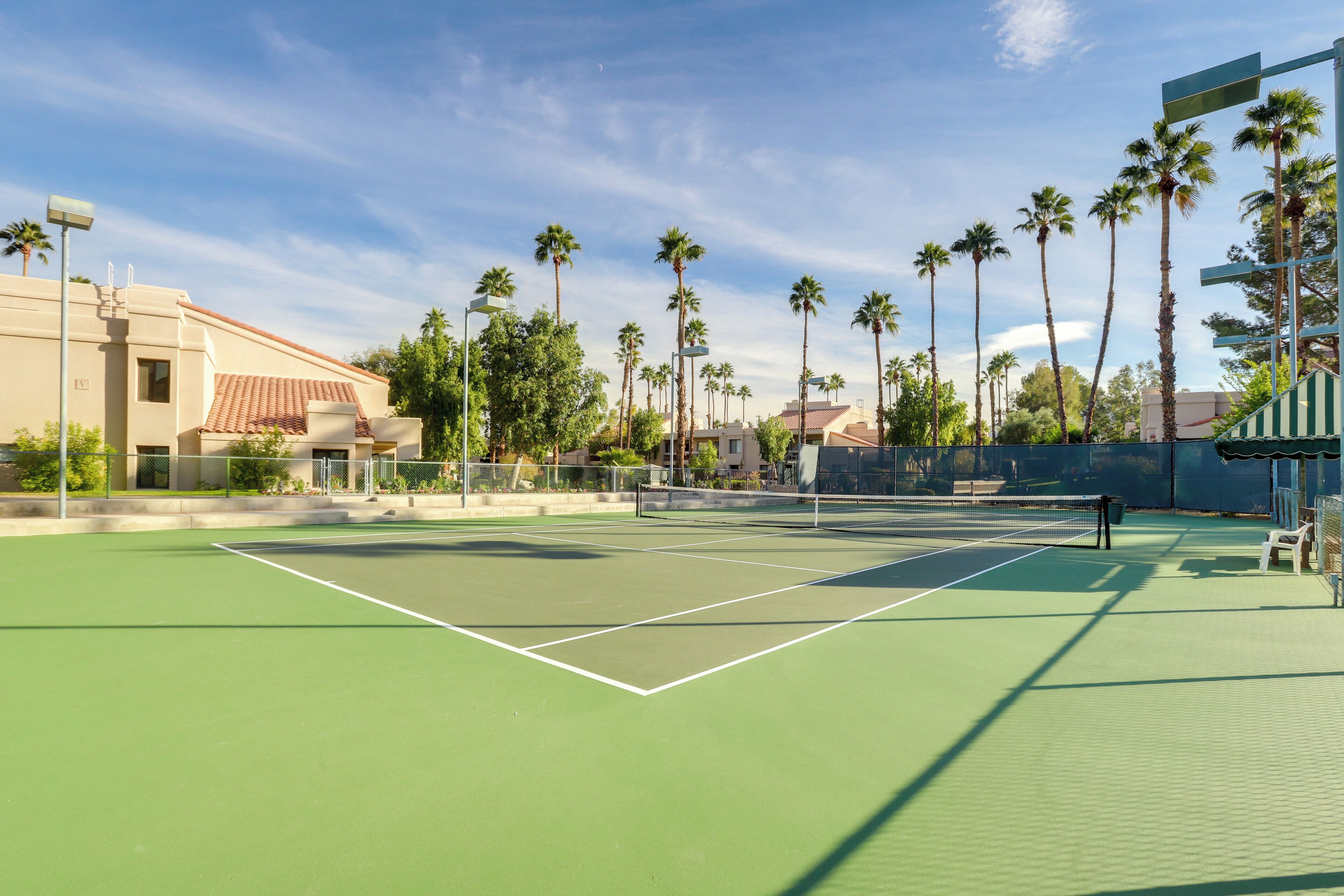 Palm Springs Area Condo w/ Resort Amenities! Turn your desert dreams into reality at this vacation rental in Cathedral City! The 2-bedroom, 2-bath condo has everything you need to feel at ease during your extended stay, including a fully equipped kitchen, in-unit laundry, and a private balcony. You’ll also have access to Canyon Shores amenities. Relax by the outdoor pools, practice your pickleball...
