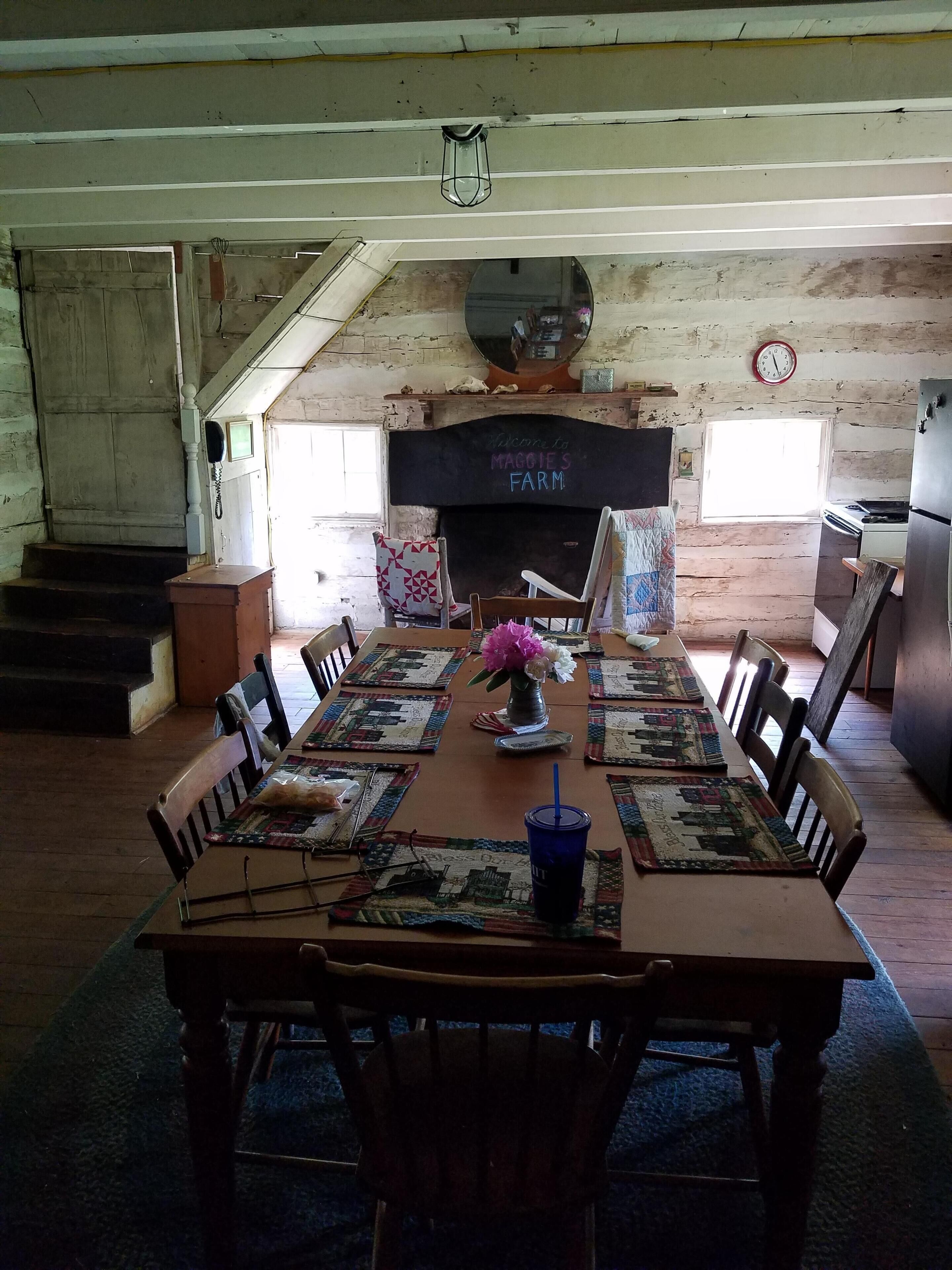 Pre-civil War RUSTIC cabin on 30 acres ten minutes from the Blue Ridge Parkway. Maggie's Farm is a RUSTIC country log cabin that was built in the 1840's and has been kept largely as it was built, in a "dogtrot" style. If you seek a quiet, UNPLUGGED getaway in which to relax, rest and enjoy old-fashioned family time, you need look no further. WE ARE A DARK SKY DESTINATION. Maggie's Farm has a working fireplace in the kitchen a large stocked, family-style kitchen and living area, with two sleeper sofas. A full bath is on the main level as well. Upstairs is a master bedroom with queen and single bed, and a bunk room with queen, double and three single beds. Located on 30 acres with two creeks on the property, as well as trails to walk leisurely, porch swings to enjoy owls, turkeys, whipporwills and other birds and animals. Maggie's Farm is a step back in time to a slower, gentler way of life. A large fire pit for evening campfires awaits you, as well as horseshoe pit, badminton and a swing set for children after a wade in the creek. The cabin is 20 minutes from the Harvester Performance Center, roughly 25 minutes from Philpott Lake with Army Corp of Engineer swimming areas, and is about 30 minutes from Floyd, with its weekly music jams and popular Floydfest each summer, and the Blue Ridge Parkway is ten minutes away as well. The cabin makes an ideal gathering point for family reunions and , football weekends at Virginia Tech, , and it has a 20' x40' covered, lighted outdoor pavilion. It is five minutes from Ferrum College, and is on the Crooked Road Music Trail. Spring and fall are especially pleasant, with cool mornings and evenings to experience.