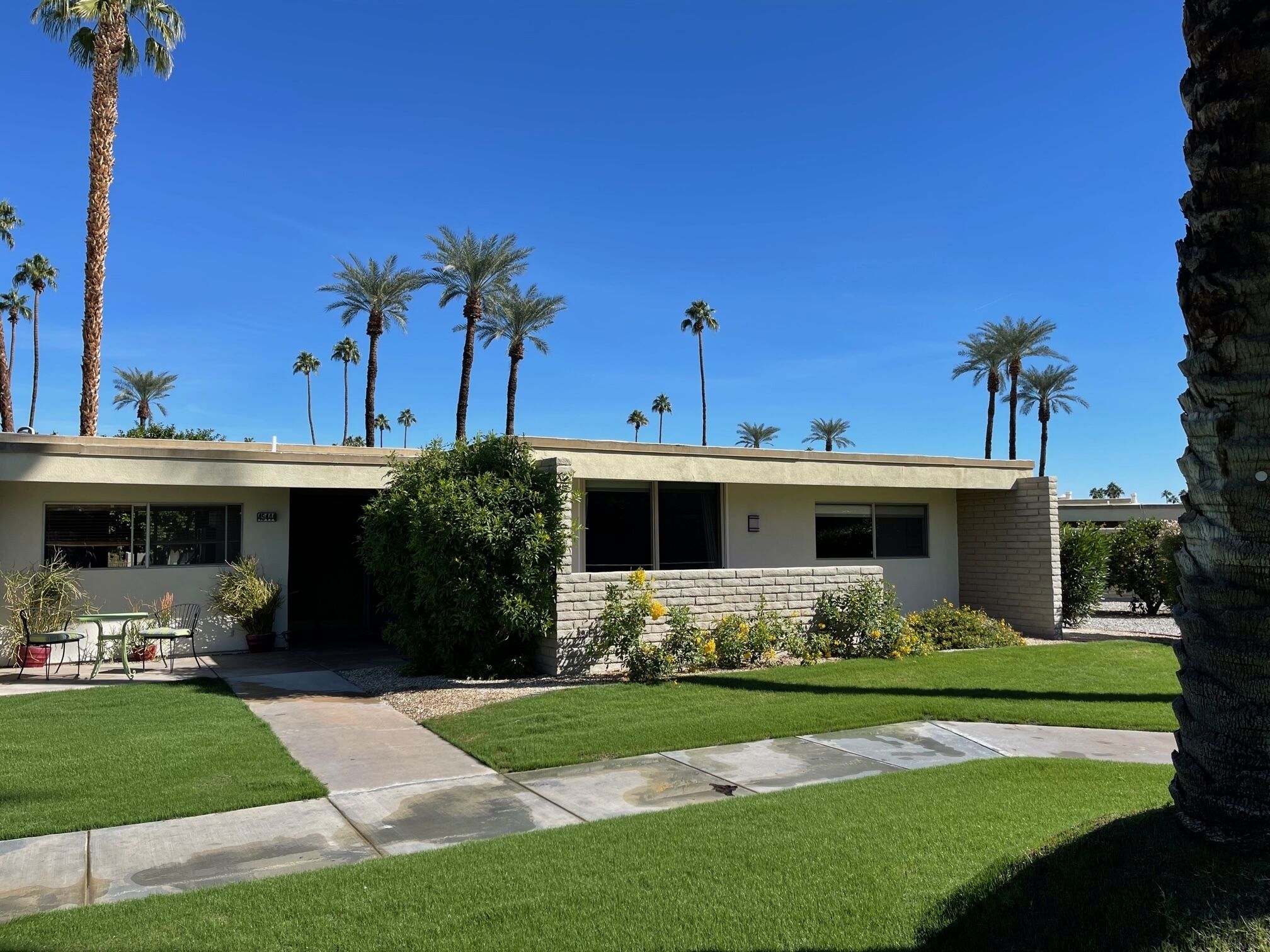 MID CENTURY MODERN IN INDIAN WELLS Built in the Mid Century and recently remodeled to its original era. Just under 2000 square feet of space all on one level with a spacious private patio with BBQ. Large floor to ceiling windows maximize the view of the expansive green space and you're only steps to a large pool & spa. The beautiful bright kitchen is brand new (2022). Loads of cupboard space,...