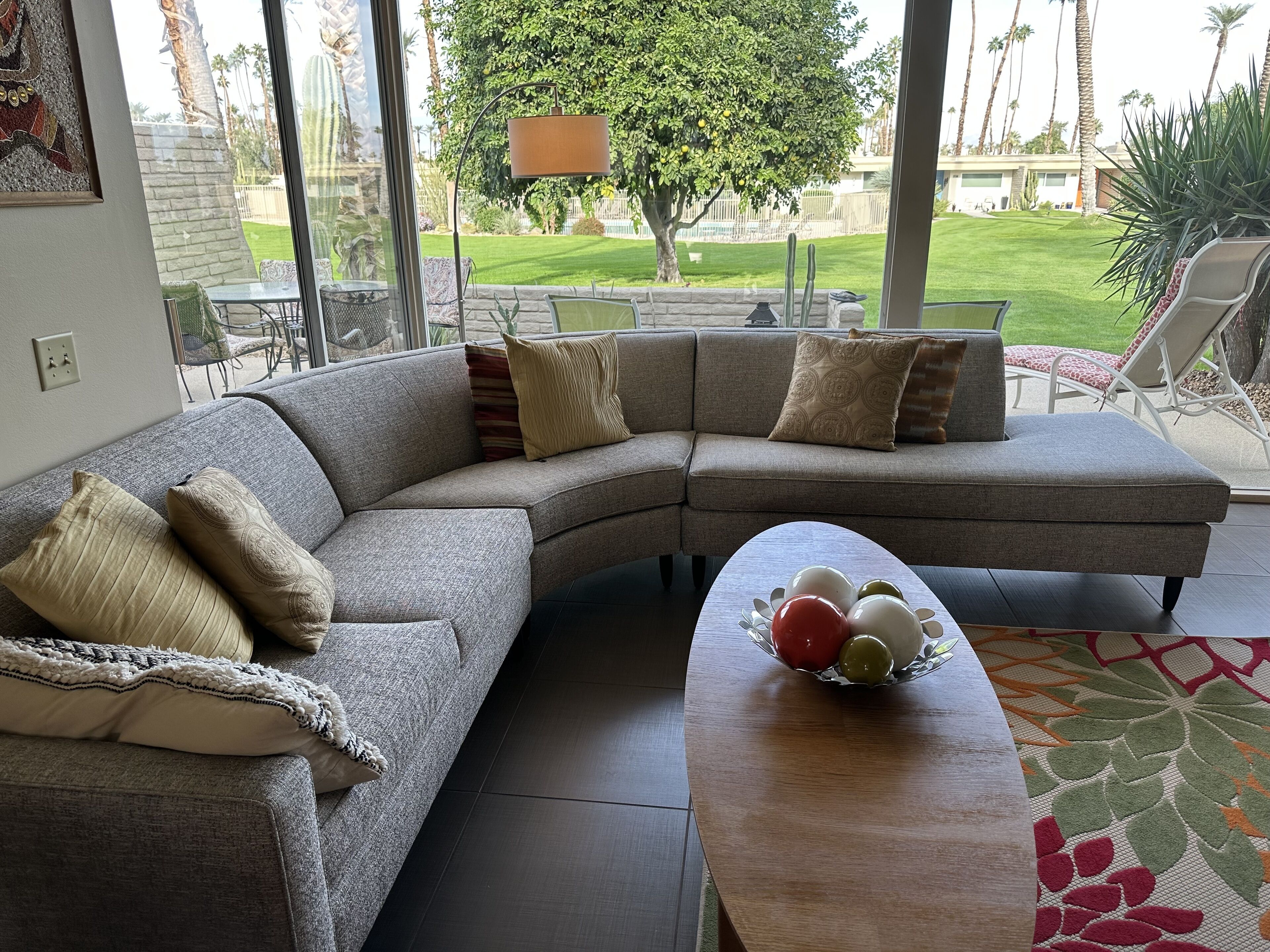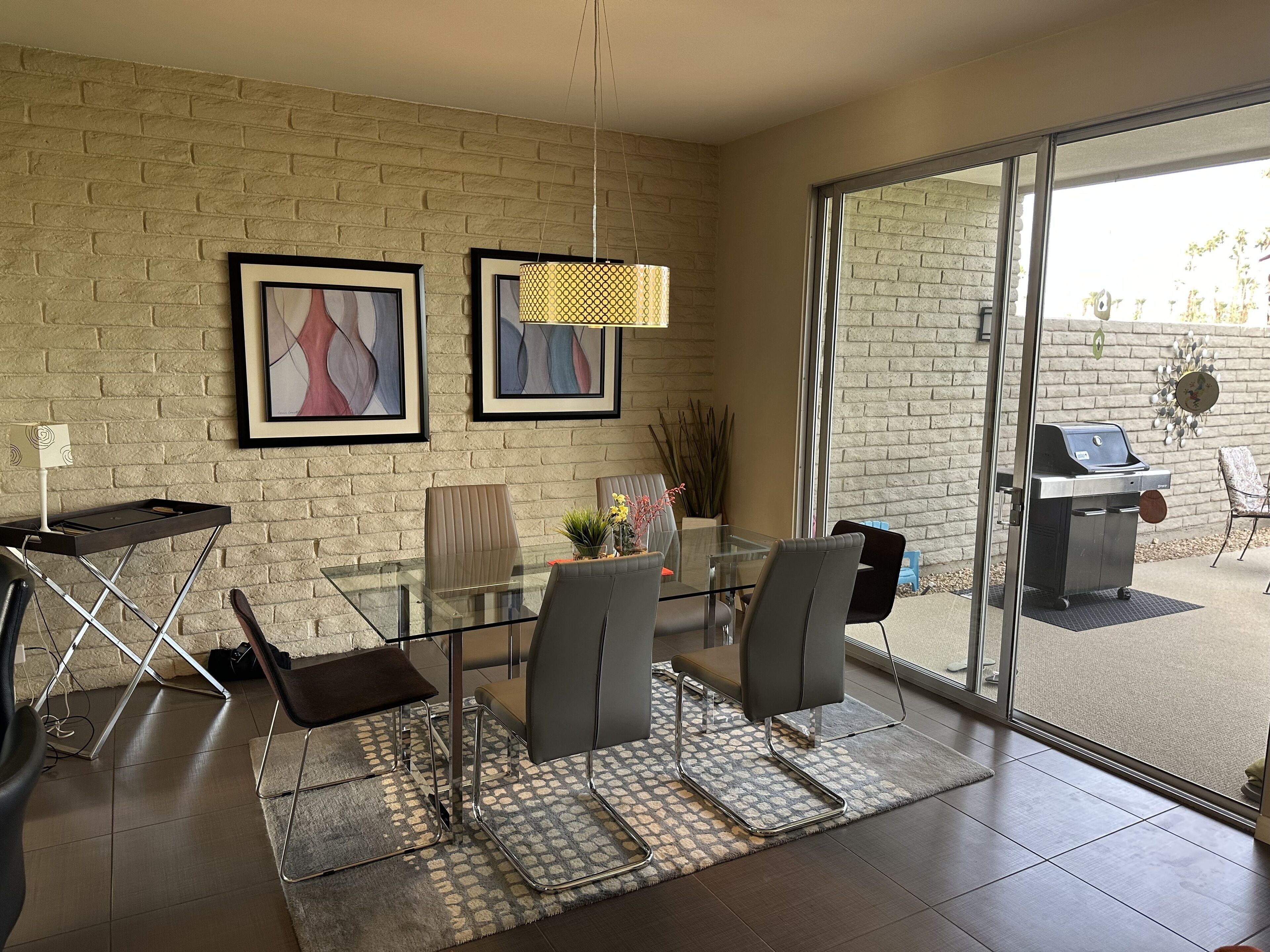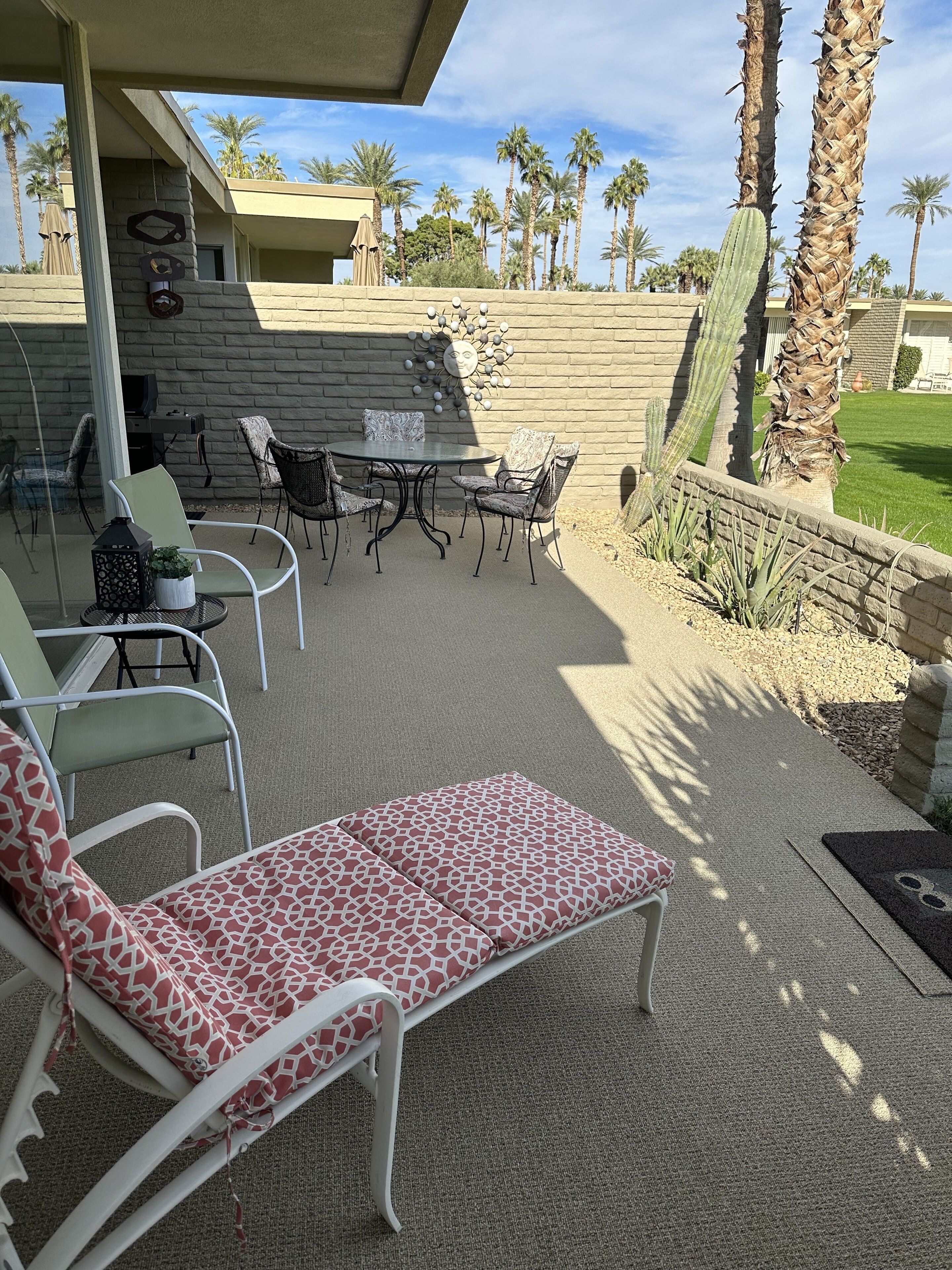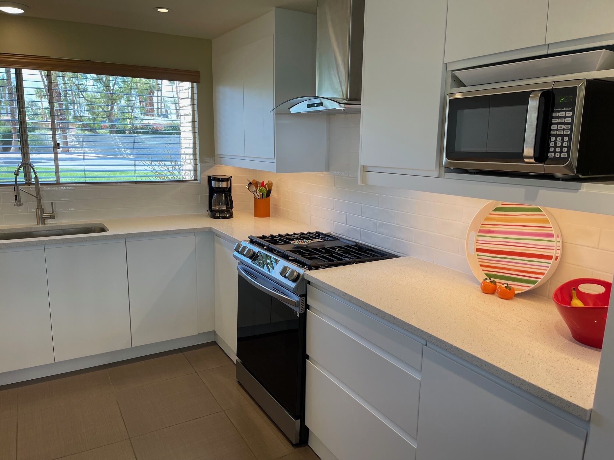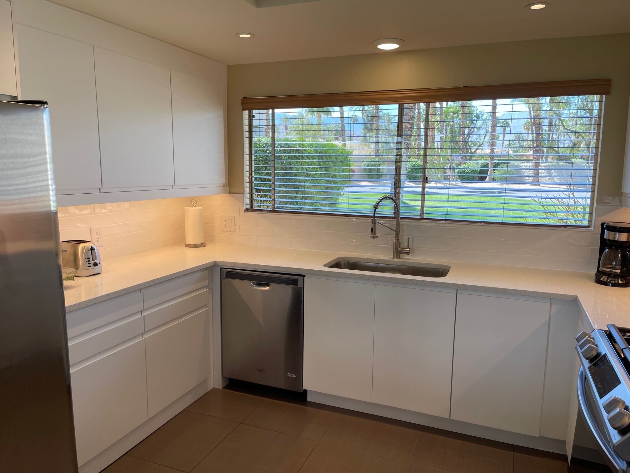 MID CENTURY MODERN IN INDIAN WELLS Built in the Mid Century and recently remodeled to its original era. Just under 2000 square feet of space all on one level with a spacious private patio with BBQ. Large floor to ceiling windows maximize the view of the expansive green space and you're only steps to a large pool & spa. The beautiful bright kitchen is brand new (2022). Loads of cupboard space, quartz countertops and well stocked. Bedrooms are large with 2 King Size Beds in two rooms and twin beds in 3rd room. Tile throughout most of the home, except carpets in Bedrooms. Sliding glass doors in bathrooms lead to inner courtyard. We are continually doing upgrades on our home to make it very comfortable yet preserving the mid century vibe.There are 6 pools and 3 hot tubs to choose from as well as two tennis courts & a pickleball court. The pool behind our home is the largest and has a 14 person hot tub. Fabulous location close to Indian Wells Club, the Hyatt Hotel & numerous restaurants. A short drive takes you to El Paseo's world class shopping & restaurants.We love our home in Casa Dorado and are sure you will enjoy it as much as we do.