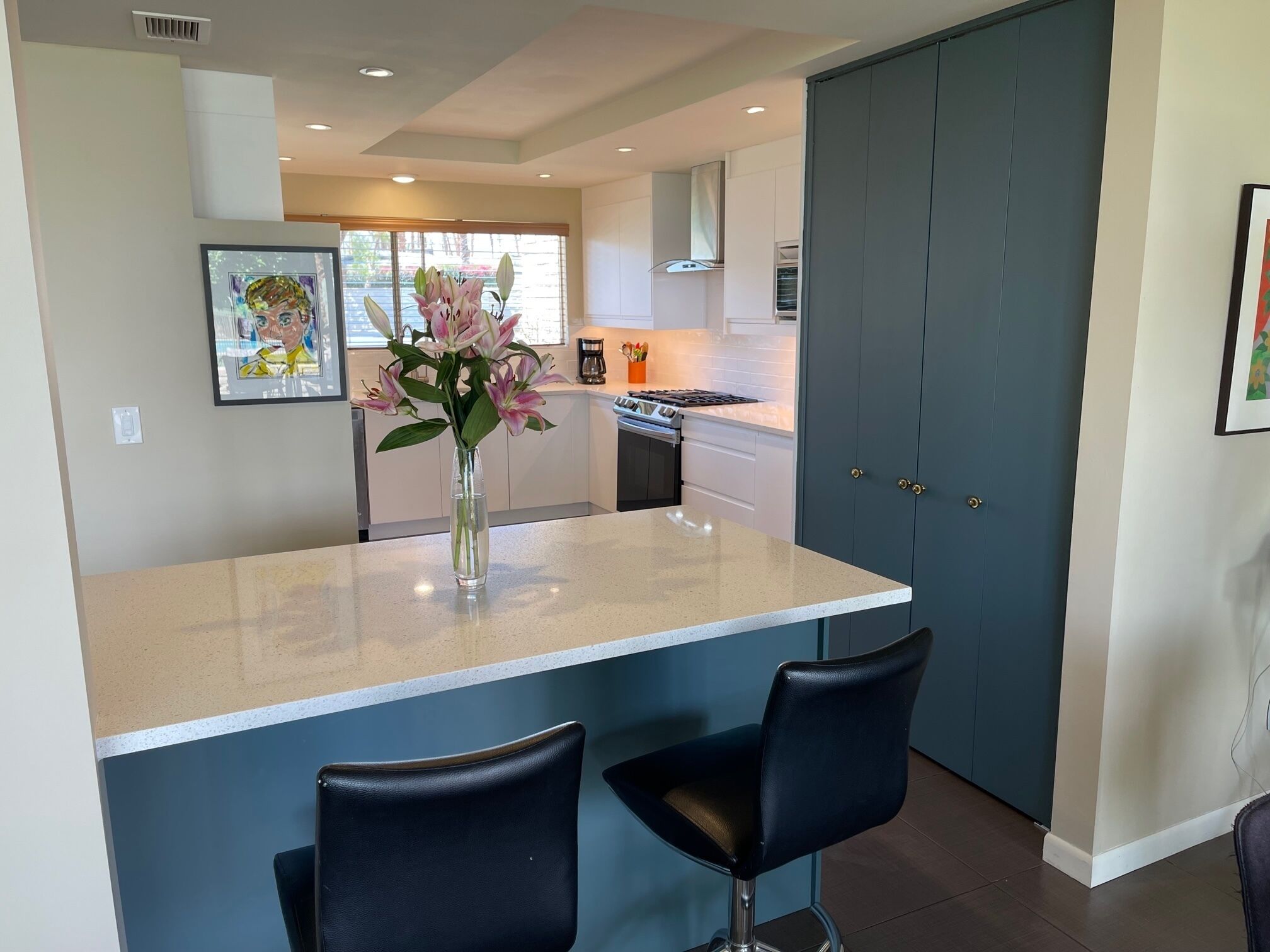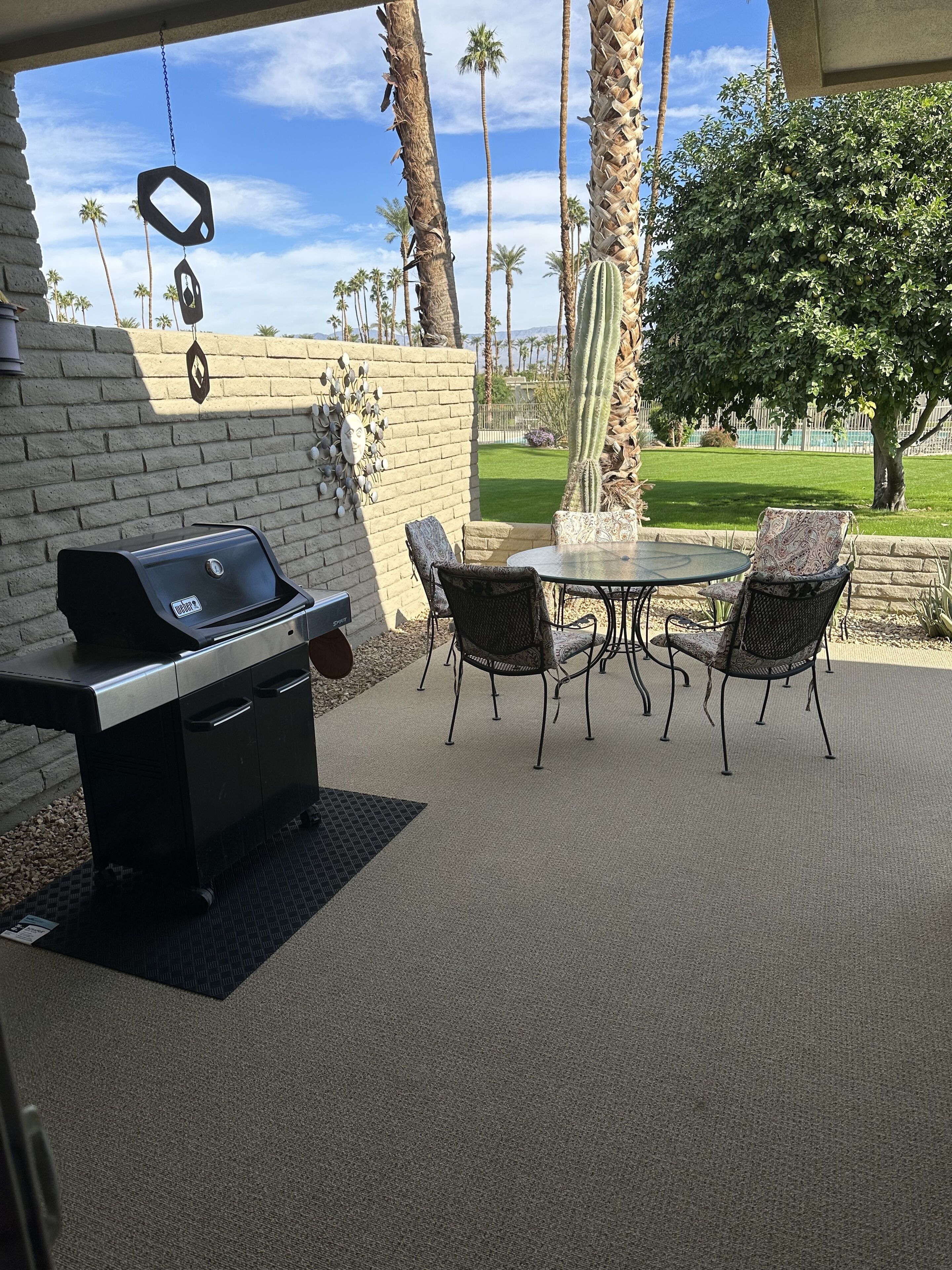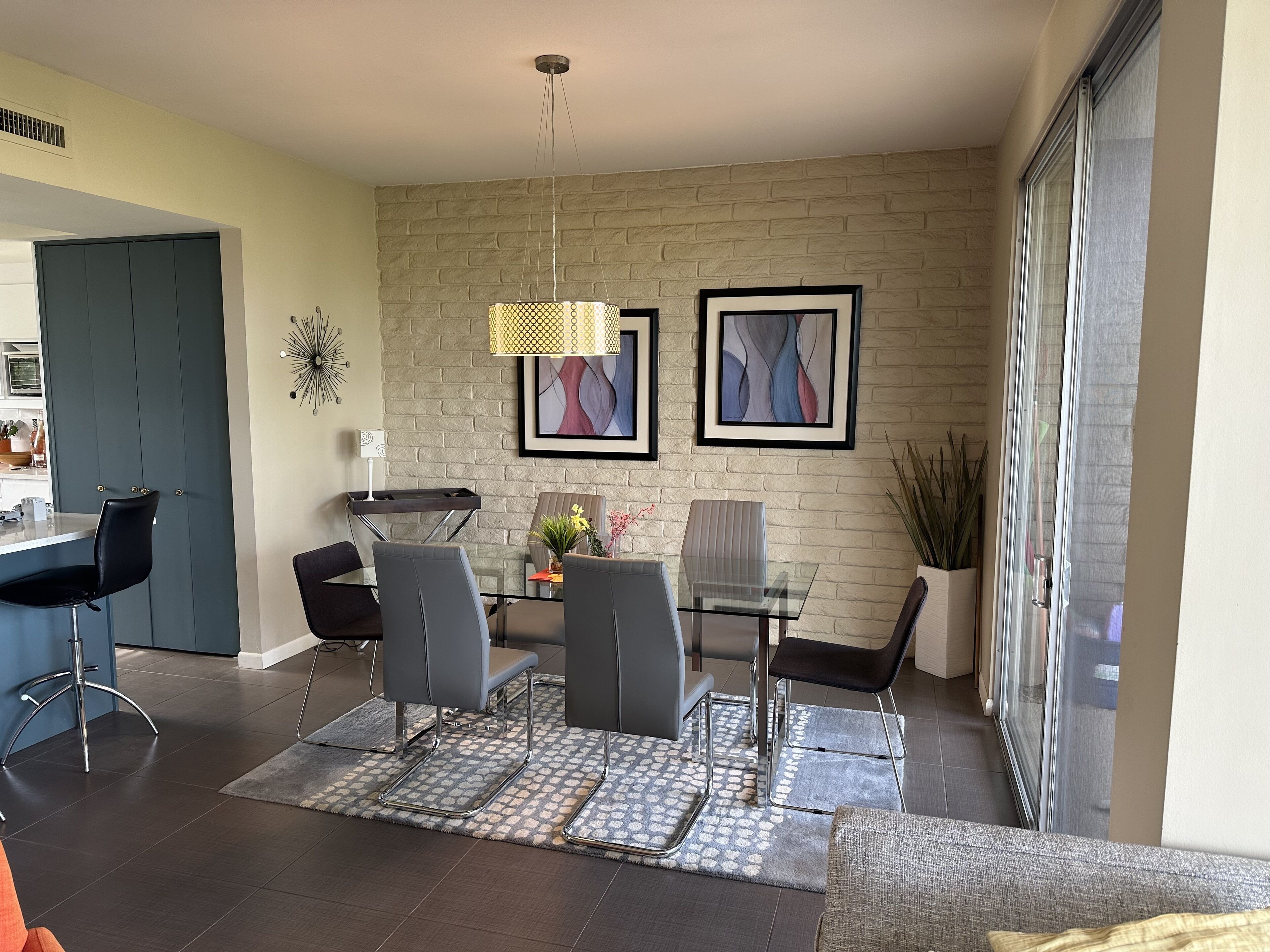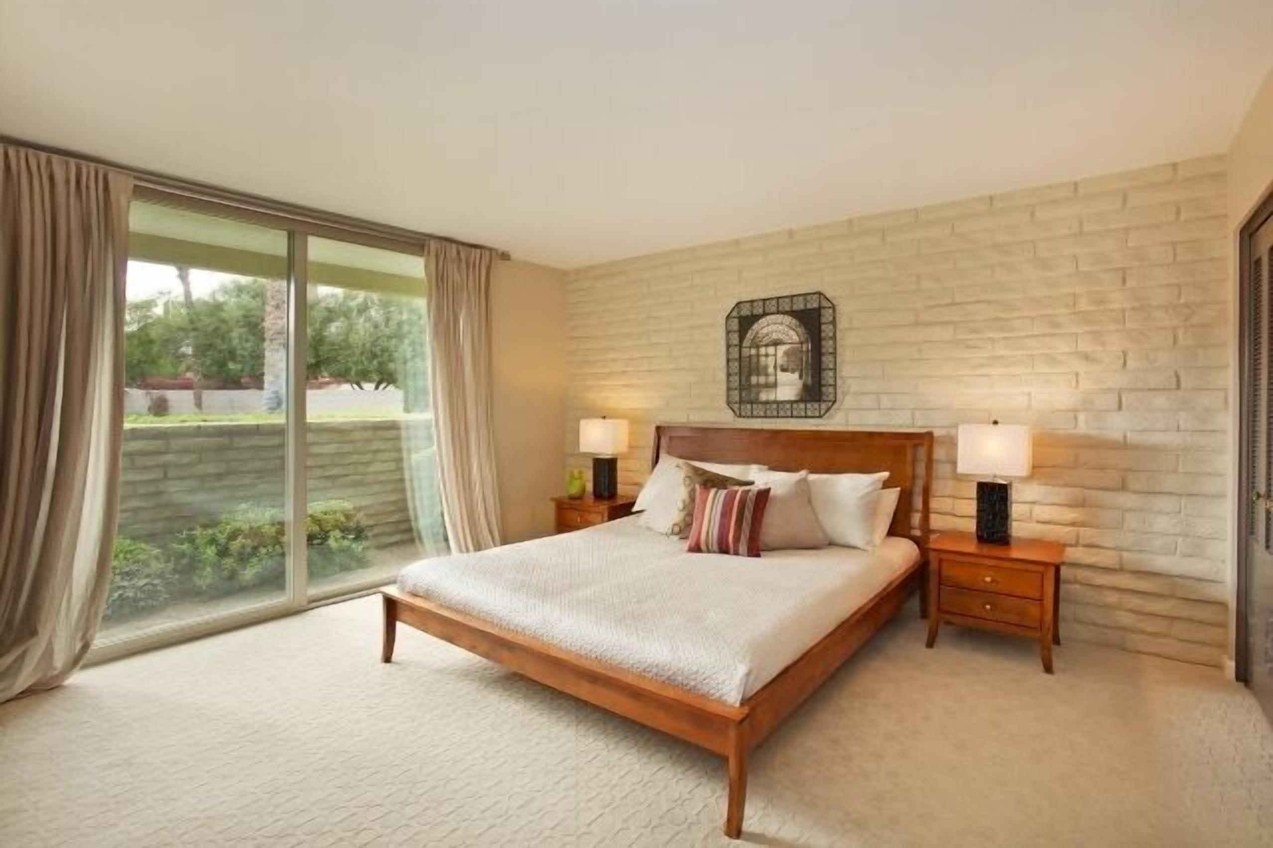 MID CENTURY MODERN IN INDIAN WELLS Built in the Mid Century and recently remodeled to its original era. Just under 2000 square feet of space all on one level with a spacious private patio with BBQ. Large floor to ceiling windows maximize the view of the expansive green space and you're only steps to a large pool & spa. The beautiful bright kitchen is brand new (2022). Loads of cupboard space, quartz countertops and well stocked. Bedrooms are large with 2 King Size Beds in two rooms and twin beds in 3rd room. Tile throughout most of the home, except carpets in Bedrooms. Sliding glass doors in bathrooms lead to inner courtyard. We are continually doing upgrades on our home to make it very comfortable yet preserving the mid century vibe.There are 6 pools and 3 hot tubs to choose from as well as two tennis courts & a pickleball court. The pool behind our home is the largest and has a 14 person hot tub. Fabulous location close to Indian Wells Club, the Hyatt Hotel & numerous restaurants. A short drive takes you to El Paseo's world class shopping & restaurants.We love our home in Casa Dorado and are sure you will enjoy it as much as we do.