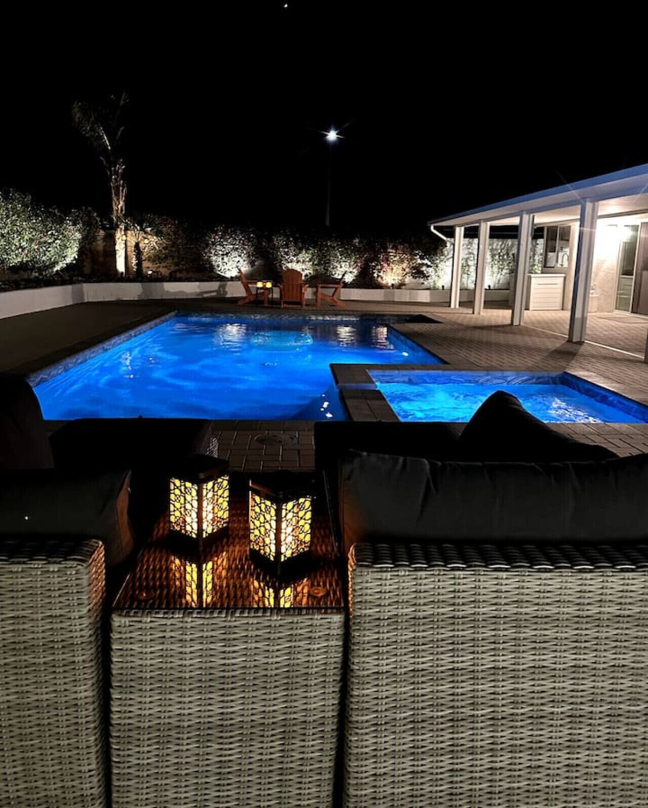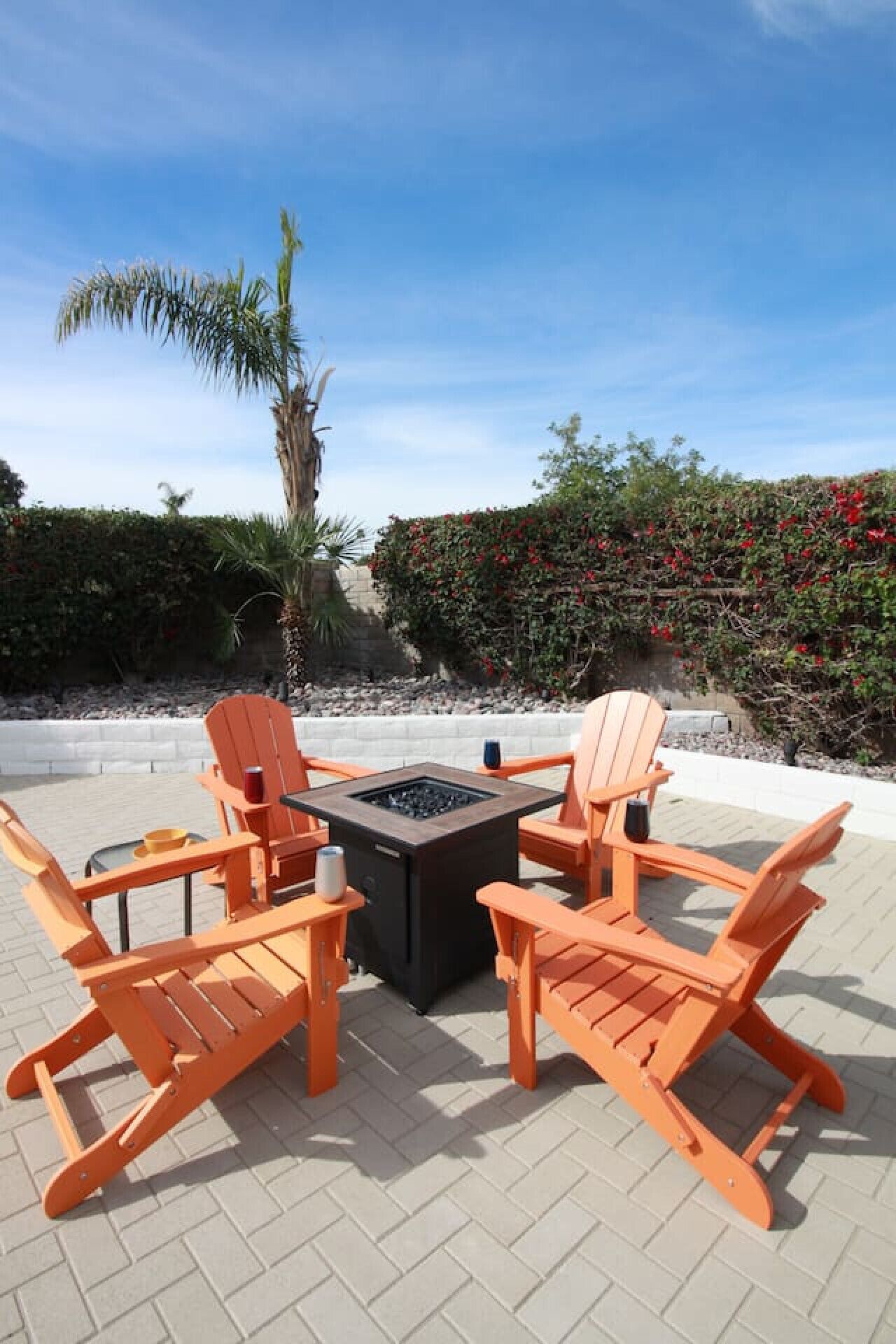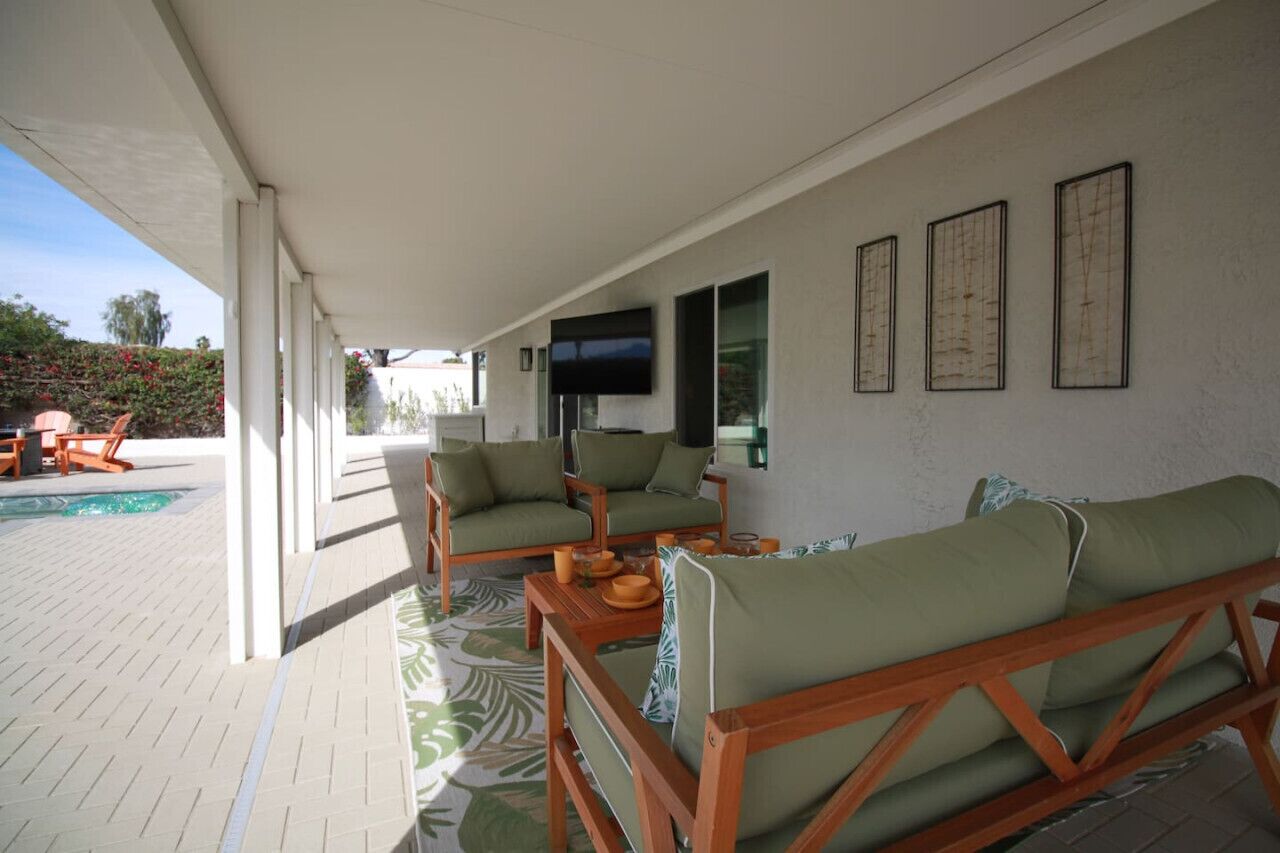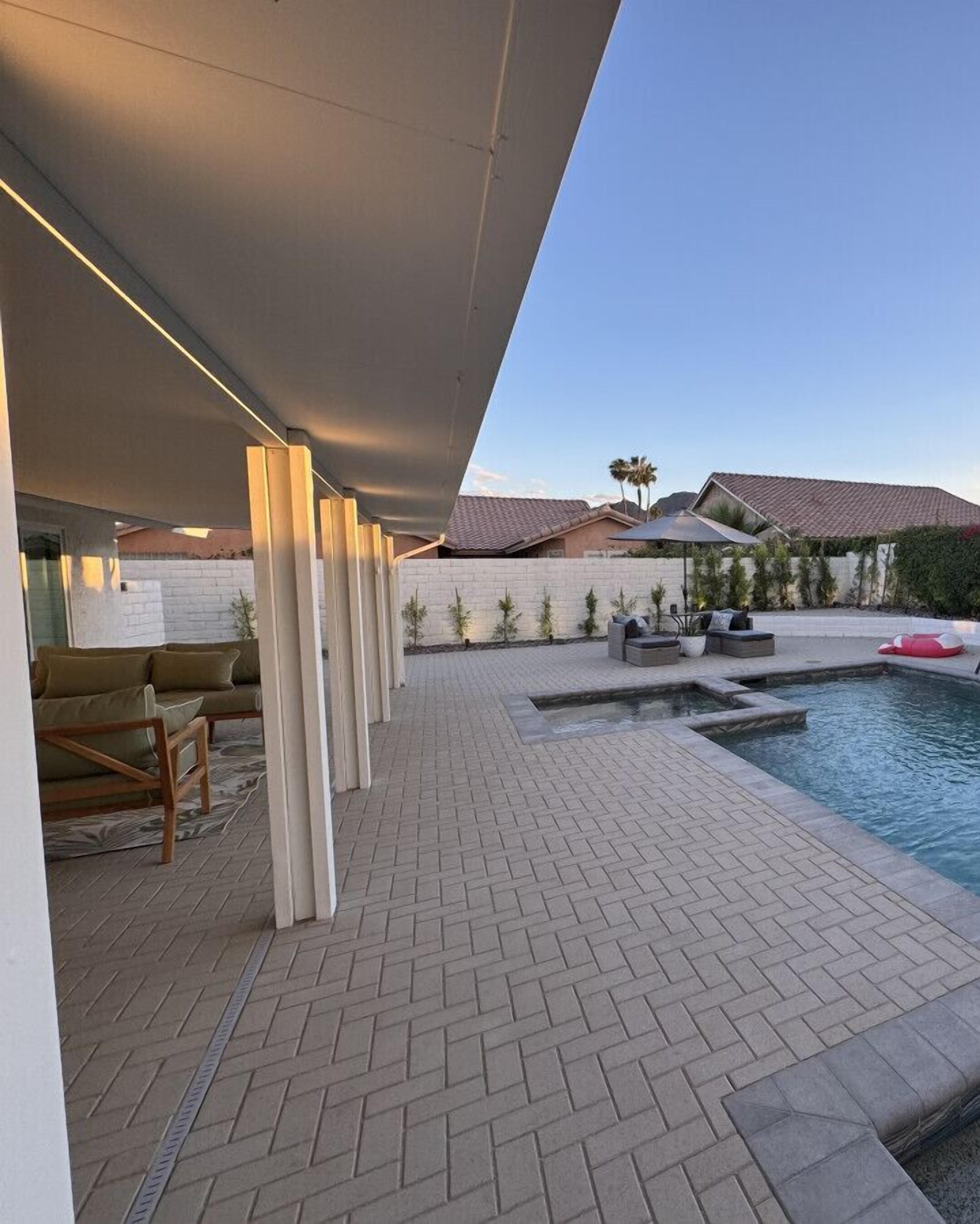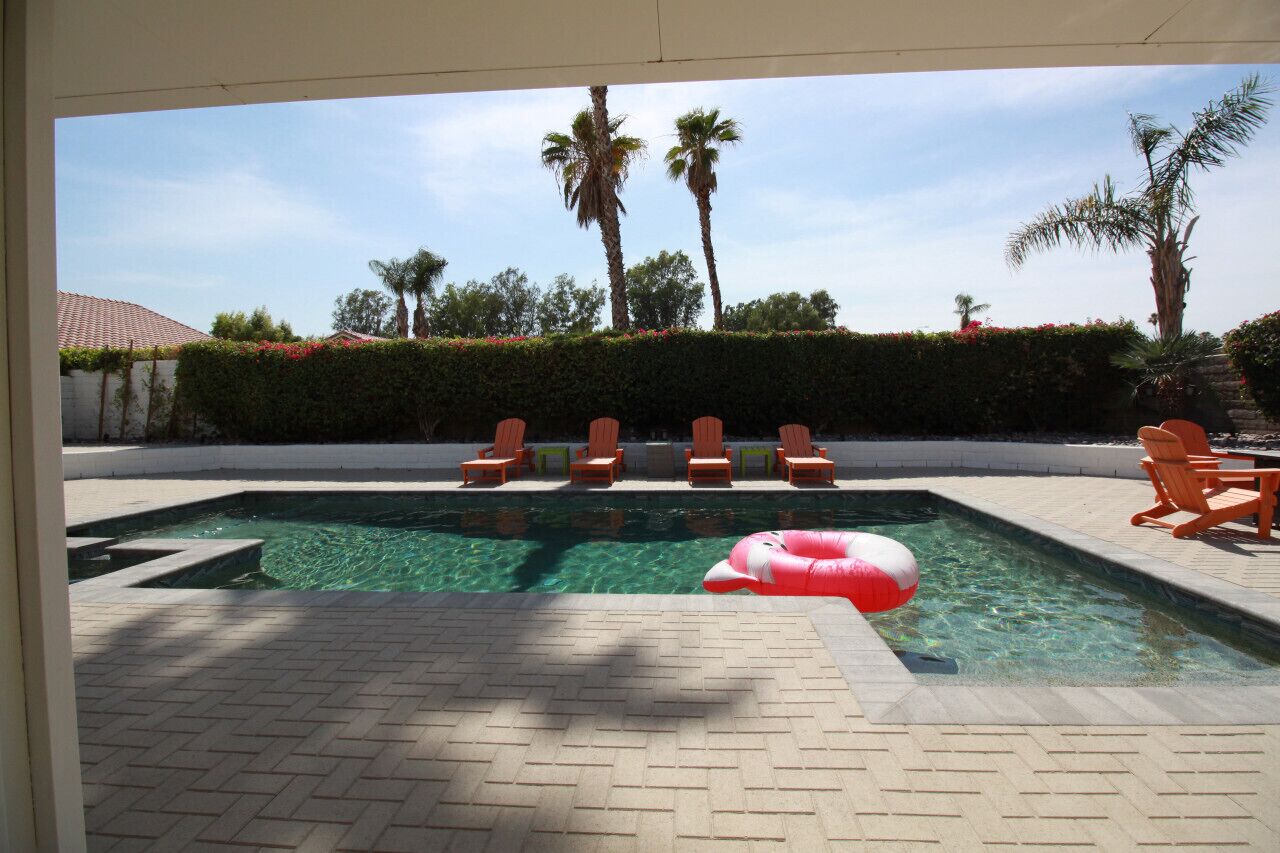 Indian Wells 4BD/3BA Home. Private Pool & Spa A dreamy desert retreat steps away from Indian Wells Tennis Gardens.The Village at Indian Wells, is a quiet and safe community neighborhood that is walking distance to Indian Wells Tennis Gardens, north of Miles Street and a ~5 minute drive from world-class golf, exquisite dining, numerous grocery stores, local shopping and big name box stores. Chill by the pool, relax in the spa and cozy up next to fire pit. Pointe Creek is truly your idyllic desert retreat.Follow us @PointeCreek on IGThis 4BD/3BA residence exclusively occupies the western side of a peaceful cul-de-sac, adding to its tranquil ambiance. Two separate primary and secondary ensuite offer privacy and generous space to thoroughly enjoy the private saltwater pool and spa, providing limitless hours of entertainment.WHERE YOU’LL SLEEP8 Guests Max / 4 Bedrooms / 3 BathroomsPRIMARY SUITE - King bed, 55" Samsung SmartTV, slider that leads directly to backyard with blackout shades. Enjoy the natural light and ample room to get ready in with a 120" vanity, double sinks, full-length wardrobe mirrors, and closet. 24x24 Marble tile bathroom floor with an oversized shower, freestanding soaking tub, adjustable back-lit LED mirrors, and separate lavatory. SECONDARY ENSUITE - King bed, 55'’ Samsung SmartTV, full-length wardrobe mirrors, blackout shades and closet. The private bathroom features marble tile floor, Delta fixtures including a handheld, penny marble shower tile, and adjustable back-lit LED mirror.BEDROOM 3 - King bed, blackout shades, window bench, closet for storageBEDROOM 4 - Queen bed, blackout shades, closet for storageGUEST BATHROOM - Frameless glass shower, 36" vanity, hooks for robes/clothingPOOL/SPA/OUTDOOR SPACE:-There is no gate around the pool/spa. Please keep a watchful eye!-Teak seating area for 6 under the shaded awning and outside 65" Samsung SmartTV-2 plush chaise loungers and shared table-Pool towels and floats provided-Propane fire pit and (4) Adirondack chairs for seating -Lots of areas to find a good corner to hang-Complimentary spa heating is set to a max temp of 101. Pool heating is available for an addtl daily fee. See below for more details.OPEN-CONCEPT KITCHEN & LIVING ROOM:-Kitchen: all brand new kitchen with Thor Appliances. 6 burner stove and single oven, French door fridge, quiet dishwasher, pull out drawer microwave. Oversized waterfall island with quartz countertops. Island seating for four and modern overhead dimmable pendants.-Coffee bar: Coffee pods, teas, and sugars are complimentary. Coffee maker can also make traditional full pots of coffee.-Living room includes a 65" Samsung SmartTV with Sonos sound bar, a nook to enjoy the cozy morning sun and view, a gas fireplace with gold glass for a modern vibe-Dining area has seating for 6 at an oak table with modern chairs, placemats and linen napkinsHIGH-SPEED INTERNET, TV and AC:-Internet: Blazing-fast 500Mbps fiber-optic internet, ideal for camera quality Zoom calls while working away from home-TVs: Samsung 65" Smart TV in living room. All bedrooms equipped with Samsung 55" SmartTVs. Easy sign-in to any other of your private apps-AC/Heat: AC and heat are controlled by wall mounted Nest thermostat-(2) Wireless chargers for iPhone and iWatch and numerous USB 2.0 and USB C receptacles throughout the houseLAUNDRY + CLEANING:-Brand new Whirlpool washer and Whirlpool dryer -Laundry detergent, stain treatment, and dryer sheets provided-General household cleaning supplies, LG cordless vacuum, broom, electric blower, Swiffer, and spill rags provided (we’re OCD so we understand wanting a clean house all the time!)Guests have access to the entire property minus the garage. Feel free to enjoy inside and all throughout the backyard, fire pit, pool and spa.The Village at Indian Wells, is a quiet and safe community neighborhood that is walking distance to Indian Wells Tennis Gardens, north of Miles Street and a ~5 minute drive from world-class golf, exquisite dining, numerous grocery stores, local shopping and big name box stores.CAMERAS, PARKING, SAFETY & MAINTENANCE-Cameras: For your safety and safety of others we have 4 exterior cameras: (1) front door, (1) driveway, (1) front yard, and (1) backyard (recordings remain private and may be used for liability reasons and/or to monitor occupancy and other policies).-Parking: Driveway can accommodate 3-4 vehicles, depending upon size. No street parking. No overnight parking.-Maintenance: landscaper on Thursdays. Pool maintenance Tuesday and Friday-Safety: fire extinguisher under sink, hard wired carbon monoxide and smoke alarms, first aid kit-Pool heating requests must be made 72 hours in advance of check-in. Pool heating is $94 addtl fee per day. Max pool temp is 85. Spa and Pool cannot be heated simultaneously. (Please note when booking. Fees must be paid prior to check-in. Payments handled via third party)HOUSE RULES:-NO pets or animals. We are NOT an animal friendly house.-No smoking, vaping, ecigarettes or other-No large gatherings. No parties.-No confetti, glitter, rose petals, or taping things to the walls.-Have a good time, please treat our home as you would treat your own.PERMIT DETAILS & CITY ORDINANCES:We don’t make the laws, but we follow them. -Max occupancy: 8 Guests-Minimum renter age 25. Renter on booking must be staying at property and signs an additional contract outside of AirBNB.-No parties, no large gatherings-Strict city quiet hours are: 10pm - 7am-Indian Wells requires a 13.25% Transient Occupancy Tax. This will be added at checkout, separate from cleaning and service fee. -Permit number: STRU-000670-2023If you’ve made it this far, we hope you’re excited to stay!! See you soon!!
