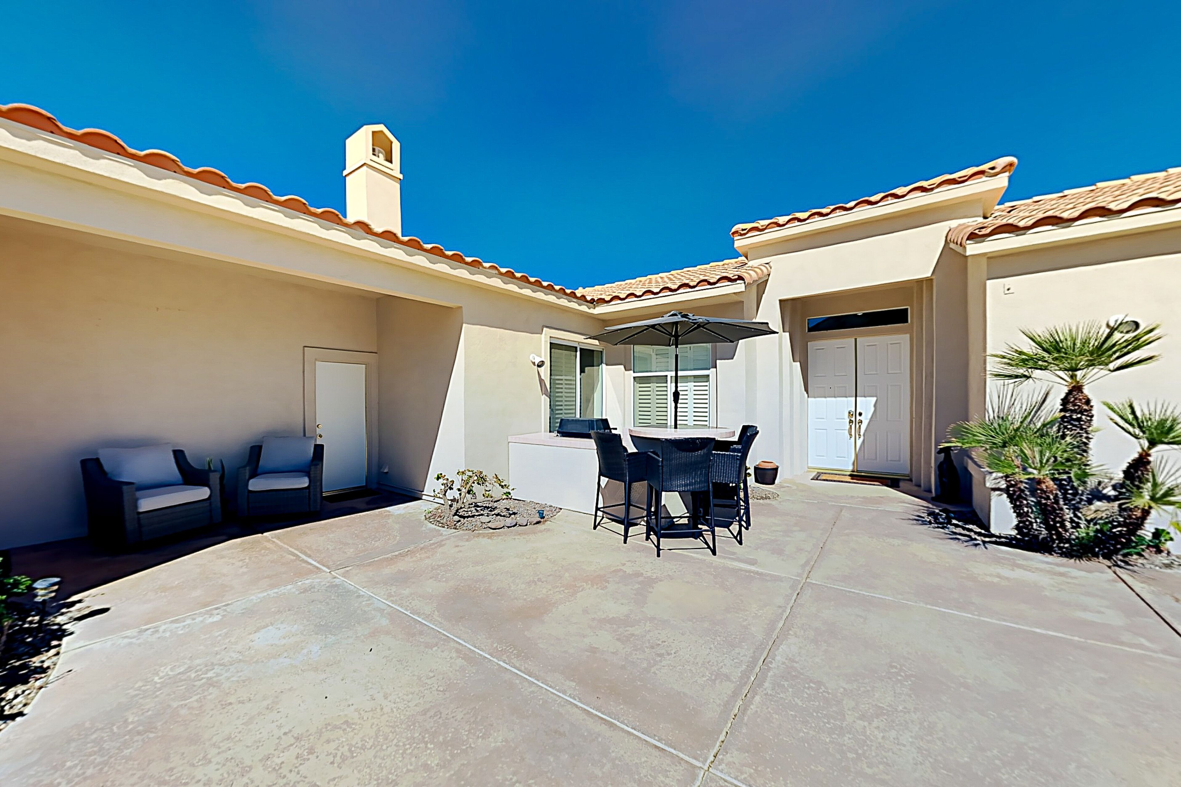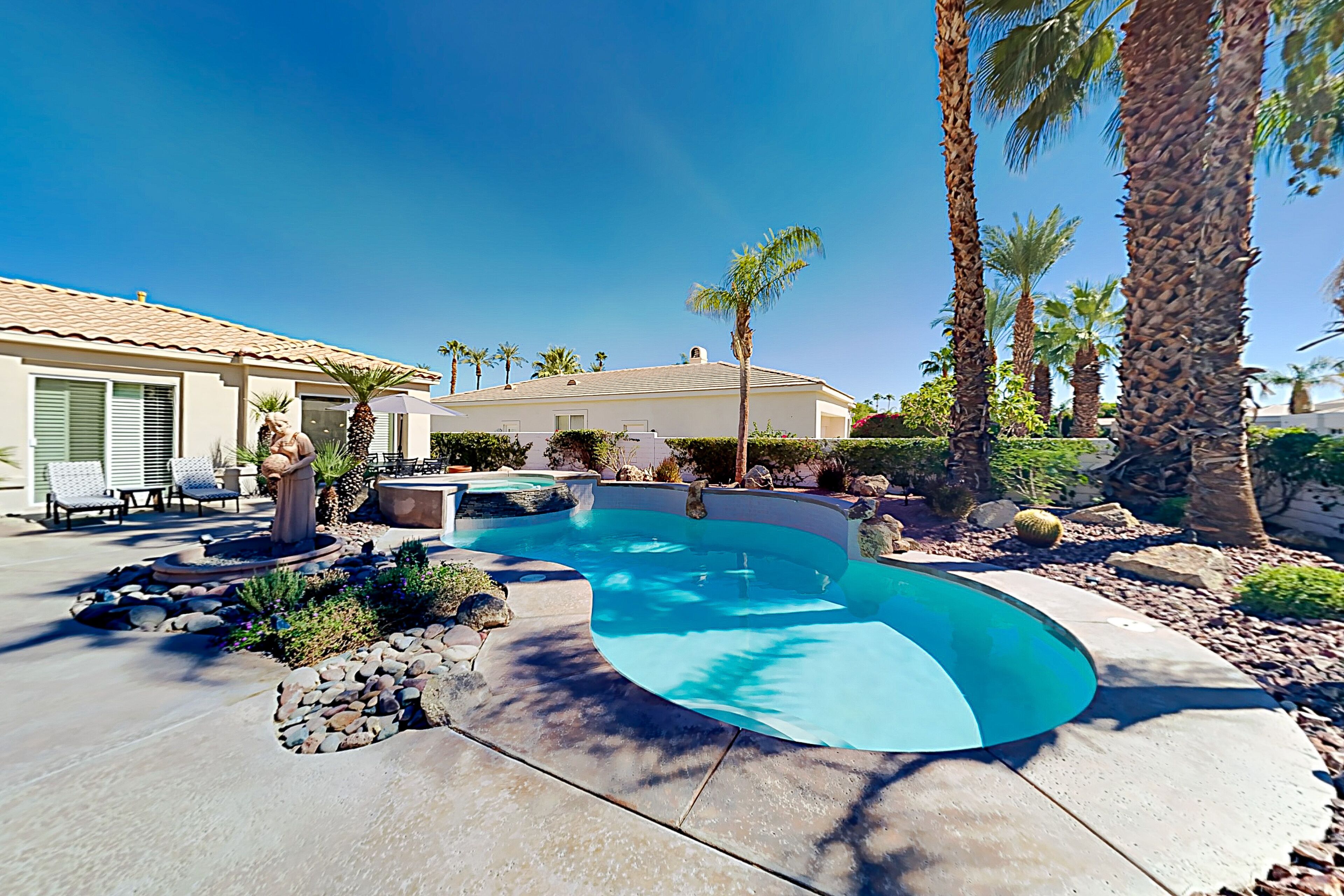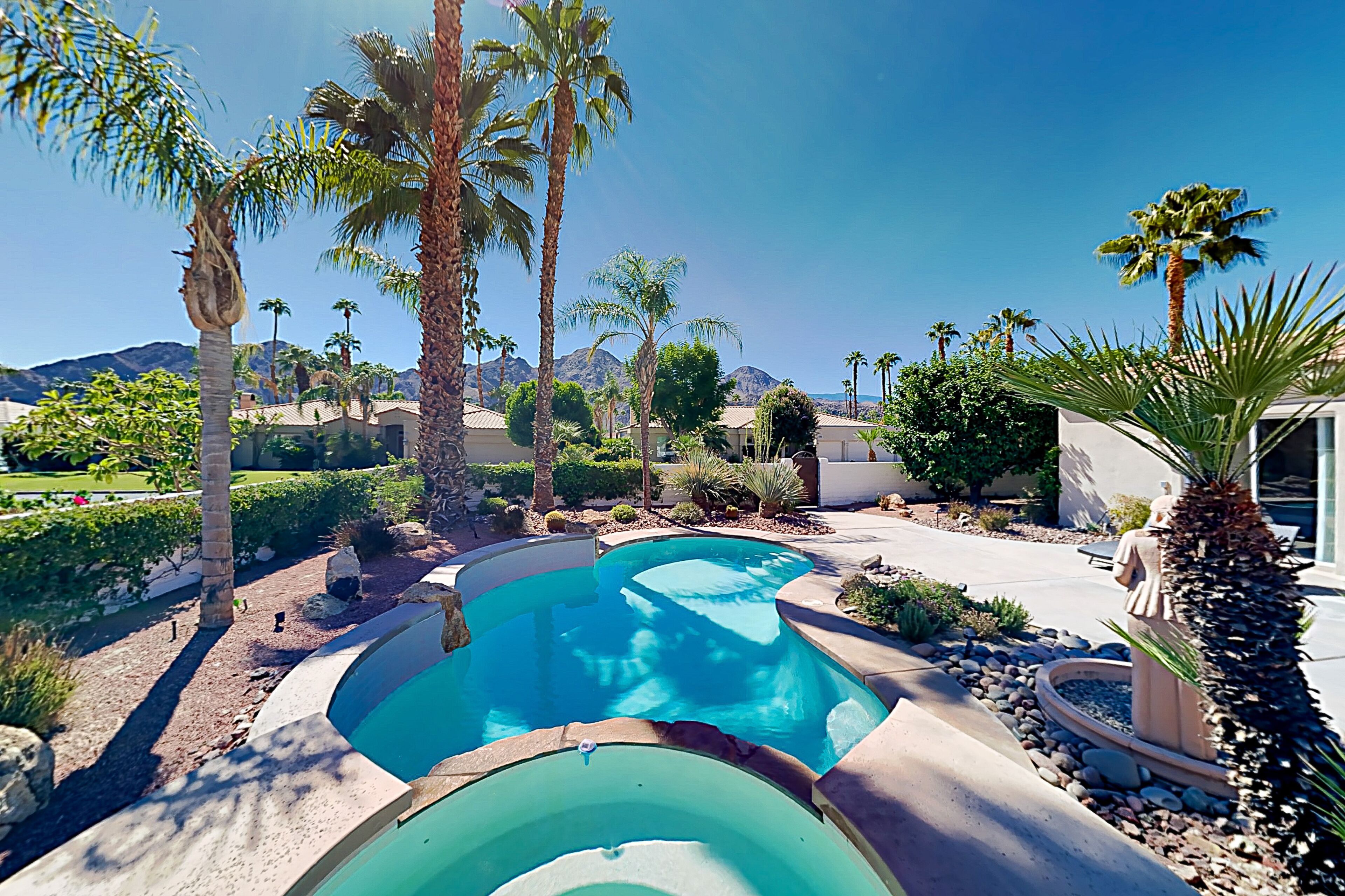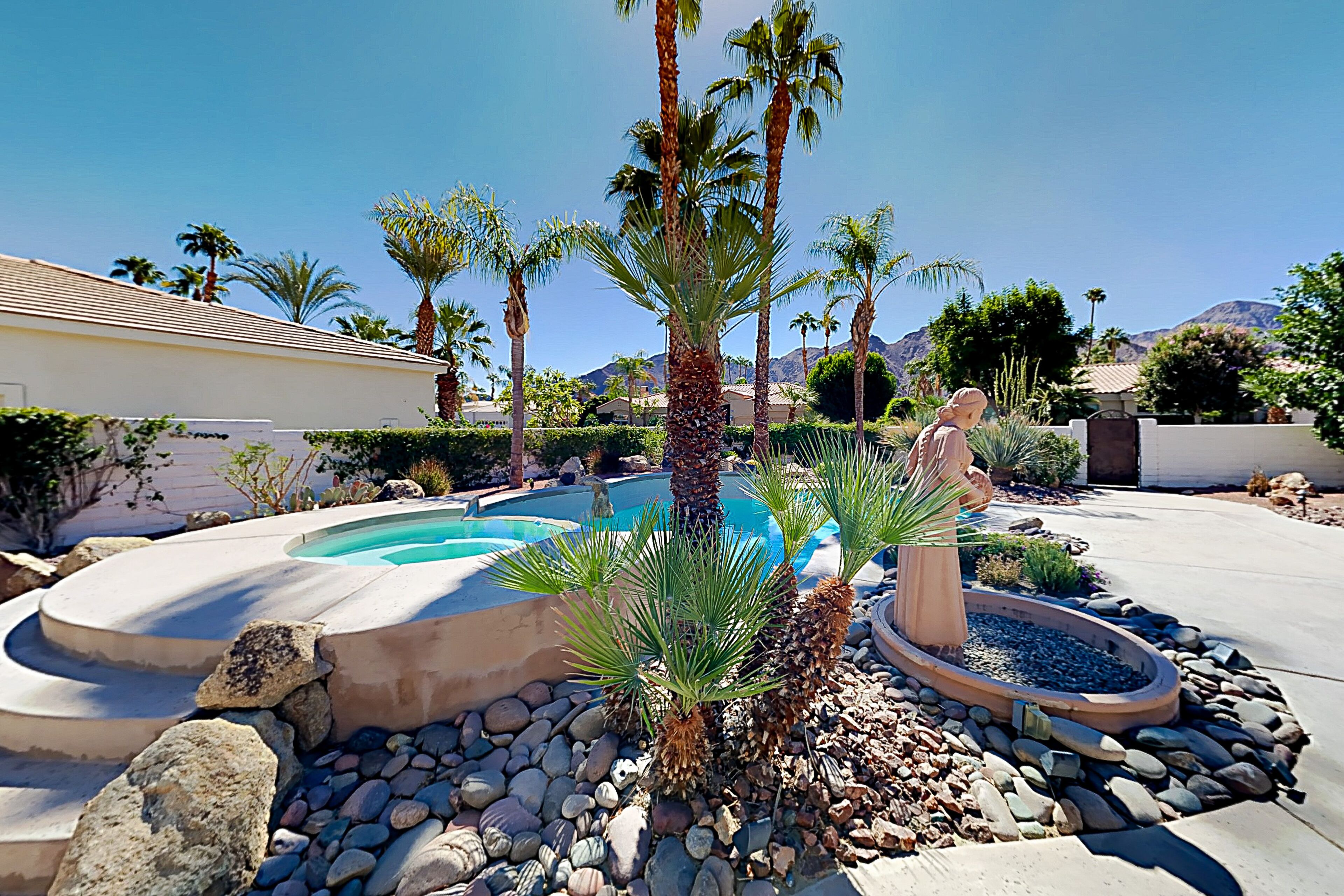 Private & Ideal Locale at Indian Wells | Heated Pool, Spa, Office & Casita Tomahawk EscapeOur calendar is updated in real-time & our nightly rates are accurately displayed. Simply enter your desired dates and click 'Book Now!'Situated in Indian Wells Country Club, this 5BR/3.5BA retreat presents a spacious interior with two living areas, a casita with its own entrance, and a stunning outdoor oasis. Spend sunny days by the heated saltwater pool and spa on the mountain-view patio. Whether you want to shop, dine, hike, golf, or spa, this home provides amazing access to it all! LIVING AREA Relax on the leather sofas and watch a movie on the Apple TV in the main living area. A second living space offers a gas fireplace, a flat-screen TV, and plush seating. KITCHEN & DINING A full suite of stainless steel appliances and granite countertops sparkle in the well-equipped kitchen. When meals are ready, the table accommodates six. BED & BATH This single-level rental sleeps 10 guests between four bedrooms in the main home and one bedroom in the casita. The primary suite features a king bed, 50' smart TV, patio access, and an en-suite bathroom with a double vanity, walk-in shower, and a soaking tub. Two additional bedrooms are each furnished with a queen bed (one of them has a desk with computer monitors). The fourth bedroom is appointed with a queen bed, 50' smart TV, and an en-suite bathroom that has a tub/shower combination. A half bath creates added convenience. The private casita presents a bedroom with a queen bed, a bistro table for two, patio access, and a flat-screen TV. The en-suite bathroom has a tub/shower combination. OUTDOOR AREA & AMENITIES Your outdoor mountain-view paradise is perfect for spending leisurely days. Unwind on one of the loungers next to the pool (5' deep) and spa. Make use of the gas grill and dine alfresco on the spacious patio. EXTRA PERKS & MORE DETAILS Complimentary Wi-Fi, a washer/dryer, and parking for five cars (two in the garage and three in the driveway) are provided. One guest bedroom doubles as a home office with dual monitors for working remotely. LOCATION Located in the gated community of Indian Wells Country Club and just minutes from the highway, this rental provides seamless access to the best of the area. Golfers will appreciate having multiple prominent courses nearby. Outdoor enthusiasts can explore the array of hiking trails within proximity.If you are bringing a dog on your trip, the pet fee is already included in your quote when selecting ‘Yes’ to pets. No more dogs are allowed.Parking notes: There is free parking available for 5 vehicles.This rental is located on floor 1.2 days notification is required in order to heat the pool and pool spa. A fee of USD 100 per day must be paid prior to check-in to purchase pool and pool spa heat for your stay.Damage waiver: The total cost of your reservation for this Property includes a nightly damage waiver fee, plus tax if applicable (the “Damage Waiver”). (A discount may be applied for stays of 28 nights or longer, if permitted.) The Damage Waiver covers you for up to $3,000 of accidental damage to the Property or its contents (such as furniture, fixtures, and appliances) as long as you report the incident to the host prior to checking out. The Damage Waiver fee eliminates the need for a traditional security deposit.More information can be downloaded from the "Rental Agreement" on the checkout page.Due to local laws or HOA requirements, guests must be at least 25 years of age to book. Guests under 25 must be accompanied by a parent or legal guardian for the duration of the reservation.