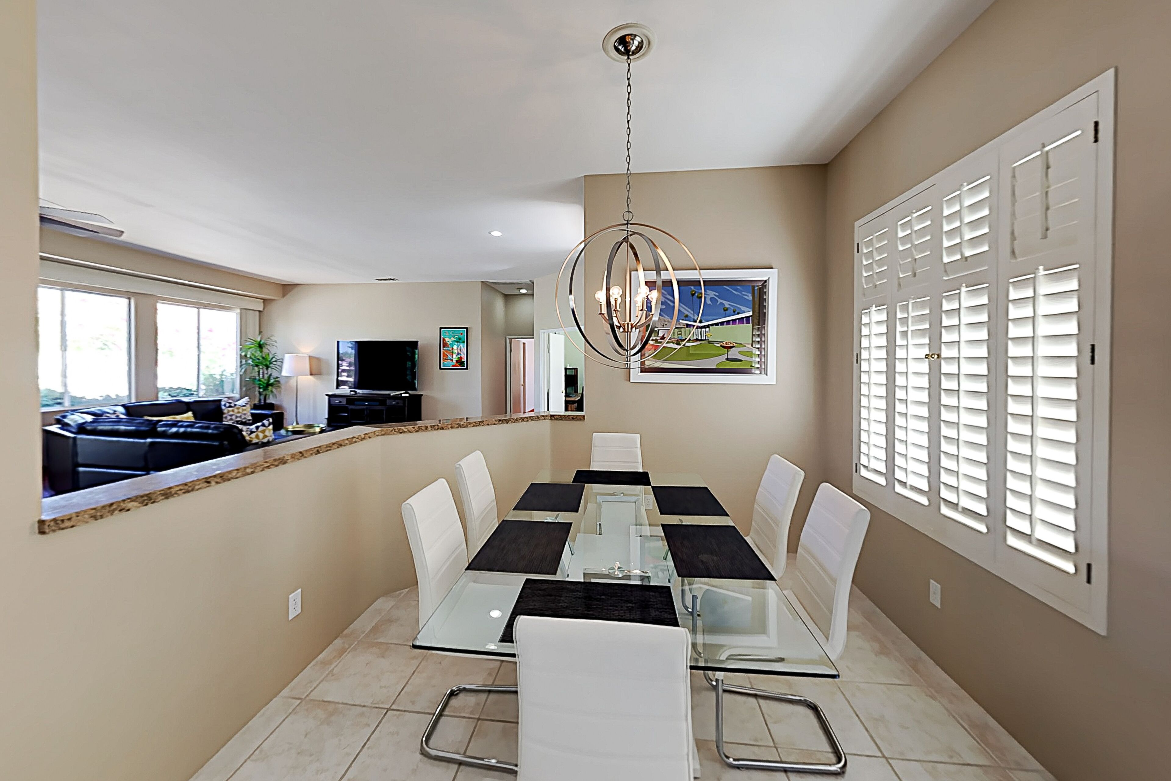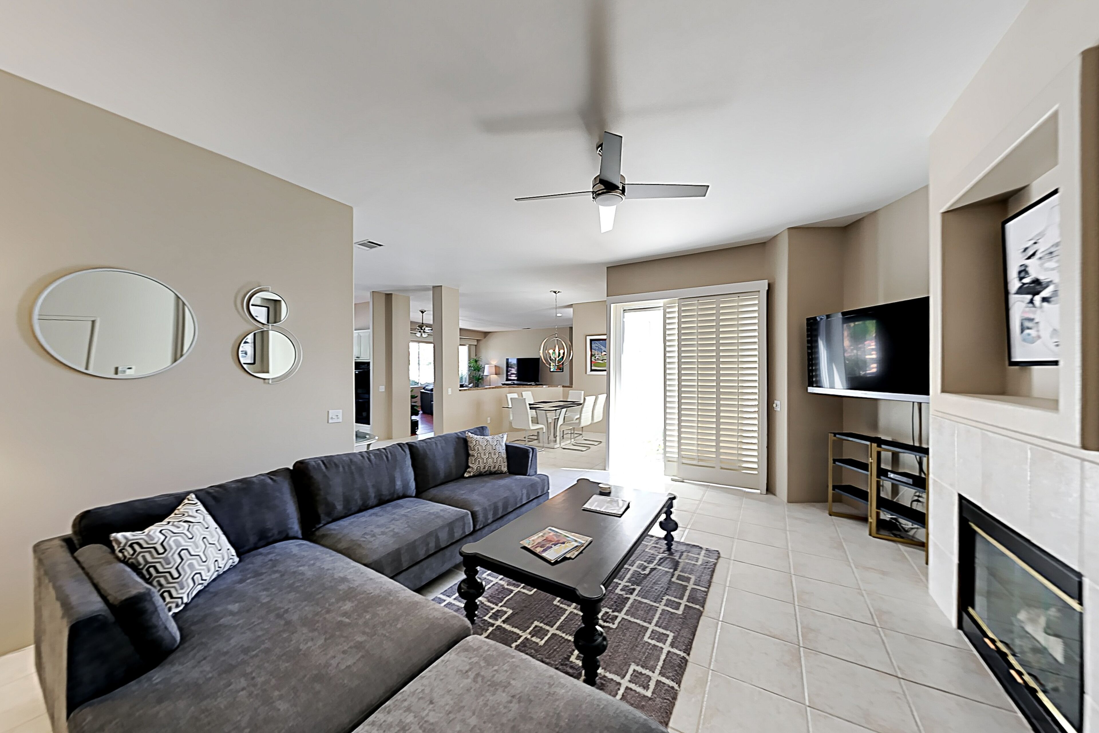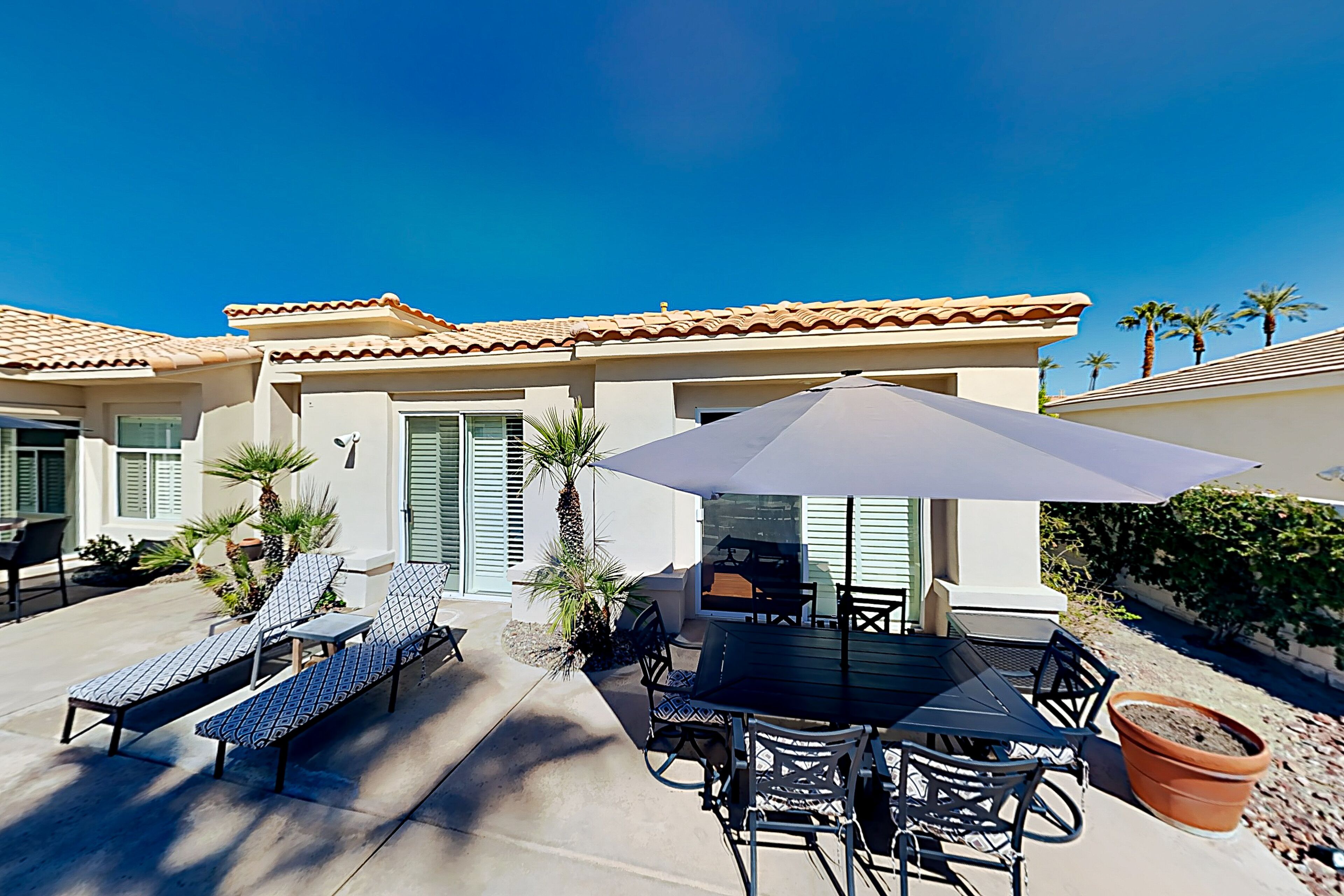 Private & Ideal Locale at Indian Wells | Heated Pool, Spa, Office & Casita Tomahawk EscapeOur calendar is updated in real-time & our nightly rates are accurately displayed. Simply enter your desired dates and click 'Book Now!'Situated in Indian Wells Country Club, this 5BR/3.5BA retreat presents a spacious interior with two living areas, a casita with its own entrance, and a stunning outdoor oasis. Spend sunny days by the heated saltwater pool and spa on the mountain-view patio. Whether you want to shop, dine, hike, golf, or spa, this home provides amazing access to it all! LIVING AREA Relax on the leather sofas and watch a movie on the Apple TV in the main living area. A second living space offers a gas fireplace, a flat-screen TV, and plush seating. KITCHEN & DINING A full suite of stainless steel appliances and granite countertops sparkle in the well-equipped kitchen. When meals are ready, the table accommodates six. BED & BATH This single-level rental sleeps 10 guests between four bedrooms in the main home and one bedroom in the casita. The primary suite features a king bed, 50' smart TV, patio access, and an en-suite bathroom with a double vanity, walk-in shower, and a soaking tub. Two additional bedrooms are each furnished with a queen bed (one of them has a desk with computer monitors). The fourth bedroom is appointed with a queen bed, 50' smart TV, and an en-suite bathroom that has a tub/shower combination. A half bath creates added convenience. The private casita presents a bedroom with a queen bed, a bistro table for two, patio access, and a flat-screen TV. The en-suite bathroom has a tub/shower combination. OUTDOOR AREA & AMENITIES Your outdoor mountain-view paradise is perfect for spending leisurely days. Unwind on one of the loungers next to the pool (5' deep) and spa. Make use of the gas grill and dine alfresco on the spacious patio. EXTRA PERKS & MORE DETAILS Complimentary Wi-Fi, a washer/dryer, and parking for five cars (two in the garage and three in the driveway) are provided. One guest bedroom doubles as a home office with dual monitors for working remotely. LOCATION Located in the gated community of Indian Wells Country Club and just minutes from the highway, this rental provides seamless access to the best of the area. Golfers will appreciate having multiple prominent courses nearby. Outdoor enthusiasts can explore the array of hiking trails within proximity.If you are bringing a dog on your trip, the pet fee is already included in your quote when selecting ‘Yes’ to pets. No more dogs are allowed.Parking notes: There is free parking available for 5 vehicles.This rental is located on floor 1.2 days notification is required in order to heat the pool and pool spa. A fee of USD 100 per day must be paid prior to check-in to purchase pool and pool spa heat for your stay.Damage waiver: The total cost of your reservation for this Property includes a nightly damage waiver fee, plus tax if applicable (the “Damage Waiver”). (A discount may be applied for stays of 28 nights or longer, if permitted.) The Damage Waiver covers you for up to $3,000 of accidental damage to the Property or its contents (such as furniture, fixtures, and appliances) as long as you report the incident to the host prior to checking out. The Damage Waiver fee eliminates the need for a traditional security deposit.More information can be downloaded from the "Rental Agreement" on the checkout page.Due to local laws or HOA requirements, guests must be at least 25 years of age to book. Guests under 25 must be accompanied by a parent or legal guardian for the duration of the reservation.