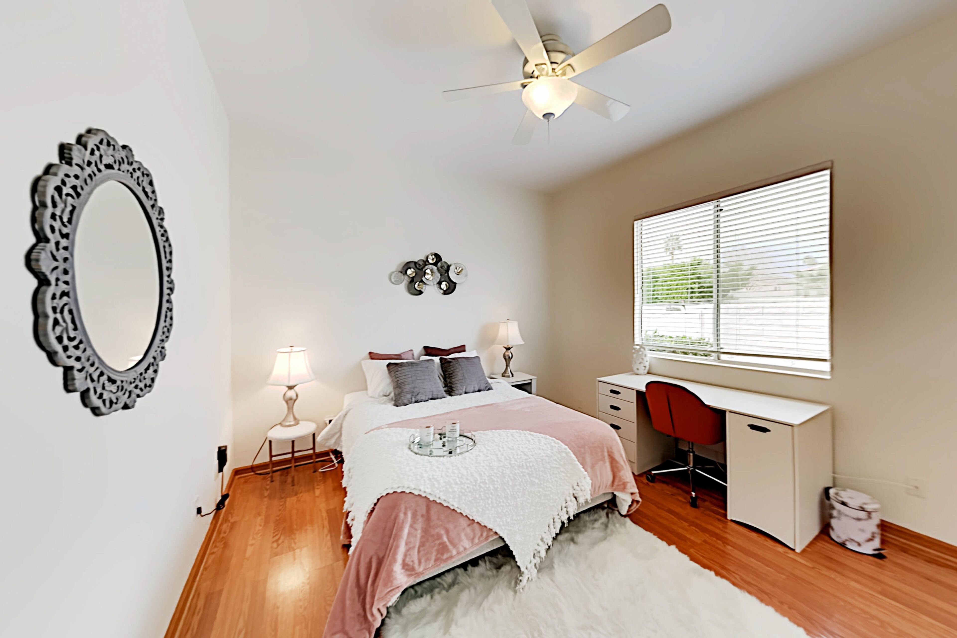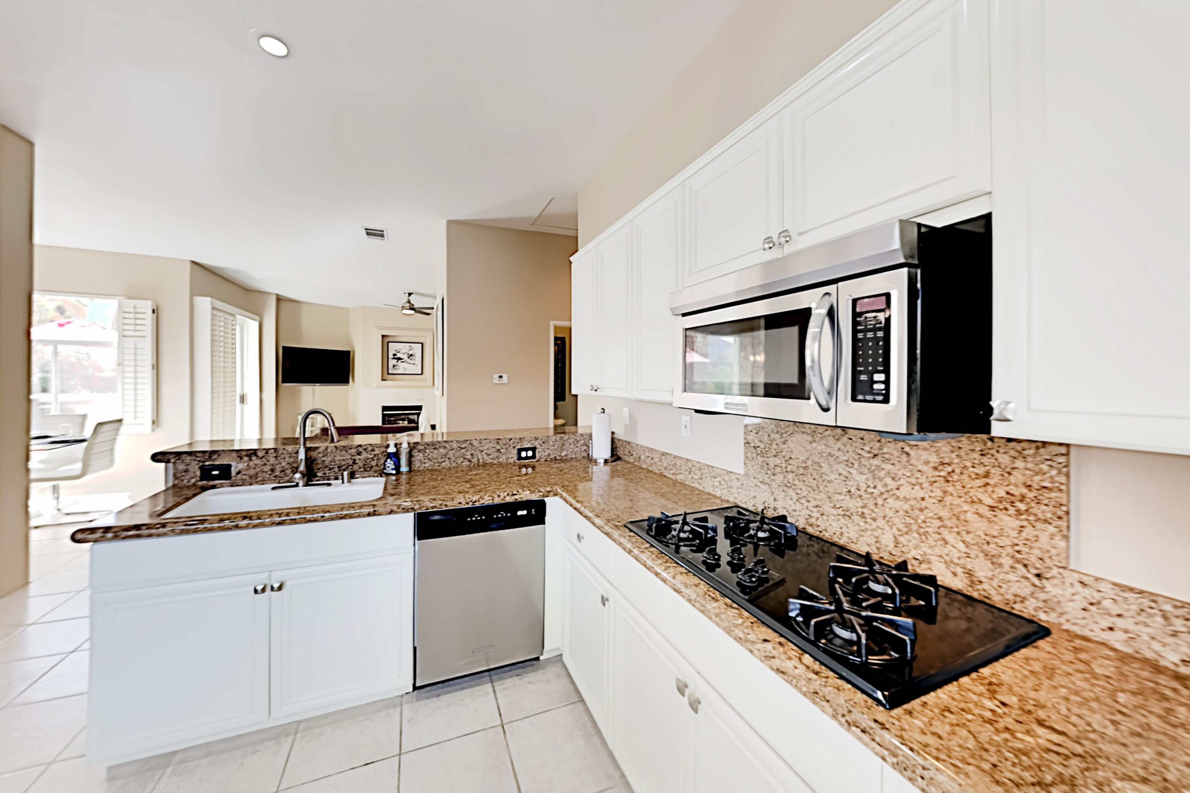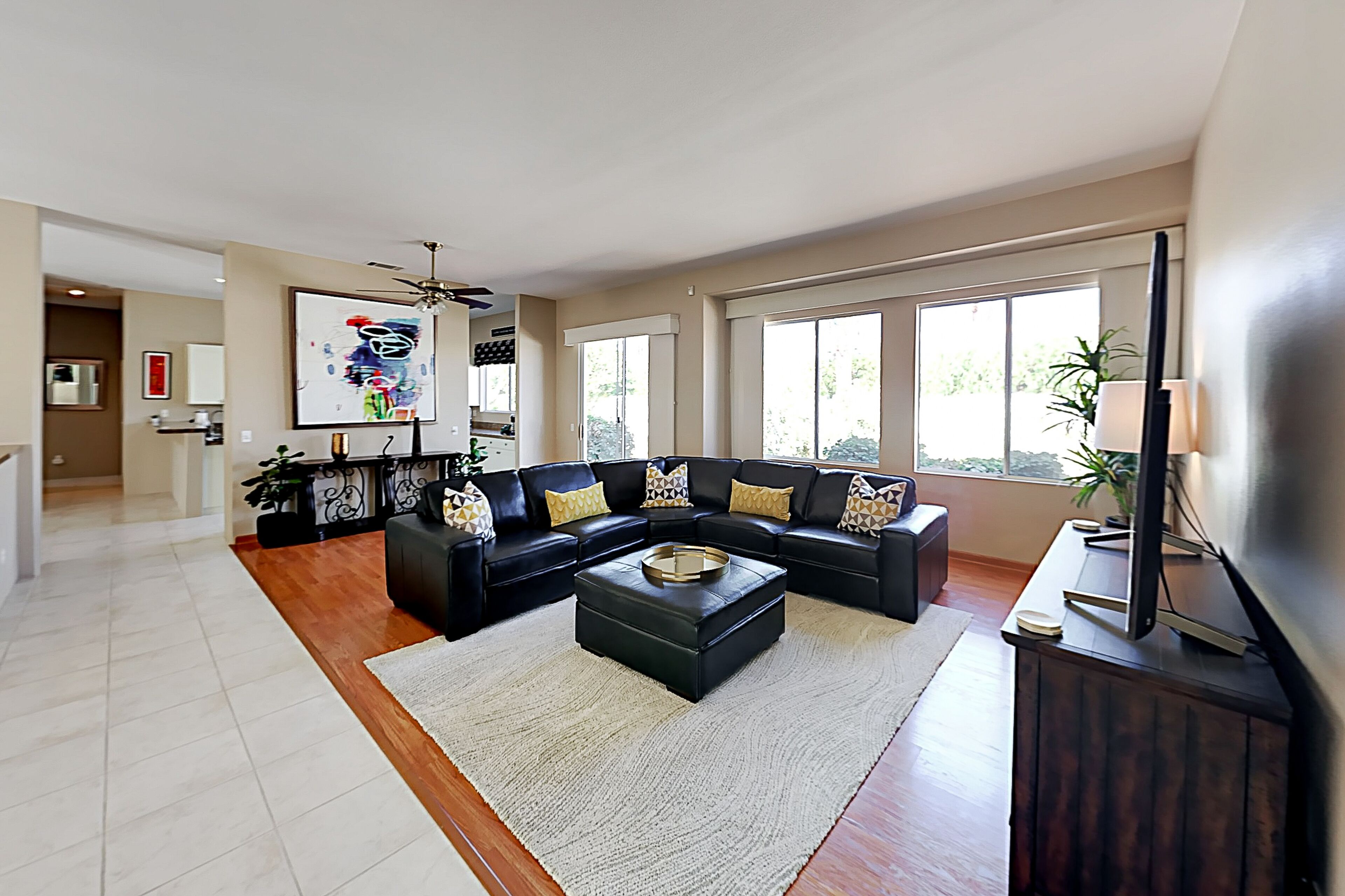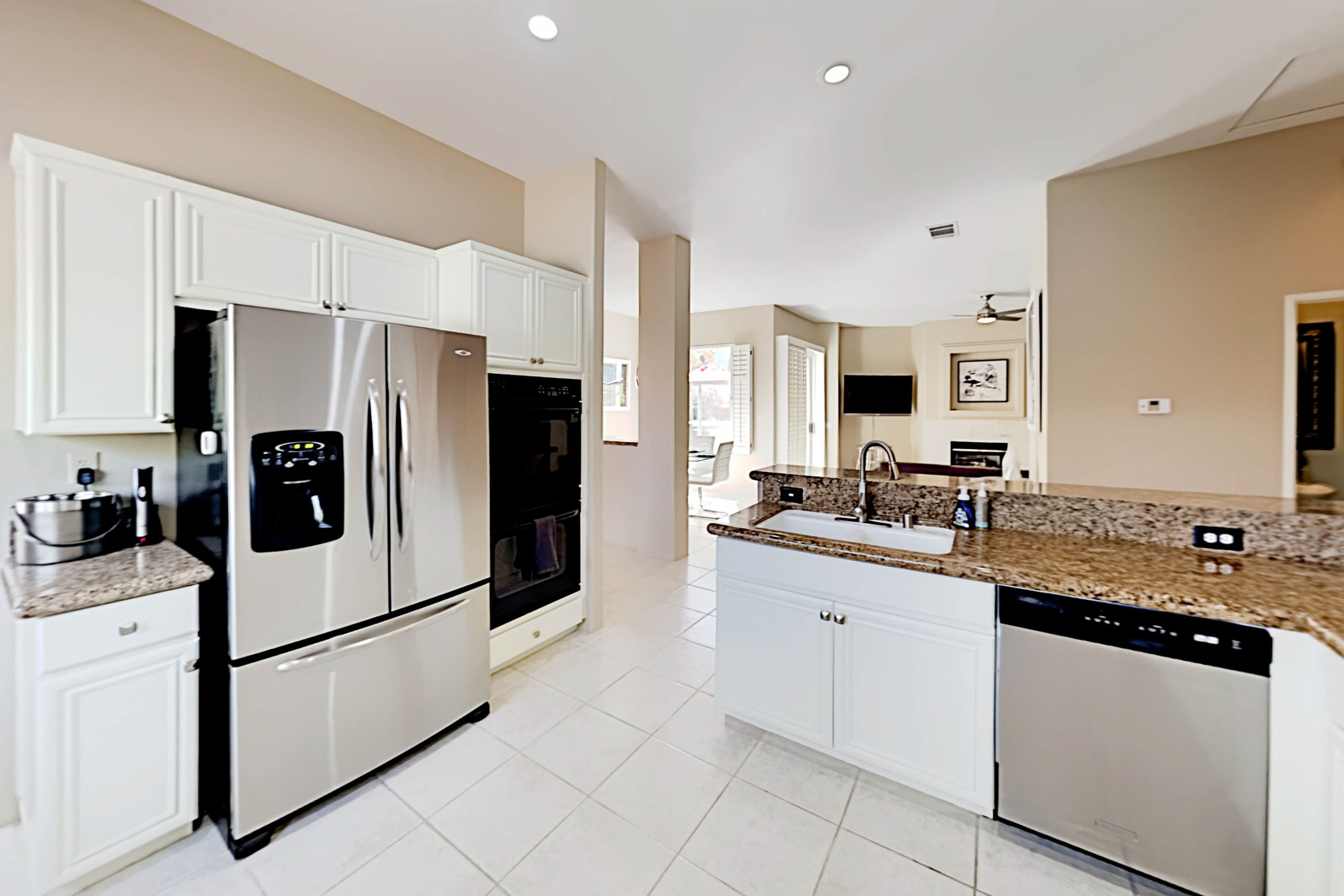 Private & Ideal Locale at Indian Wells | Heated Pool, Spa, Office & Casita Tomahawk EscapeOur calendar is updated in real-time & our nightly rates are accurately displayed. Simply enter your desired dates and click 'Book Now!'Situated in Indian Wells Country Club, this 5BR/3.5BA retreat presents a spacious interior with two living areas, a casita with its own entrance, and a stunning outdoor oasis. Spend sunny days by the heated saltwater pool and spa on the mountain-view patio. Whether you want to shop, dine, hike, golf, or spa, this home provides amazing access to it all! LIVING AREA Relax on the leather sofas and watch a movie on the Apple TV in the main living area. A second living space offers a gas fireplace, a flat-screen TV, and plush seating. KITCHEN & DINING A full suite of stainless steel appliances and granite countertops sparkle in the well-equipped kitchen. When meals are ready, the table accommodates six. BED & BATH This single-level rental sleeps 10 guests between four bedrooms in the main home and one bedroom in the casita. The primary suite features a king bed, 50' smart TV, patio access, and an en-suite bathroom with a double vanity, walk-in shower, and a soaking tub. Two additional bedrooms are each furnished with a queen bed (one of them has a desk with computer monitors). The fourth bedroom is appointed with a queen bed, 50' smart TV, and an en-suite bathroom that has a tub/shower combination. A half bath creates added convenience. The private casita presents a bedroom with a queen bed, a bistro table for two, patio access, and a flat-screen TV. The en-suite bathroom has a tub/shower combination. OUTDOOR AREA & AMENITIES Your outdoor mountain-view paradise is perfect for spending leisurely days. Unwind on one of the loungers next to the pool (5' deep) and spa. Make use of the gas grill and dine alfresco on the spacious patio. EXTRA PERKS & MORE DETAILS Complimentary Wi-Fi, a washer/dryer, and parking for five cars (two in the garage and three in the driveway) are provided. One guest bedroom doubles as a home office with dual monitors for working remotely. LOCATION Located in the gated community of Indian Wells Country Club and just minutes from the highway, this rental provides seamless access to the best of the area. Golfers will appreciate having multiple prominent courses nearby. Outdoor enthusiasts can explore the array of hiking trails within proximity.If you are bringing a dog on your trip, the pet fee is already included in your quote when selecting ‘Yes’ to pets. No more dogs are allowed.Parking notes: There is free parking available for 5 vehicles.This rental is located on floor 1.2 days notification is required in order to heat the pool and pool spa. A fee of USD 100 per day must be paid prior to check-in to purchase pool and pool spa heat for your stay.Damage waiver: The total cost of your reservation for this Property includes a nightly damage waiver fee, plus tax if applicable (the “Damage Waiver”). (A discount may be applied for stays of 28 nights or longer, if permitted.) The Damage Waiver covers you for up to $3,000 of accidental damage to the Property or its contents (such as furniture, fixtures, and appliances) as long as you report the incident to the host prior to checking out. The Damage Waiver fee eliminates the need for a traditional security deposit.More information can be downloaded from the "Rental Agreement" on the checkout page.Due to local laws or HOA requirements, guests must be at least 25 years of age to book. Guests under 25 must be accompanied by a parent or legal guardian for the duration of the reservation.