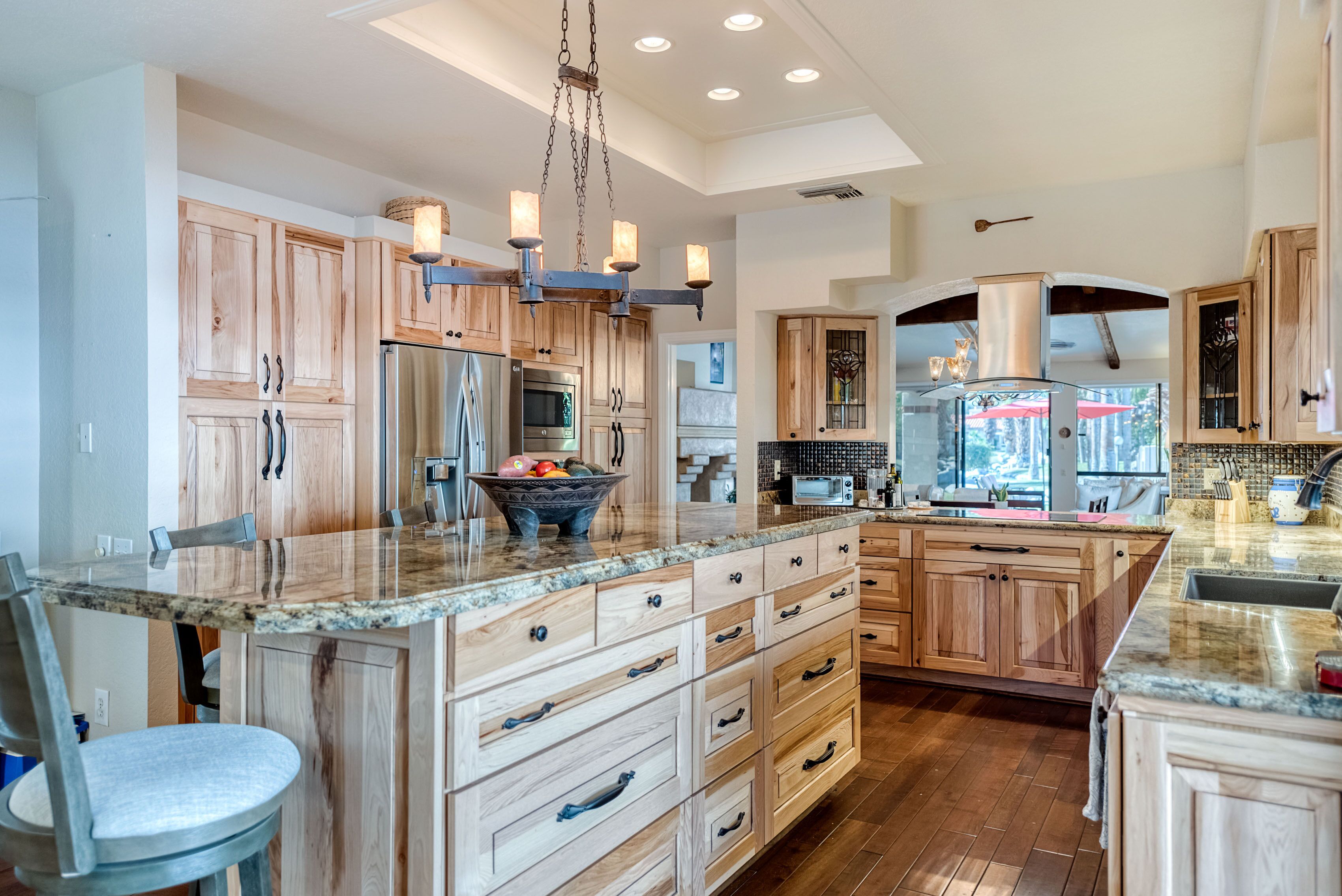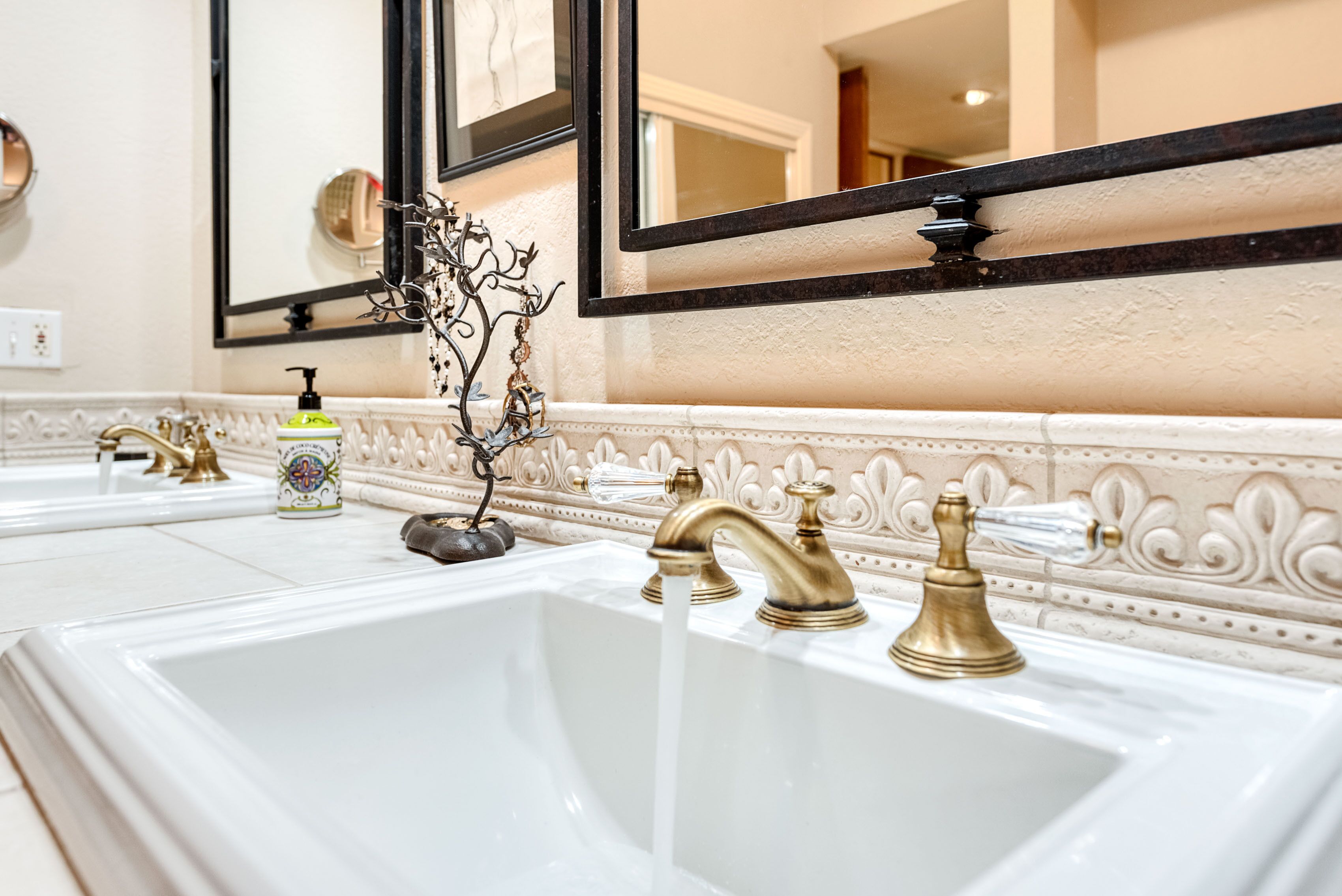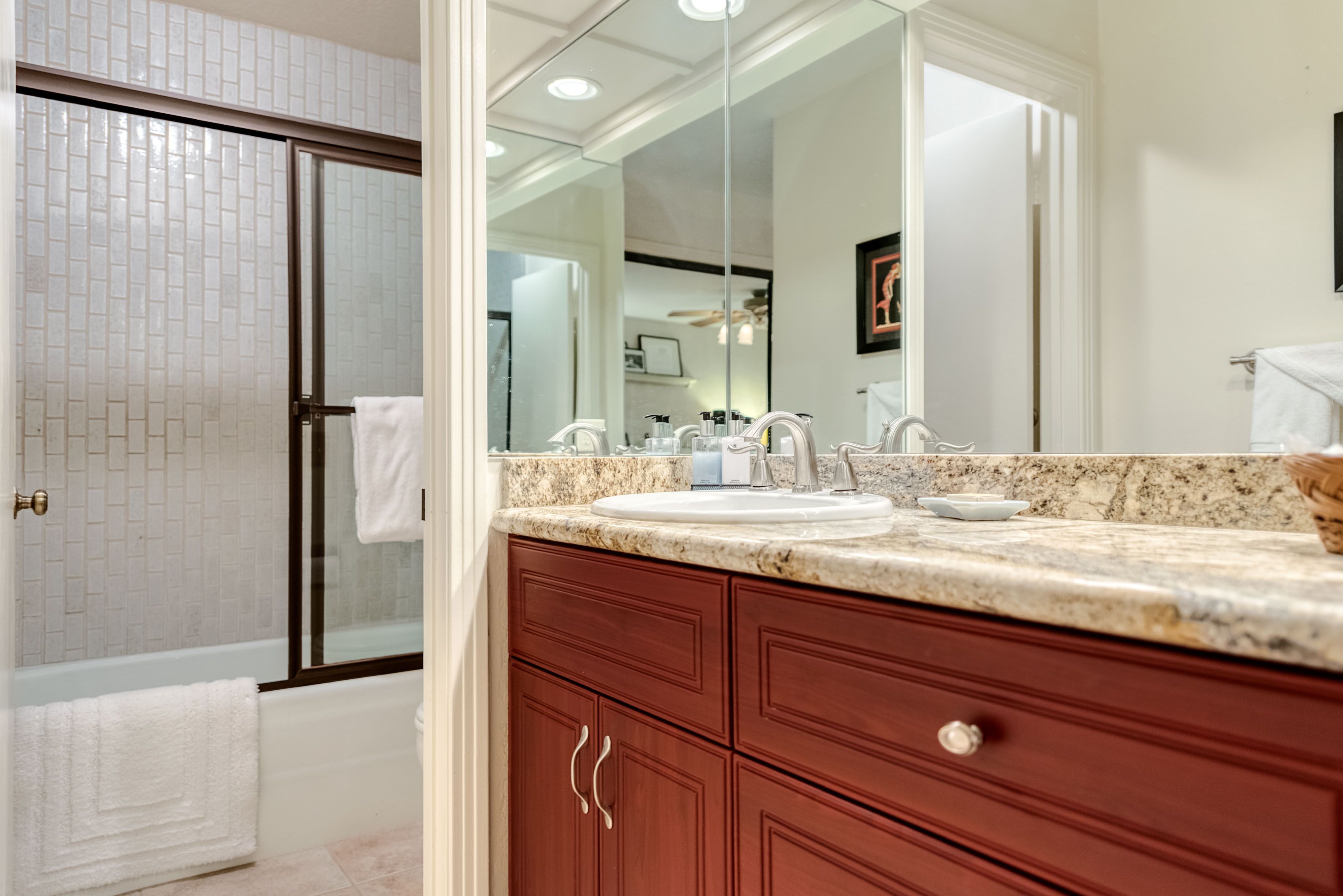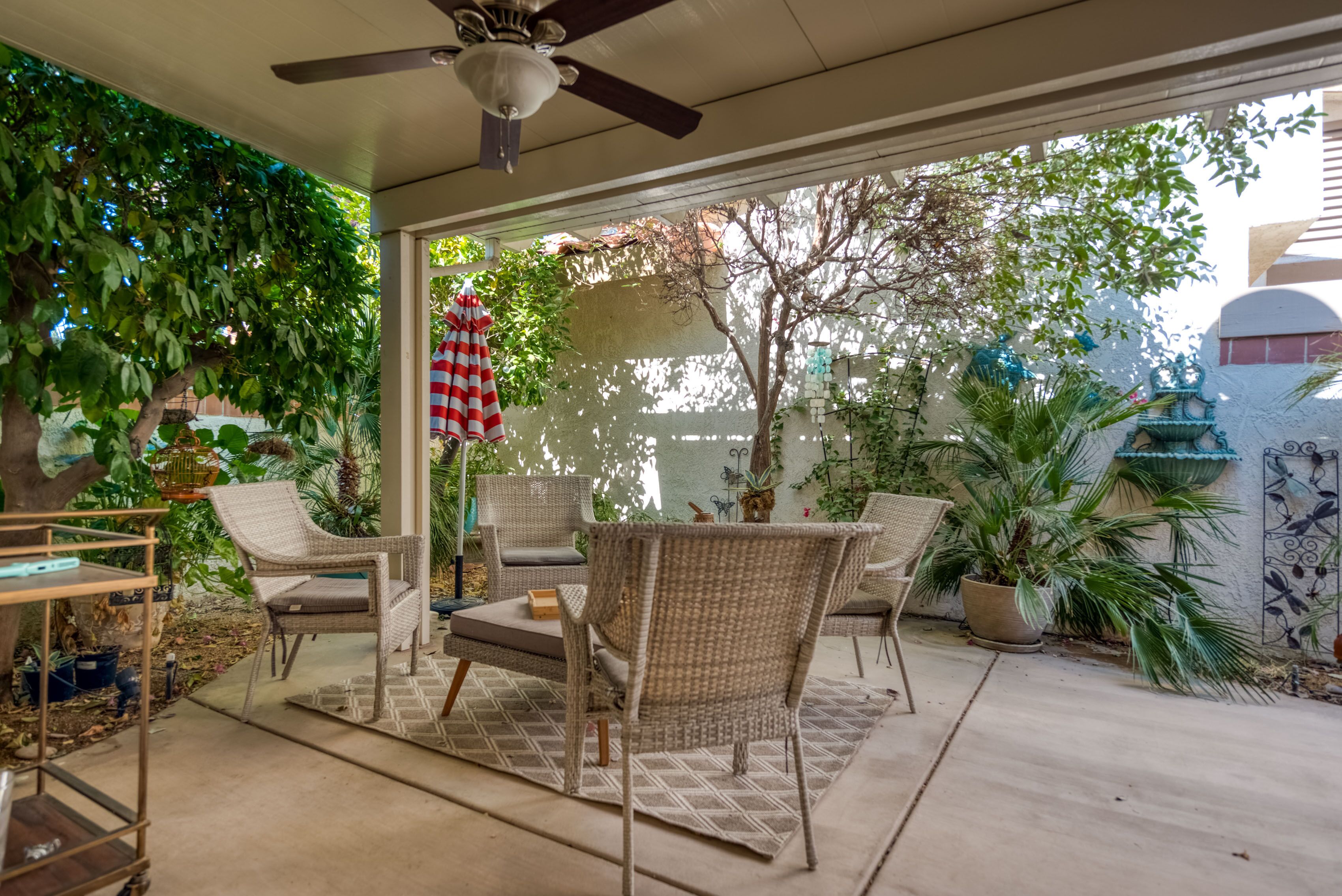 Indian Wells Pools and Streams Art Home w/ Tennis Elegant and spacious fully furnished 3 bedroom, 3 bath house located behind the gates of Los Lagos in the prestigious city of Indian Wells. The property sits steps from the year round heated pool and jacuzzi and a very short scenic walk through meandering streams and waterfalls to the tennis and pickleball courts. The house has a wet bar, 3 Sonos speakers, 2 fireplaces, and 5 flat screen TVs. In close proximity to El Paseo, Palm Springs, Indian Wells Tennis Gardens, and other area attractions.Entire home including two car garage is available for your next desert vacation! There are three bedrooms all with Smart TVs and the following bed setup: Master has a king mattress with large closet and private bathroom featuring a shower, oversized tub, and double vanity. Master has a 60" LG Smart TV and a private exit to the outdoor pool patio and pool areas. Bedroom #2 features a king mattress with closet and a 50" Vizio Smart TV. Bedroom #3 features a two extra-long twin beds pushed together as a king configuration along with a 50" TCL TV. Bathroom #2 features a shower/tub setup. Bathroom #3 has a shower. Living room features tall cathedral ceilings, an atmospheric fire place, comfy sofas, a game desk, 3 Sonos speakers, and a 60" Samsung Smart TV. It also has views of the pool area, indoor dining table, and kitchen in the open floor plan. Nice chess and backgammon sets are available for guest use and fun. High speed w-ifi internet and basic Spectrum cable are included. The den facing the street has a gas fireplace and 40" TV along with comfy sofa and reading chair. Kitchen is modern and well stocked with drip coffee maker, nespresso coffee maker, microwave, dishwasher, disposal, blender, warming drawer, pots, pans, glasses (wine, mugs, cups), plates, bowls, oven, stove, utensils, silverware, fridge with ice in door with water dispenser, extra fridge in garage, cooking basics: oil, salt & pepper. Many more kitchen items provided not listed. Guest starter kit includes coffee, dishwasher detergent, dish soap, shampoo, conditioner. Indoor dining room table seats eight. There is a large granite work desk between the kitchen and den with a printer. Side outdoor patio area features a propane BBQ grill island with small fridge and three tables with chairs for outdoor dining. There are tables and lounge chairs outside of the living and master rooms for morning coffee or laying out on a towel in the warm sun. Two car garage and washer/dryer are available for guest use. Ironing board and iron in garage.Log Lagos contains four tennis courts with night lighting, two paddle ball courts, pool, jacuzzi, and walking paths along meandering streams and lagoons.