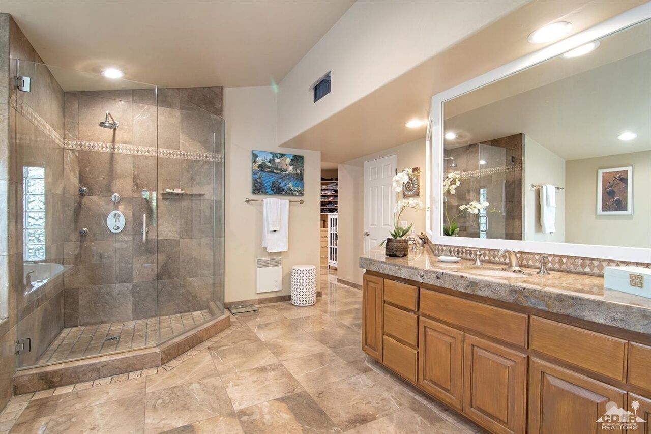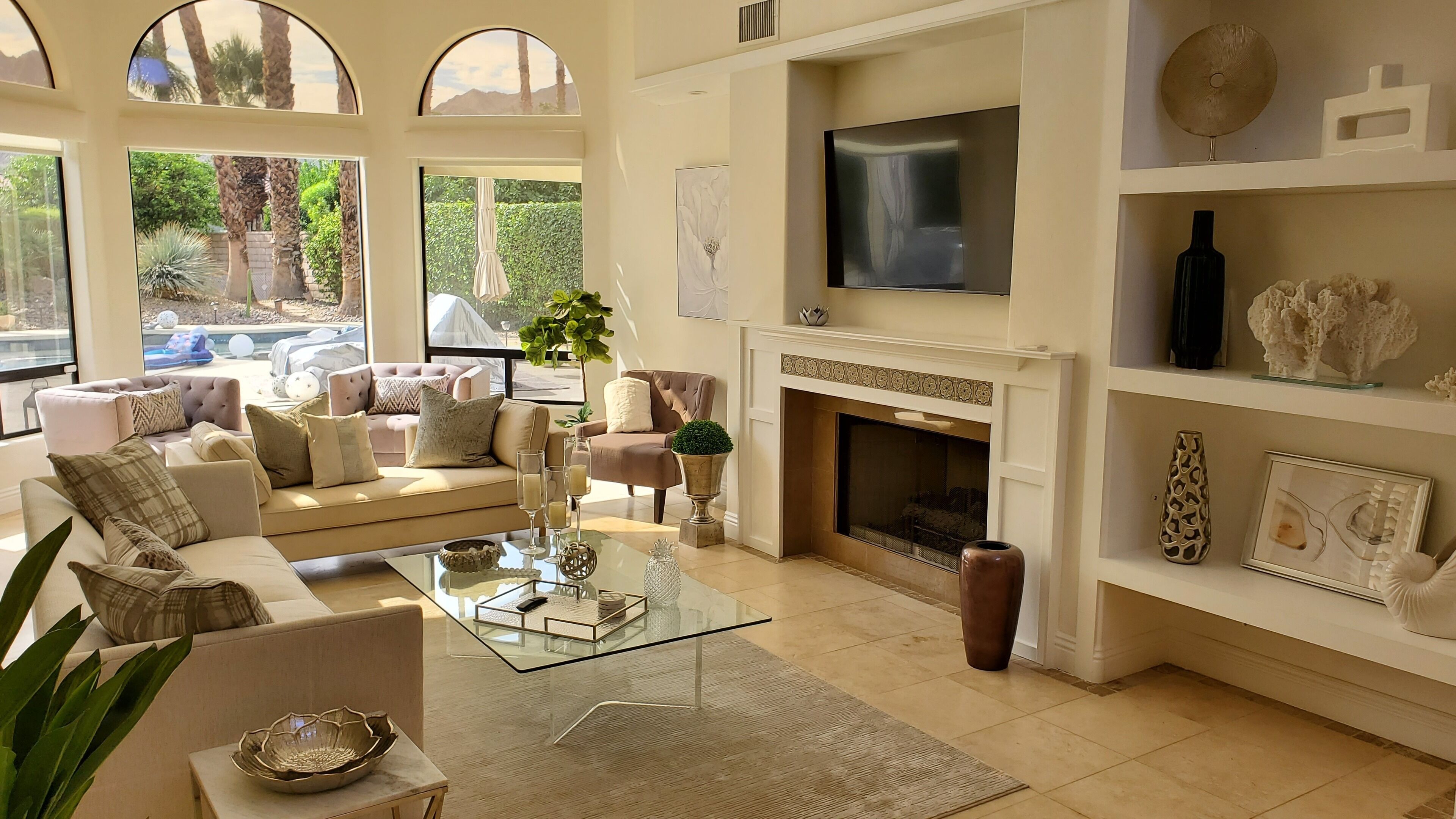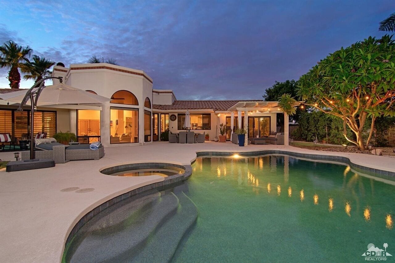 Elegant Indian Wells home with magnificent mountain views Desirable Indian Wells private home with magnificent mountain views is a perfect desert oasis. 3 bedrooms and 3.5 baths in the main house and a separate one bedroom 1 bath private casita. 3,349 Total Square Feet. Fully equipped kitchen, large family room and elegant living room. Private backyard with saltwater pool and beautiful view to th...