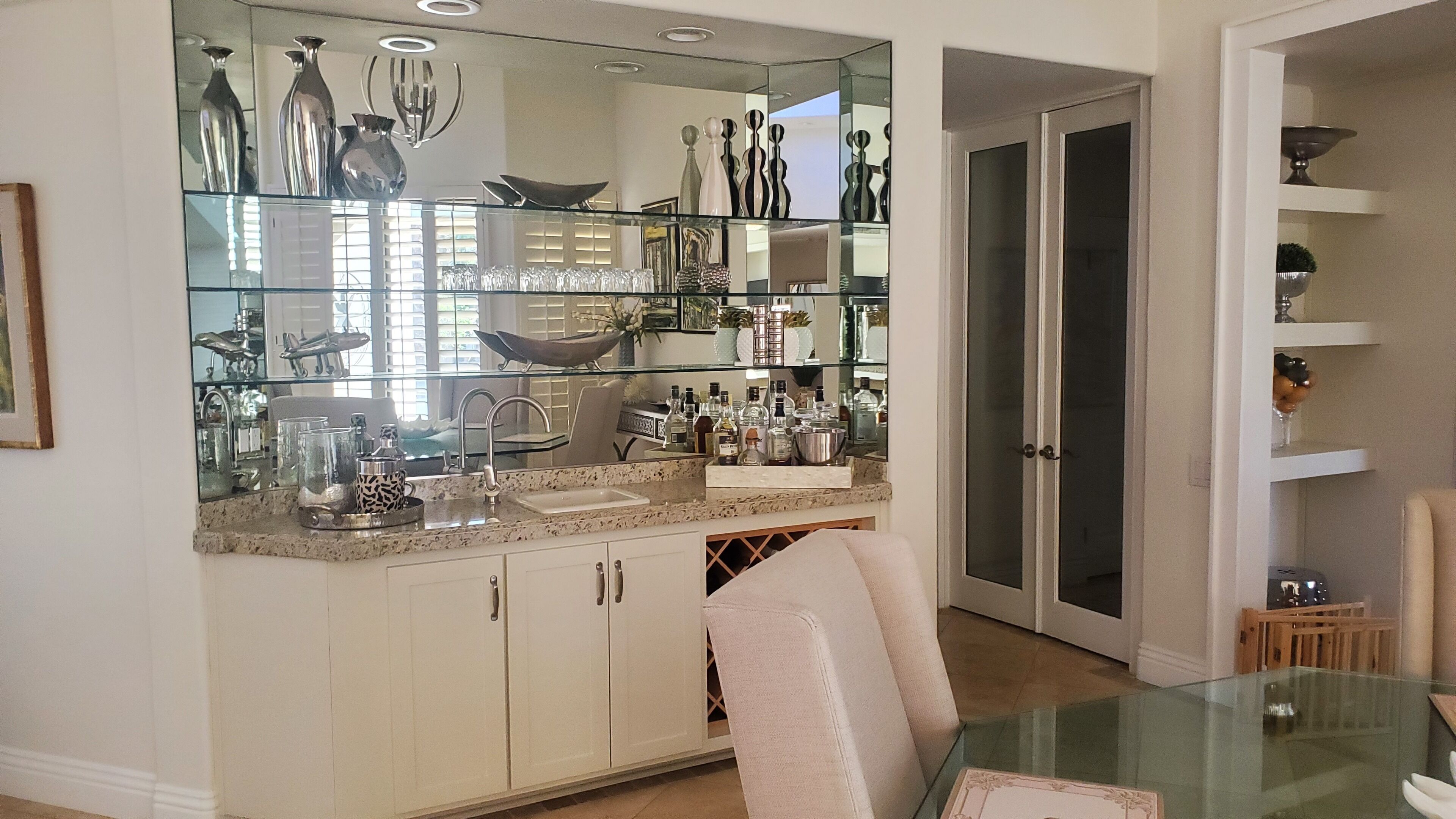Elegant Indian Wells home with magnificent mountain views Desirable Indian Wells private home with magnificent mountain views is a perfect desert oasis. 3 bedrooms and 3.5 baths in the main house and a separate one bedroom 1 bath private casita. 3,349 Total Square Feet. Fully equipped kitchen, large family room and elegant living room. Private backyard with saltwater pool and beautiful view to the mountains. Enjoy the close proximity to the Indian Wells Golf resort, shopping, and fabulous dining.