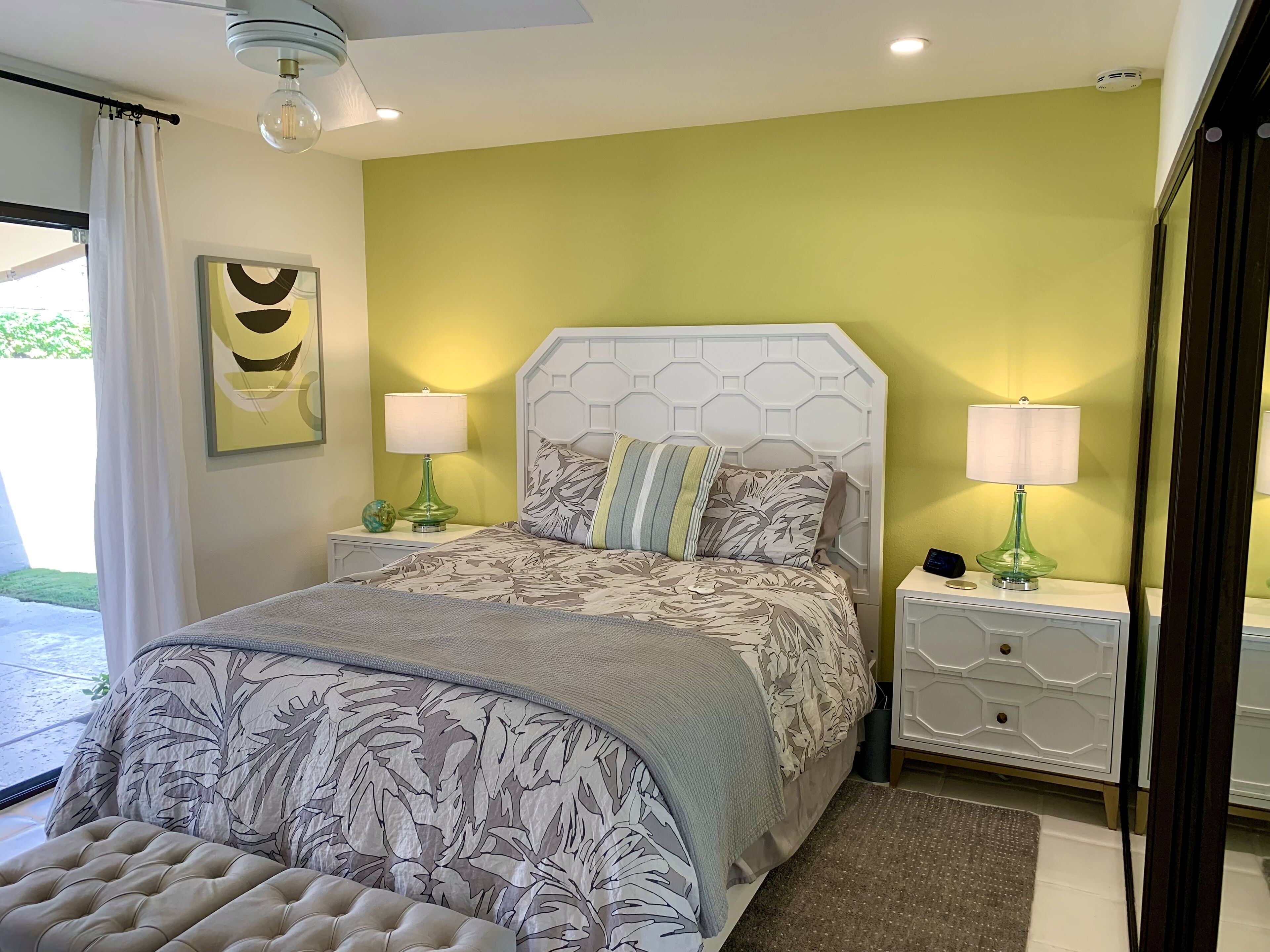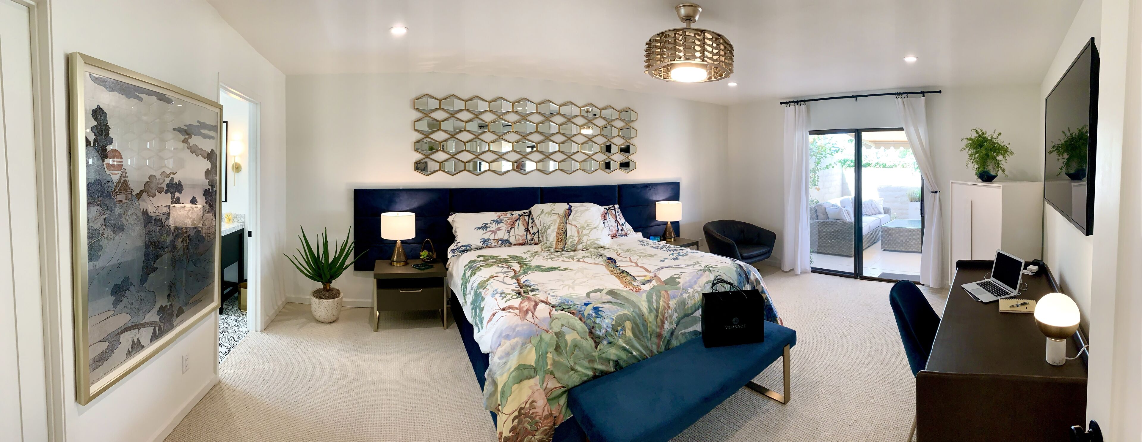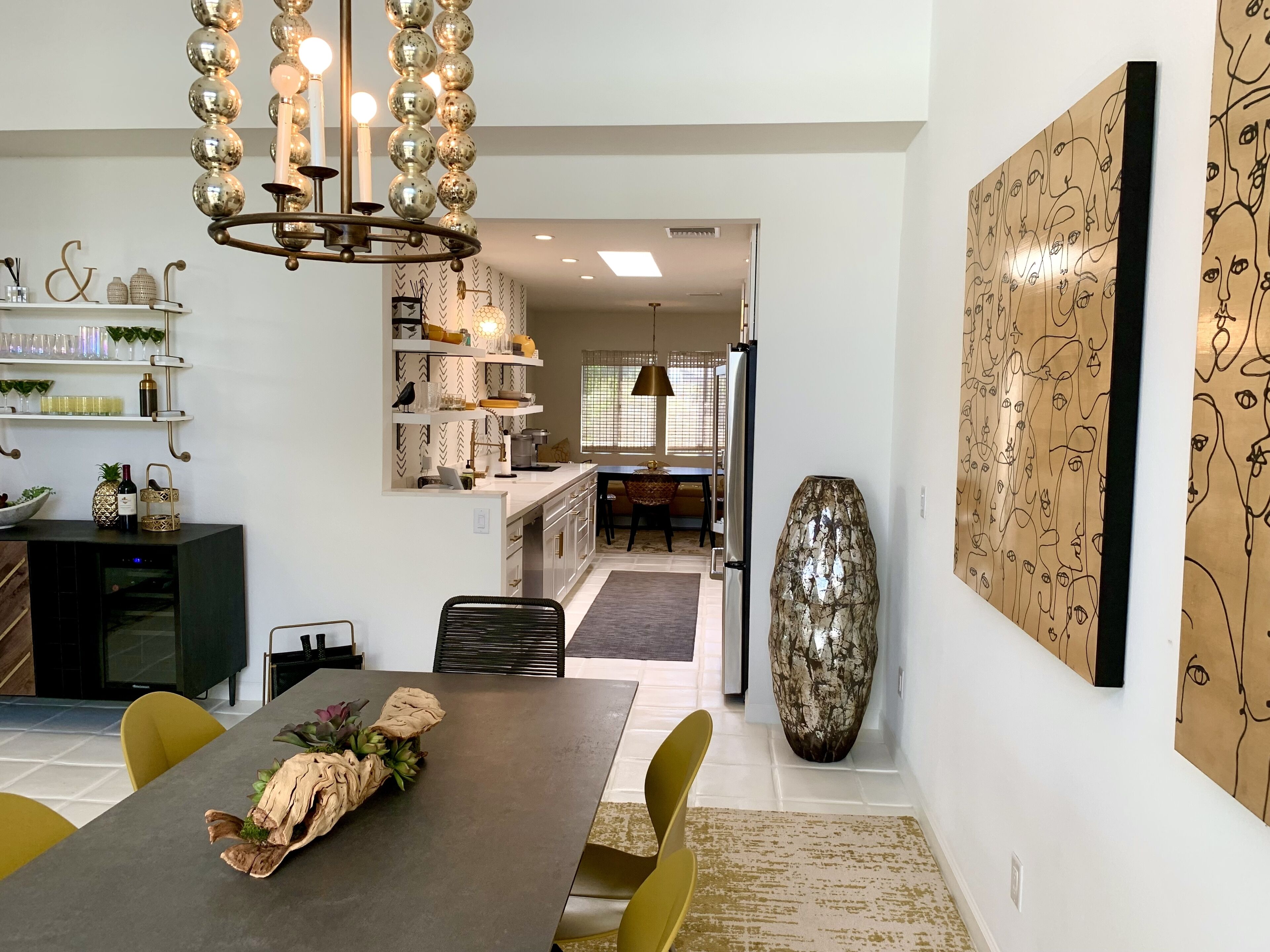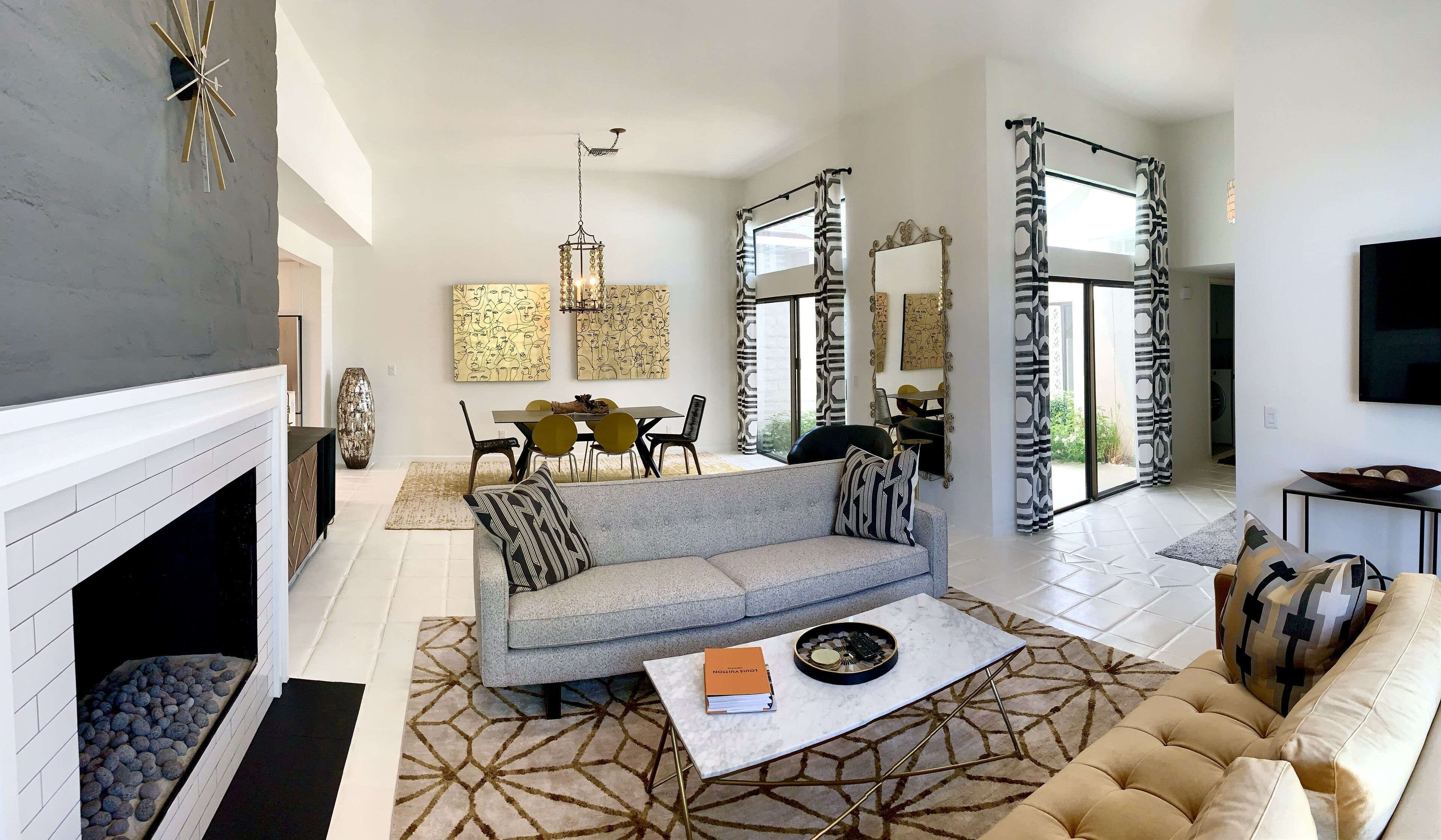 Enjoy the charms of La Rocca The condo is located in the quiet, private community of La Rocca. The small enclave of condos embraces green space created by a 9 hole par 3 course at it's heart. Mountain views enchant.An open floor plan and comfortable furnishings make this an easy living, relaxed, single floor home. Grab a bottle of wine from the wine fridge and sip a glass in your favorite chair - indoors or out. Kitchen has everything you need if cooking is your thing. Enjoy breakfast in the cozy nook. Gather your friends for a diner party - indoor or alfresco, there is seating for 6. Embrace the California weather in the privacy of your indoor atrium or out on the wrap around patios. There is a retractable awning to give you just the amount of sun you desire. Steps from the back patio and you are at one of 6 pools. Tennis courts, shuffle board and the golf course will keep you active and entertained.An expansive owner's suite offers king sleeping, a desk for office tasks and a sitting area for tv or a good book. Sliding patio doors adjoin the rear patio. The owner's en suite has a soaking tub, dual vanity and zero entry shower.The second and third bedrooms offer queen sleeping and share a hall entry bath with zero entry shower.Tech touches - wireless internet, large screen tv's, Echo speakers and a wireless laser printer.With Indian Wells as home base you can explore the Coachella Valley and more. What's nearby - shopping along El Paseo, Great golf at PGA West, hike the bump and grind trail or feast with amazing dining choices. Plan a day trip to Joshua tree or Temecula wine country.