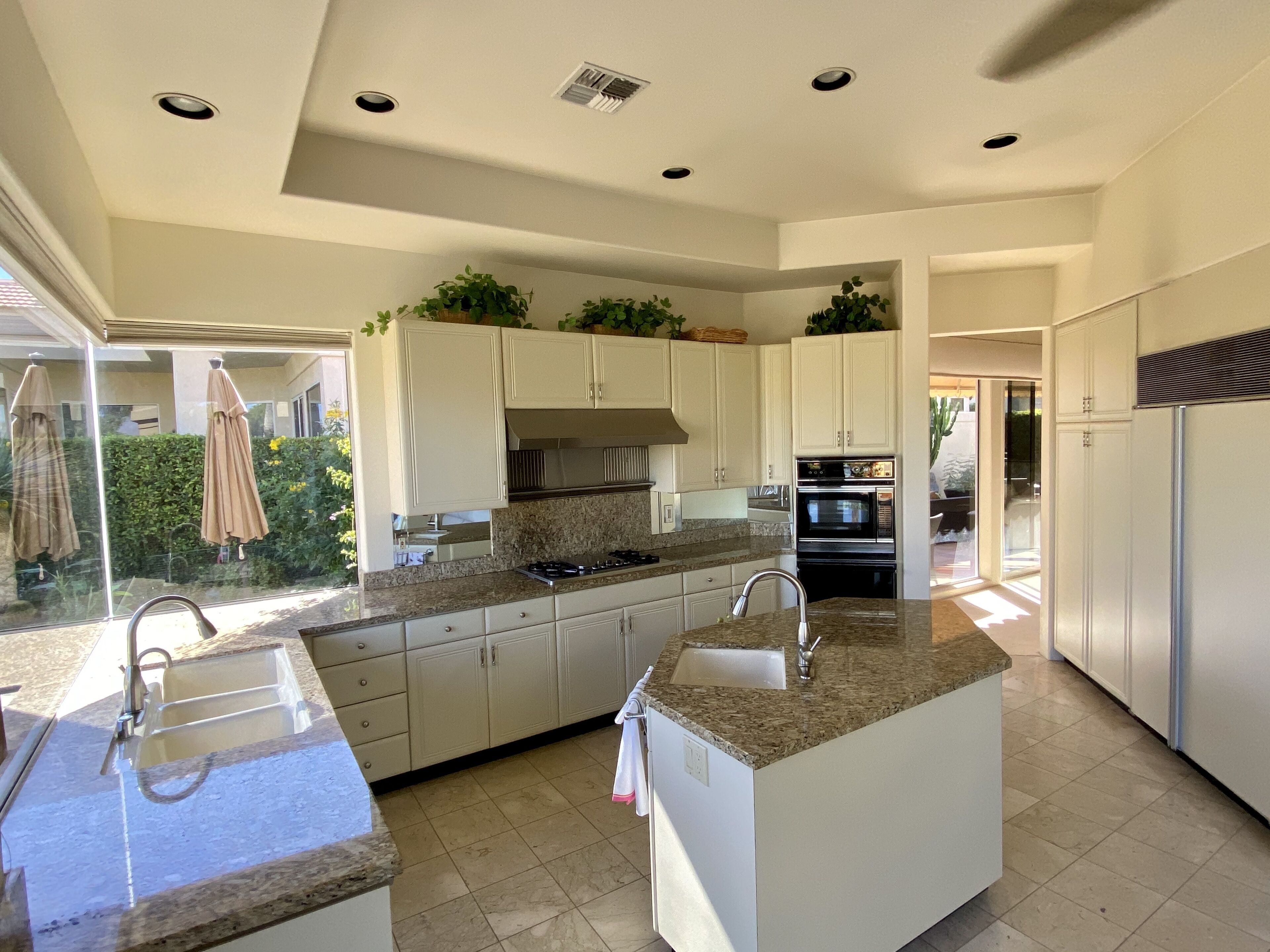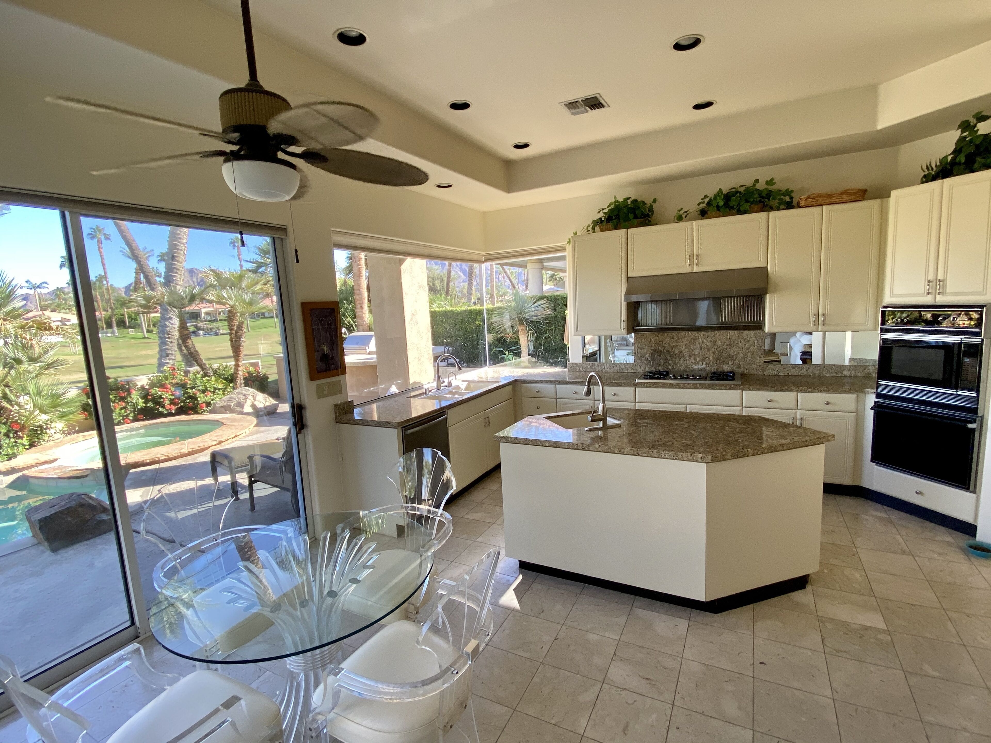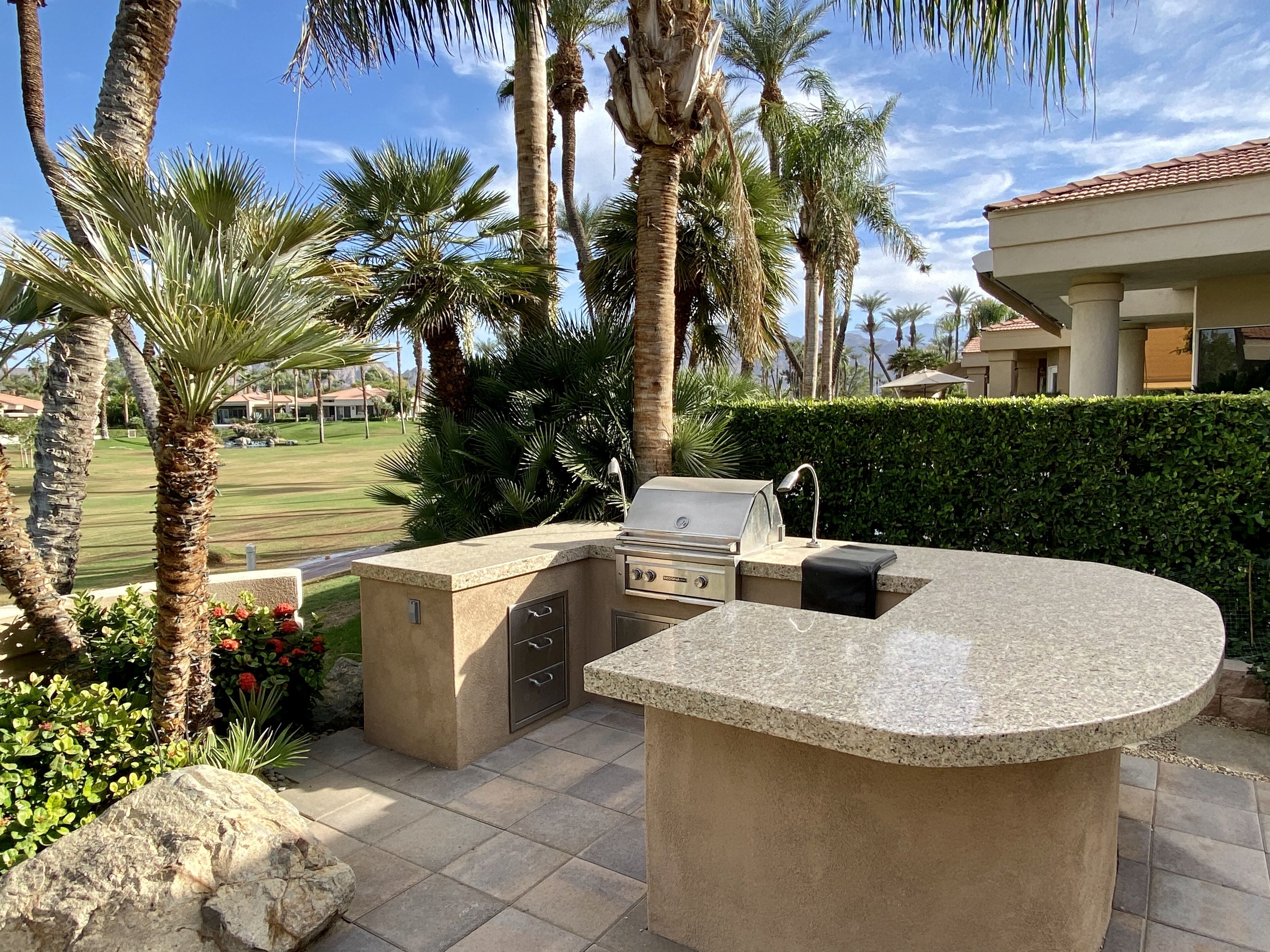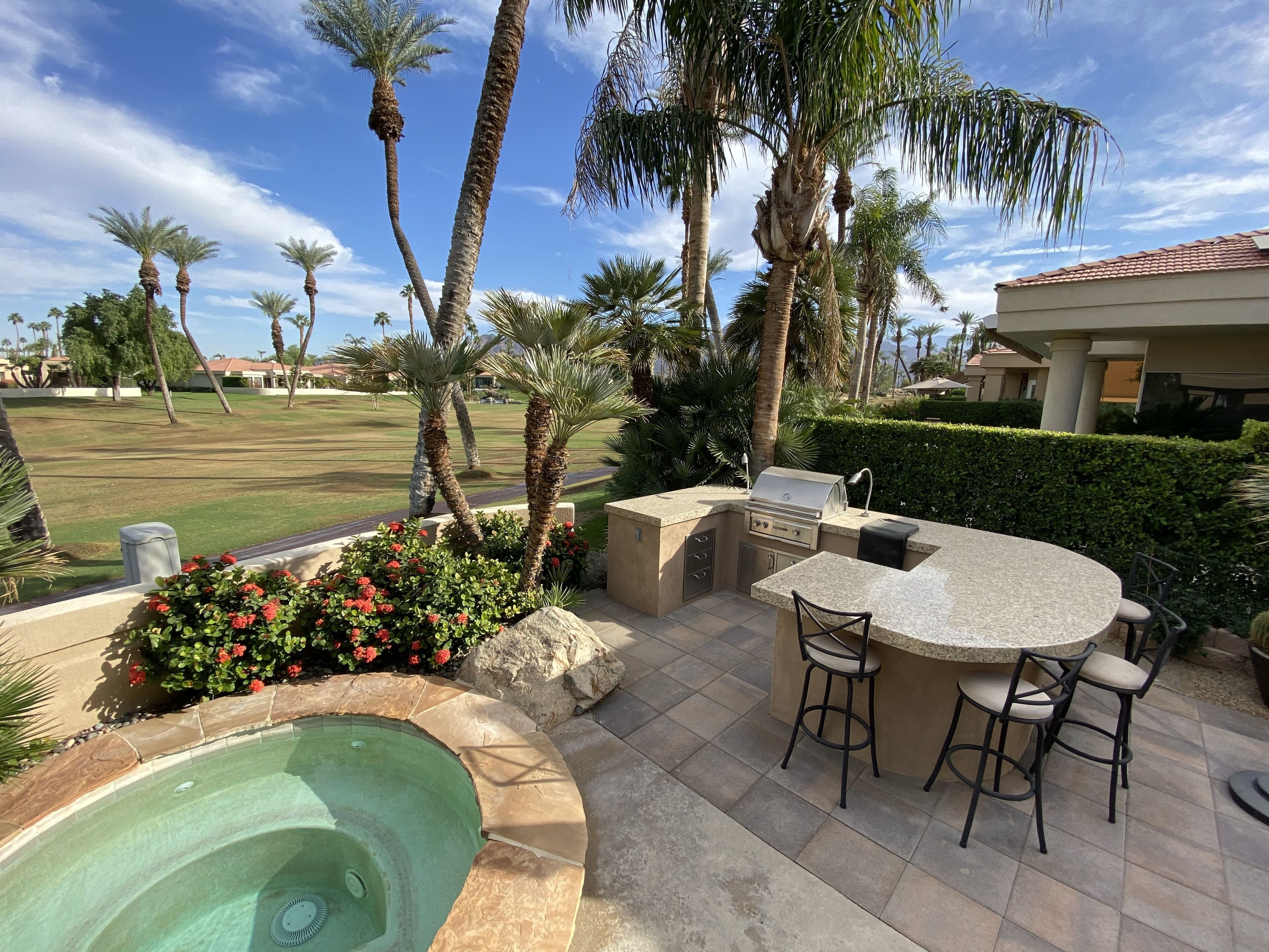 Amazing Indian Wells home with Pool/Spa in Desert Horizons Country Club Prime location in Indian Wells! This 3 bedroom, 3.5 bath home is located in the meticulously maintained Desert Horizons Country Club. The home can accommodate 6 people comfortably. The beauty of the golf course and the surrounding mountains begins in the morning, as the sun baths the kitchen in early light. Warm your feet by the outdoor fire pit in the morning as you enjoy your first cup of coffee and read the paper. The entire development is excellent for walking. The master bathroom features a skylight, a large walk-in closet with high-quality, built-in cabinetry, double sinks, a Jacuzzi bath and separate walk-in shower. The second bedroom offers two full size beds and en suite bath. The third bedroom offers a queen bed with en suite bath, including a full-size tub-shower combo. This home also features a sparkling private pool and spa, outdoor dining table, custom barbecue with granite counter top and outdoor seating. The house also features a wet bar with granite countertops, upholstered bar stools, glassware, sink and small refrigerator, a half bath/powder room and large laundry room with full-size washer and dryer, sink, and plenty of storage. At the end of your day, enjoy dinner al fresco on the newly remodeled outdoor patio while the sun sets behind the breathtaking Santa Rosa Mountains. This rental is highly sought after and will be booked year round. Perfect for Coachella, the BNP Paribus tennis tournament (only 4 miles away!), or a long term vacation. This home has a 30 day minimum night stay.