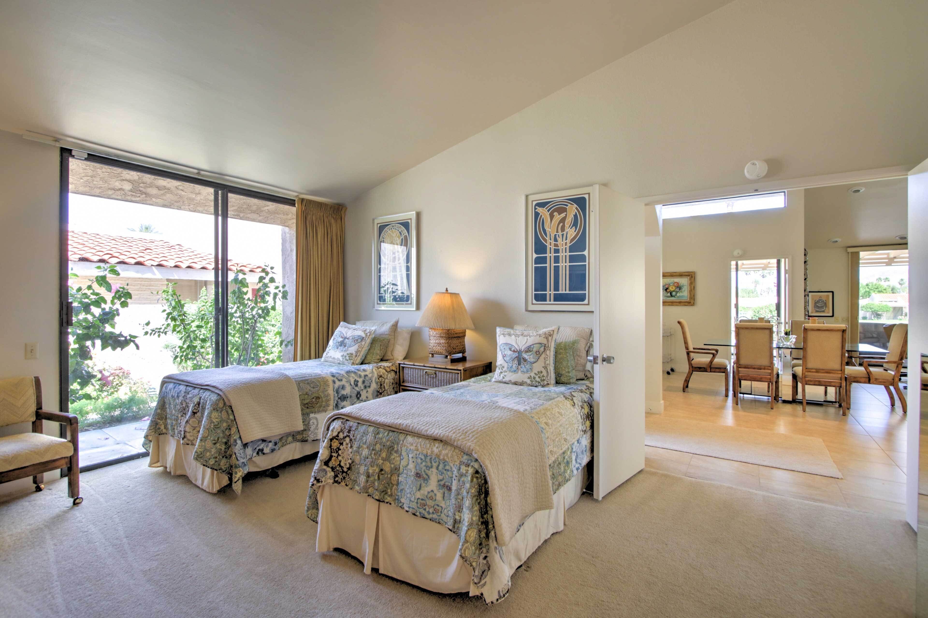 Indian Wells Desert Paradise w/ Mtn View + Patio! Calling all golfers and snowbirds! Come 'home' to this roomy Indian Wells vacation rental, located in the Dorado Villas community. The 3-bedroom, 3-bath condo offers breathtaking views, a full kitchen, spacious bedrooms, and a tastefully decorated patio perfect for hanging out with friends and family. Take a stroll down the greenbelt to 1 of 9 sparkling pools and hot tubs - cool off after tee time or splash around with the kids under the California sun. Enjoy year-round fun at this desert oasis!-- THE PROPERTY --Gated Community | 2 Mi to Indian Wells Golf Resort | Pool AccessLocated near 2 of Golfweek's Top 20 'Best Courses You Can Play' in California, this Indian Wells retreat is the perfect home base for pars and birdies, shopping, dining, and outdoor adventure with the family.Bedroom 1: King Bed | Bedroom 2: King Bed | Bedroom 3: 2 Twin Beds, Air MattressDORADO VILLAS AMENITIES: 9 pools & hot tubs, 9 tennis courtsOUTDOOR LIVING: Furnished covered patio, gas grillINDOOR LIVING: 4 flat-screen cable TVs, DVD player, CD player, home theater system, video game console, books, gas fireplace, 2 dining tables, en-suite bathroom, security safeKITCHEN: Fully equipped, drip coffee maker, toaster, Crock-Pot, cooking utensils, cutlery, dishware & flatware, ice makerGENERAL: Free WiFi, A/C, central heat, hair dryer, in-home laundry, towels/linens, pool toys, 3 bicycles w/ helmetsFAQ: Grab rails in bathroom, 2 steps to accessPARKING: Garage (2 vehicles), driveway (2 vehicles)-- THE LOCATION --GOLF: Indian Wells Golf Resort (2.3 miles), Shadow Mountain Golf Club (2.4 miles), Indian Wells Country Club (2.6 miles), Desert Springs Golf Club (3.3 miles), PGA WEST Mountain Course (7.2 miles)THINGS TO SEE + DO: Fantasy Balloon Flights (1.0 miles), The Living Desert Zoo and Gardens (2.5 miles), Desert Adventures (2.8 miles), Smoke Tree Stables (14.1 miles), Palm Springs Air Museum (14.1 miles), Palm Springs Art Museum (15.9 miles), Palm Springs Aerial Tramway (22.2 miles)OUTDOOR RECREATION: The Bump And Grind Trail (4.1 miles), Santa Rosa and San Jacinto Mountains National Monument (6.1 miles), Cove To Lake Trailhead (9.3 miles), Coachella Valley Preserve - Thousand Palms Oasis Preserve (13.6 miles), Joshua Tree National Park (36.1 miles)SHOPPING: The Village at Indian Wells (0.8 miles), El Paseo Shopping District (2.4 miles), Desert Crossing Shopping Center (3.6 miles), Old Town La Quinta (7.2 miles), Downtown Palm Springs (15.6 miles)AIRPORT: Palm Springs International Airport (13.5 miles)-- REST EASY WITH US --Evolve makes it easy to find and book properties you’ll never want to leave. You can relax knowing that our properties will always be ready for you and that we’ll answer the phone 24/7. Even better, if anything is off about your stay, we’ll make it right. You can count on our homes and our people to make you feel welcome--because we know what vacation means to you.-- POLICIES --- No smoking- No pets allowed- No events, parties, or large gatherings- Must be at least 25 years old to book- Additional fees and taxes may apply- Photo ID may be required upon check-in- City code: No more than 2 people per bedroom- NOTE: The property sleeps 6 guests in beds, with space for 1-2 additional guests on an air mattress, bringing the maximum occupancy to a total of 8- NOTE: The property requires 2 stairs to access